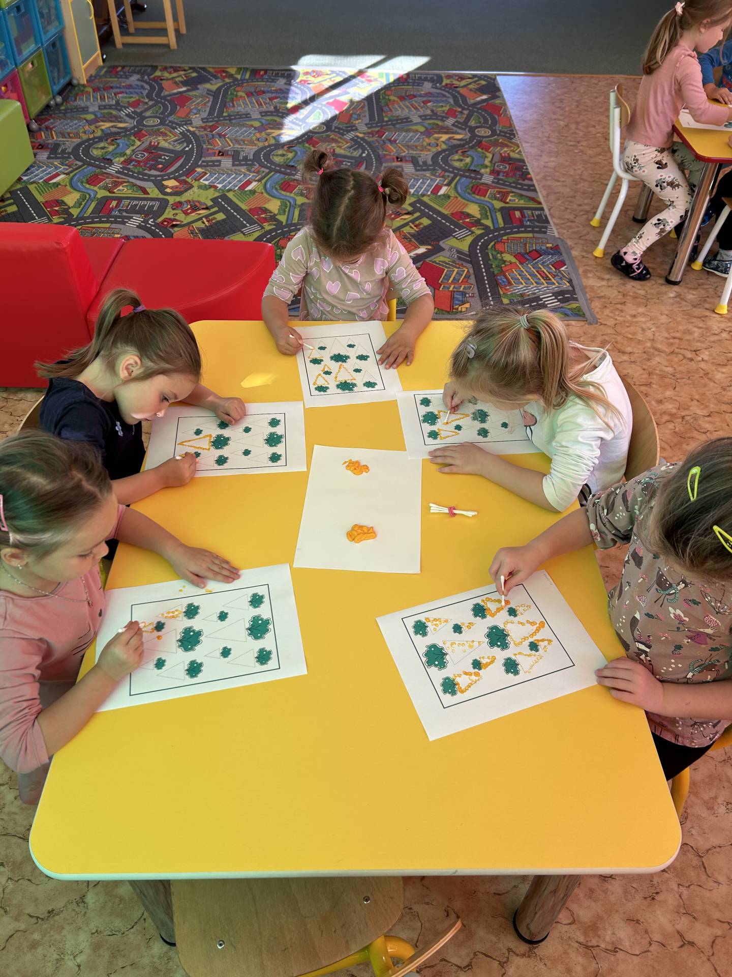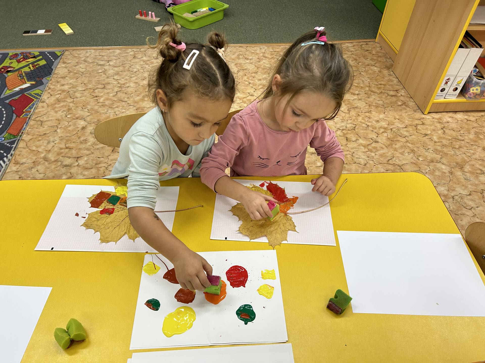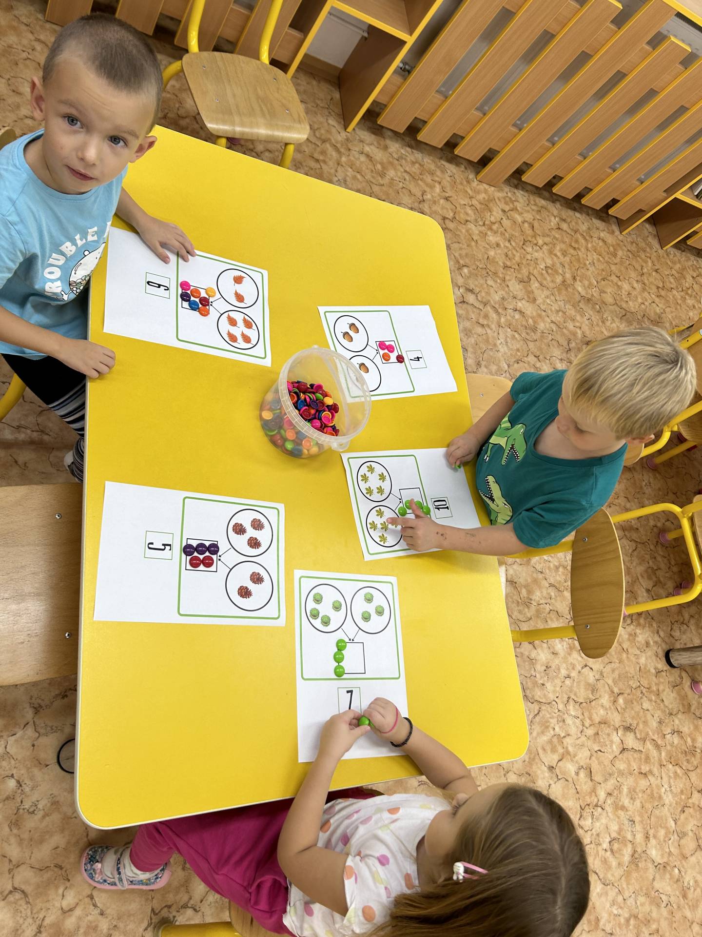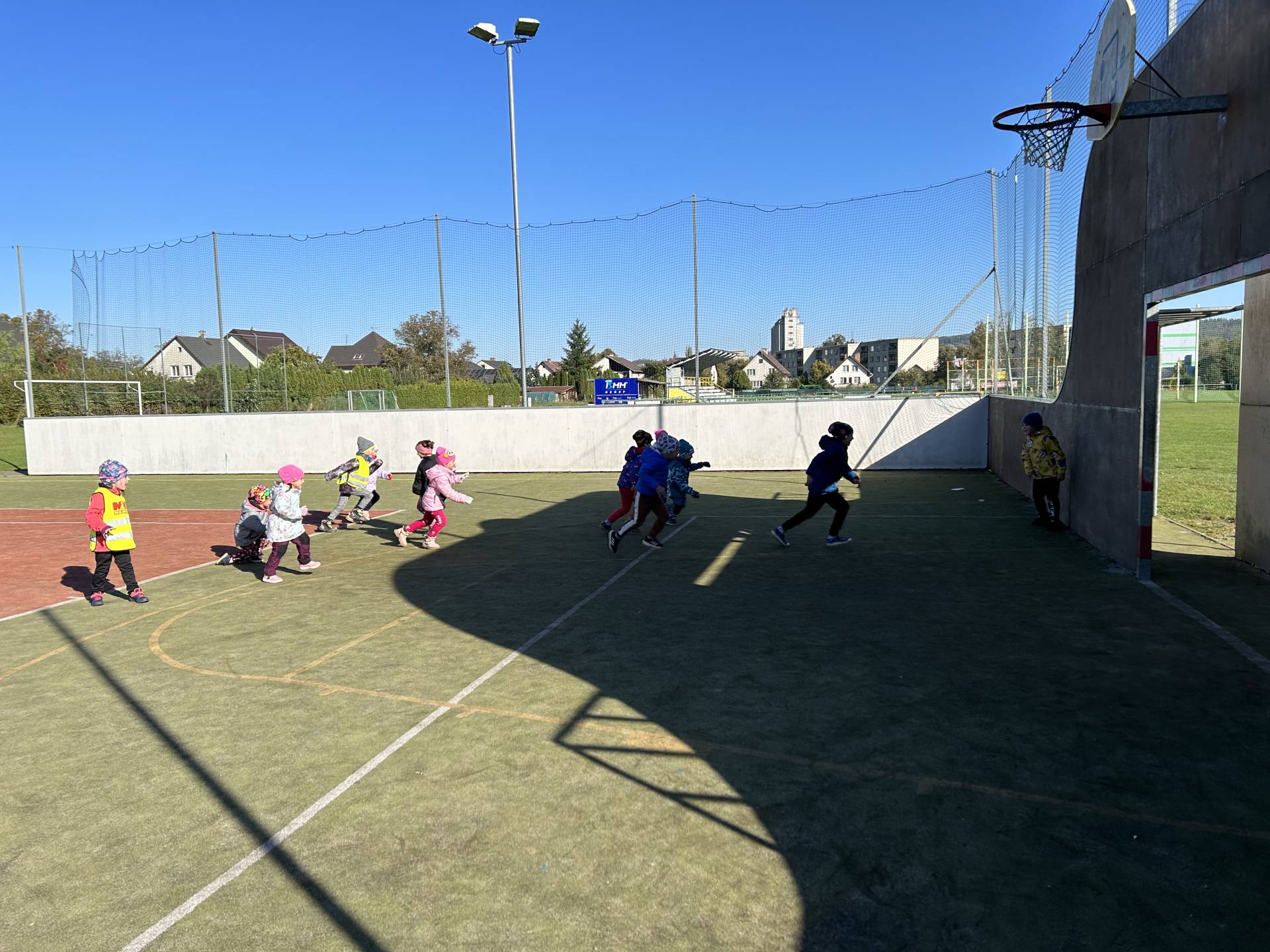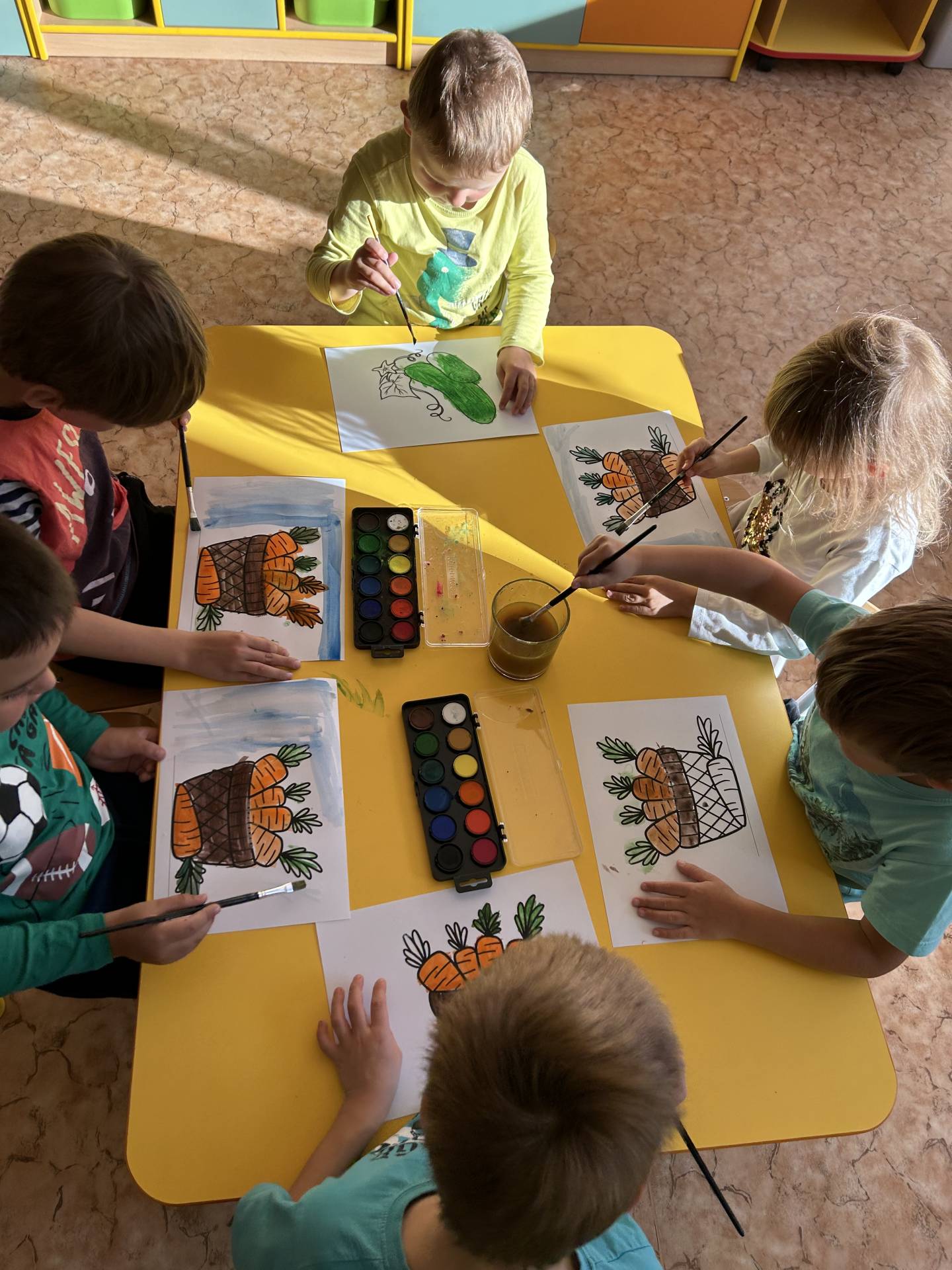V říjnu jsme se seznámili s tím, co je potřeba udělat na zahradě a na poli před zimou. Sklidit ovoce a zeleninu? Víme jak chutná, voní, jakou má barvu. Vnímali jsme ji všemi smysly. Společně s paní Petrekovou jsme si uvařili výbornou dýňovou polévku. Pohrabat listí? Žádný problém, ovšem my jsme v něm dováděli, stavěli domečky pro zvířátka a vytvořili si podzimníčky. Poorat pole a nakypřit půdu před zimním spánkem? Práci na poli, jsme pozorovali při vycházkách a následně ji výtvarně ztvárnili. Při pobytu venku pozorujeme změny v přírodě, a protože je letošní podzim krásný užíváme si každou procházku barevnou přírodou.