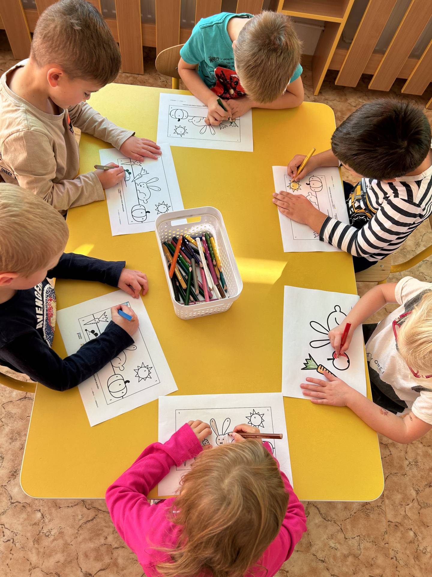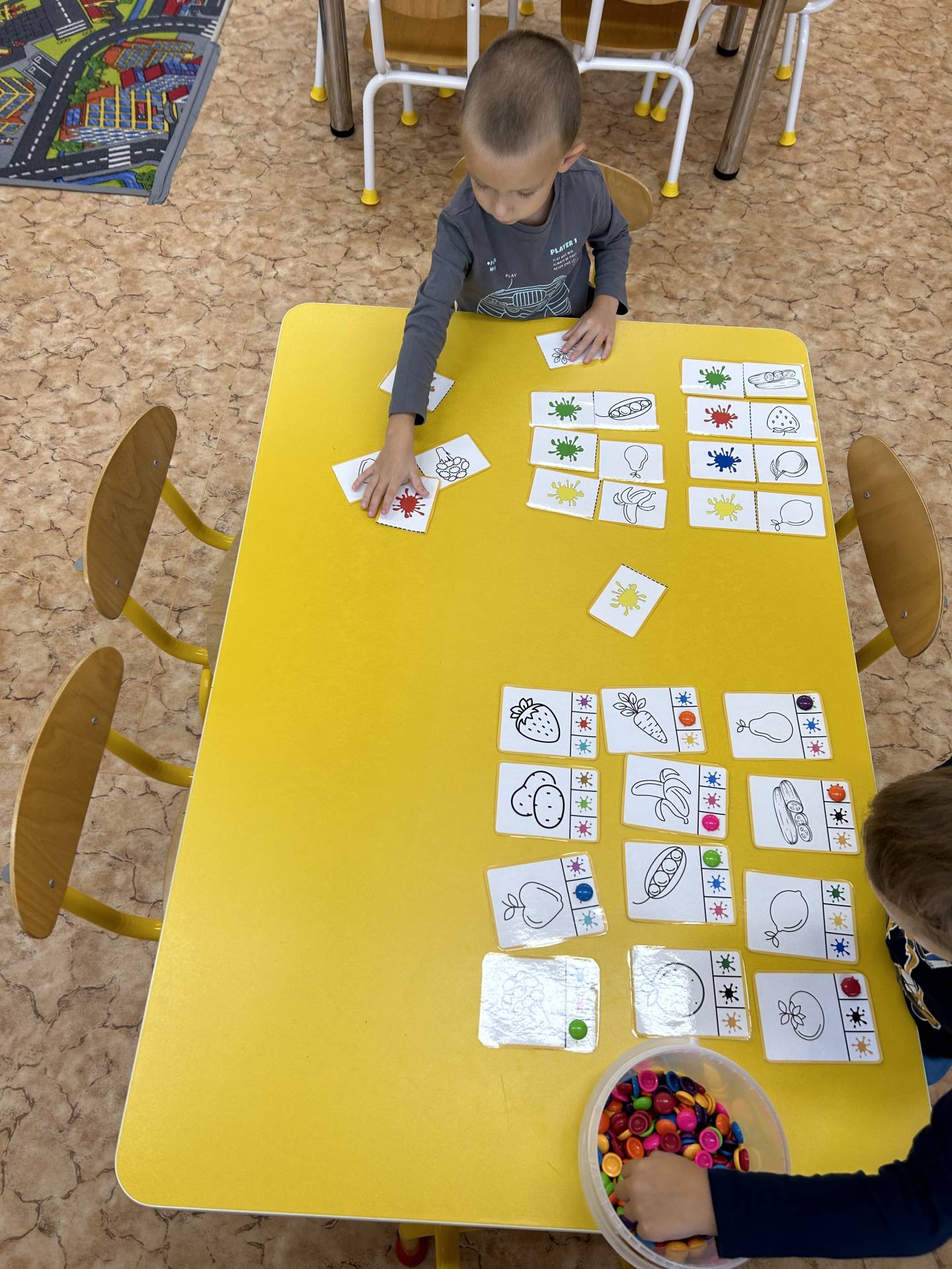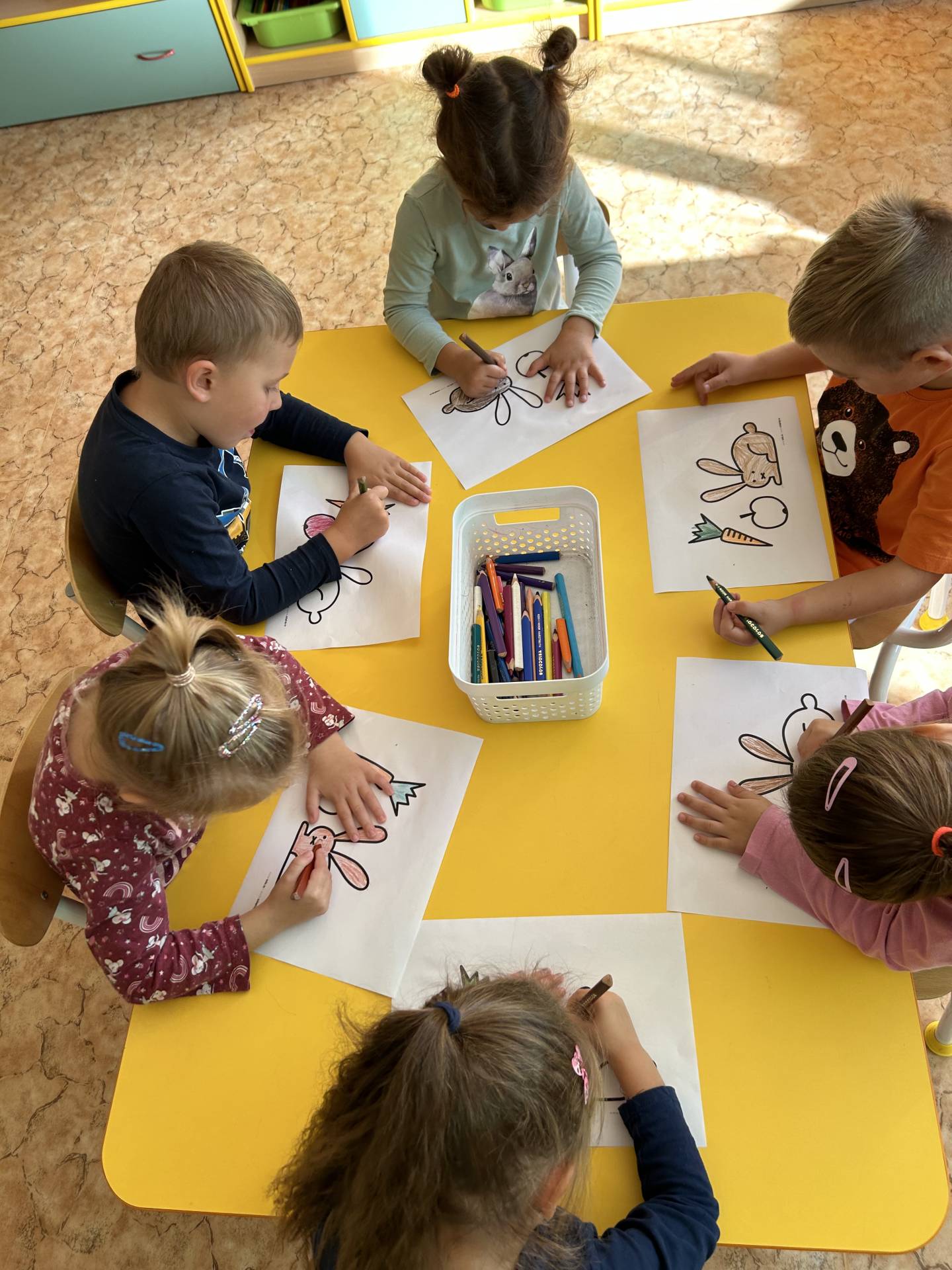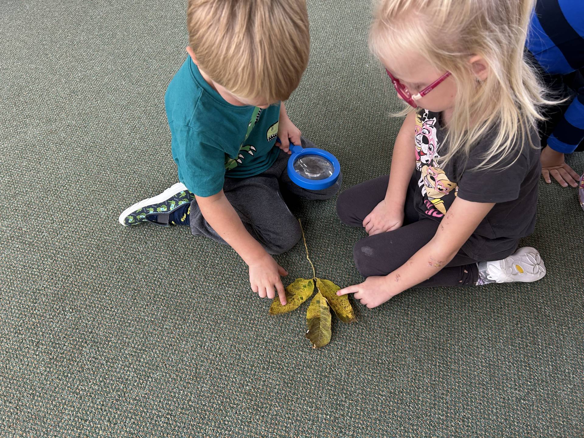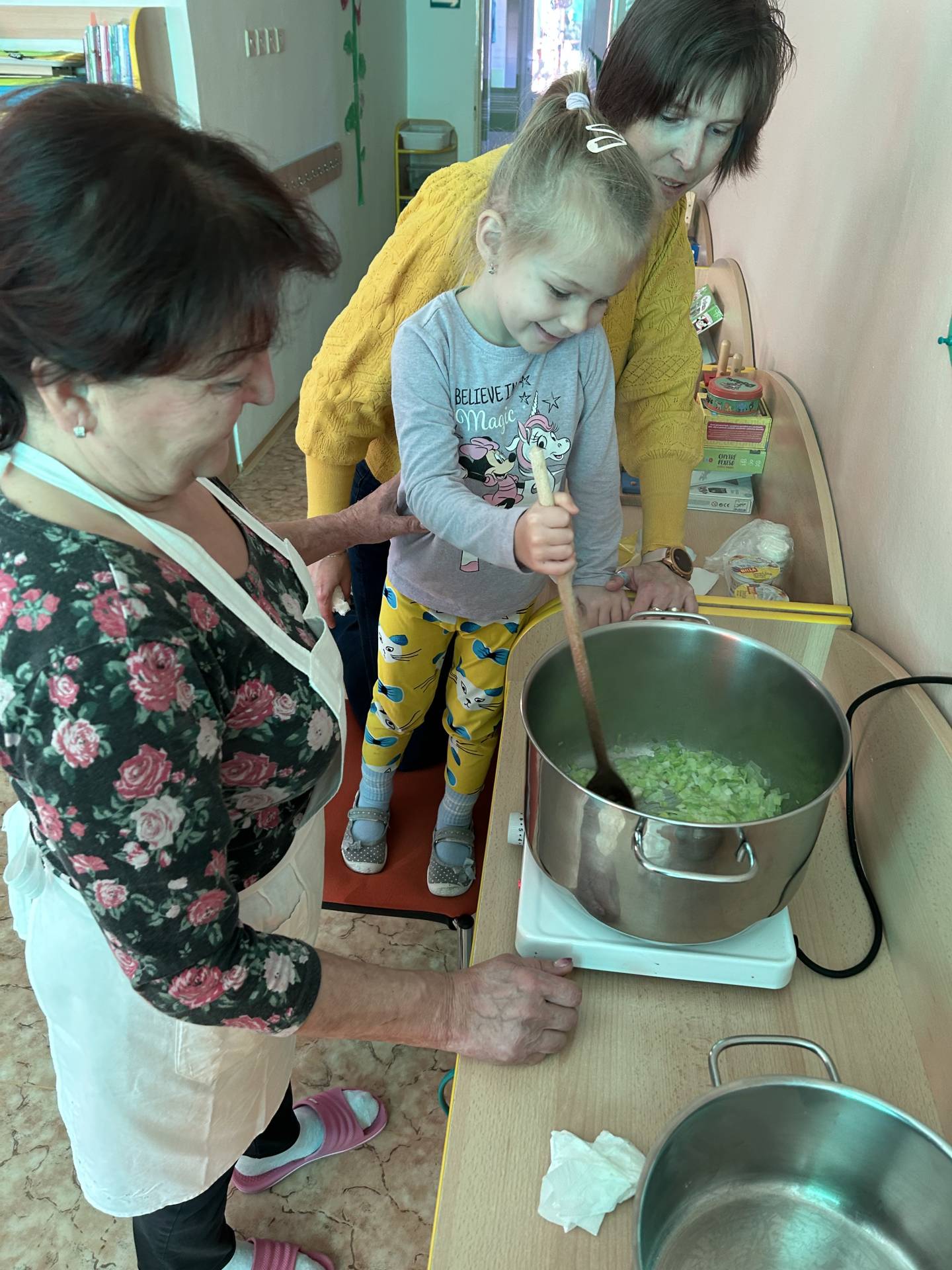 V říjnu jsme se seznámili s tím, co je potřeba udělat na zahradě a na poli před zimou. Sklidit ovoce a zeleninu? Víme jak chutná, voní, jakou má barvu. Vnímali jsme ji všemi smysly. Společně s paní Petrekovou jsme si uvařili výbornou dýňovou polévku. Pohrabat listí? Žádný problém, ovšem my jsme v něm dováděli, stavěli domečky pro zvířátka a vytvořili si podzimníčky. Poorat pole a nakypřit půdu před zimním spánkem? Práci na poli, jsme pozorovali při vycházkách a následně ji výtvarně ztvárnili. Při pobytu venku pozorujeme změny v přírodě, a protože je letošní podzim krásný užíváme si každou procházku barevnou přírodou.
