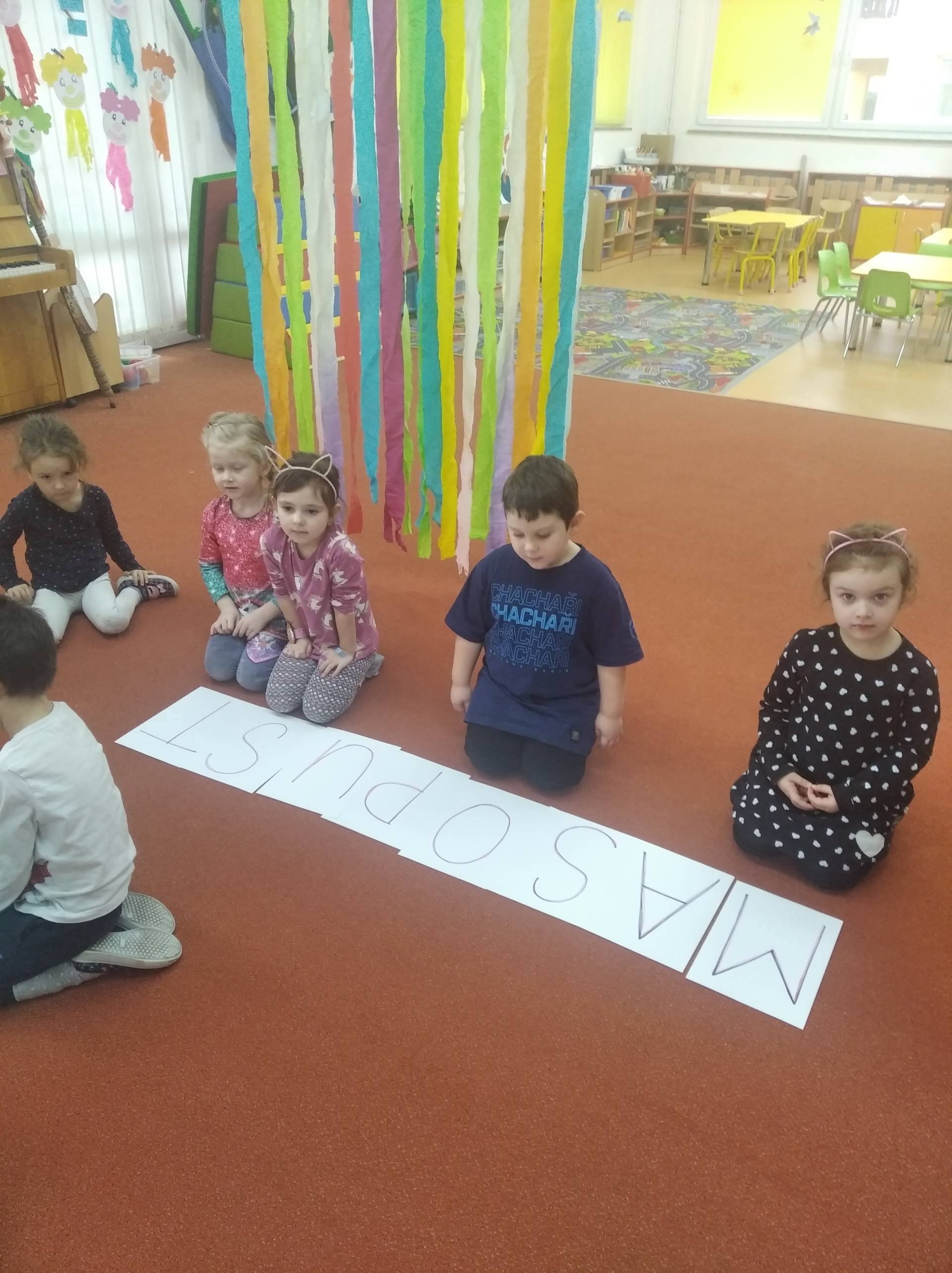 Děti se seznámily s lidovými zvyky v období masopustu,společně prožívaly radost a veselí.Podporovaly jsme rozvoj myšlení,řeči,tvořivosti při předmatematických,výtvarných i pohybových dovednostech.Děti se učily chápat humor a vtip.