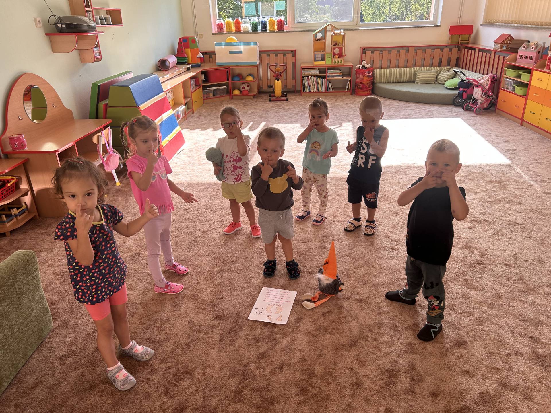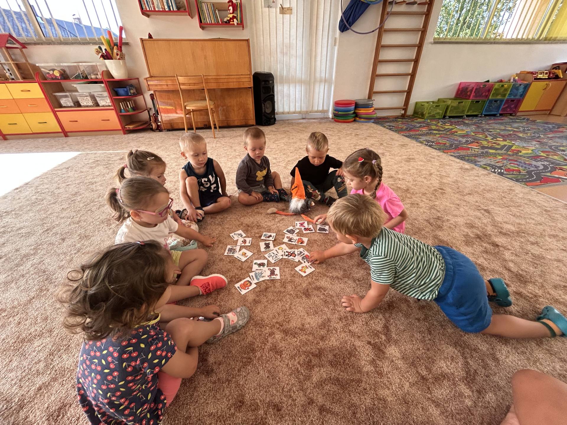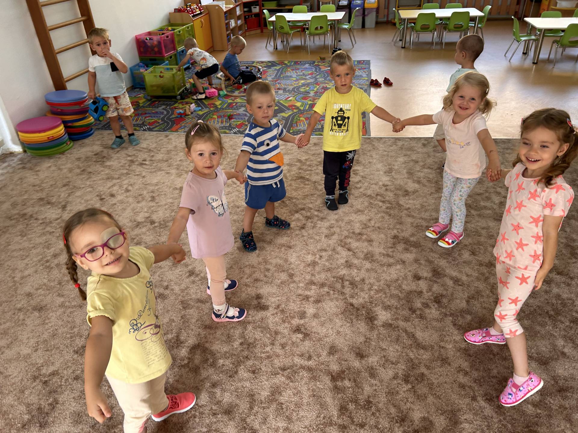 Společně se skřítkem Raráškem se seznamujeme s prostředím třídy i školní zahrady poznáváme nové kamarády a hledáme k sobě tu správnou cestičku. Hrajeme si, zpíváme a protahujeme tělíčka pomoci veselých říkadel.
