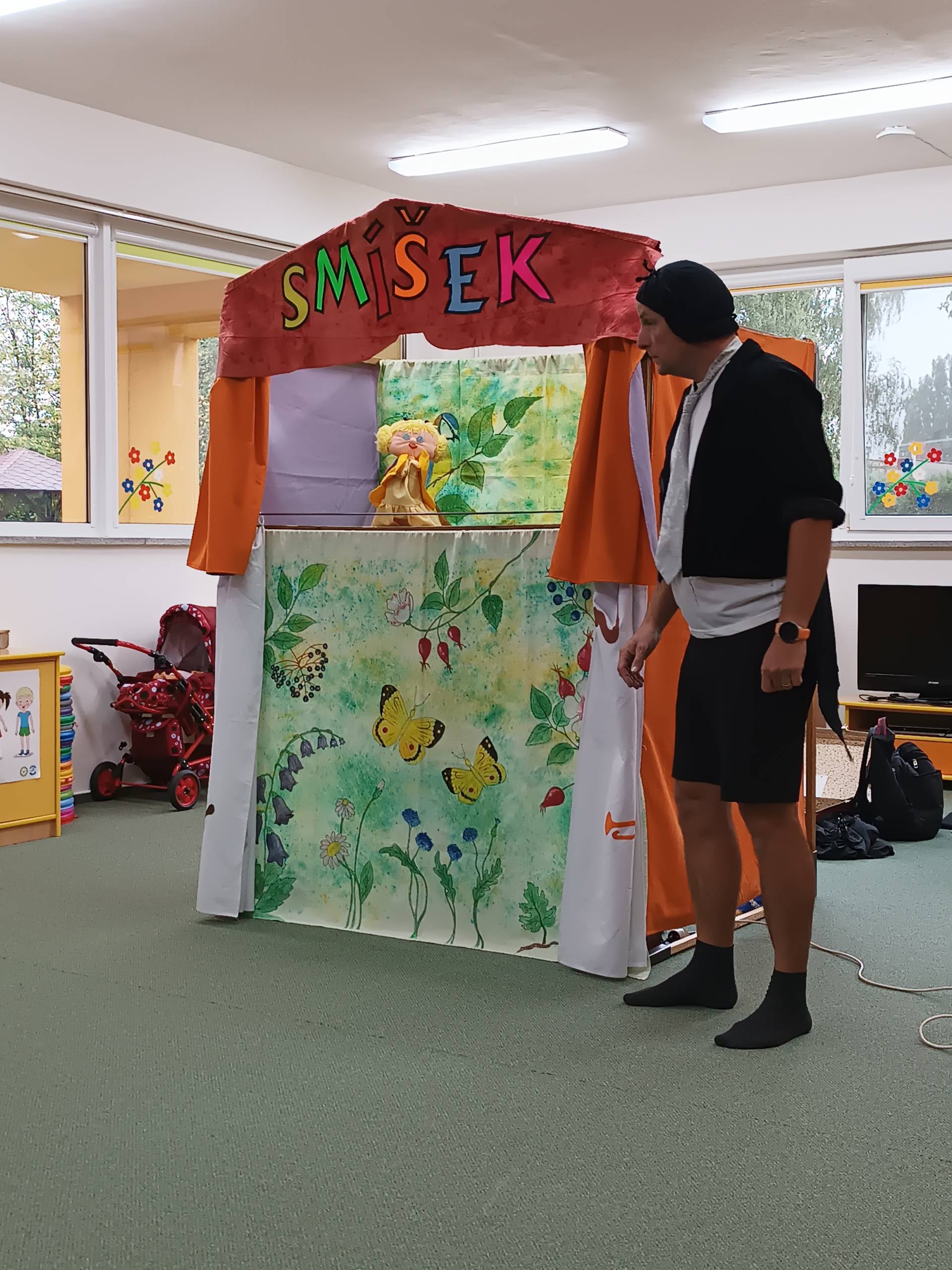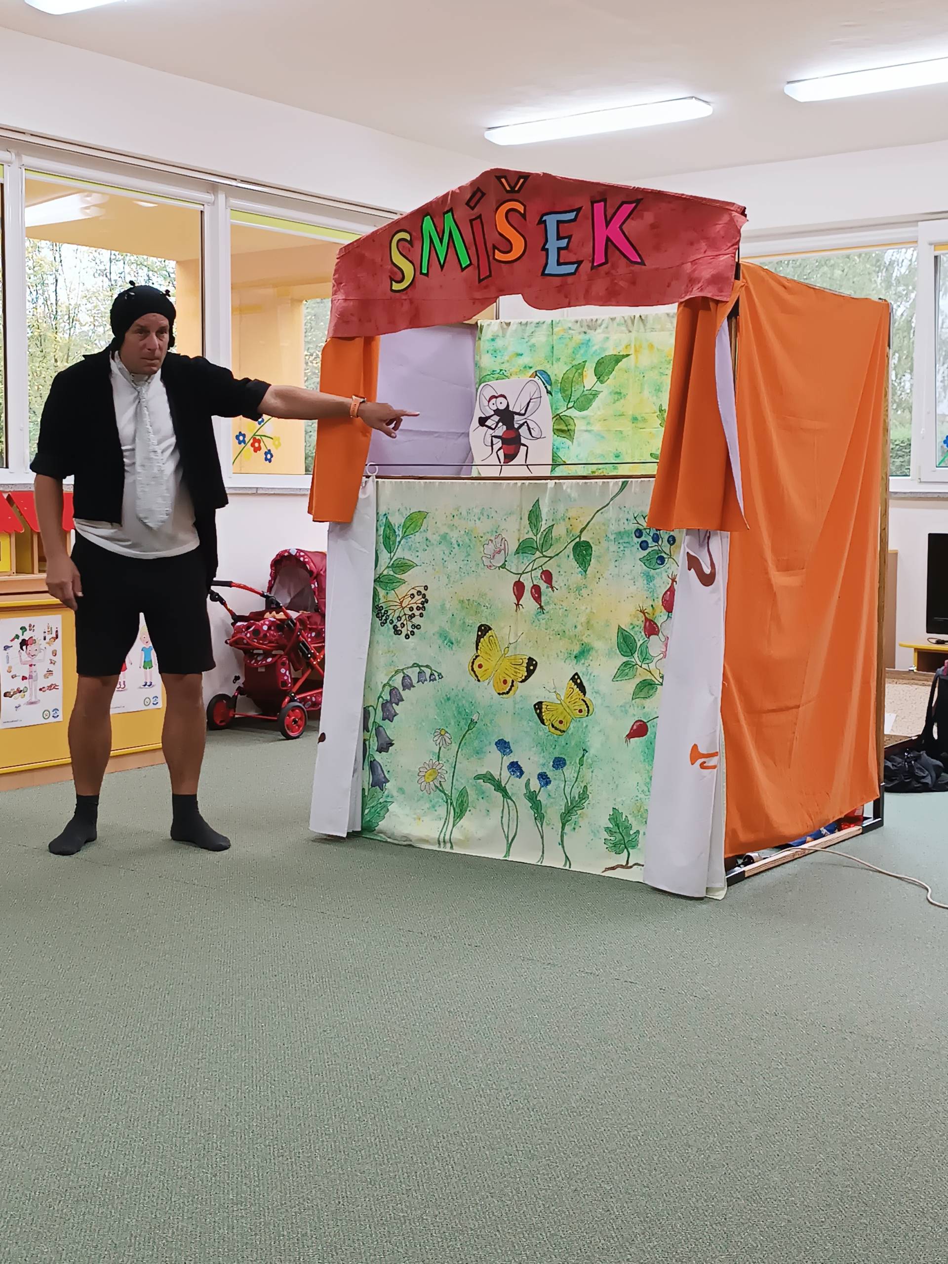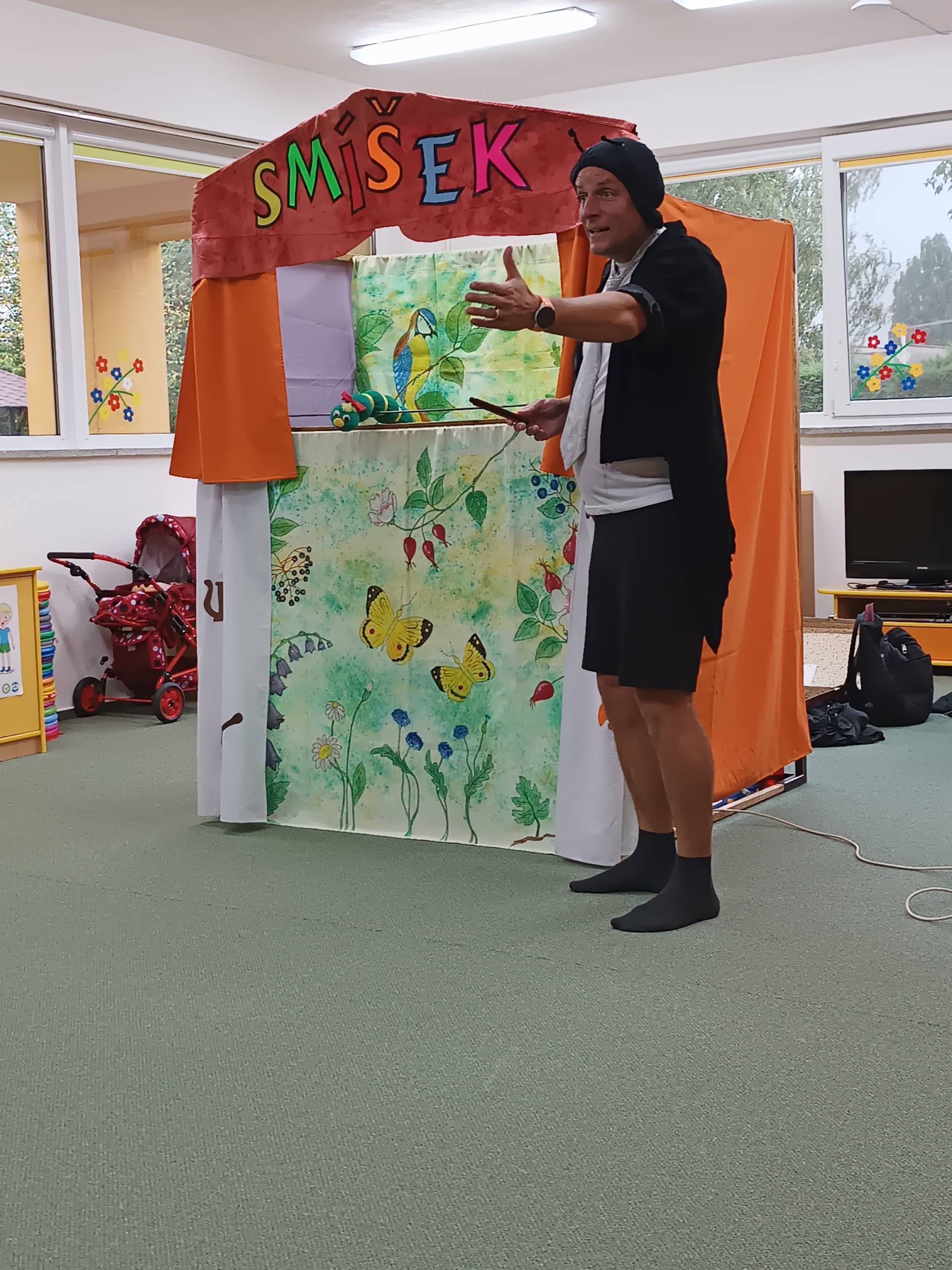 Čtvrteční dopoledne nám zpříjemnilo veselé divadelní představení s názvem "Malá luční pohádka". Děti byly vtaženy do děje a spolu s herci, zpívali, tleskali a odpovídali postavám v ději. Na pohádku k nám zavítali také kamarádi z MŠ Liptaň. Představení mělo velký úspěch a tak se buďme těšit na příště. Děkujeme a ahoj Smíšku!