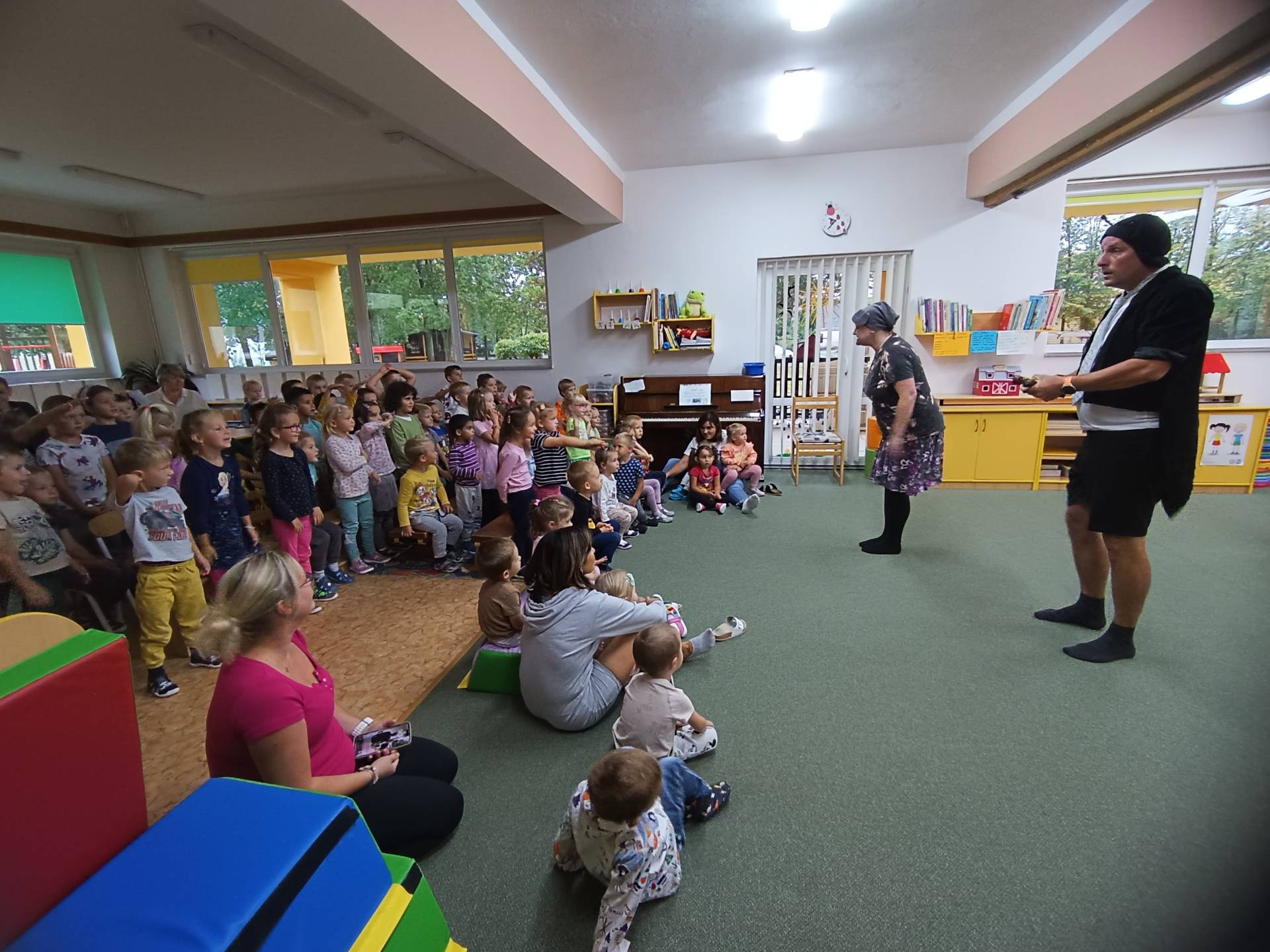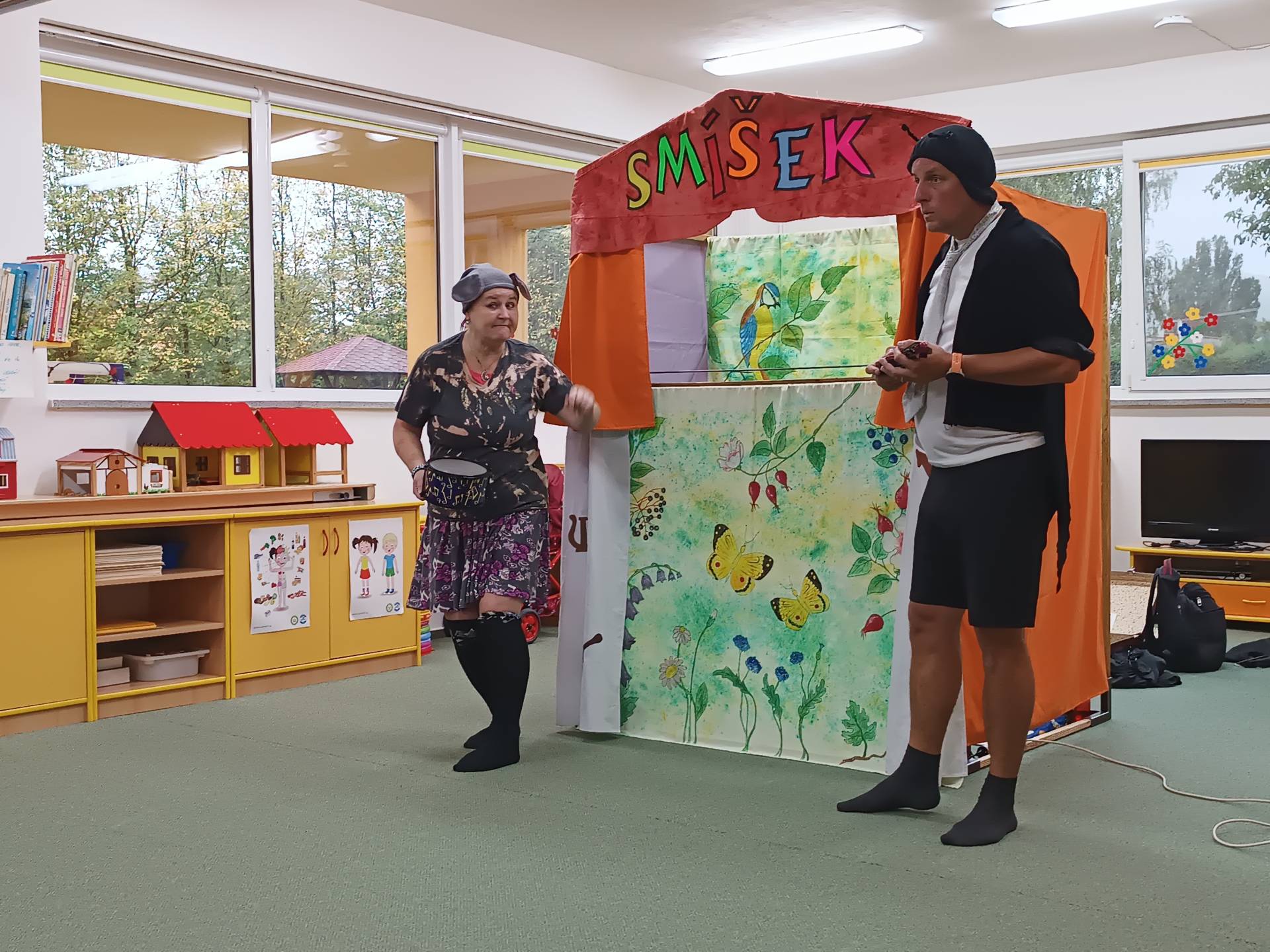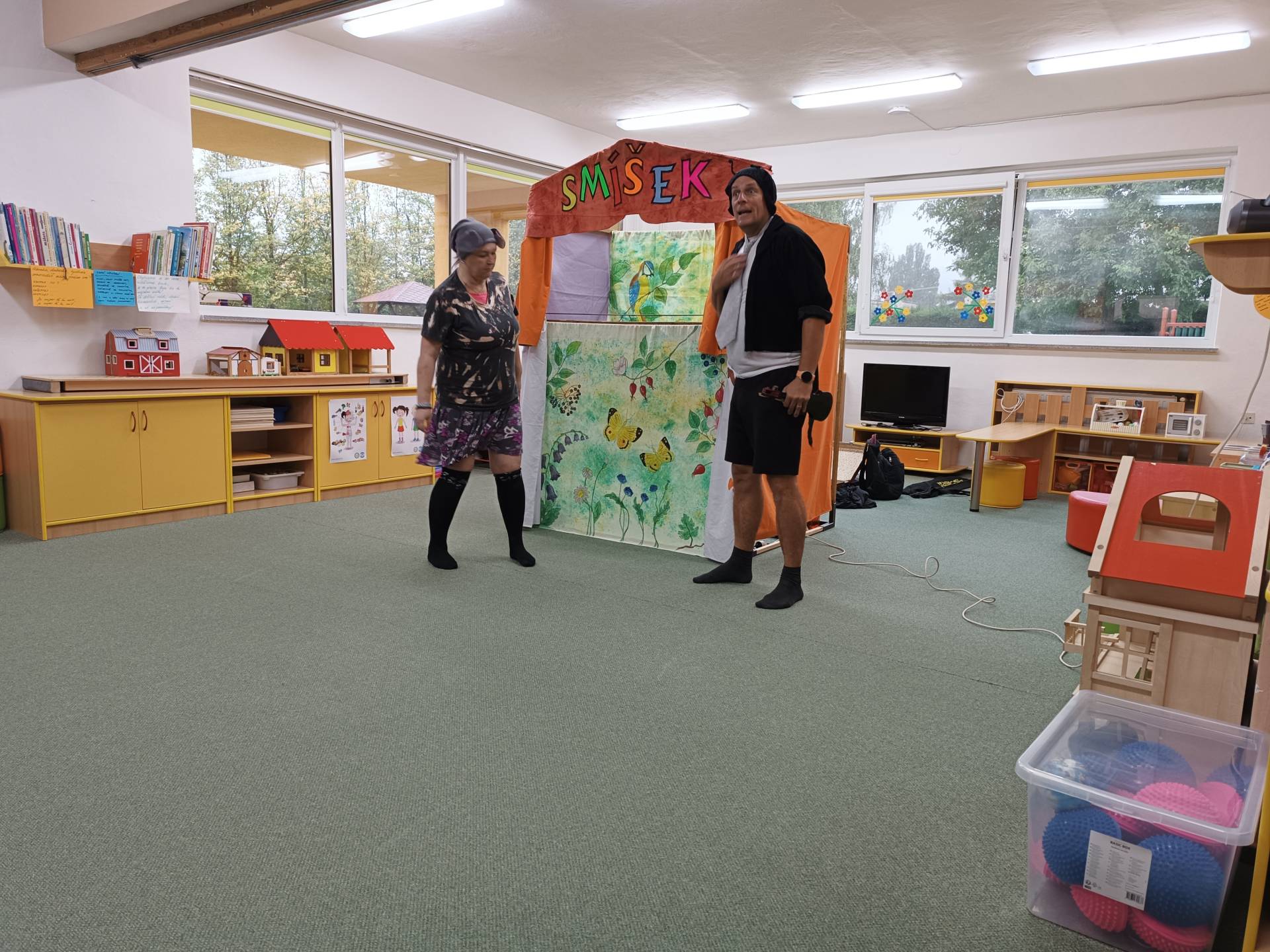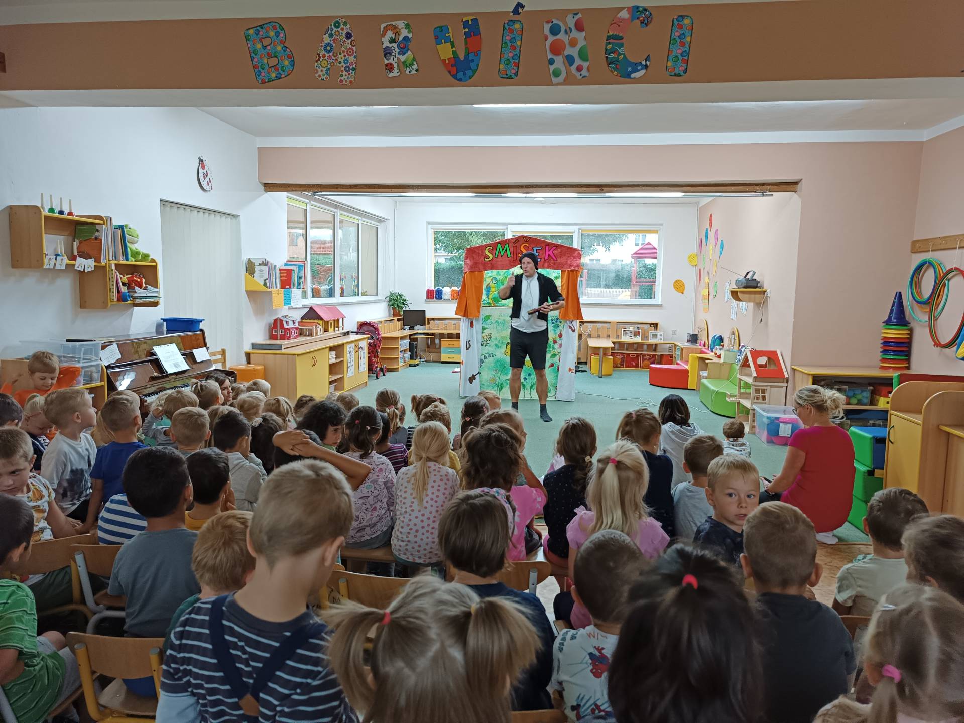 Čtvrteční dopoledne nám zpříjemnilo veselé divadelní představení s názvem "Malá luční pohádka". Děti byly vtaženy do děje a spolu s herci, zpívali, tleskali a odpovídali postavám v ději. Na pohádku k nám zavítali také kamarádi z MŠ Liptaň. Představení mělo velký úspěch a tak se buďme těšit na příště. Děkujeme a ahoj Smíšku!