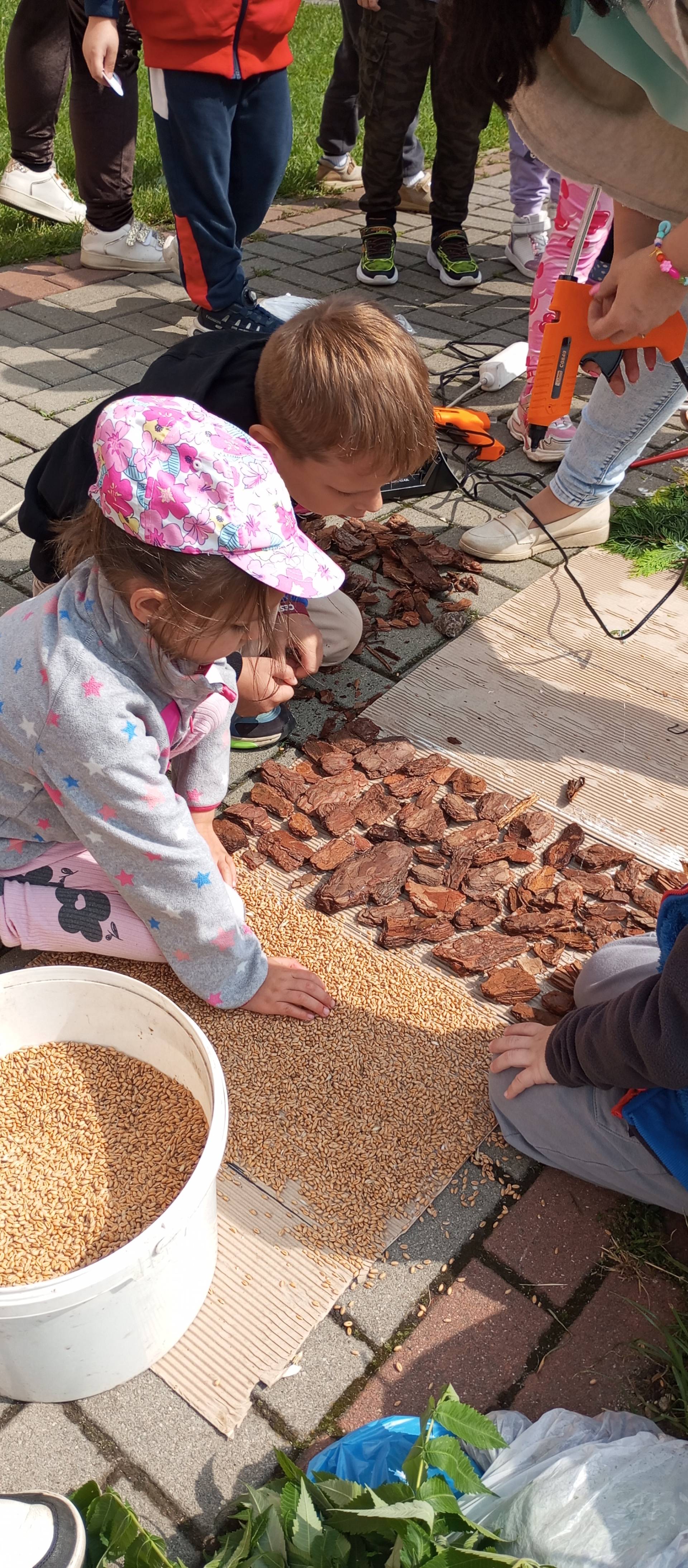Děti si vyzkoušely kresbu uhlem a svíčkou, rozfoukávalybarvy, vyrobily si kinetický písek, modelovaly z tvarovací hmoty,vytvářely senzorický chodníček k nejrůznějších přírodnin, malovaly nafolie natažené mezi stromy, vyráběly hmotu z potravin, vytvářely duhu nainteraktivním koberci, shlédly naučné programy související s přírodou aživotním prostředím.