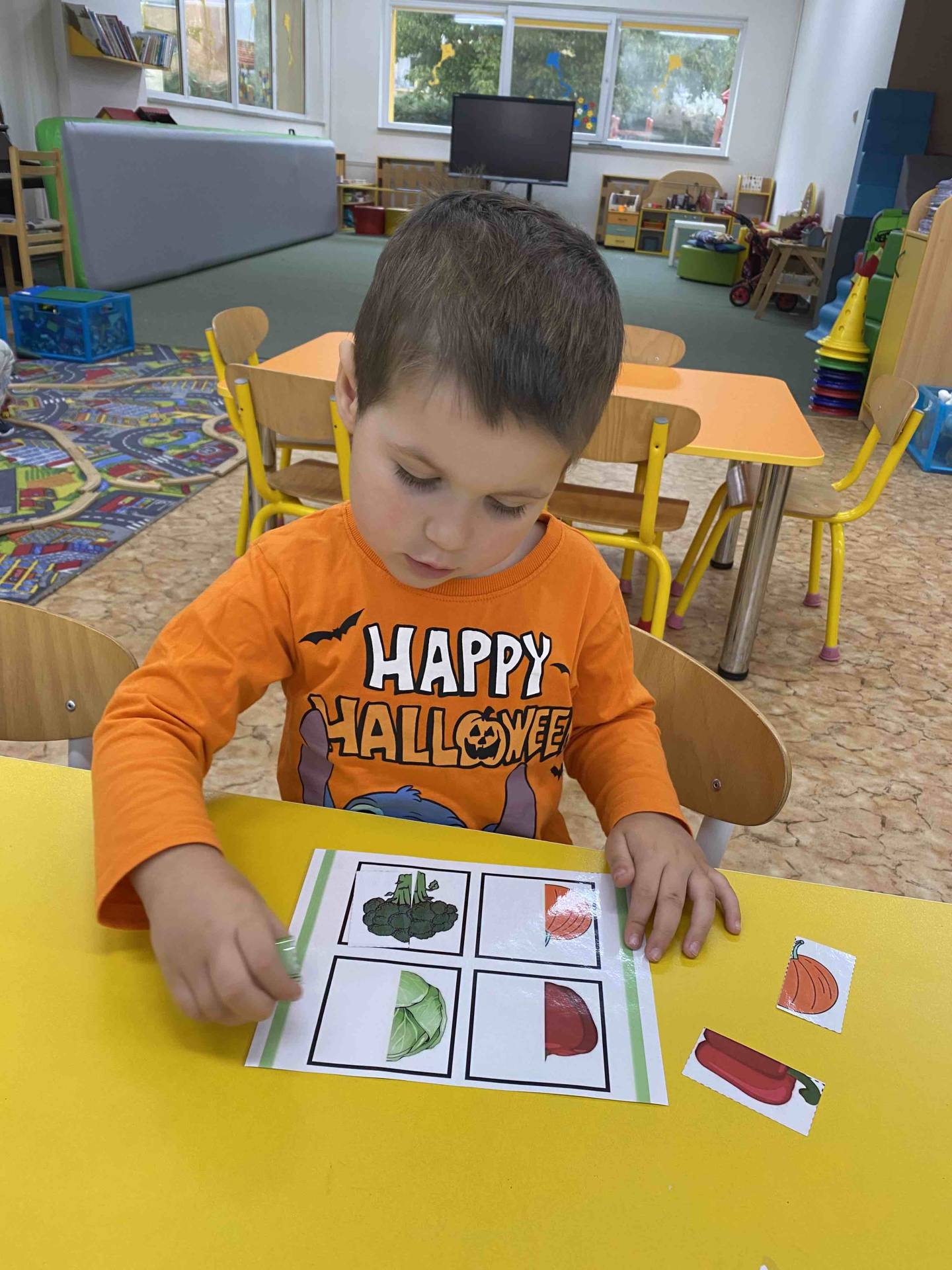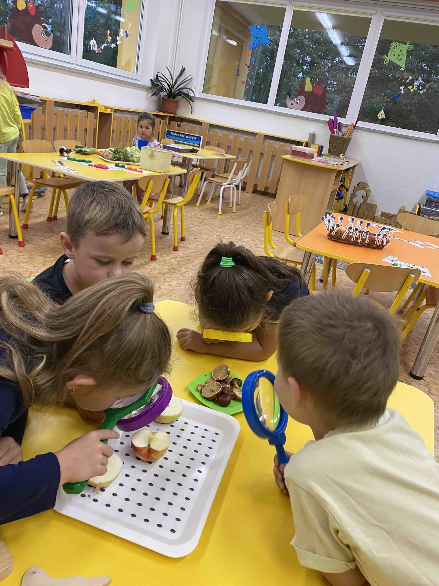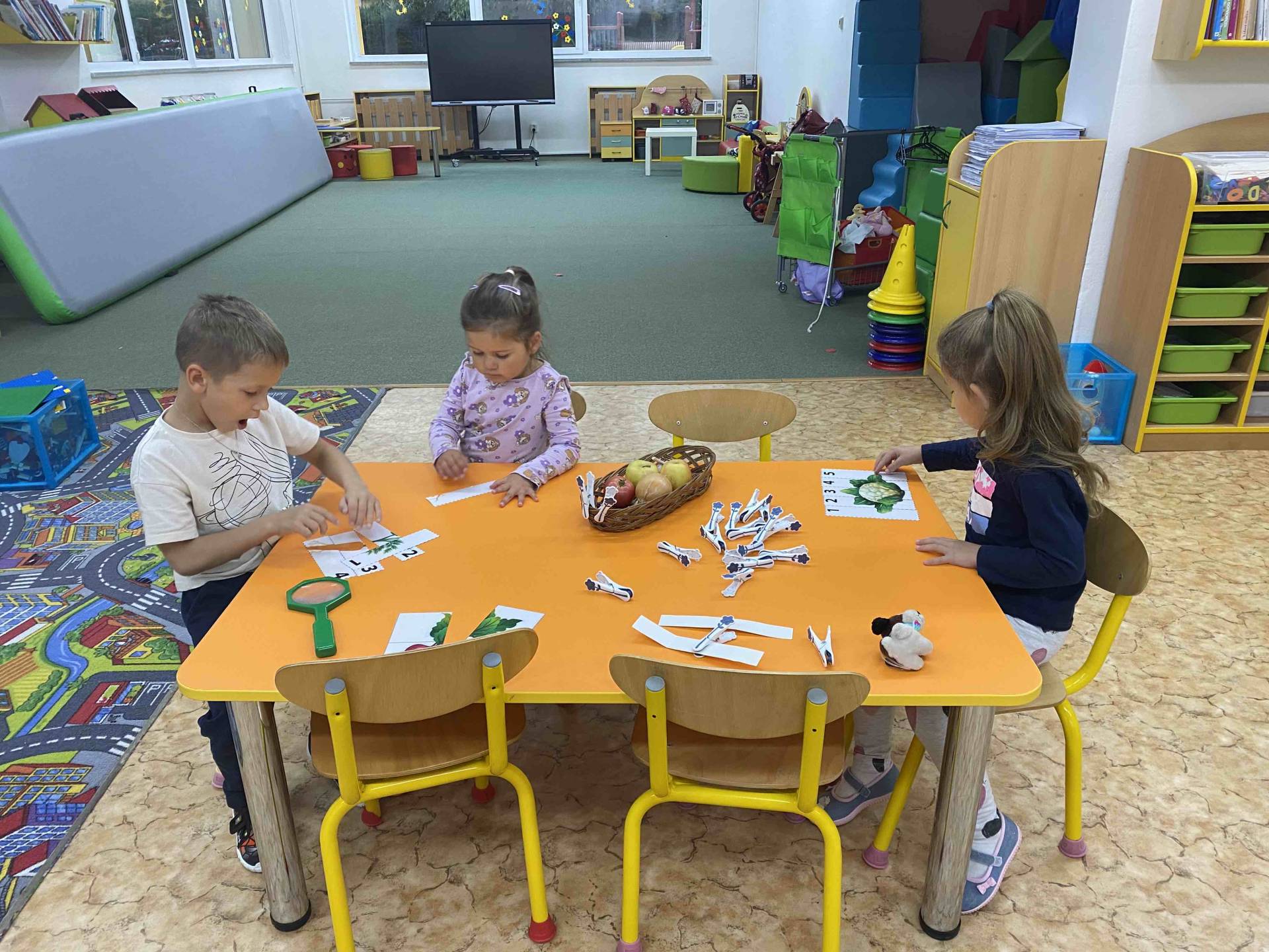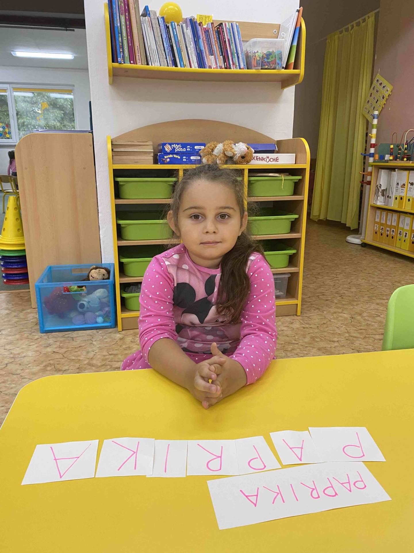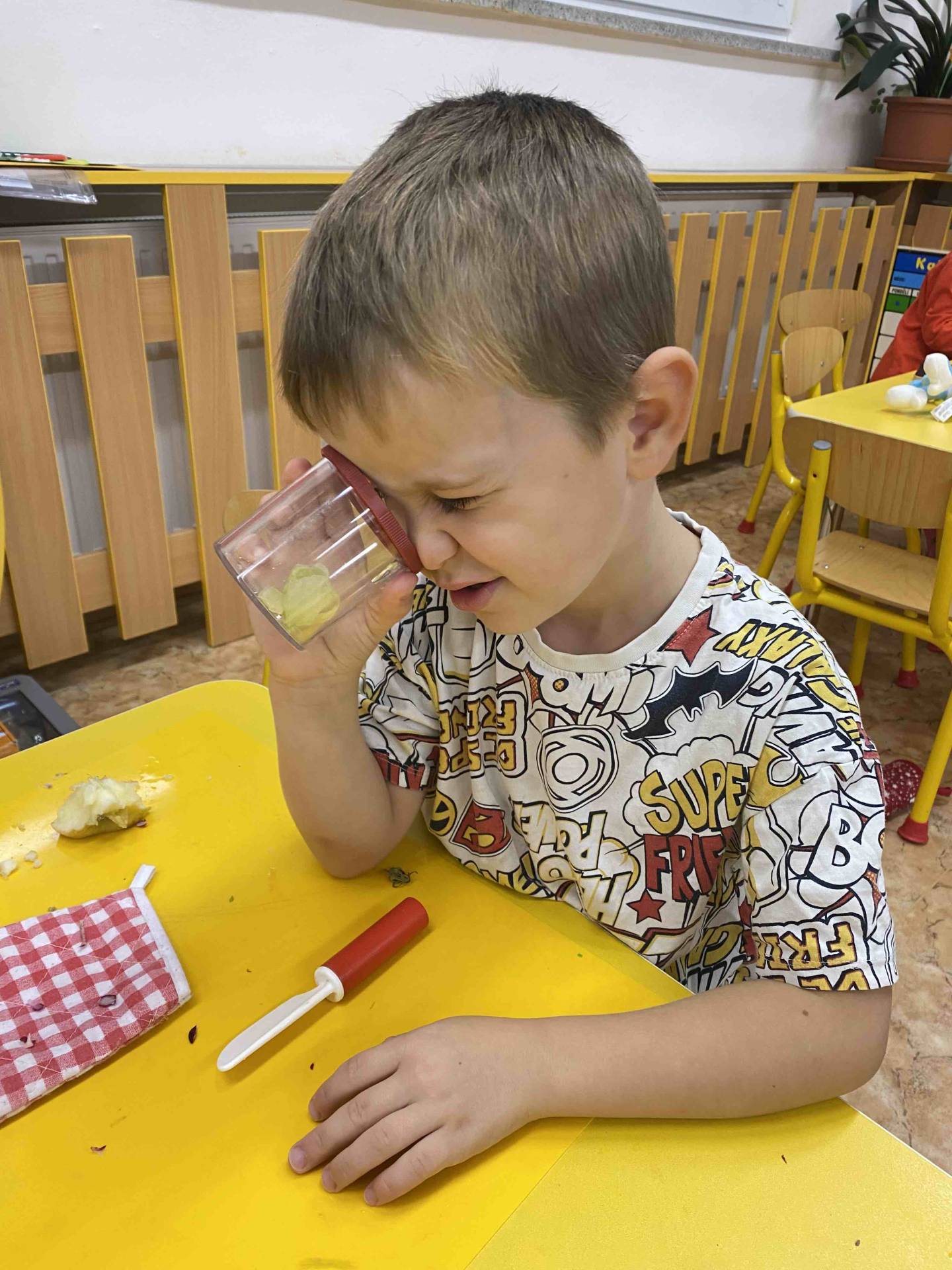 Svět zeleniny jsme s dětmi prozkoumávali opravdu všemismysly. Vytvořili jsme výstavku čerstvé a voňavé zeleniny, kde nechybělynejrůznější druhy – salát, pórek, cibule, česnek, kedluben, celer, ředkvičky,rajčátka, papriky…Povídali jsme si o místě a způsobu pěstování zeleniny, dětipojmenovávaly její druhy, zkoumaly její barvu, tvar a strukturu pomocí lupy. Objevilyspoustu detailů, které pouhým okem snadno přehlédneme … Pomocí metru a kuchyňské váhy zeleninu měřilya vážily, porovnávaly velikost – nejkratší x nejdelší a samozřejmě i hmotnost –nejprve pouze vlastním odhadem, pak přesným vážením na váze, takže si procvičilyi základní matematické dovednosti a jak jinak, než hravou formou. Každý den násdoprovázela veselá písnička „Šel zahradník do zahrady“, kterou si děti s chutízpívaly. Vyzkoušeli jsme si spoustu různých aktivit k tématu zelenina,procvičovali jemnou motoriku, zrakové vnímání, matematické dovednosti, logickémyšlení, barvičky, paměť i kreativitu a fantazii při výrobě zeleninového záhonku. Na závěr týdne jsme sispolečně připravili zeleninový salát z ledového salátu, rajčat a ředkviček.Děti si samy zeleninu nakrájely na malé kousky, následovala veselá ochutnávkase zavázanýma očima – děti se snažily podle vůně, chuti i hmatu poznat, jakouzeleninu právě ochutnávají. Nakonec jsem vše smíchali dohromady a vznikl krásněbarevný a svěží salát, na kterém si děti s radostí pochutnaly. Celýprojekt byl plný zábavy, objevování a radosti z vlastnoruční práce.