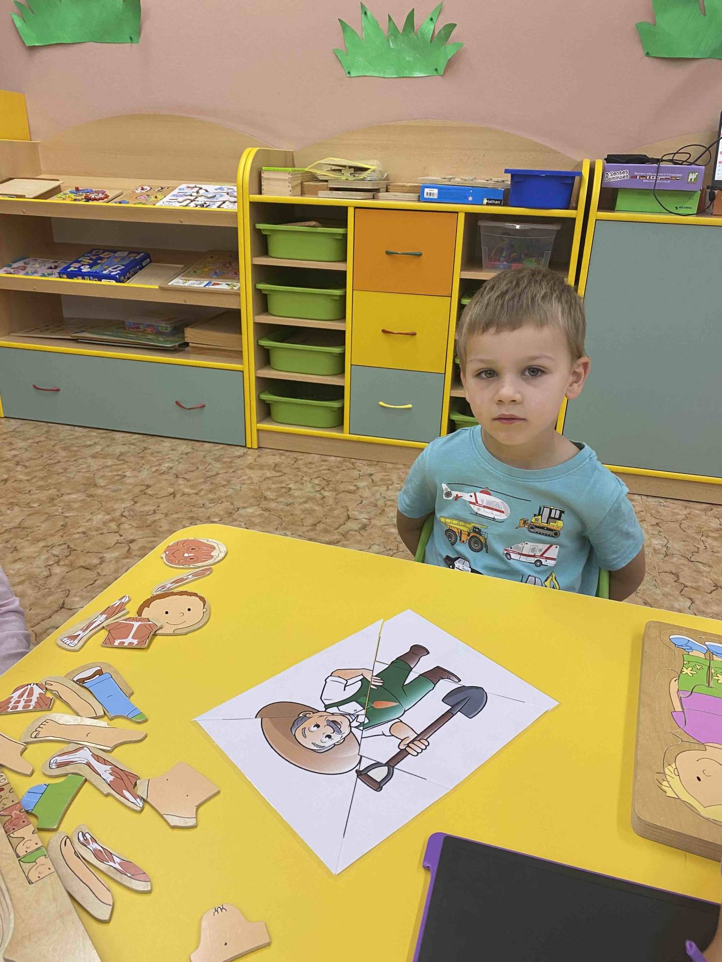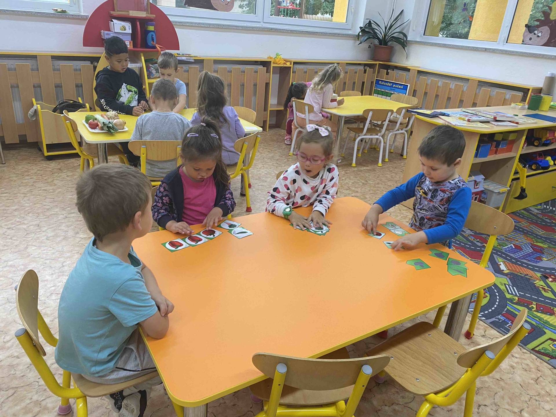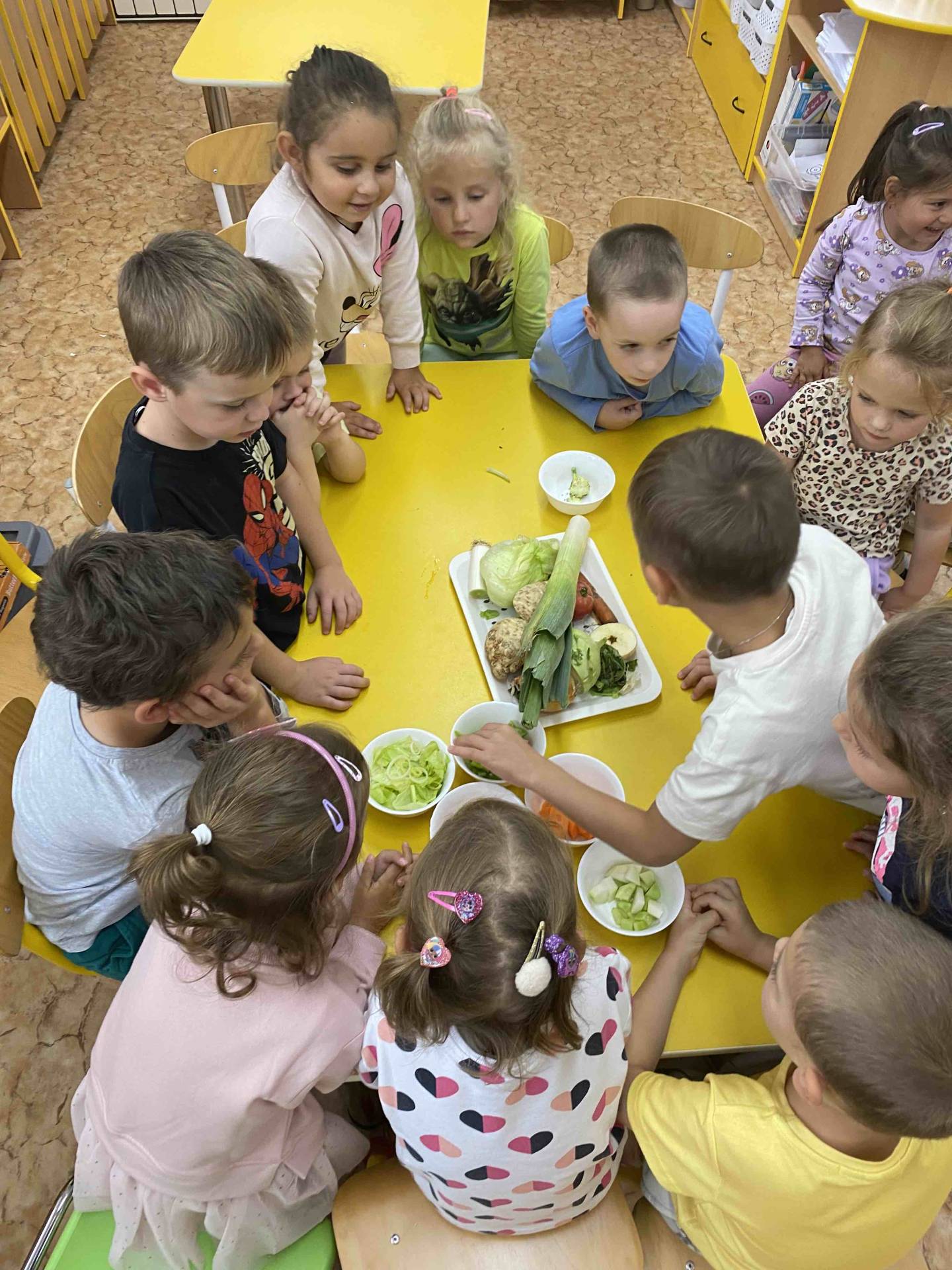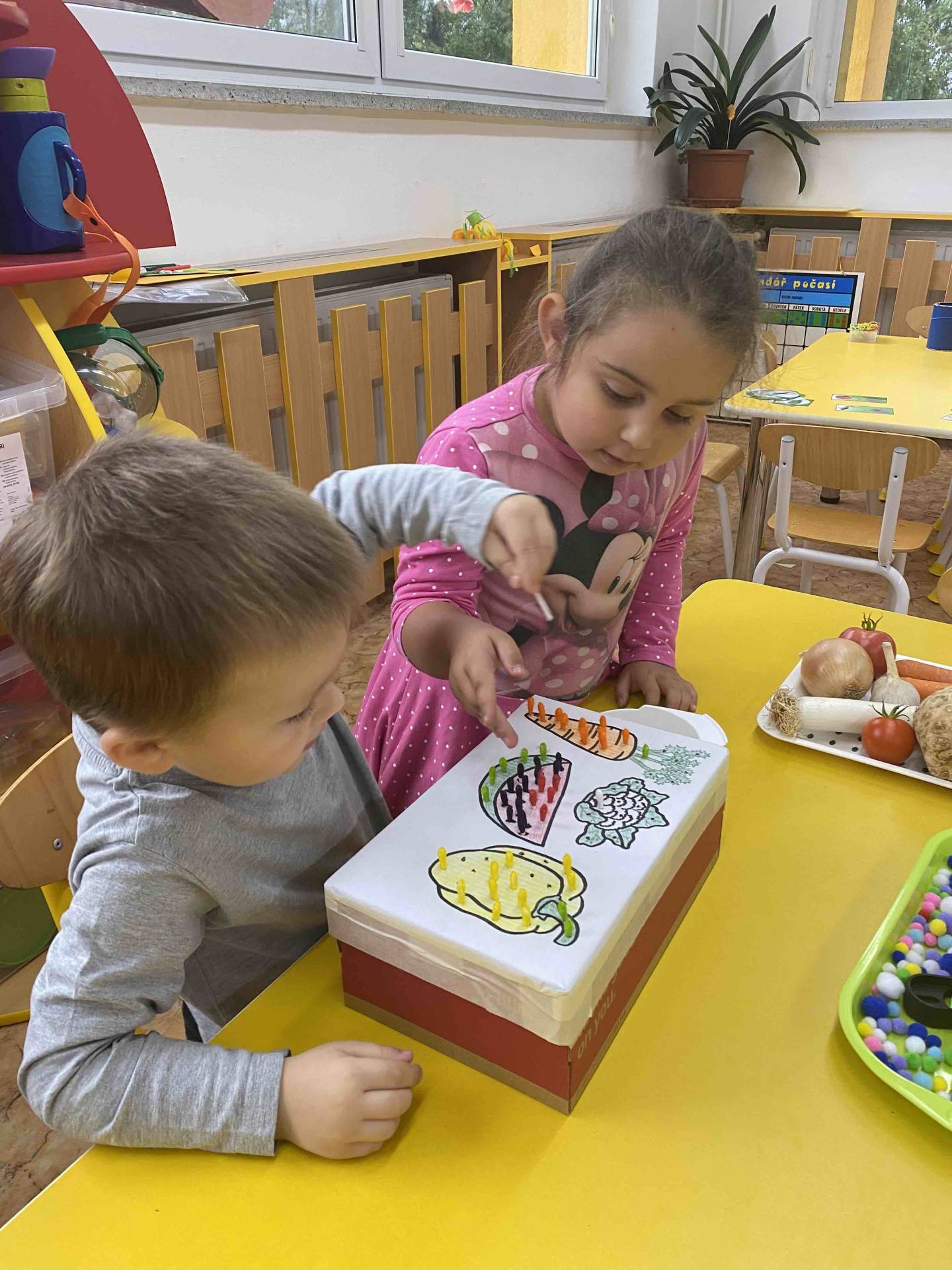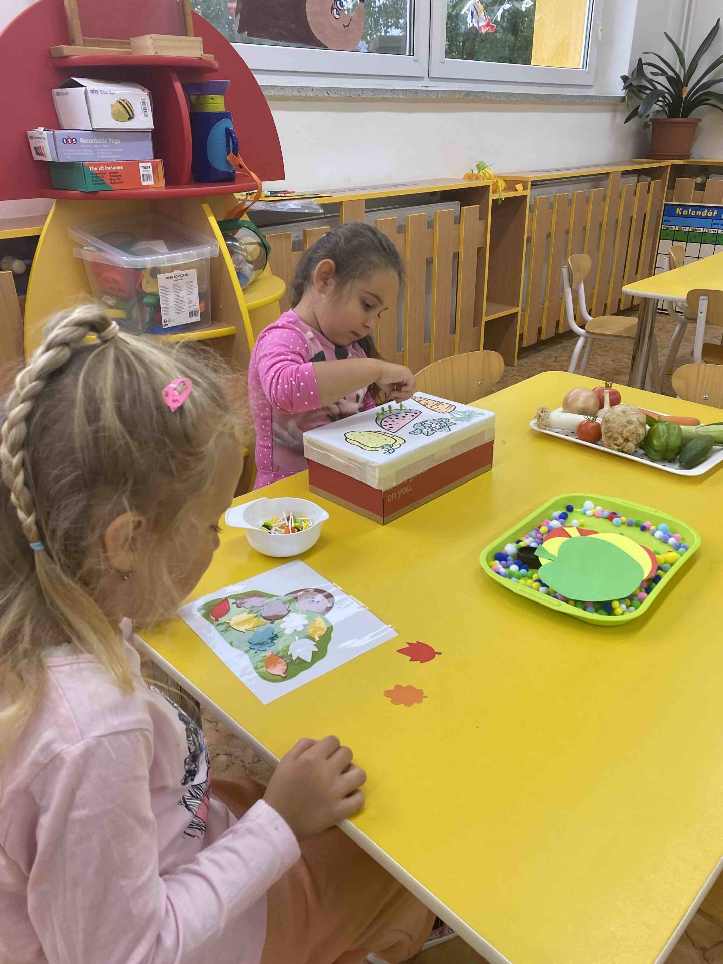 Svět zeleniny jsme s dětmi prozkoumávali opravdu všemismysly. Vytvořili jsme výstavku čerstvé a voňavé zeleniny, kde nechybělynejrůznější druhy – salát, pórek, cibule, česnek, kedluben, celer, ředkvičky,rajčátka, papriky…Povídali jsme si o místě a způsobu pěstování zeleniny, dětipojmenovávaly její druhy, zkoumaly její barvu, tvar a strukturu pomocí lupy. Objevilyspoustu detailů, které pouhým okem snadno přehlédneme … Pomocí metru a kuchyňské váhy zeleninu měřilya vážily, porovnávaly velikost – nejkratší x nejdelší a samozřejmě i hmotnost –nejprve pouze vlastním odhadem, pak přesným vážením na váze, takže si procvičilyi základní matematické dovednosti a jak jinak, než hravou formou. Každý den násdoprovázela veselá písnička „Šel zahradník do zahrady“, kterou si děti s chutízpívaly. Vyzkoušeli jsme si spoustu různých aktivit k tématu zelenina,procvičovali jemnou motoriku, zrakové vnímání, matematické dovednosti, logickémyšlení, barvičky, paměť i kreativitu a fantazii při výrobě zeleninového záhonku. Na závěr týdne jsme sispolečně připravili zeleninový salát z ledového salátu, rajčat a ředkviček.Děti si samy zeleninu nakrájely na malé kousky, následovala veselá ochutnávkase zavázanýma očima – děti se snažily podle vůně, chuti i hmatu poznat, jakouzeleninu právě ochutnávají. Nakonec jsem vše smíchali dohromady a vznikl krásněbarevný a svěží salát, na kterém si děti s radostí pochutnaly. Celýprojekt byl plný zábavy, objevování a radosti z vlastnoruční práce.