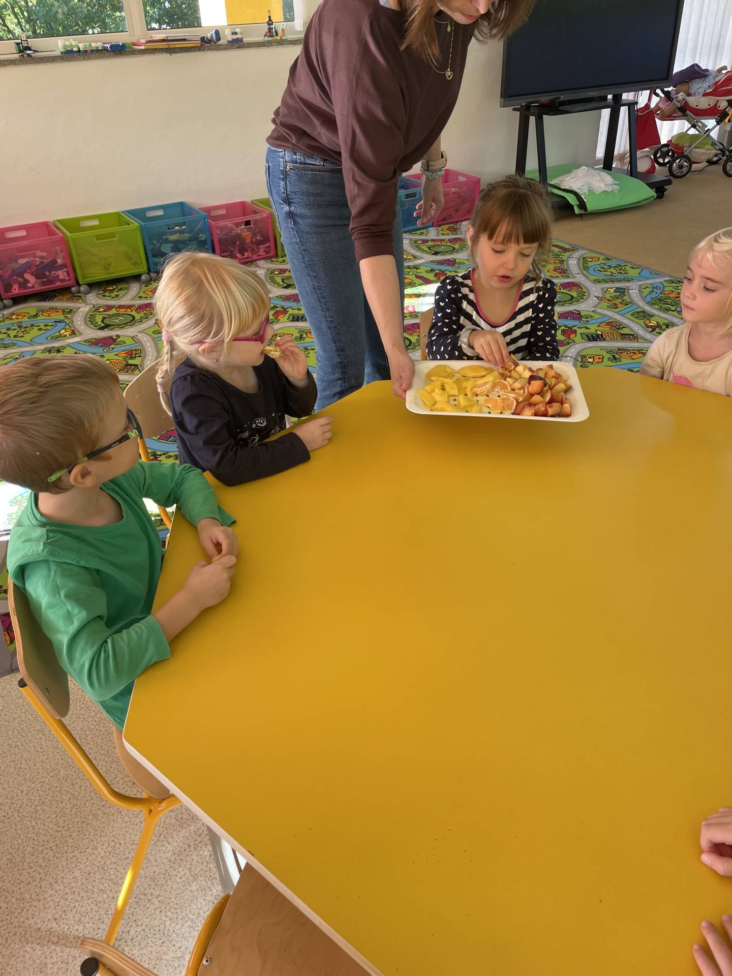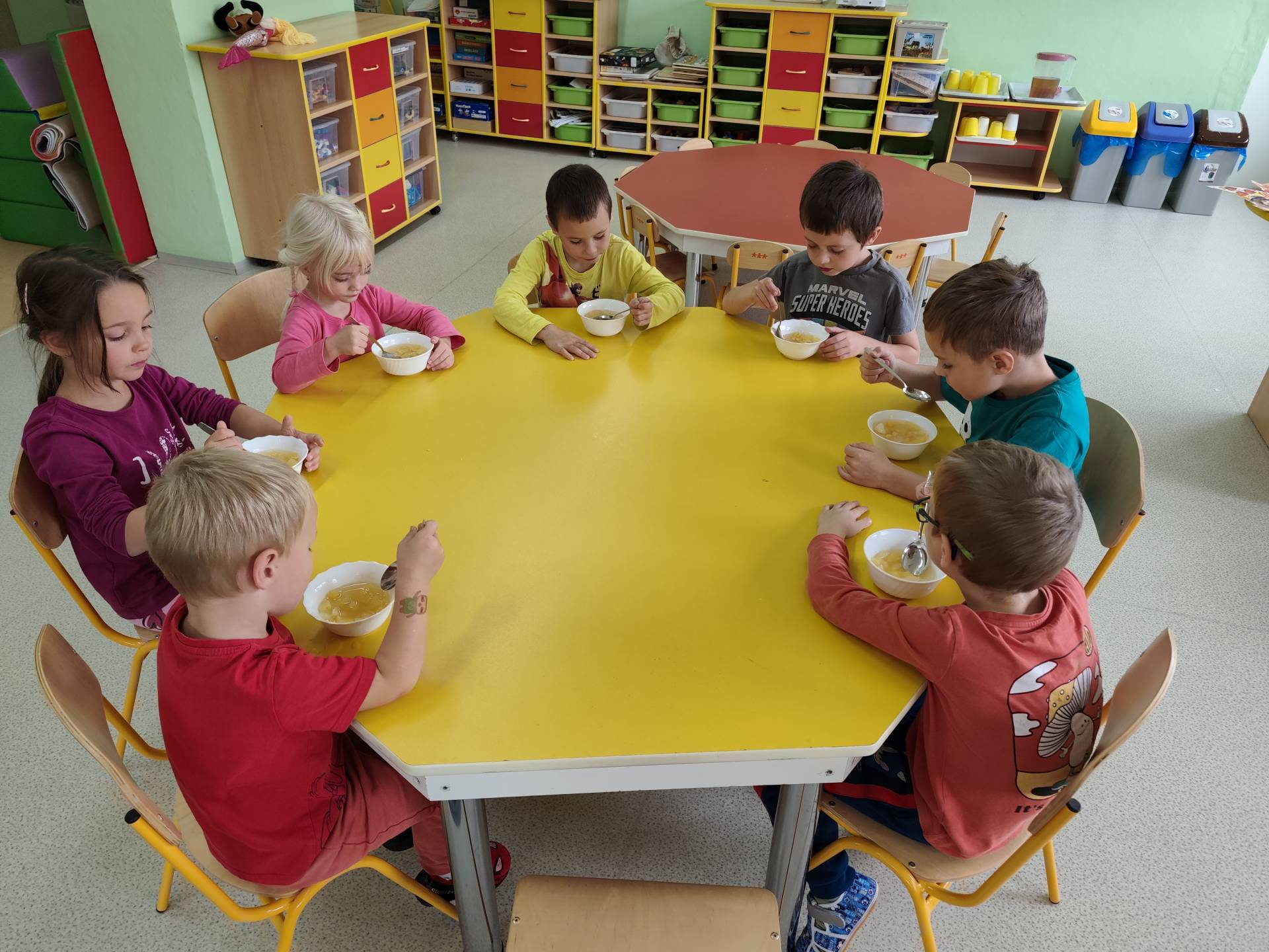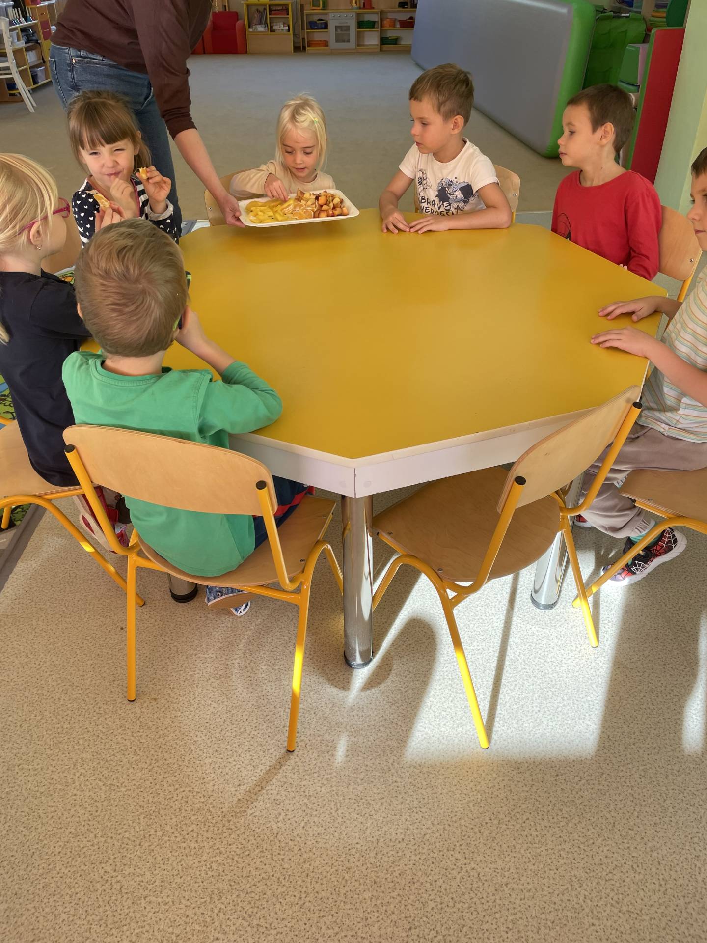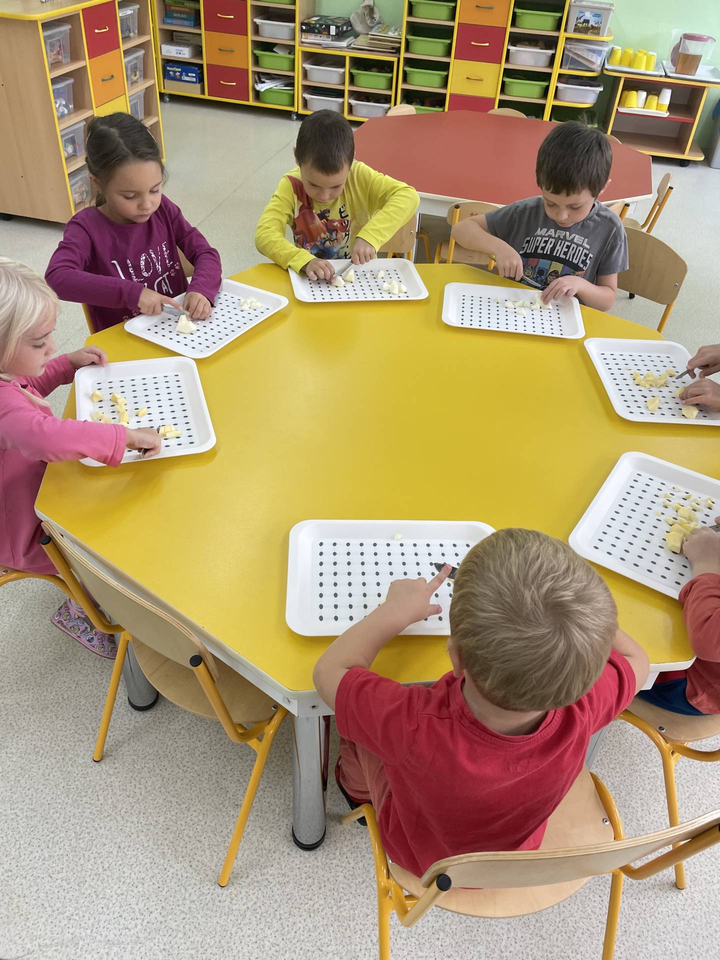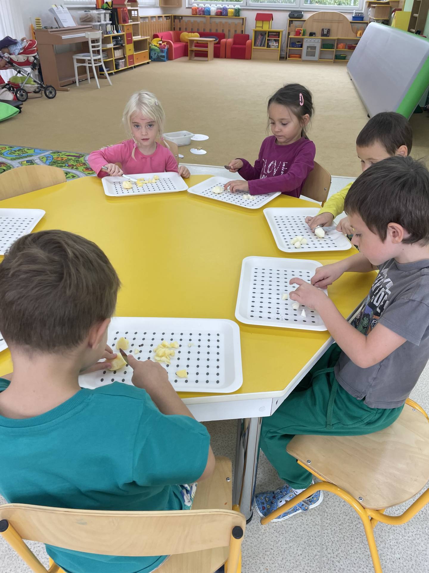 Celý týden si s dětmi povídáme o ovoci a jeho důležitém významu pro naše tělo. Děti se zapojily a do školky nosily ovoce ze zahrádek. Společně jsme si uvařili jablečný kompot, který provoněl celou třídu a moc nám všem chutnal. Následovala ochutnávka ovoce a děti tentokrát zapojily všechny smysly, aby ovoce poznaly. A samozřejmě nechyběly další aktivity a činnosti spjaty s tématem.