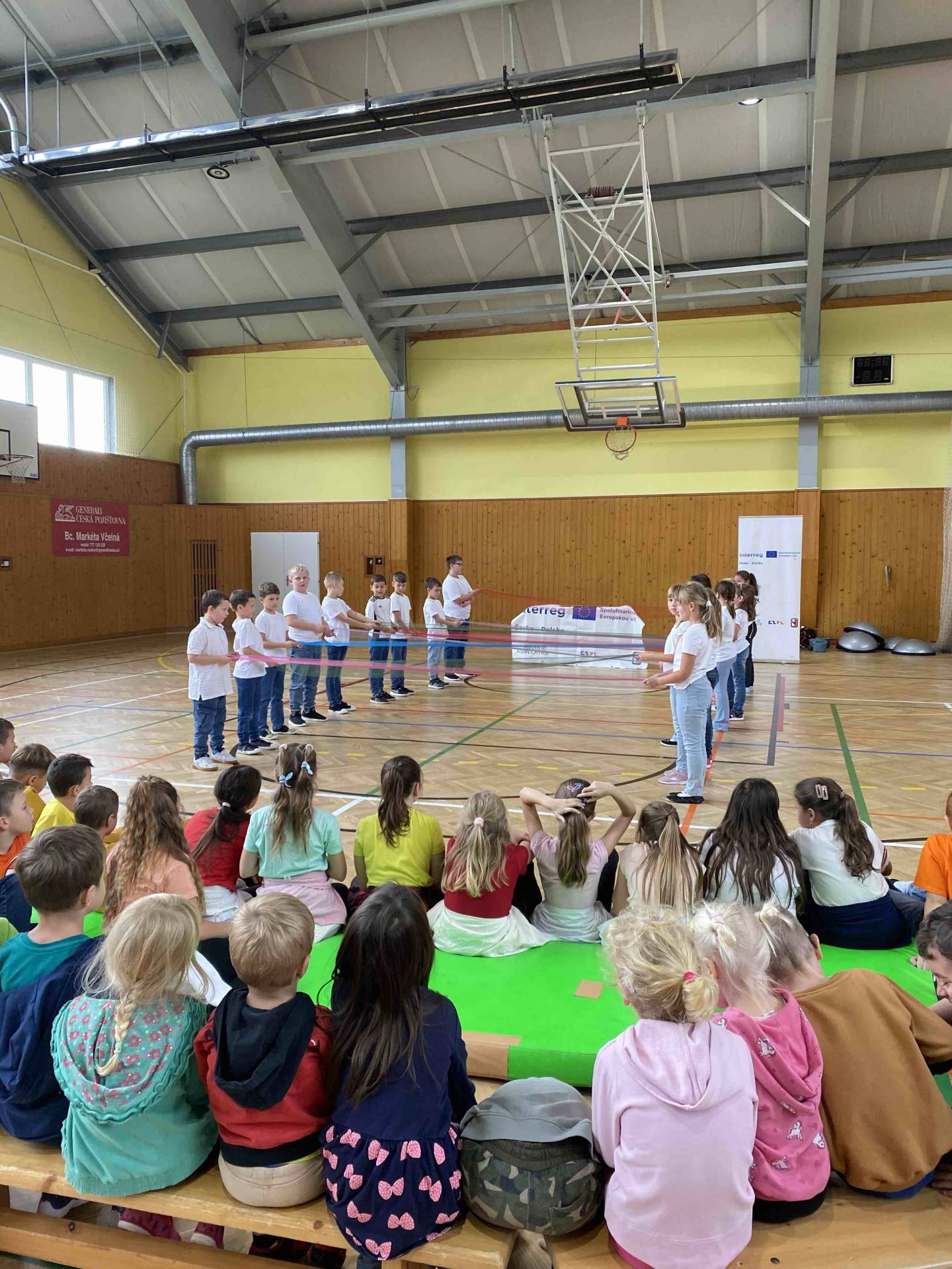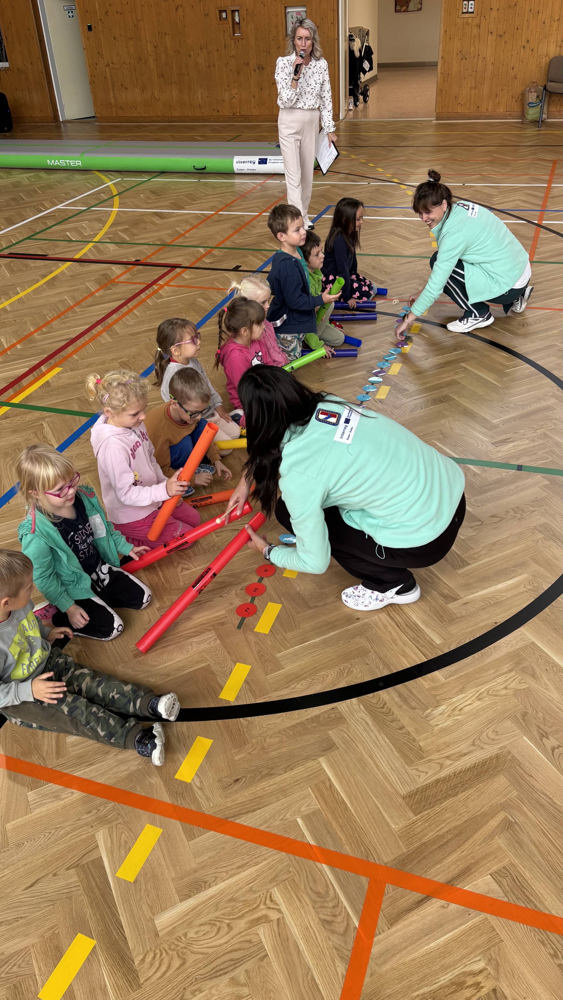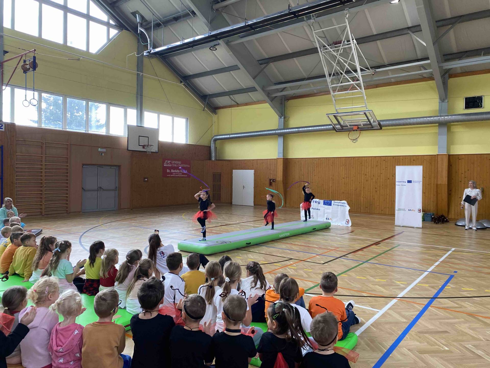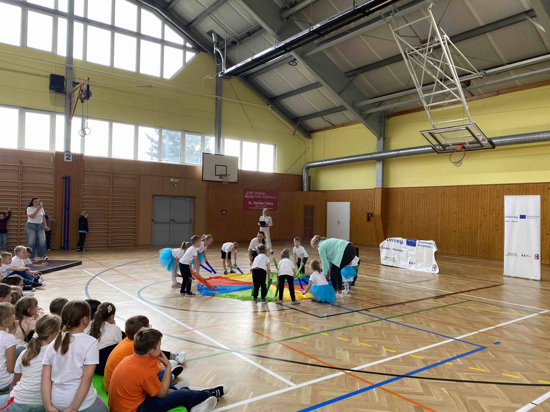 S radostí jsme přivítali 50 dětí a 8 pedagogů z polského Lacznika. Účastníci se společně setkali v tělocvičně základní školy, kde si navzájem představili originální vystoupení. Cílem projektu je podpora spolupráce mezi dětmi z mateřské školy a žáky z Lacznika v oblasti hudebních, dramatických, sportovních a tanečních aktivit.
