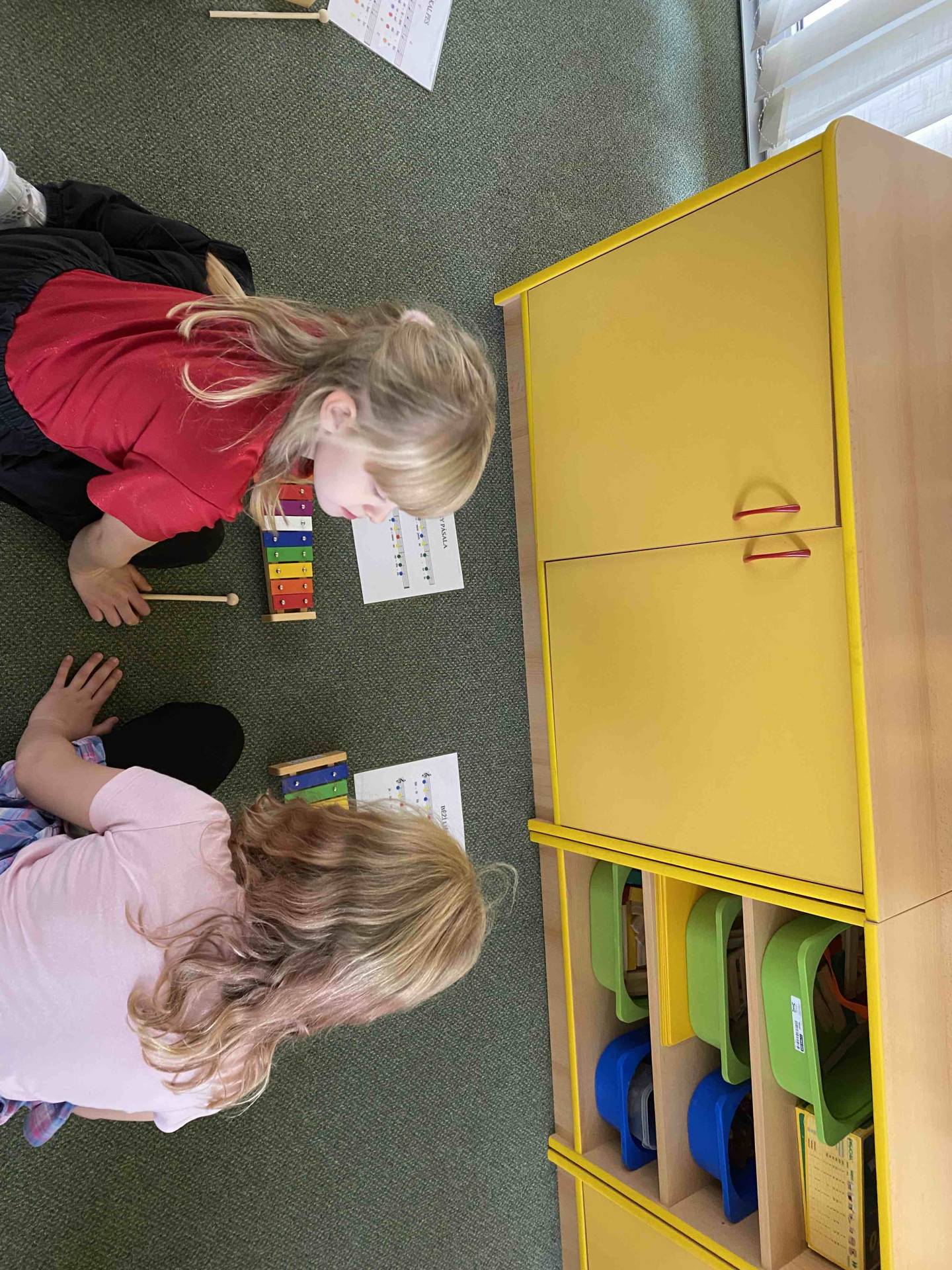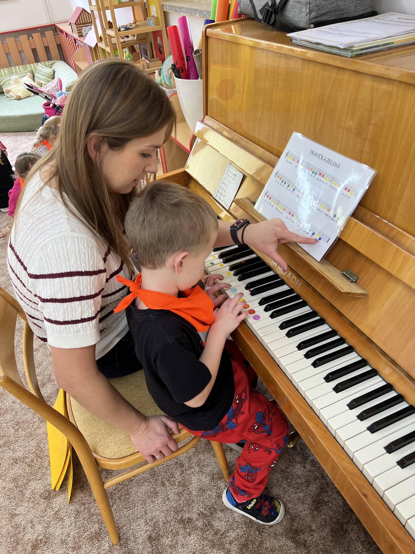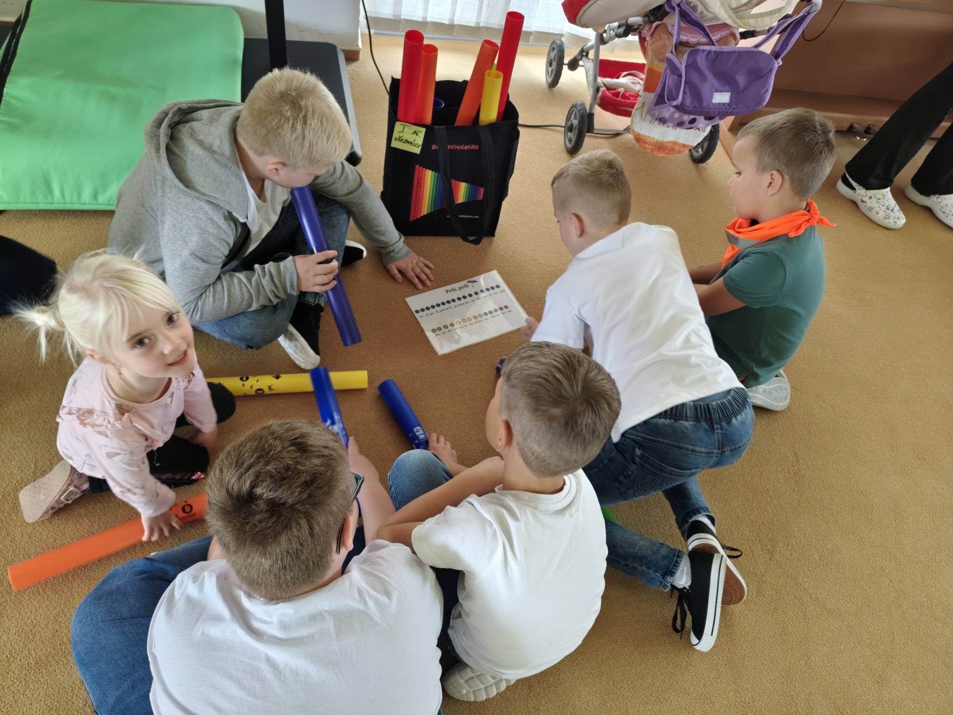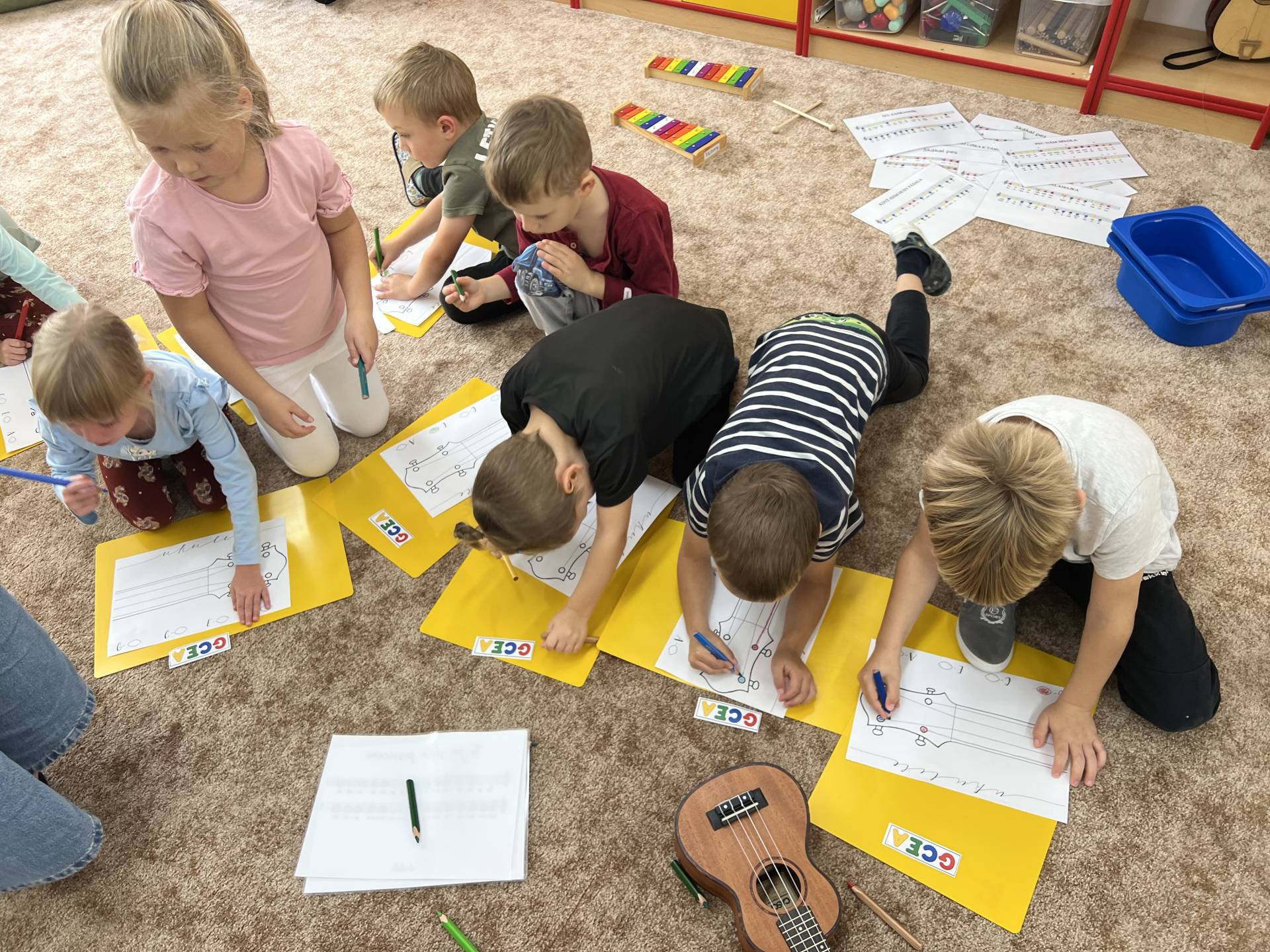 Následně proběhly hudební workshopy, během nichž měly děti možnost seznámit se s hrou na boomwhackers, xylofony, barevné zvonky a ukulele.