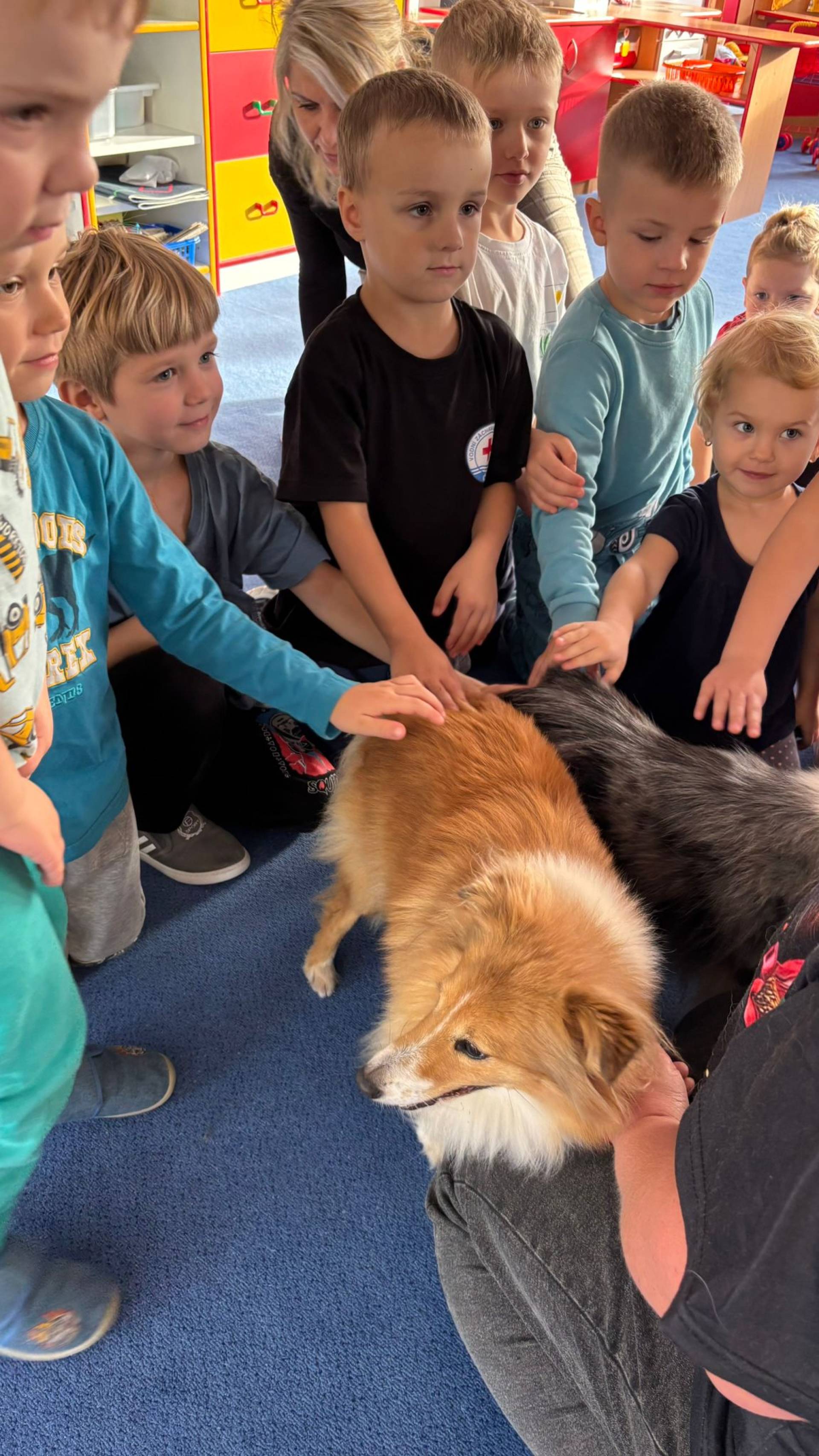 Ve středu 22. října nás navštívila p. Hornová z liptaňského útulku se svými psími kamarády- Harley a Ginger. Společné se svými pejsky nám v rámci canisterapie představila svůj program s názvem " Nehlaď toho psa!", který je zaměřený na osvětu v oblasti bezpečného kontaktu se psy.