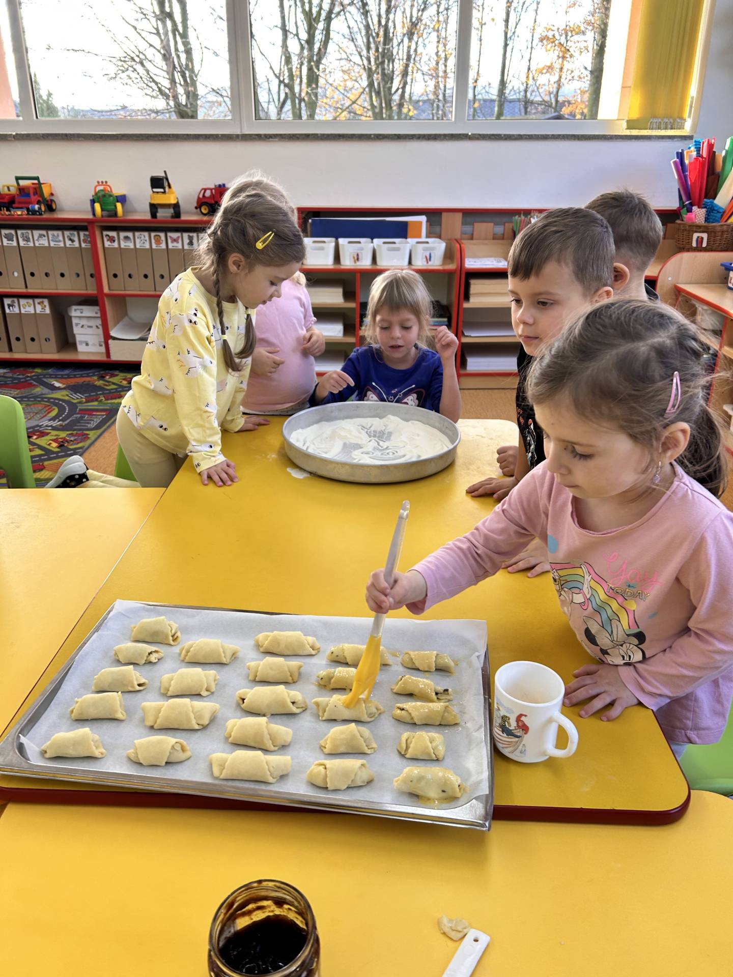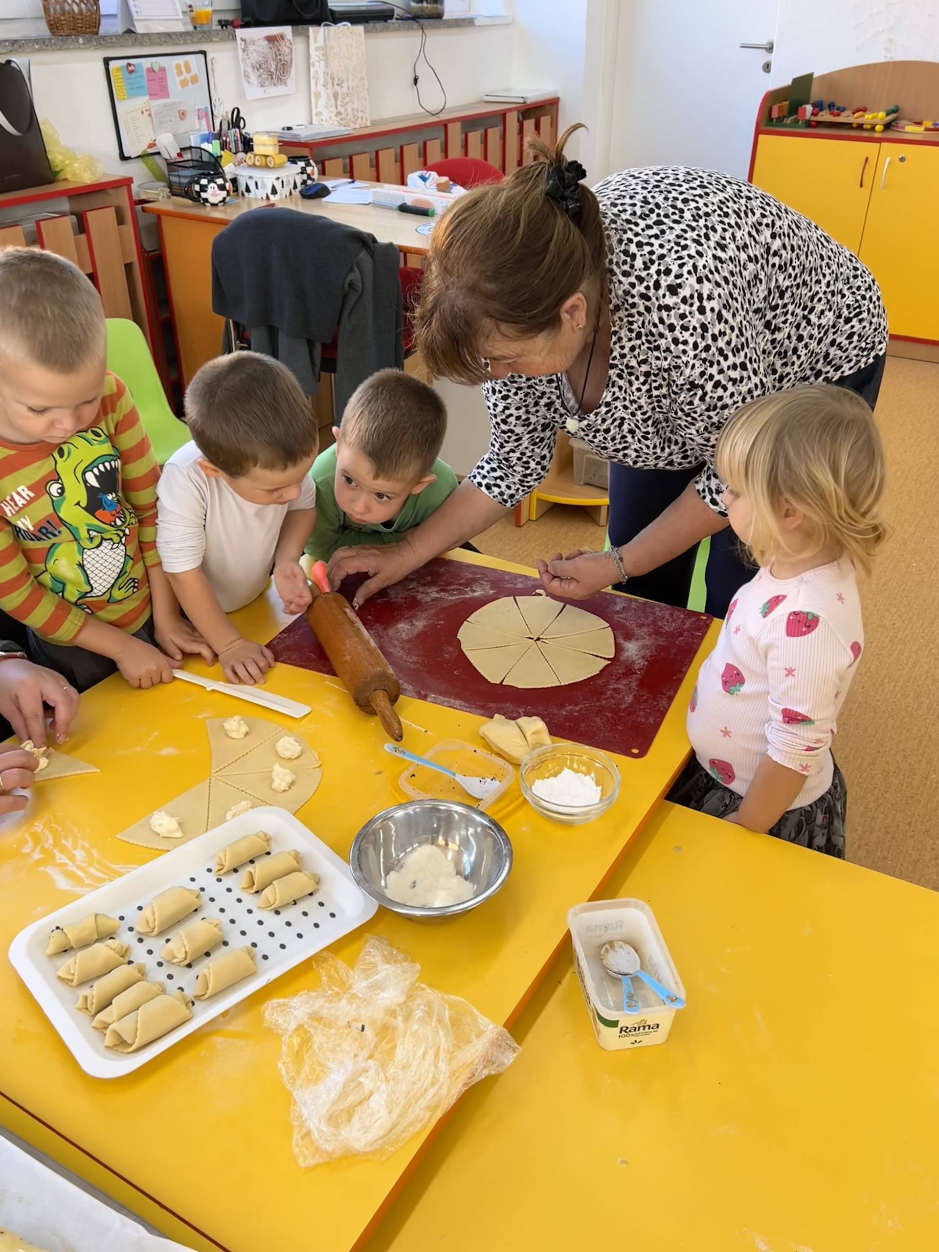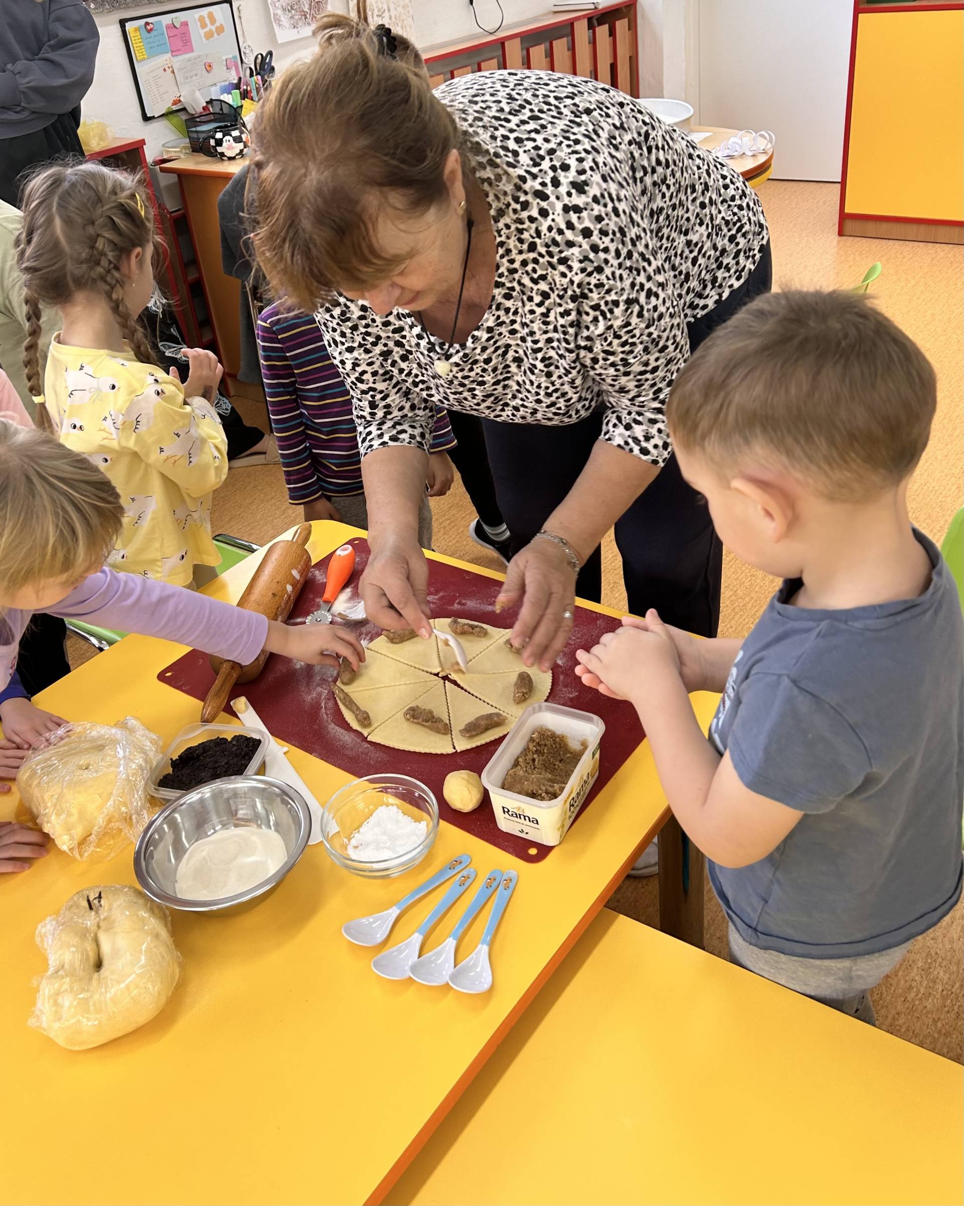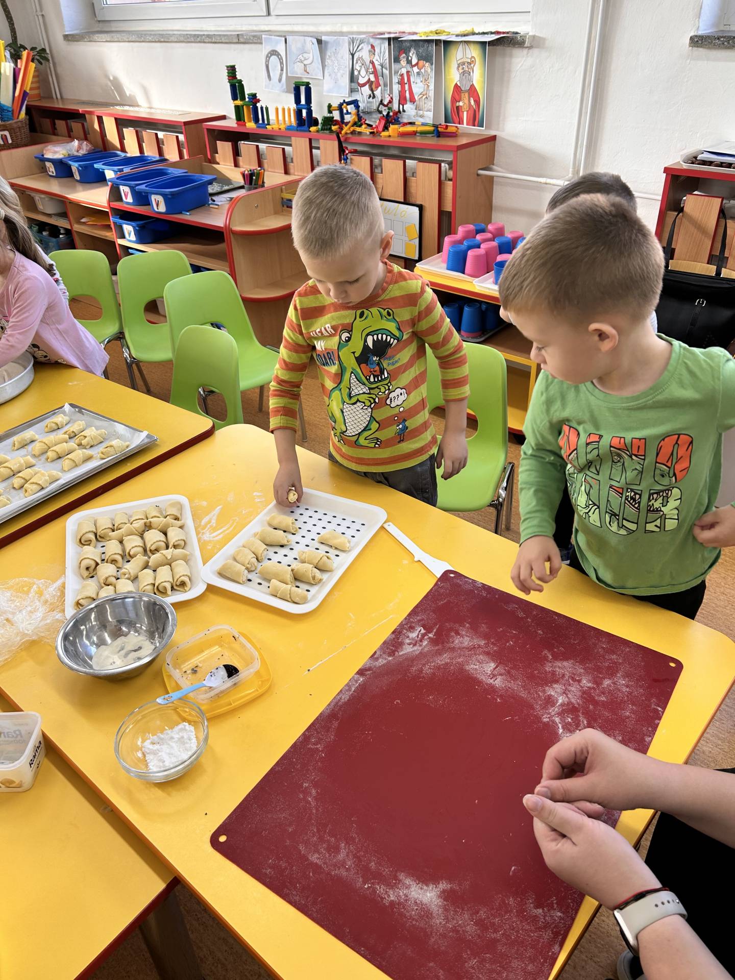 S dětmi si povídala, válela těsto, plnila a tvarovala rohlíčky a ony s nadšením spolupracovaly. Při pečení jsme si užili hezké společné chvíle, a ta vůně čerstvě upečených rohlíčků co se linula po školce…mňam.