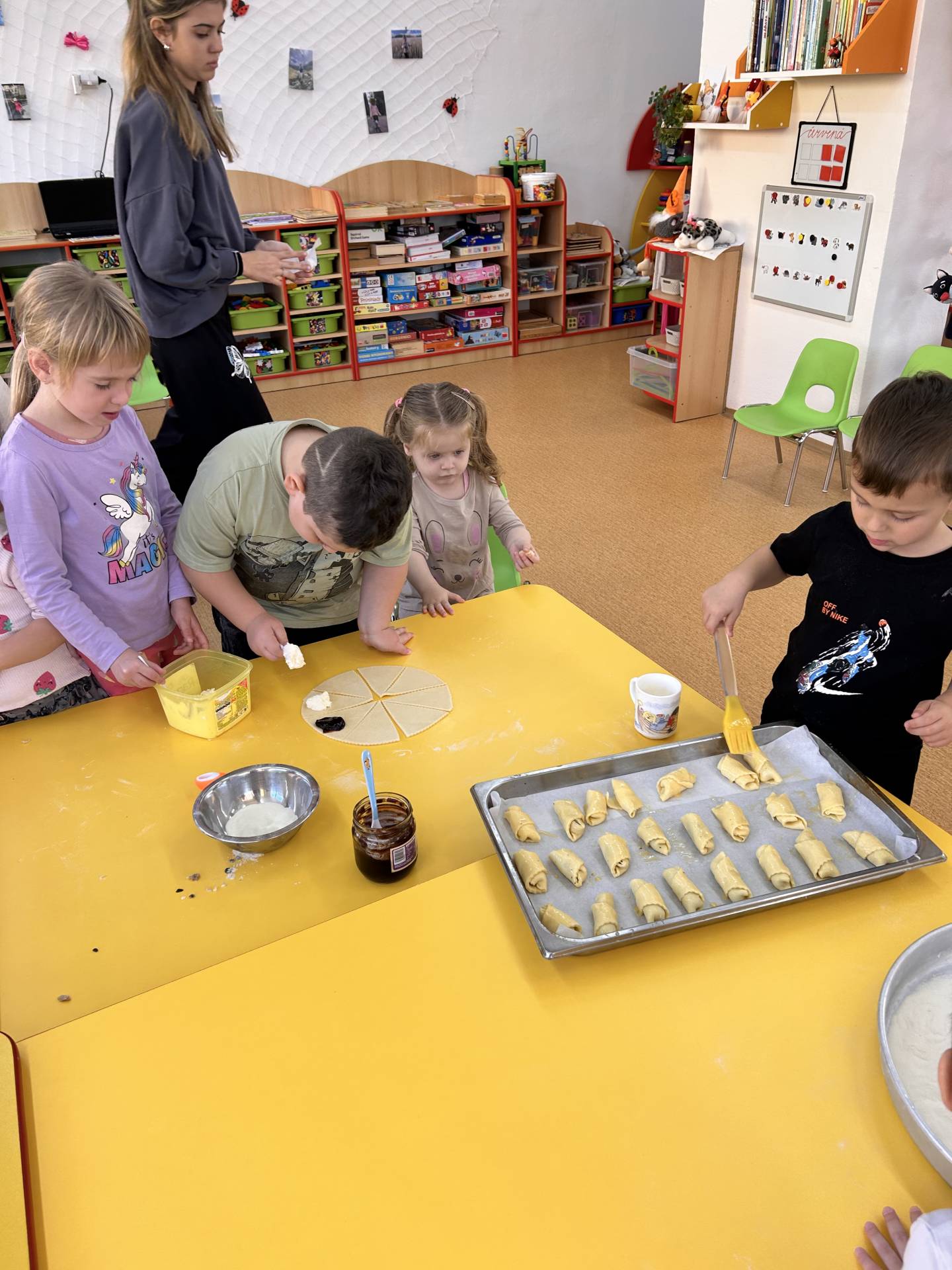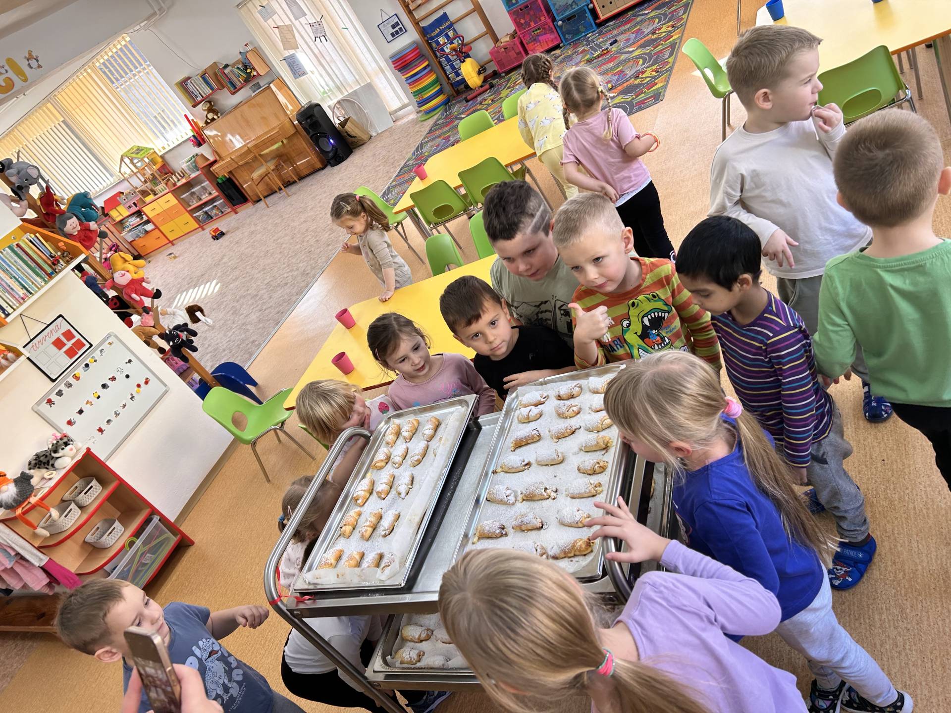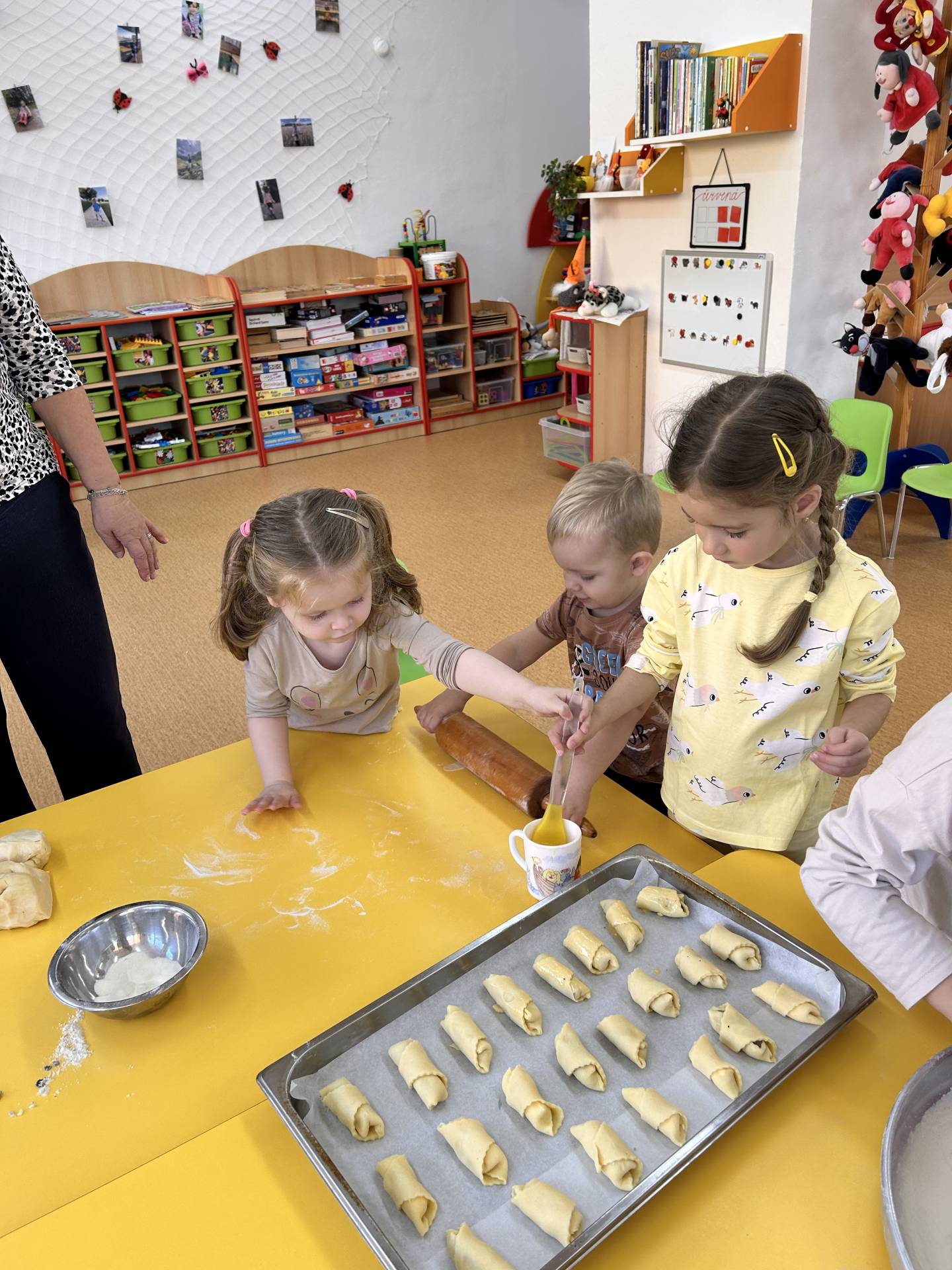 S dětmi si povídala, válela těsto, plnila a tvarovala rohlíčky a ony s nadšením spolupracovaly. Při pečení jsme si užili hezké společné chvíle, a ta vůně čerstvě upečených rohlíčků co se linula po školce…mňam.