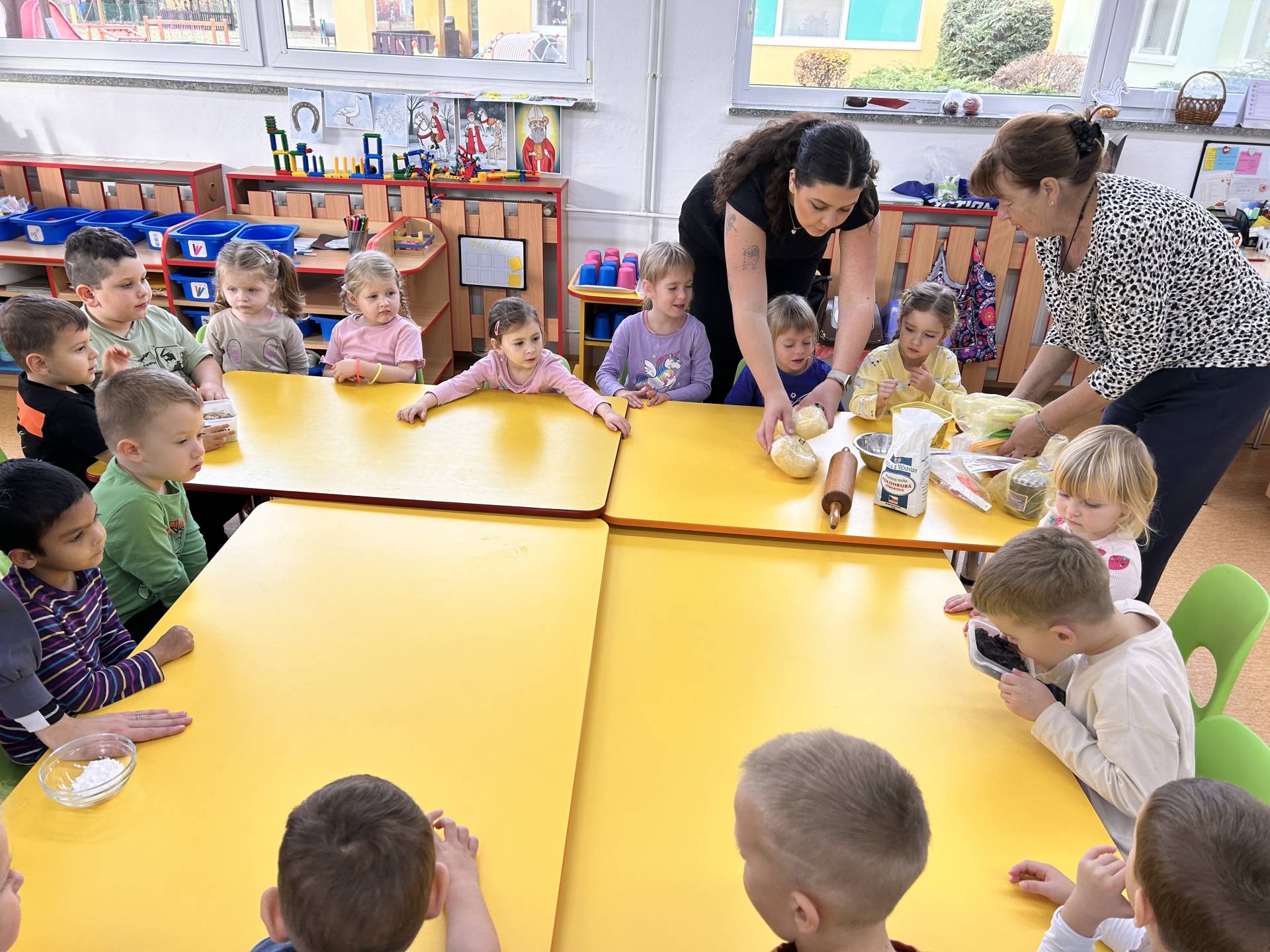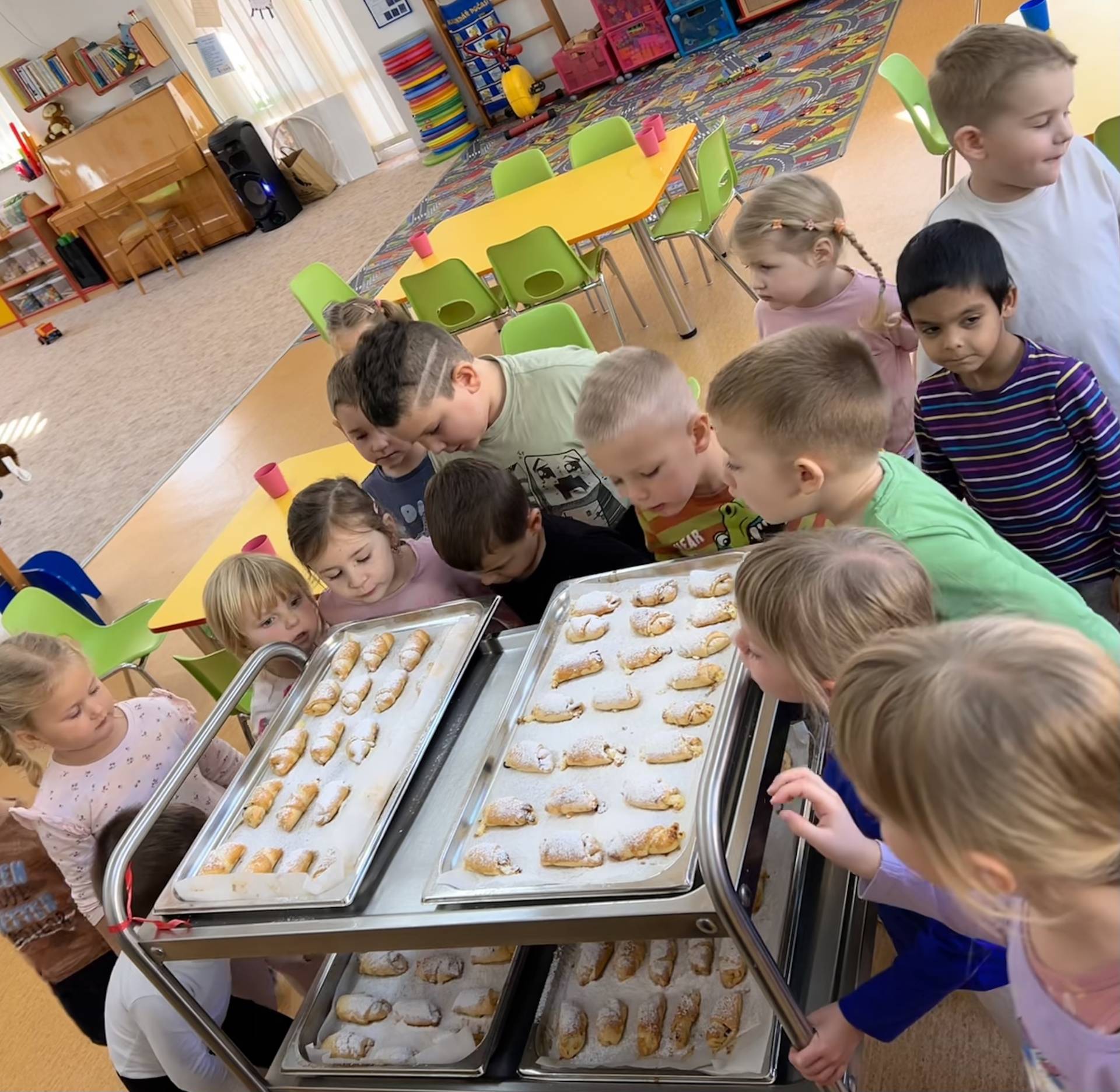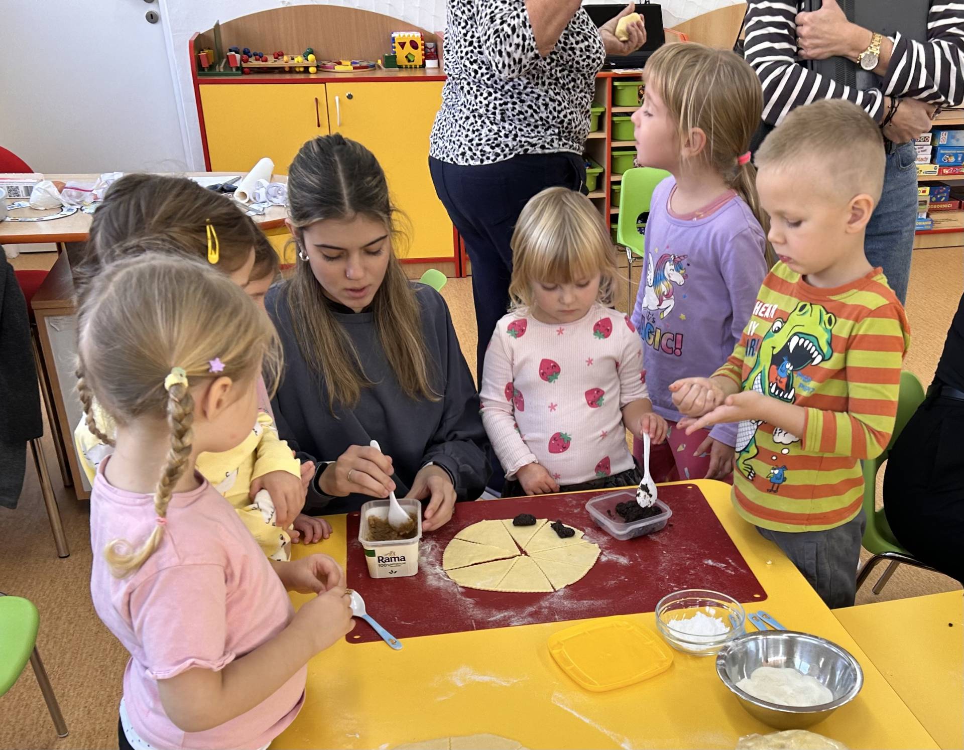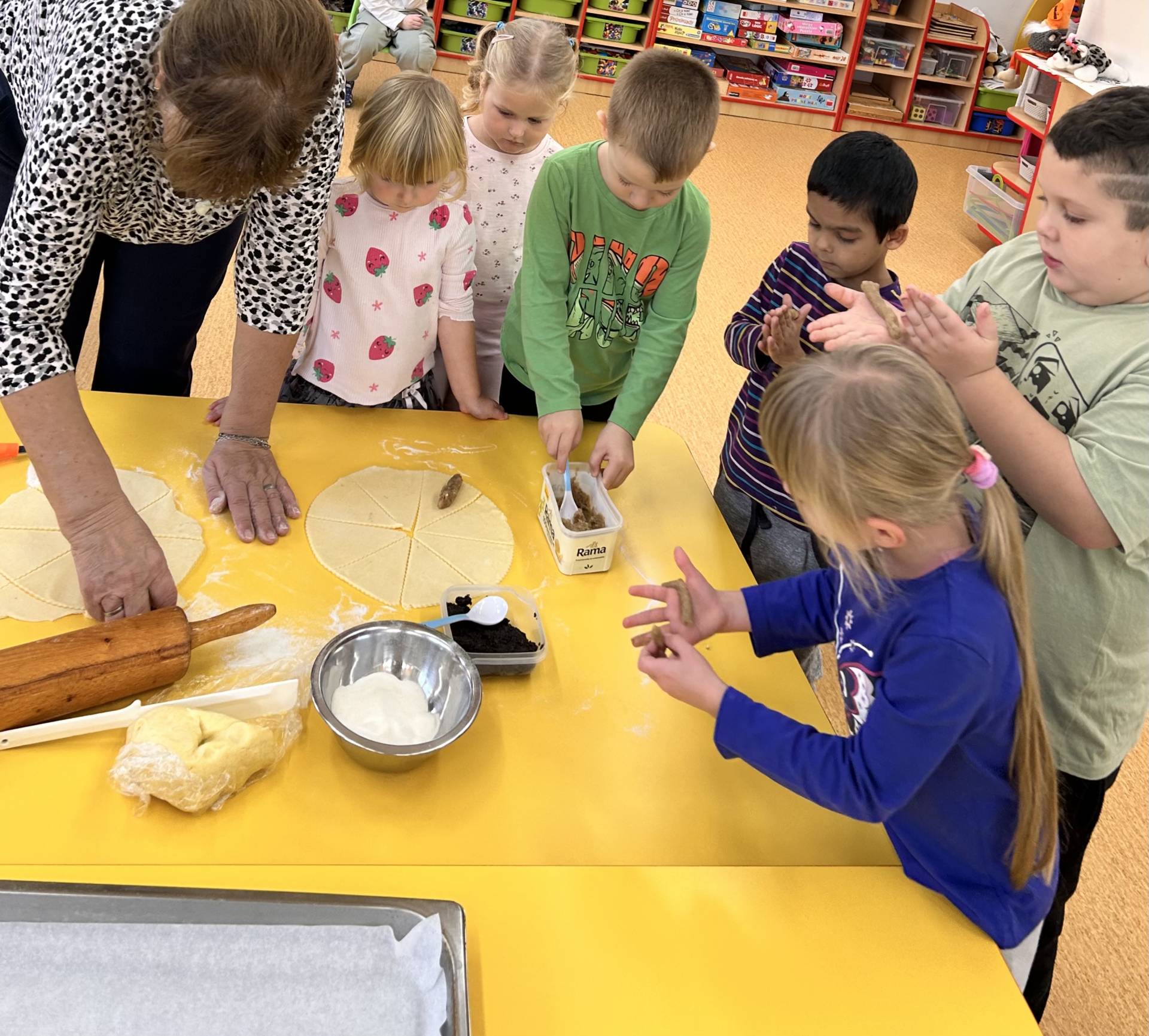 S dětmi si povídala, válela těsto, plnila a tvarovala rohlíčky a ony s nadšením spolupracovaly. Při pečení jsme si užili hezké společné chvíle, a ta vůně čerstvě upečených rohlíčků co se linula po školce…mňam.