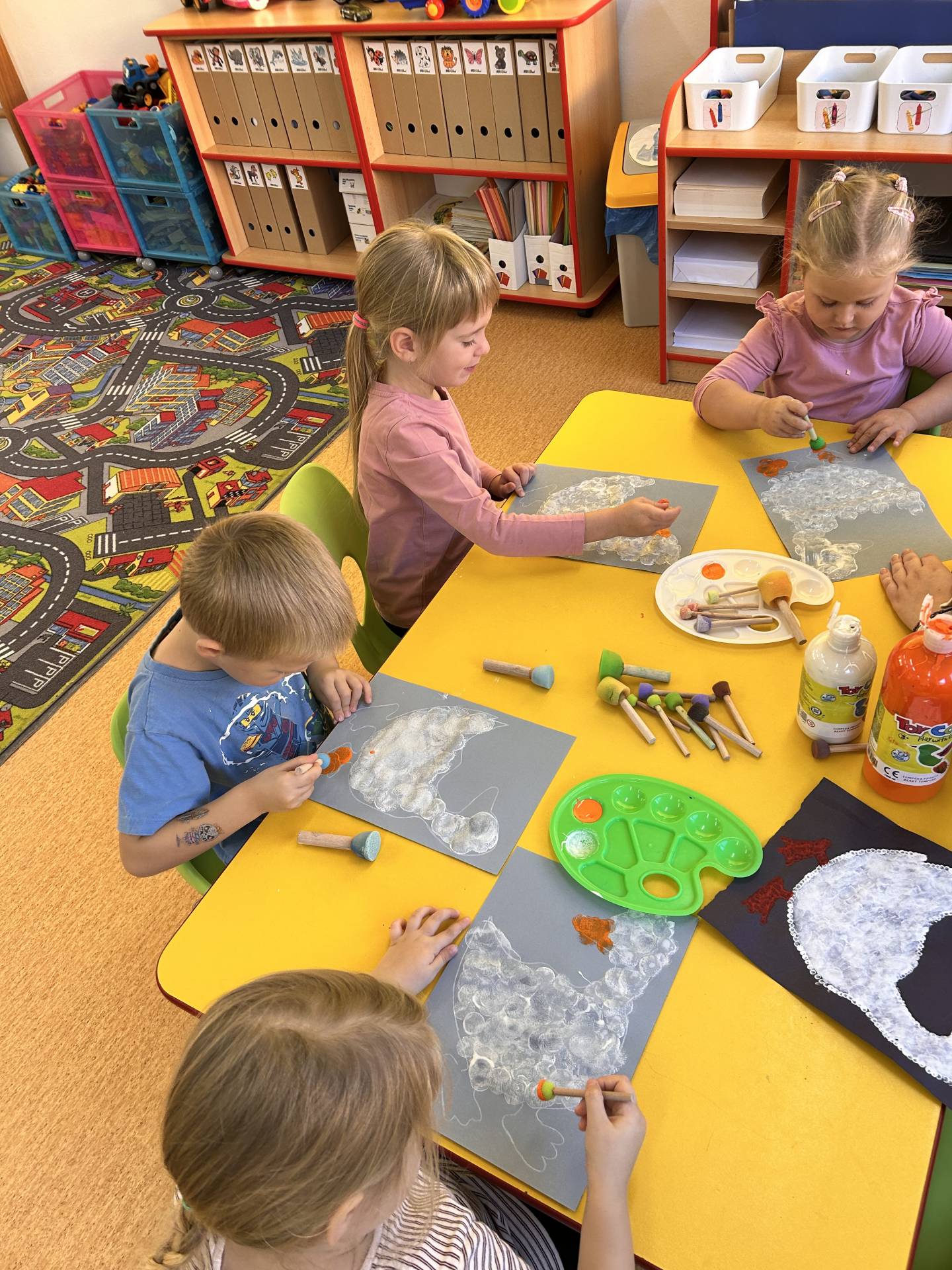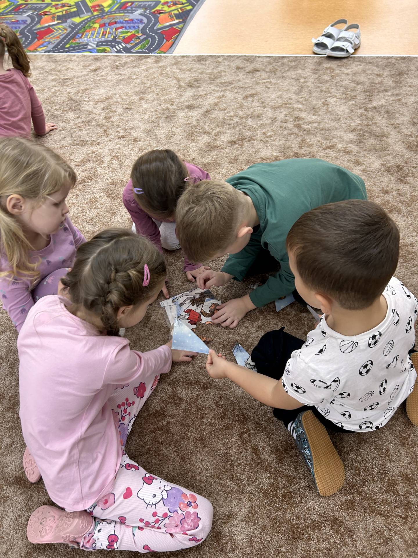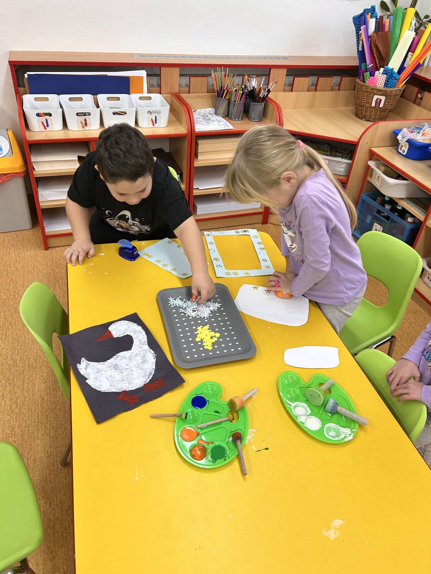 K Svatému Martinovi samozřejmě patří i jeho známá legenda o bílém koni a o tom, jak se Martin podělil o plášť s žebrákem. S dětmi jsme si příběh nejprve připomněly a poté ho samy zahrály formou krátké dramatizace.