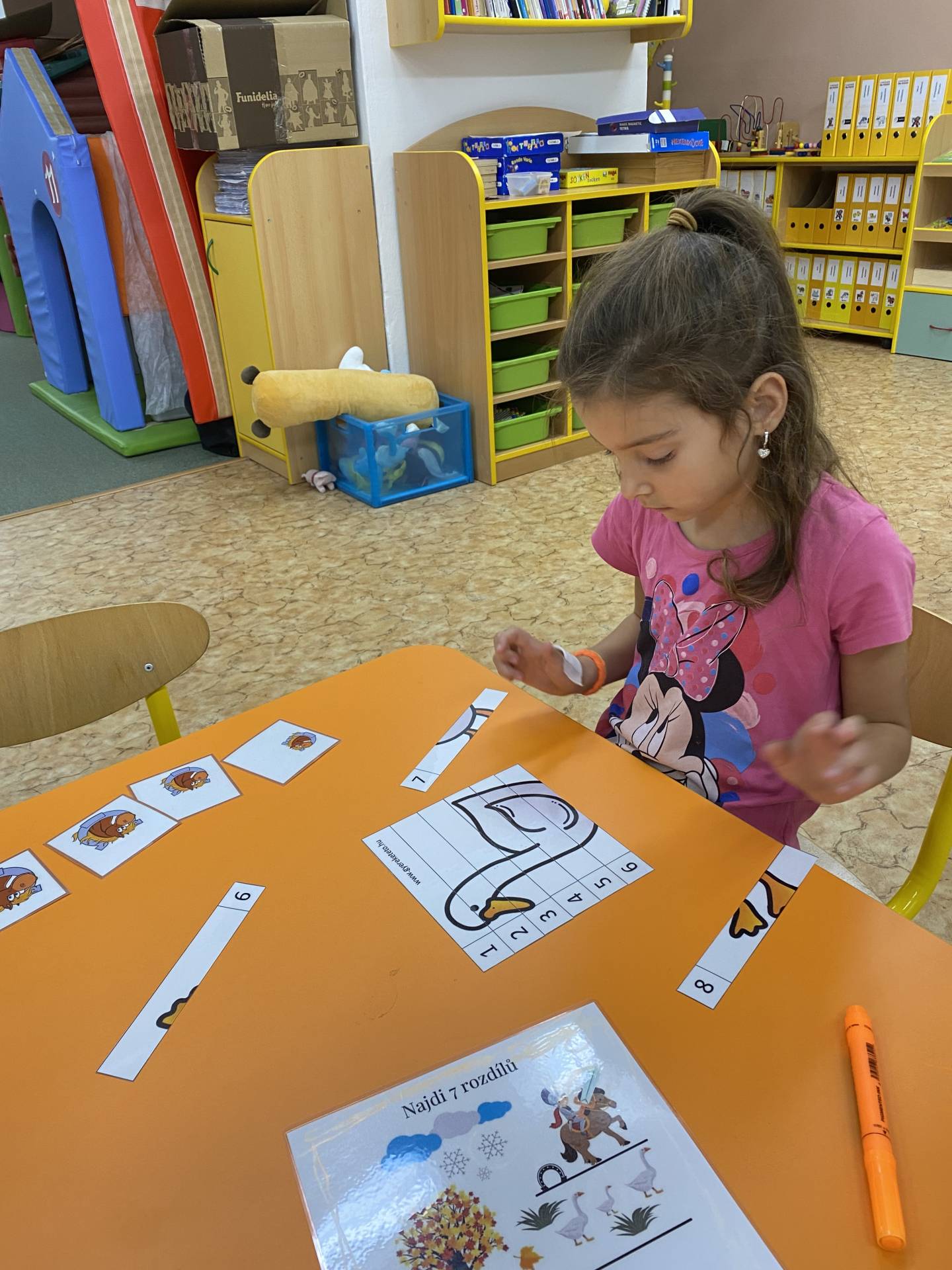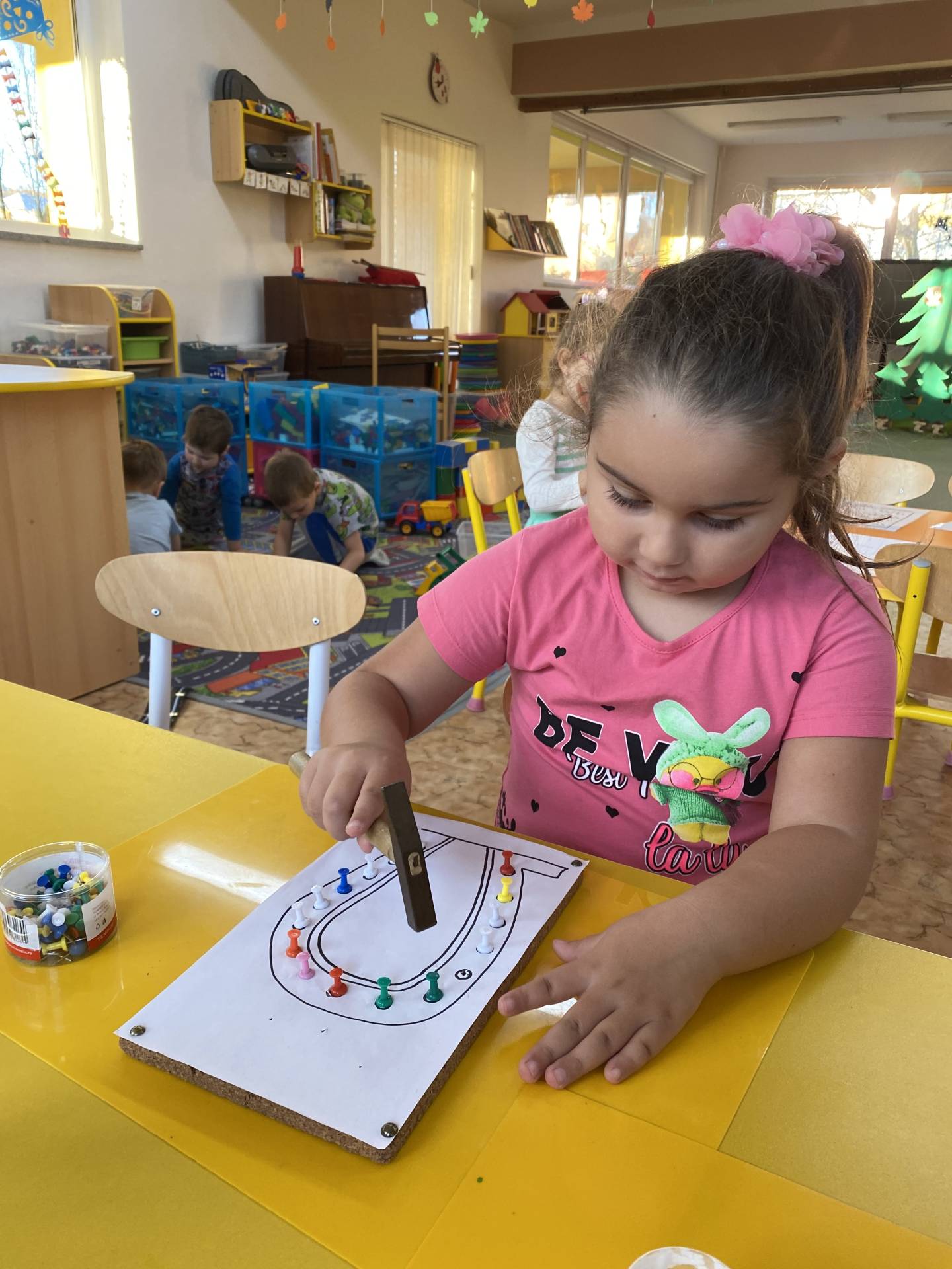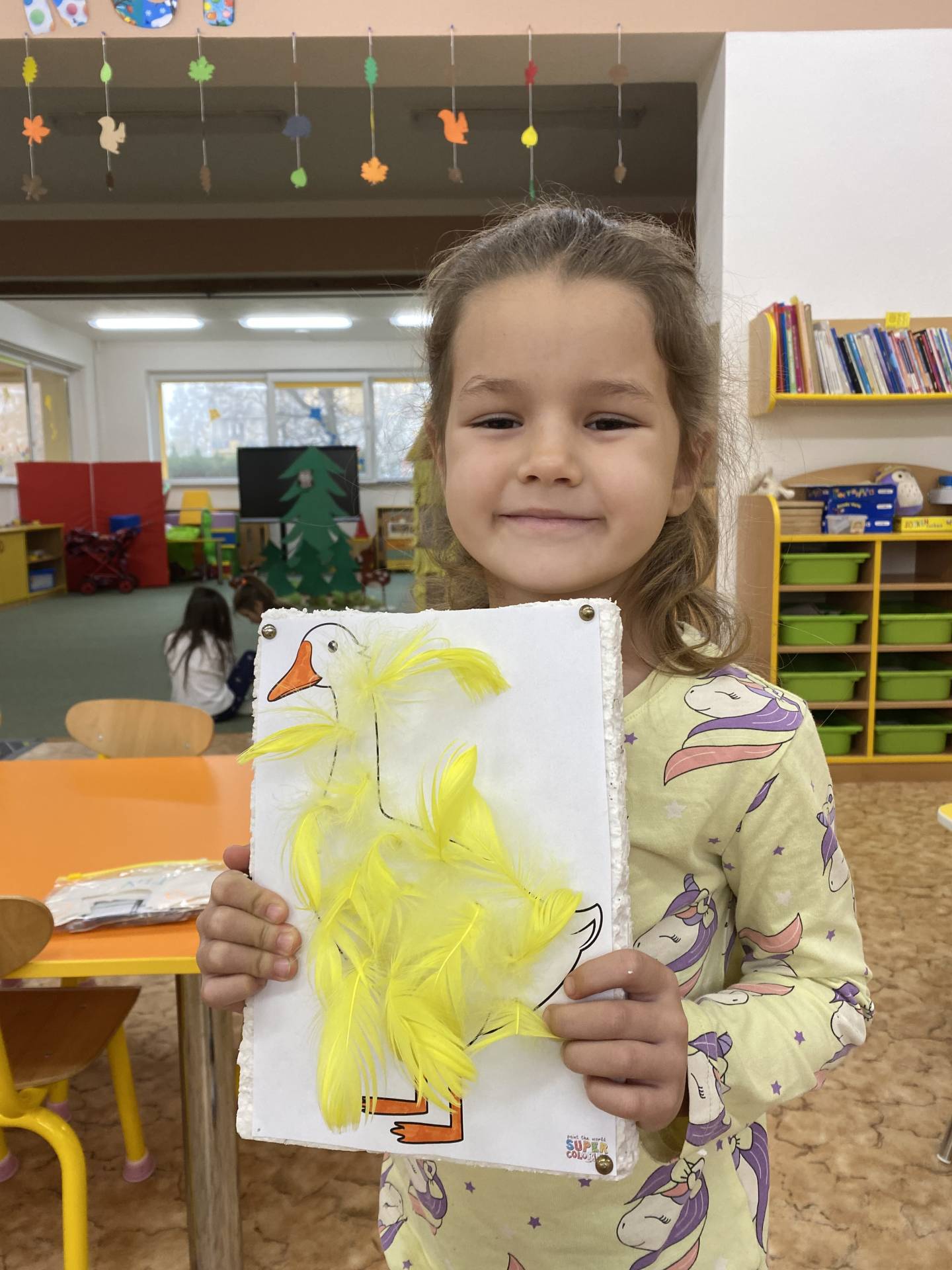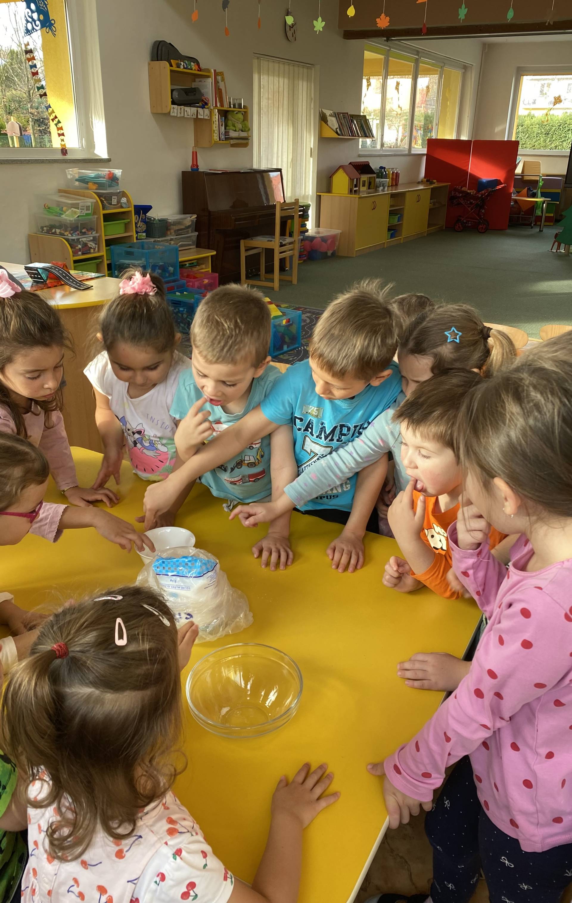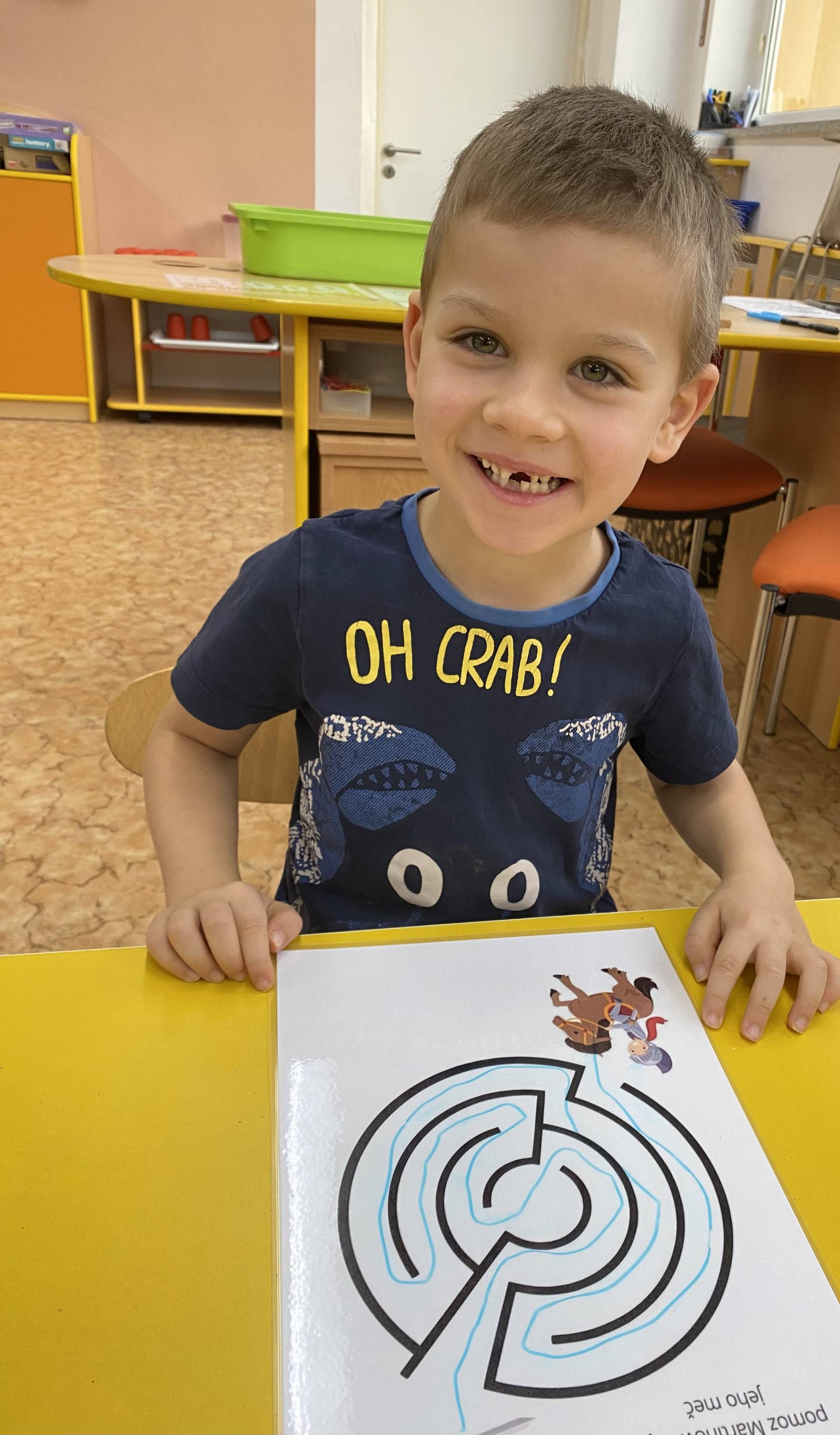 Když slaví svátek svatý Martin, s rozzářenýma očima vyhlížímez okna první snížek, přijede nebo nepřijede Martin na bílém koni? Letosnepřijel… Ale nám to nevadí, určitě se brzy dočkáme prvních vloček a budeme siužívat sněhových radovánek …. Čekání si krátíme různými aktivitami – seznámilijsme se s legendou o svatém Martinovi, kterou jsme si nejprve vyslechliformou čteného příběhu, pak také zhlédnutím na interaktivní tabuli a nakonecdramatickým ztvárněním v kostýmech a samozřejmě také nechyběly patřičnérekvizity. Povídali jsme si o pranostikách, skládali jsme dějovou posloupnostpříjezdu sv. Martina do města, abychom si upevnili děj příběhu. Vyzkoušeli jsmevpichování pírek, modelování rohlíčků z plastelíny a podkovyz alobalu, zatloukání hřebíčků do podkovy, vyšívání provázkem, smyslohraní– hledání vloček ve „sněhu“, luštili labyrinty, počítali, třídili, skládalipuzzle, tvořili koníky, vázali uzlíky, stavěli komíny, skládali vločky a mečez barevných víček a špátlí, hráli si na koníky, husy, zpívali arecitovali, experimentovali s vodou a různým materiálem a zkoumalirozpustnost látek ve vodě. Při pobytu venku jsme vyzkoušeli kreslení vločkymoukou a navštívili koníky na nedaleké farmě.
