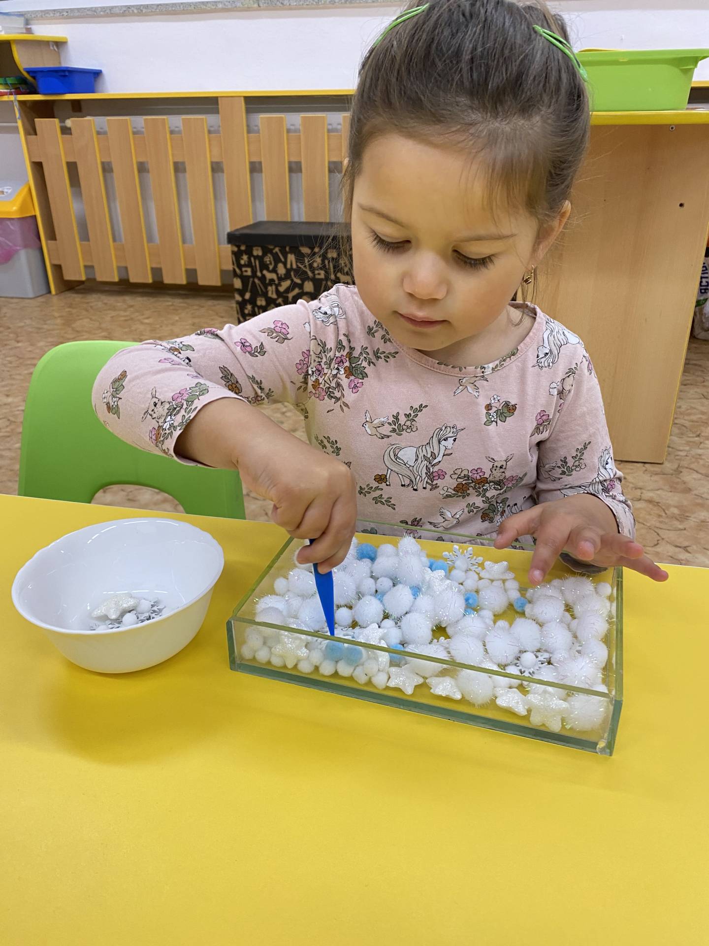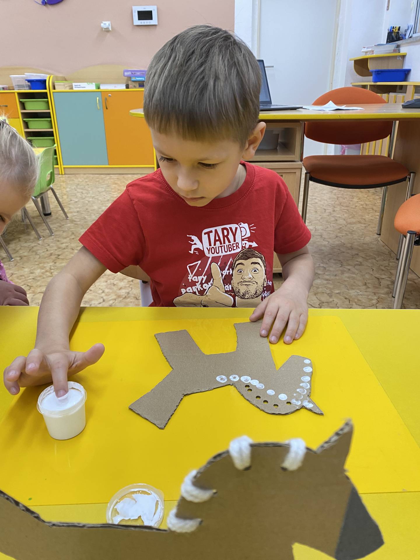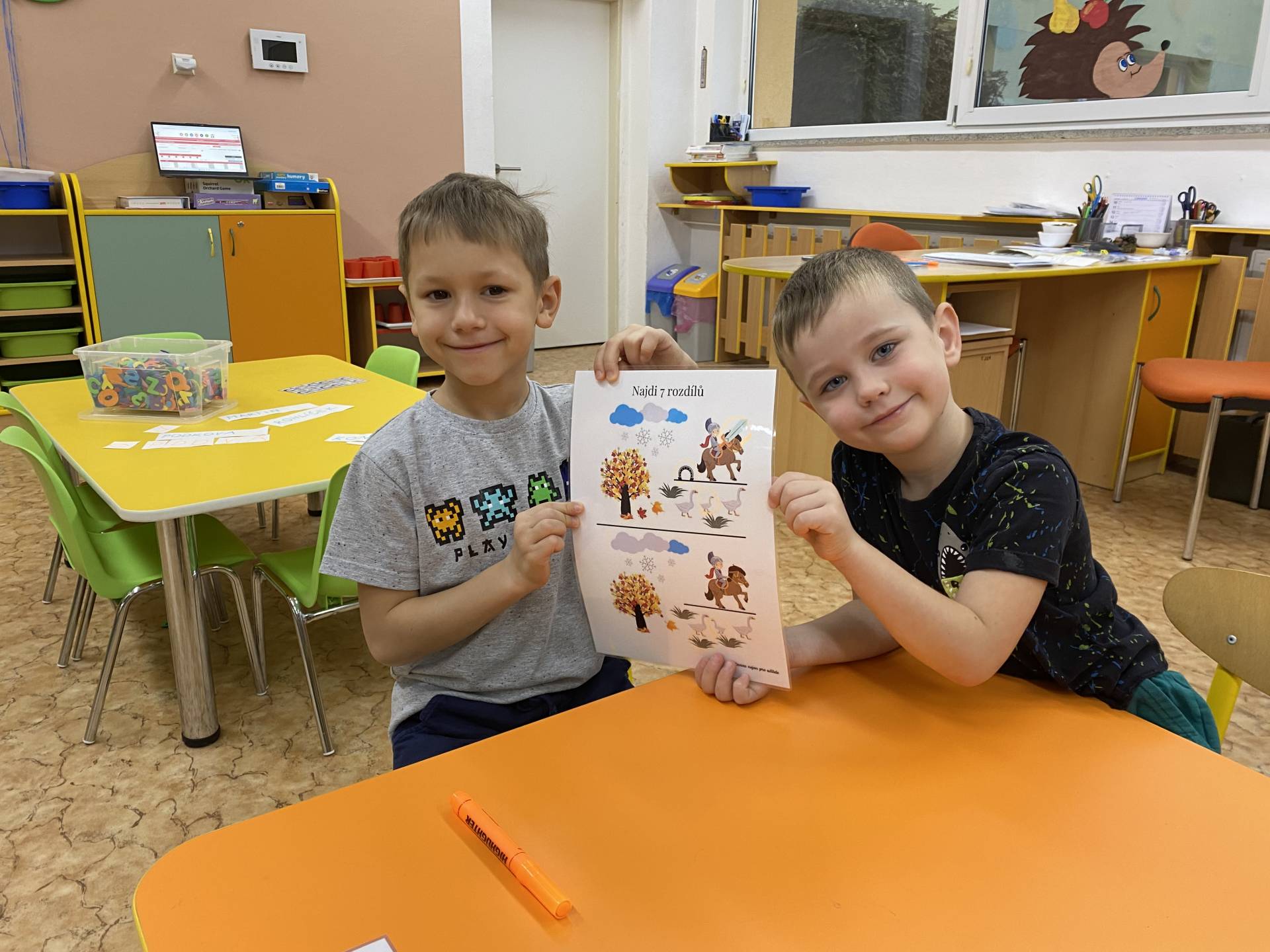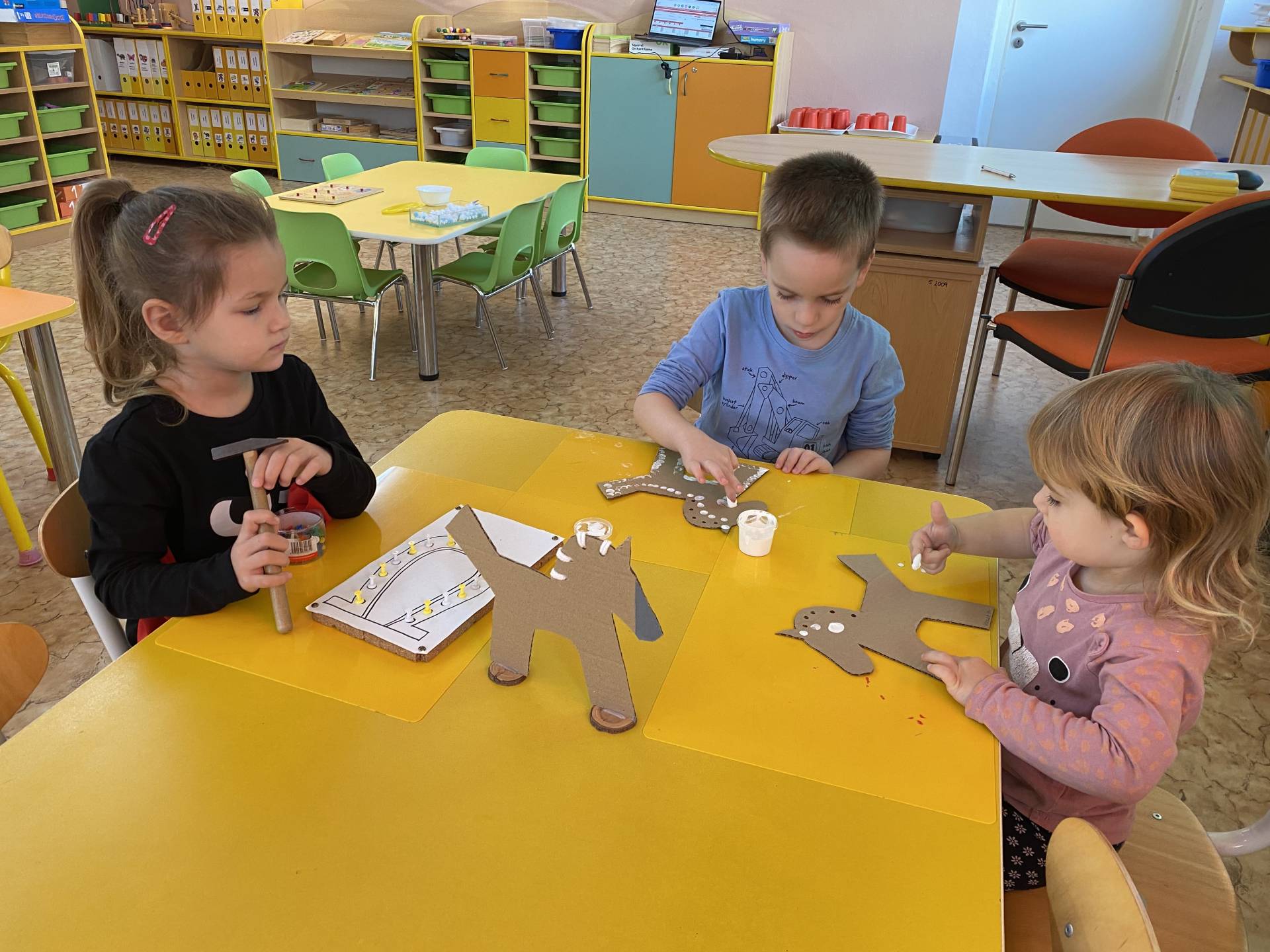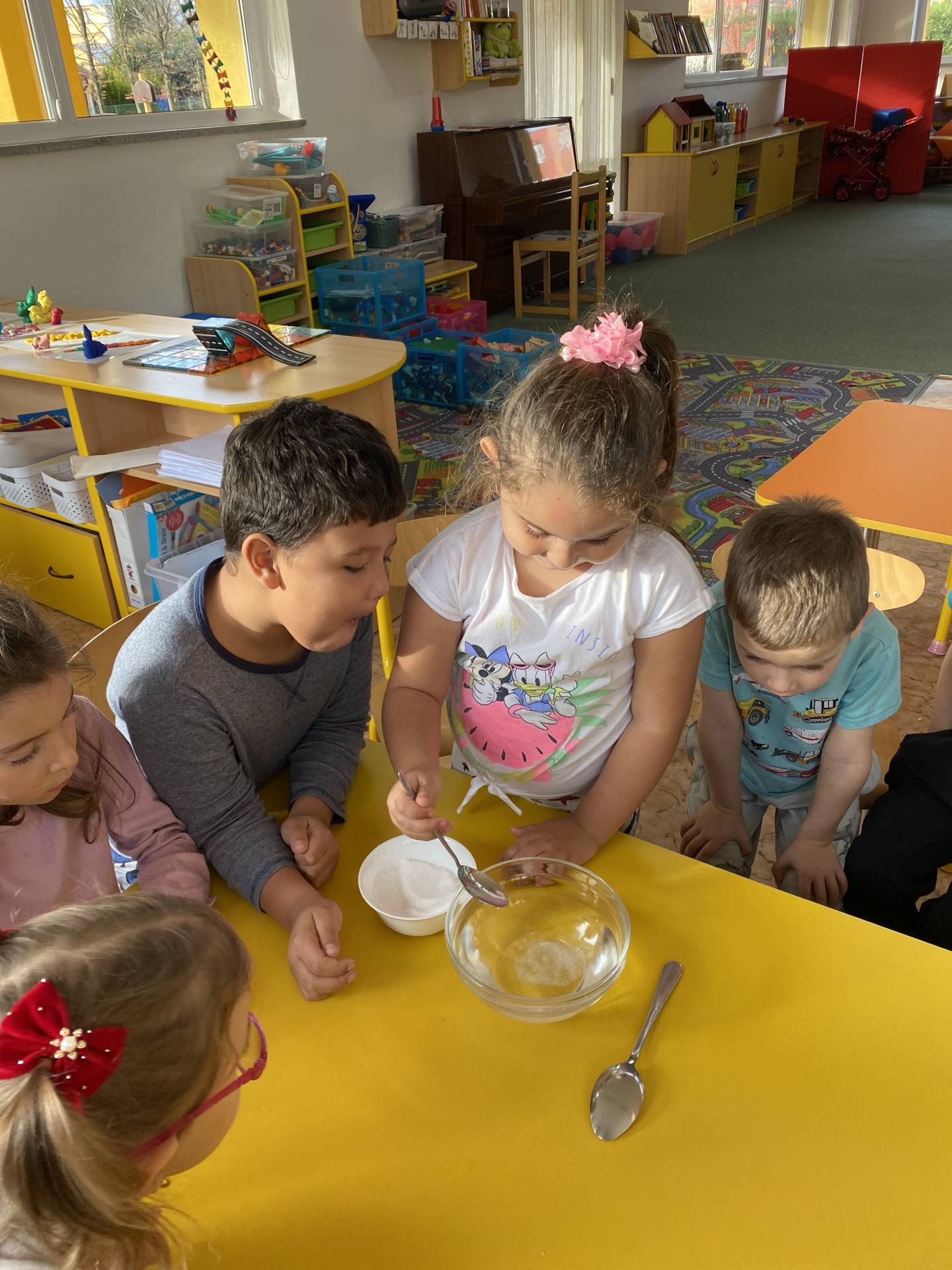 Když slaví svátek svatý Martin, s rozzářenýma očima vyhlížímez okna první snížek, přijede nebo nepřijede Martin na bílém koni? Letosnepřijel… Ale nám to nevadí, určitě se brzy dočkáme prvních vloček a budeme siužívat sněhových radovánek …. Čekání si krátíme různými aktivitami – seznámilijsme se s legendou o svatém Martinovi, kterou jsme si nejprve vyslechliformou čteného příběhu, pak také zhlédnutím na interaktivní tabuli a nakonecdramatickým ztvárněním v kostýmech a samozřejmě také nechyběly patřičnérekvizity. Povídali jsme si o pranostikách, skládali jsme dějovou posloupnostpříjezdu sv. Martina do města, abychom si upevnili děj příběhu. Vyzkoušeli jsmevpichování pírek, modelování rohlíčků z plastelíny a podkovyz alobalu, zatloukání hřebíčků do podkovy, vyšívání provázkem, smyslohraní– hledání vloček ve „sněhu“, luštili labyrinty, počítali, třídili, skládalipuzzle, tvořili koníky, vázali uzlíky, stavěli komíny, skládali vločky a mečez barevných víček a špátlí, hráli si na koníky, husy, zpívali arecitovali, experimentovali s vodou a různým materiálem a zkoumalirozpustnost látek ve vodě. Při pobytu venku jsme vyzkoušeli kreslení vločkymoukou a navštívili koníky na nedaleké farmě.