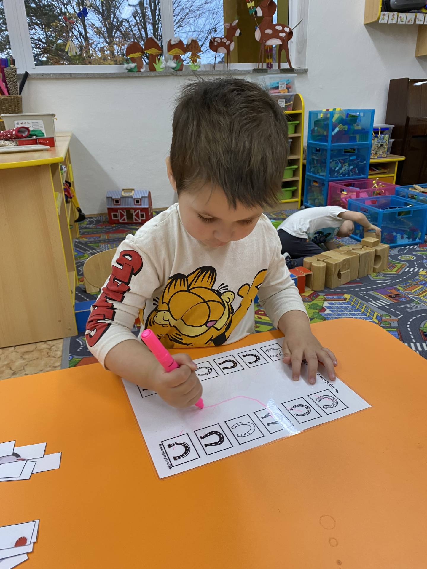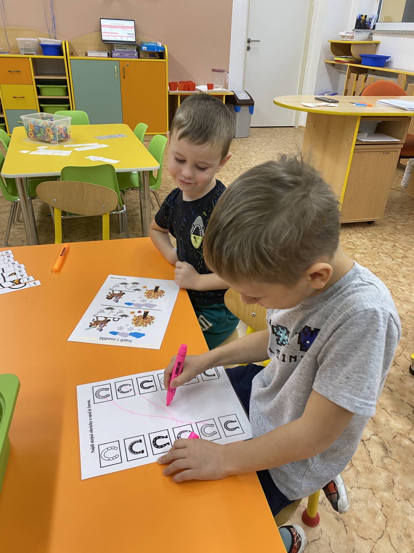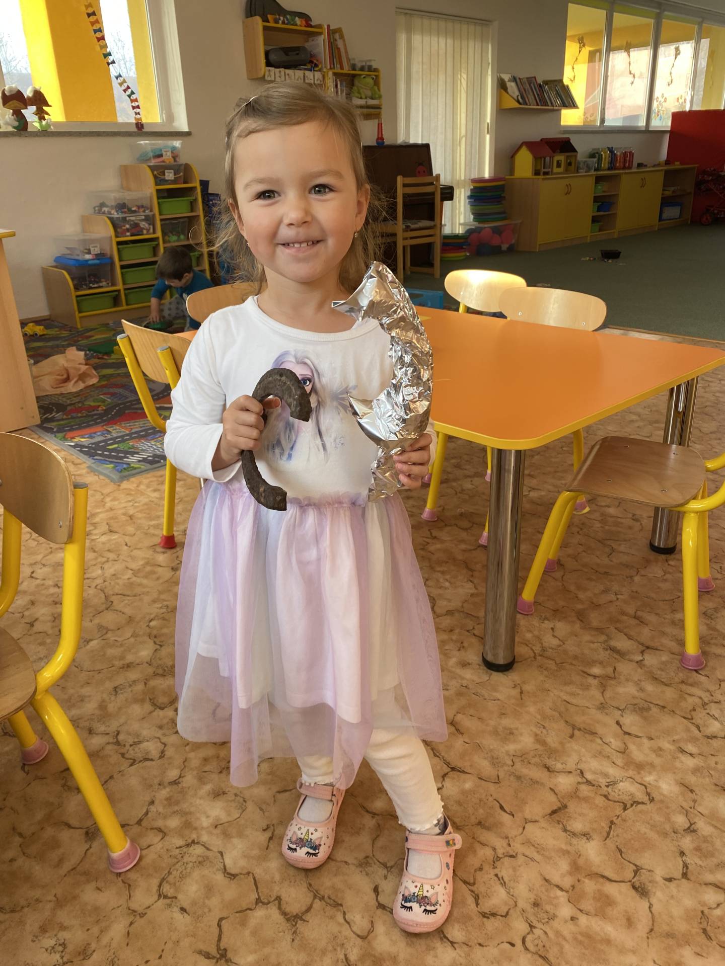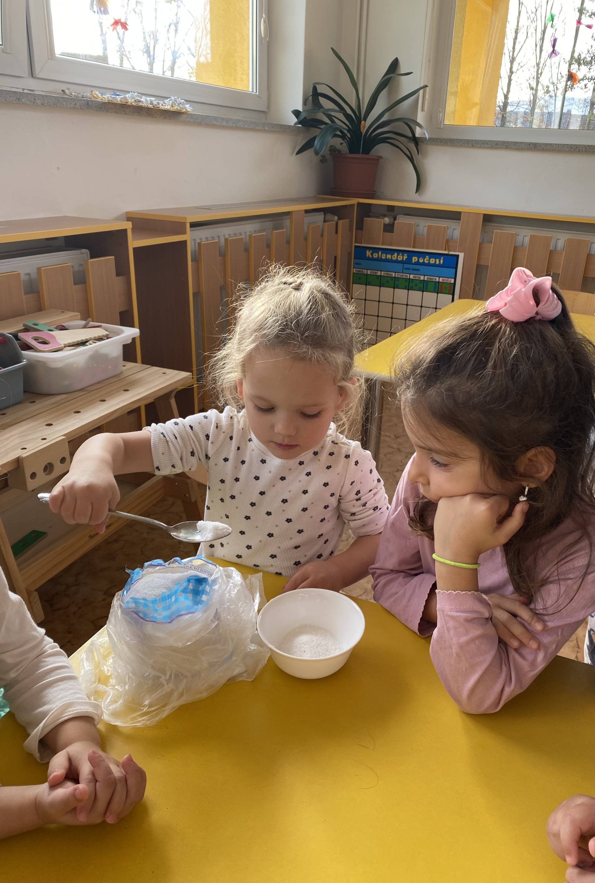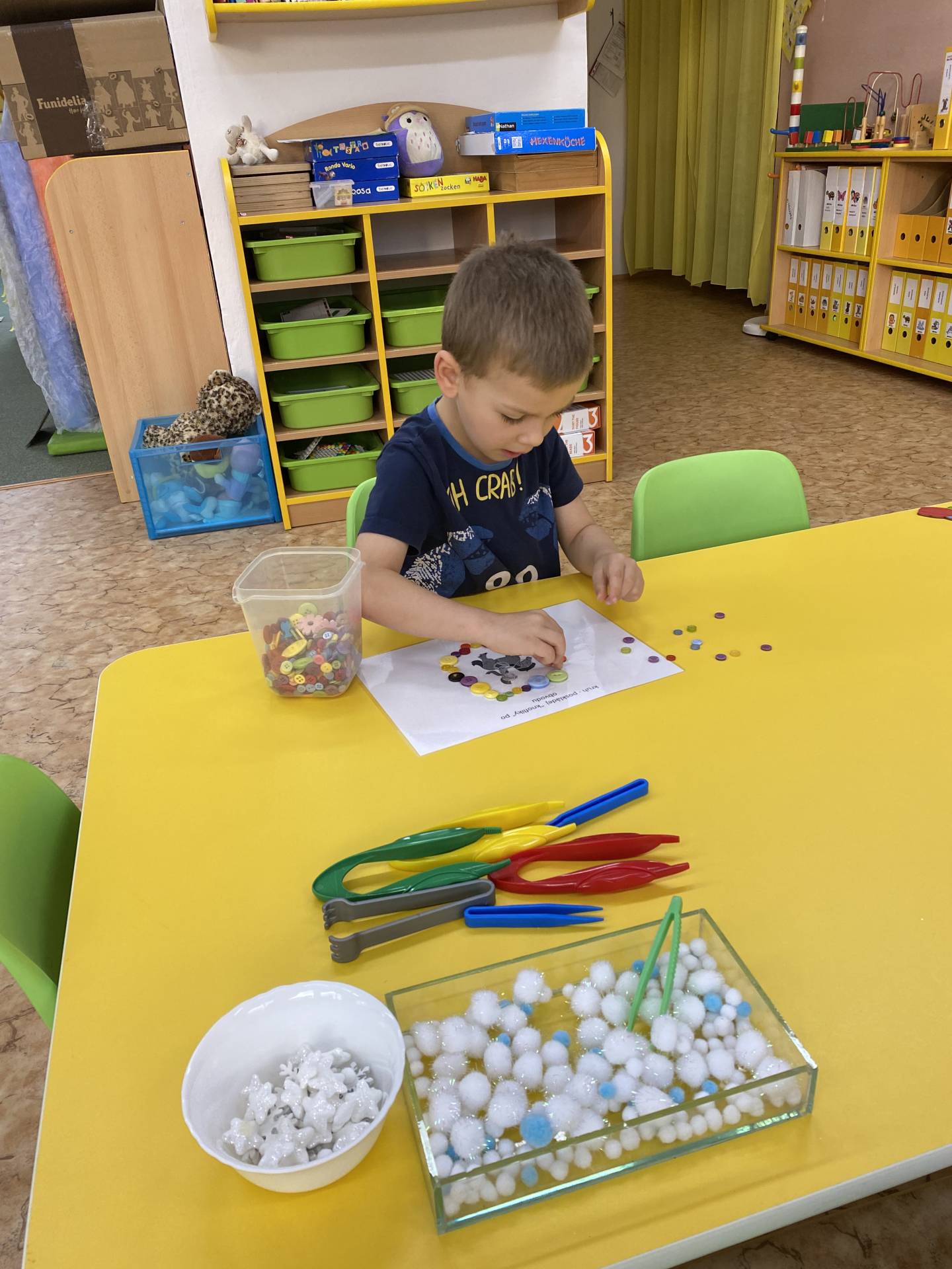 Když slaví svátek svatý Martin, s rozzářenýma očima vyhlížímez okna první snížek, přijede nebo nepřijede Martin na bílém koni? Letosnepřijel… Ale nám to nevadí, určitě se brzy dočkáme prvních vloček a budeme siužívat sněhových radovánek …. Čekání si krátíme různými aktivitami – seznámilijsme se s legendou o svatém Martinovi, kterou jsme si nejprve vyslechliformou čteného příběhu, pak také zhlédnutím na interaktivní tabuli a nakonecdramatickým ztvárněním v kostýmech a samozřejmě také nechyběly patřičnérekvizity. Povídali jsme si o pranostikách, skládali jsme dějovou posloupnostpříjezdu sv. Martina do města, abychom si upevnili děj příběhu. Vyzkoušeli jsmevpichování pírek, modelování rohlíčků z plastelíny a podkovyz alobalu, zatloukání hřebíčků do podkovy, vyšívání provázkem, smyslohraní– hledání vloček ve „sněhu“, luštili labyrinty, počítali, třídili, skládalipuzzle, tvořili koníky, vázali uzlíky, stavěli komíny, skládali vločky a mečez barevných víček a špátlí, hráli si na koníky, husy, zpívali arecitovali, experimentovali s vodou a různým materiálem a zkoumalirozpustnost látek ve vodě. Při pobytu venku jsme vyzkoušeli kreslení vločkymoukou a navštívili koníky na nedaleké farmě.