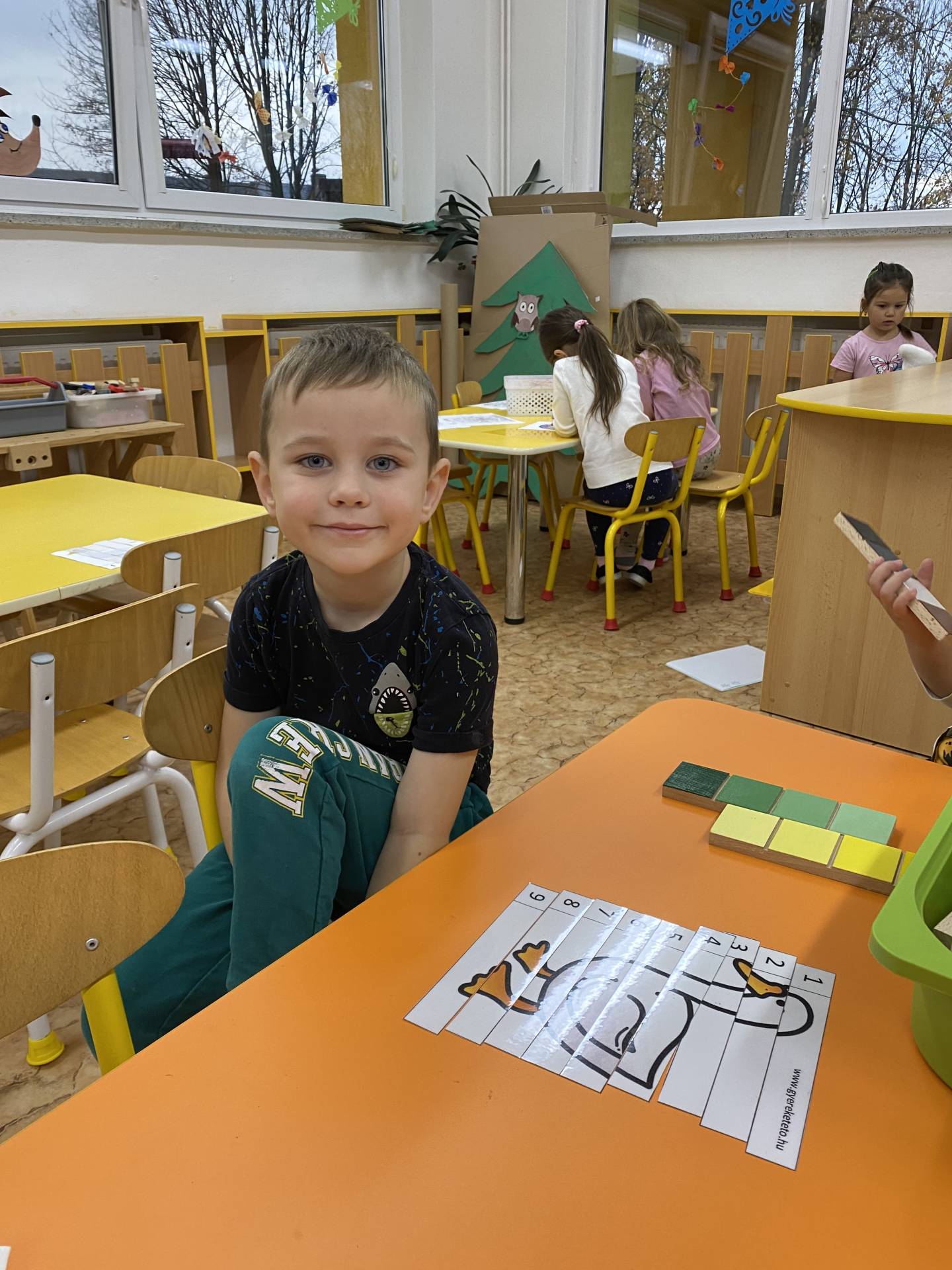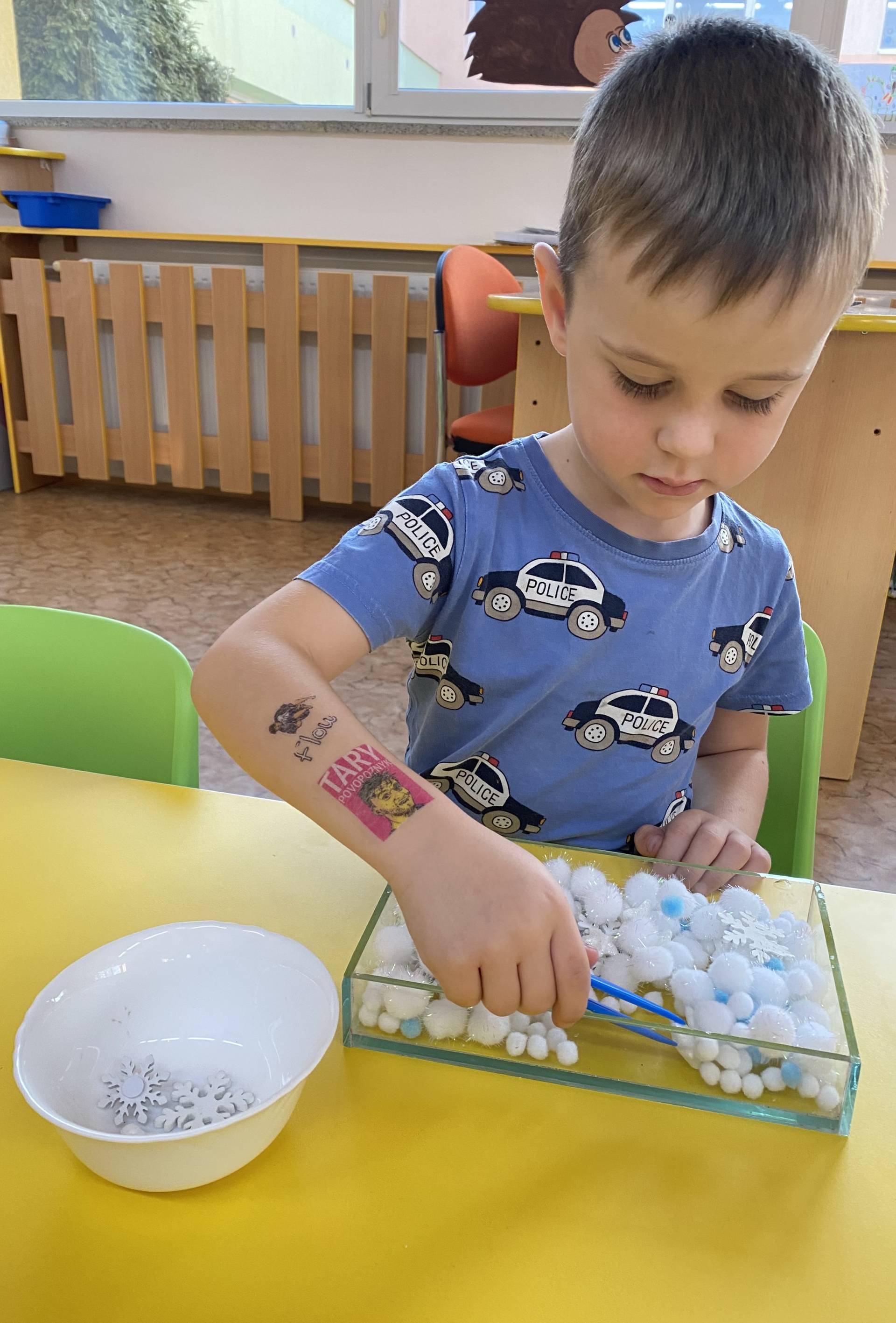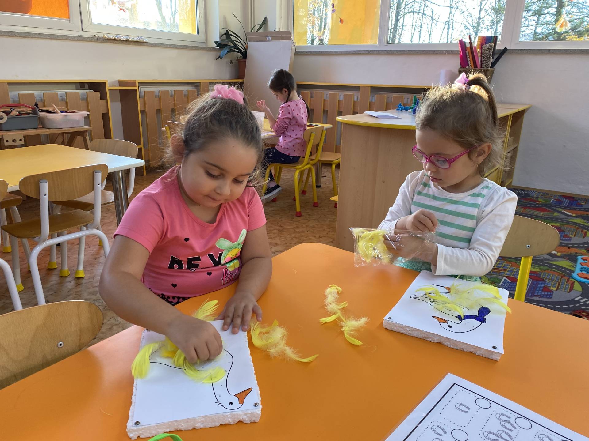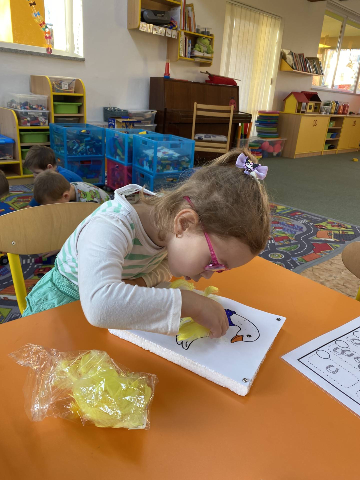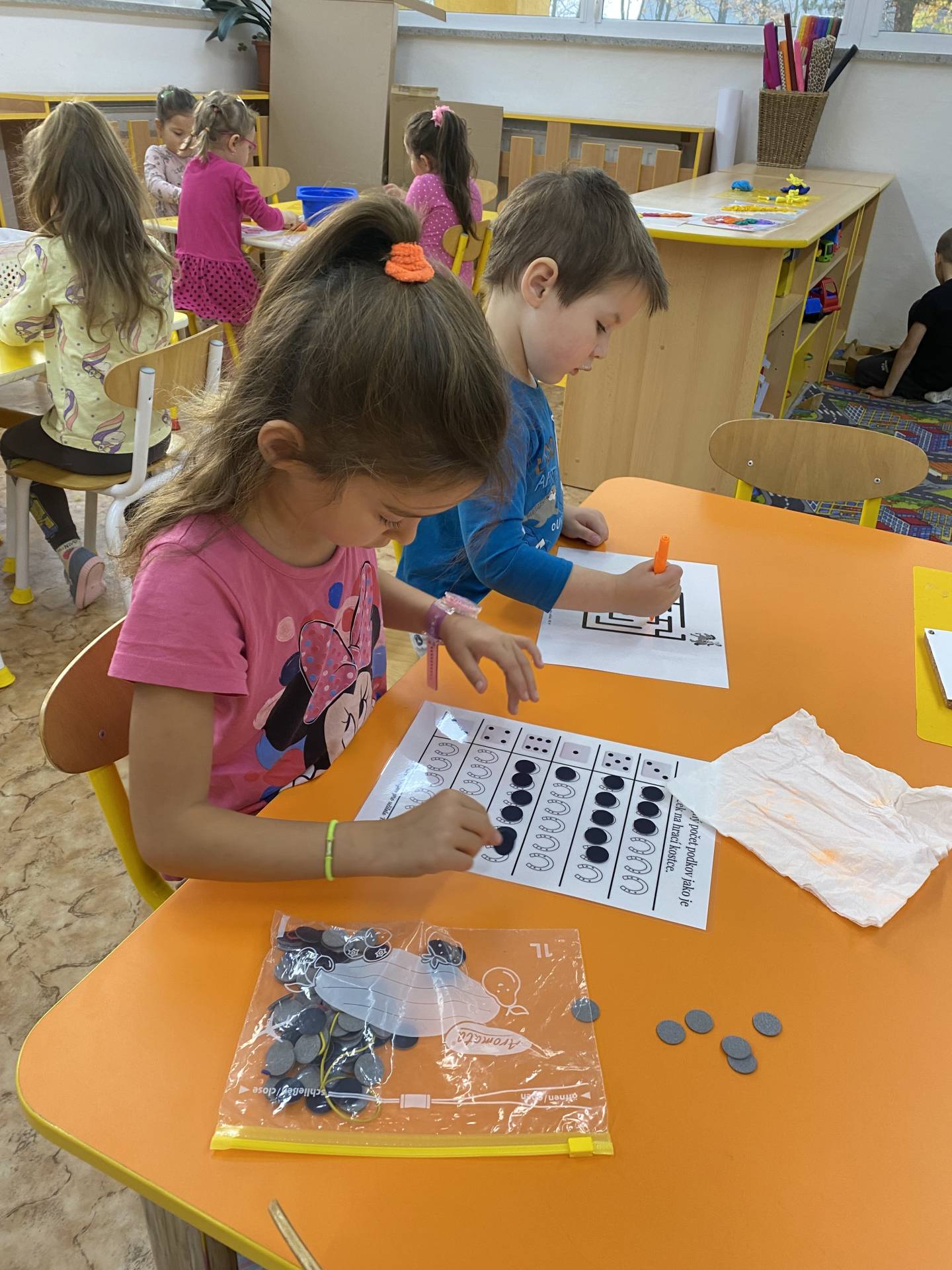 Když slaví svátek svatý Martin, s rozzářenýma očima vyhlížímez okna první snížek, přijede nebo nepřijede Martin na bílém koni? Letosnepřijel… Ale nám to nevadí, určitě se brzy dočkáme prvních vloček a budeme siužívat sněhových radovánek …. Čekání si krátíme různými aktivitami – seznámilijsme se s legendou o svatém Martinovi, kterou jsme si nejprve vyslechliformou čteného příběhu, pak také zhlédnutím na interaktivní tabuli a nakonecdramatickým ztvárněním v kostýmech a samozřejmě také nechyběly patřičnérekvizity. Povídali jsme si o pranostikách, skládali jsme dějovou posloupnostpříjezdu sv. Martina do města, abychom si upevnili děj příběhu. Vyzkoušeli jsmevpichování pírek, modelování rohlíčků z plastelíny a podkovyz alobalu, zatloukání hřebíčků do podkovy, vyšívání provázkem, smyslohraní– hledání vloček ve „sněhu“, luštili labyrinty, počítali, třídili, skládalipuzzle, tvořili koníky, vázali uzlíky, stavěli komíny, skládali vločky a mečez barevných víček a špátlí, hráli si na koníky, husy, zpívali arecitovali, experimentovali s vodou a různým materiálem a zkoumalirozpustnost látek ve vodě. Při pobytu venku jsme vyzkoušeli kreslení vločkymoukou a navštívili koníky na nedaleké farmě.