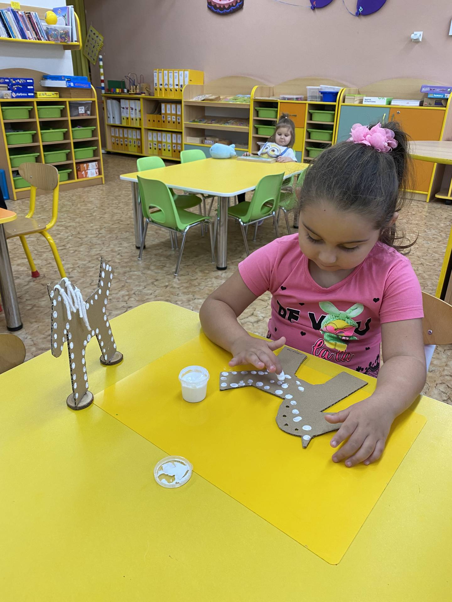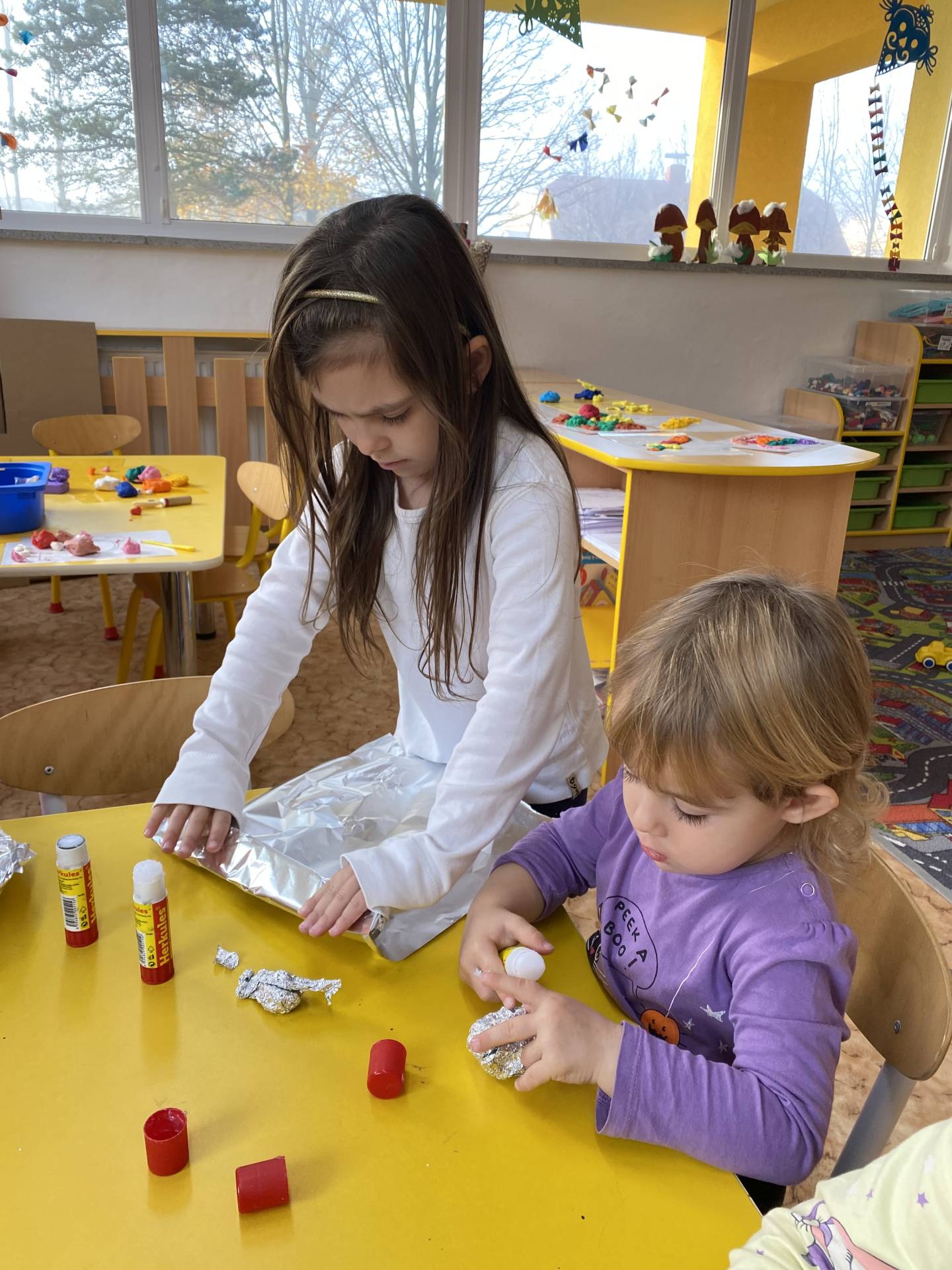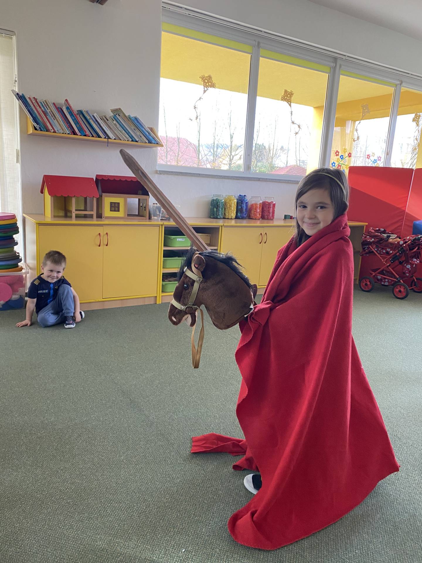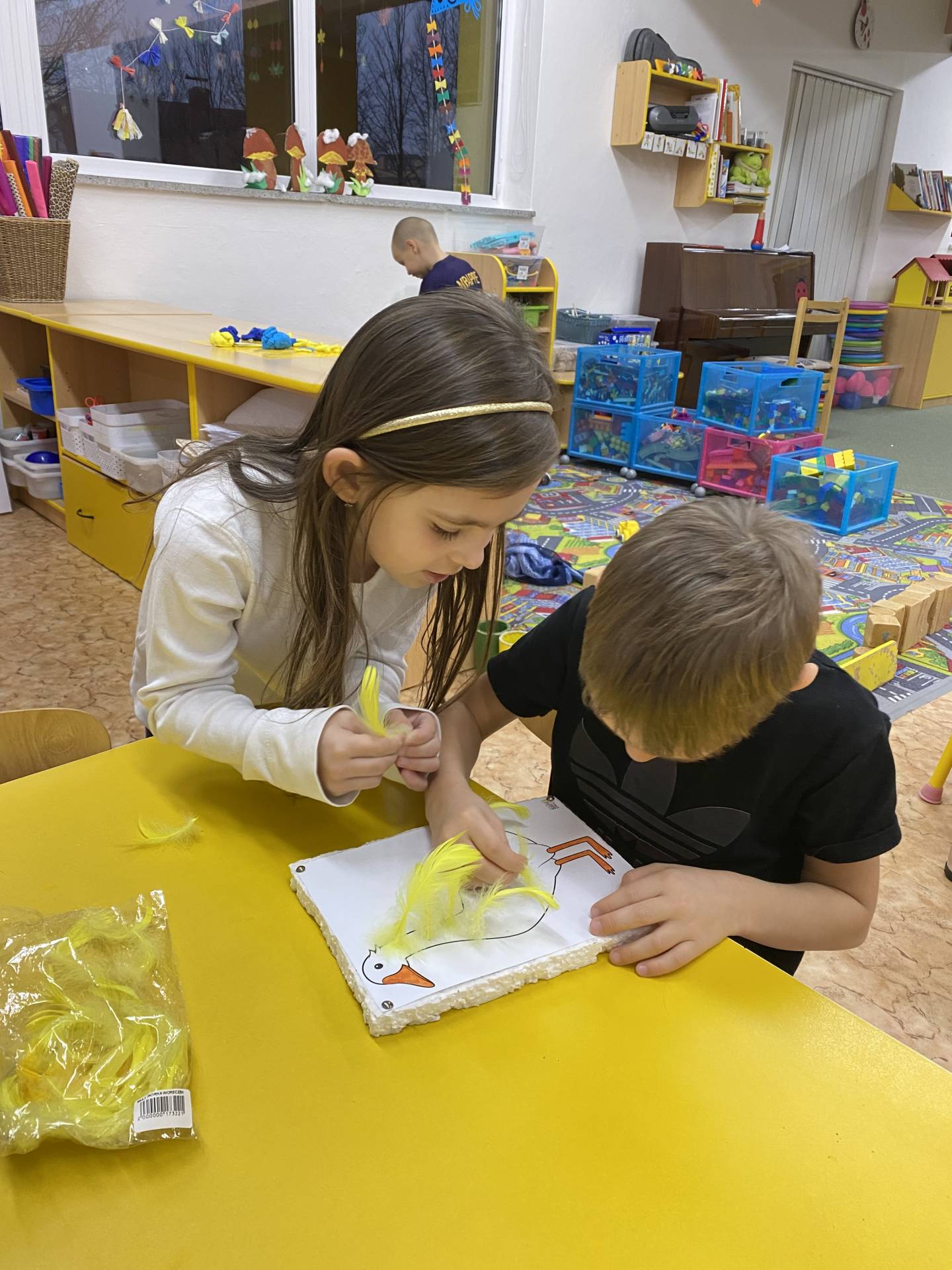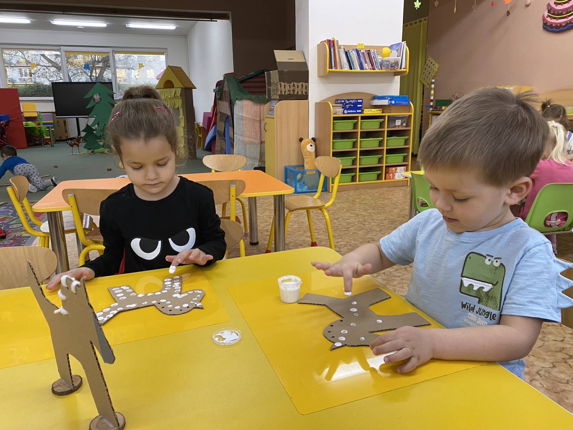 Když slaví svátek svatý Martin, s rozzářenýma očima vyhlížímez okna první snížek, přijede nebo nepřijede Martin na bílém koni? Letosnepřijel… Ale nám to nevadí, určitě se brzy dočkáme prvních vloček a budeme siužívat sněhových radovánek …. Čekání si krátíme různými aktivitami – seznámilijsme se s legendou o svatém Martinovi, kterou jsme si nejprve vyslechliformou čteného příběhu, pak také zhlédnutím na interaktivní tabuli a nakonecdramatickým ztvárněním v kostýmech a samozřejmě také nechyběly patřičnérekvizity. Povídali jsme si o pranostikách, skládali jsme dějovou posloupnostpříjezdu sv. Martina do města, abychom si upevnili děj příběhu. Vyzkoušeli jsmevpichování pírek, modelování rohlíčků z plastelíny a podkovyz alobalu, zatloukání hřebíčků do podkovy, vyšívání provázkem, smyslohraní– hledání vloček ve „sněhu“, luštili labyrinty, počítali, třídili, skládalipuzzle, tvořili koníky, vázali uzlíky, stavěli komíny, skládali vločky a mečez barevných víček a špátlí, hráli si na koníky, husy, zpívali arecitovali, experimentovali s vodou a různým materiálem a zkoumalirozpustnost látek ve vodě. Při pobytu venku jsme vyzkoušeli kreslení vločkymoukou a navštívili koníky na nedaleké farmě.