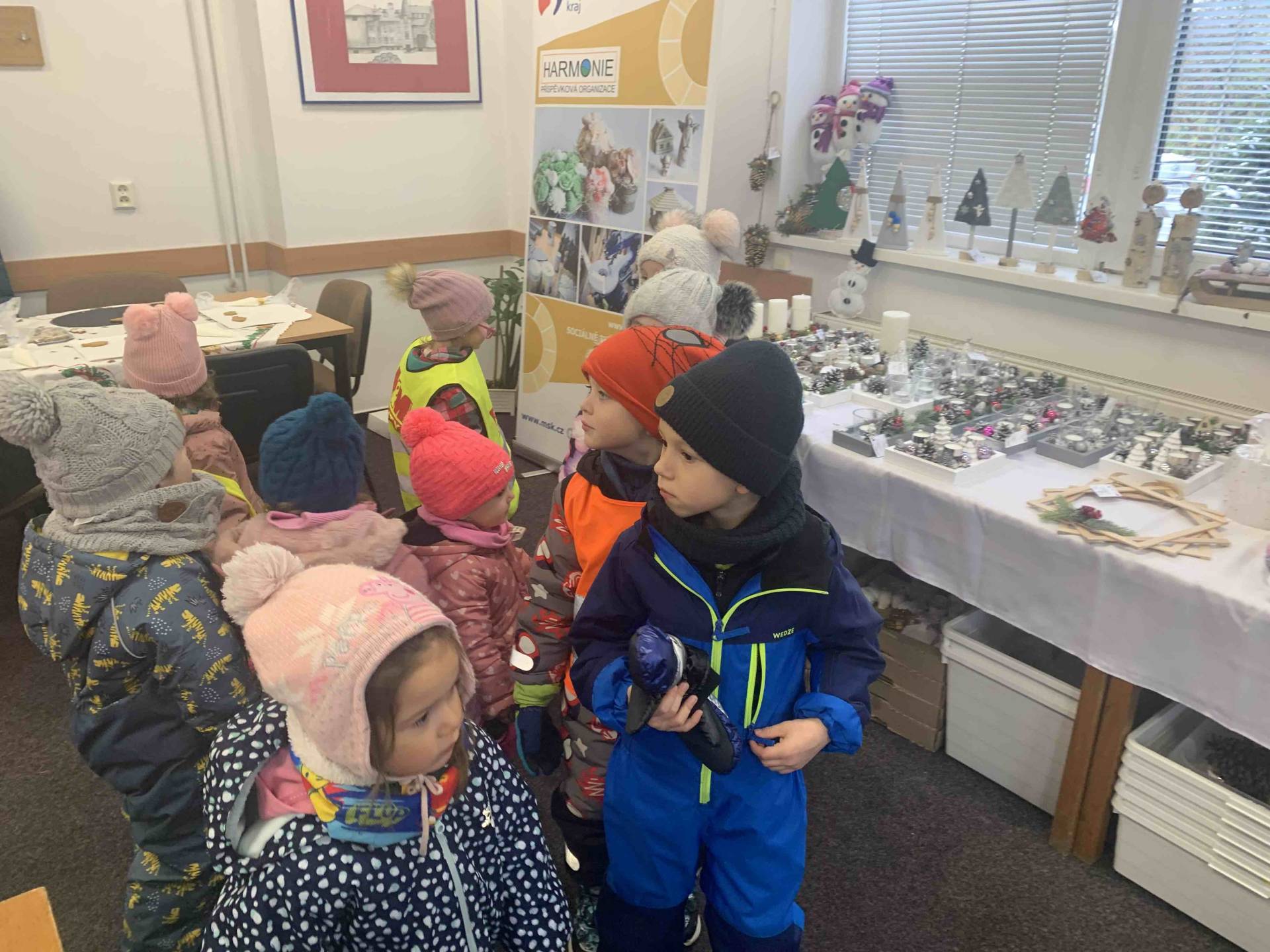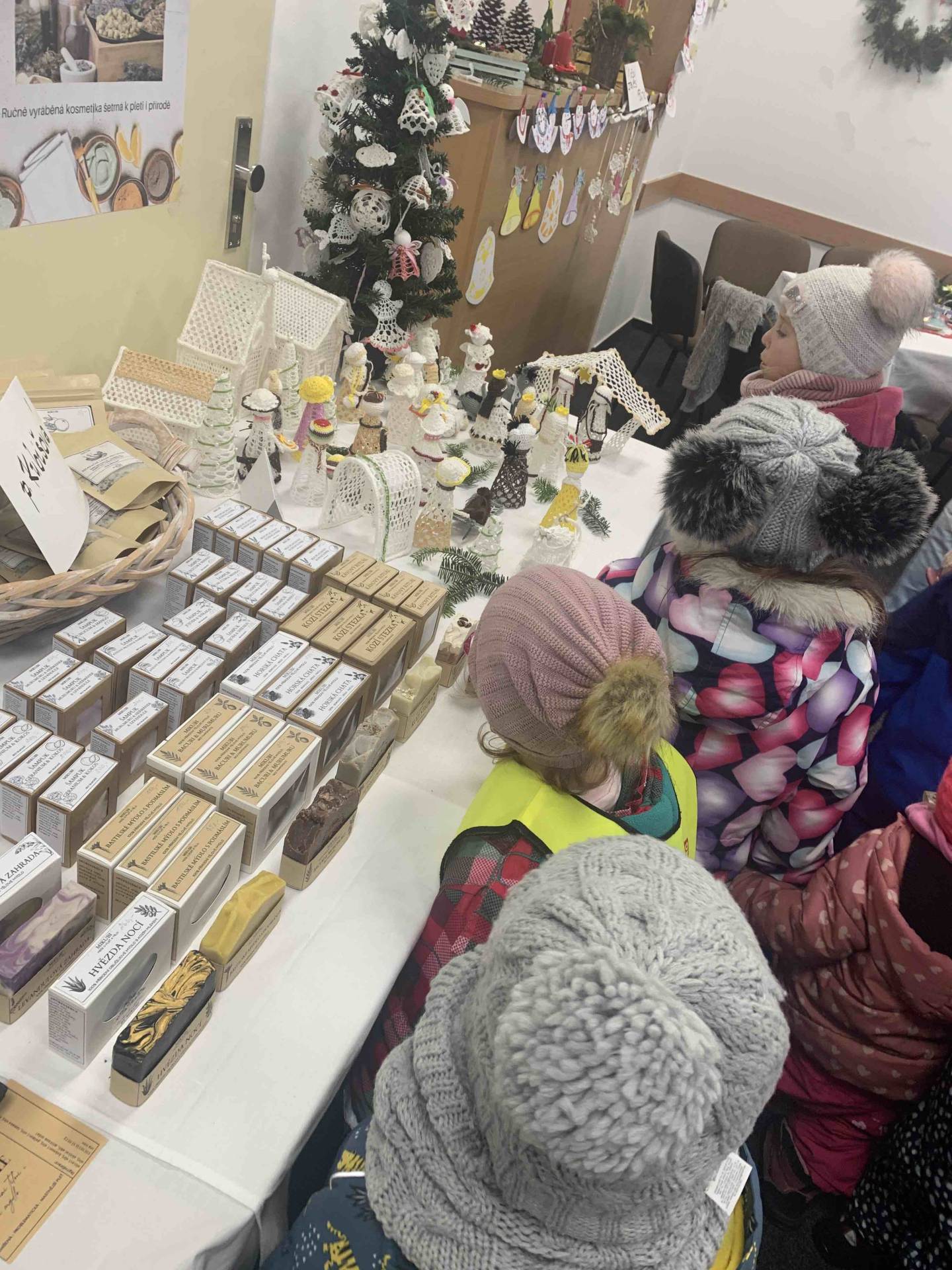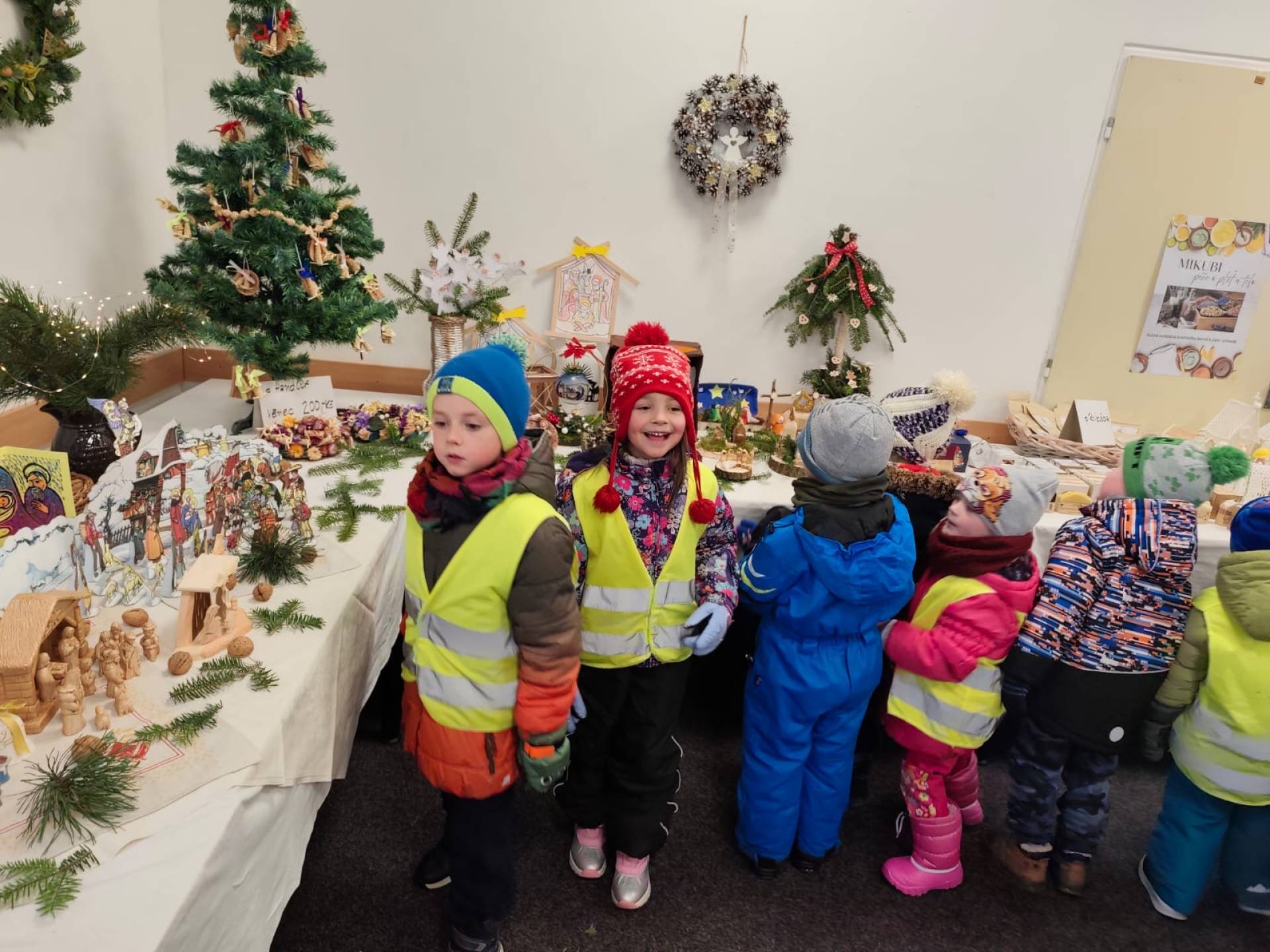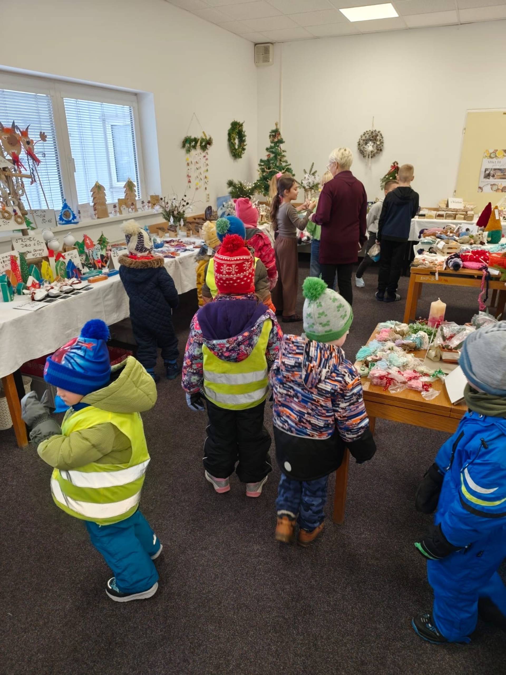Dne 24.11.2025 jsme vyrazili s dětmi na kouzelnou vánoční výstavku do základní školy. Hned po příchodu nás zaujala široká nabídka krásných rukodělných výrobků a vánočních dekorací, které vytvářely příjemnou sváteční atmosféru. Děti si s nadšením prohlížely všechny vystavené výrobky.