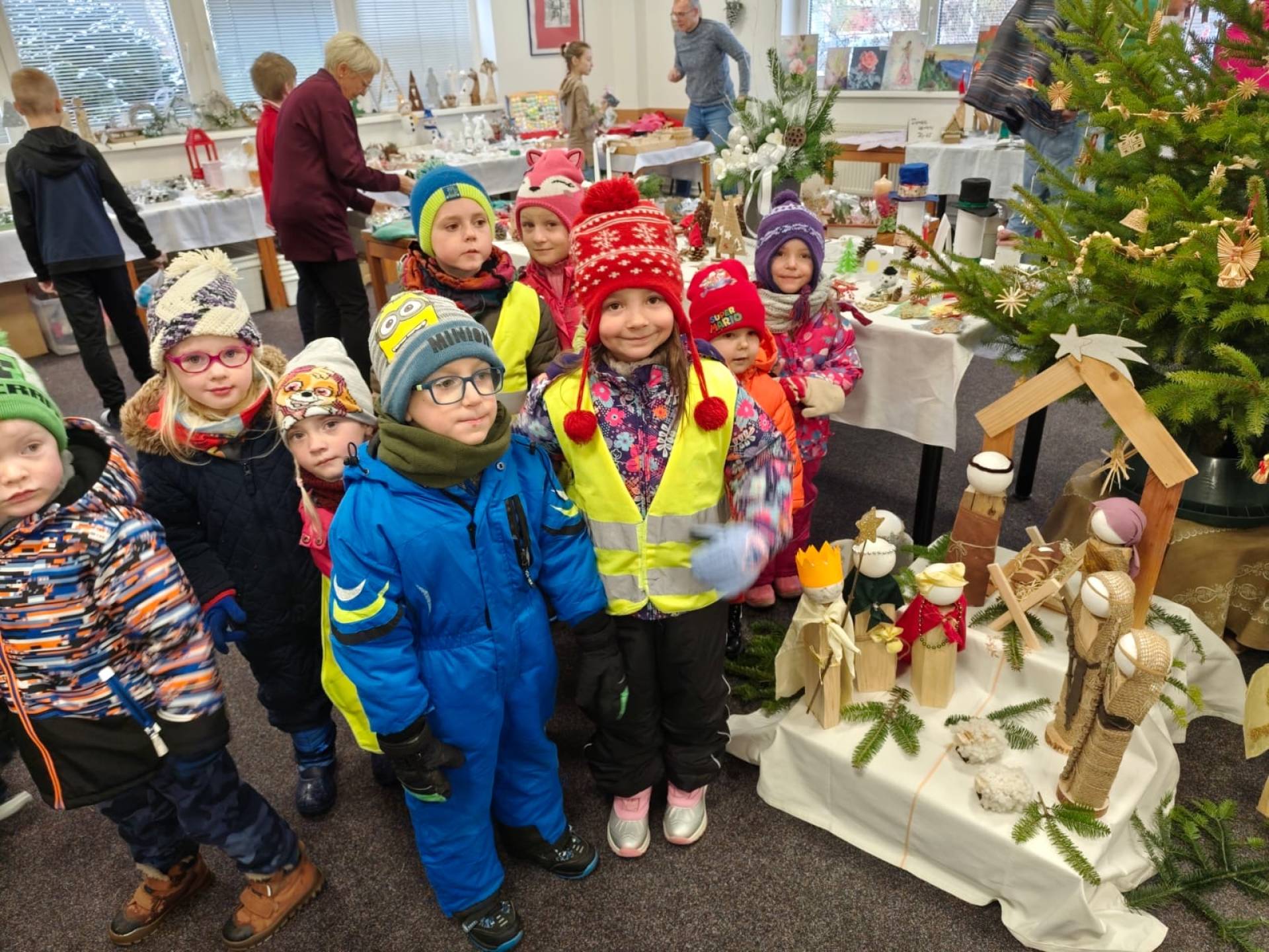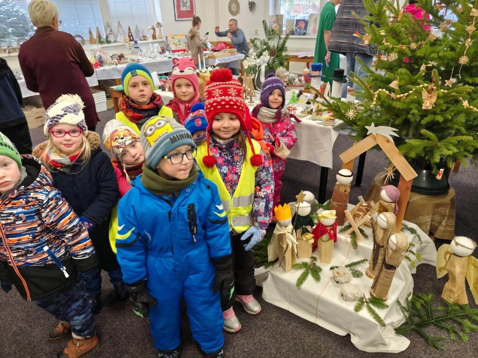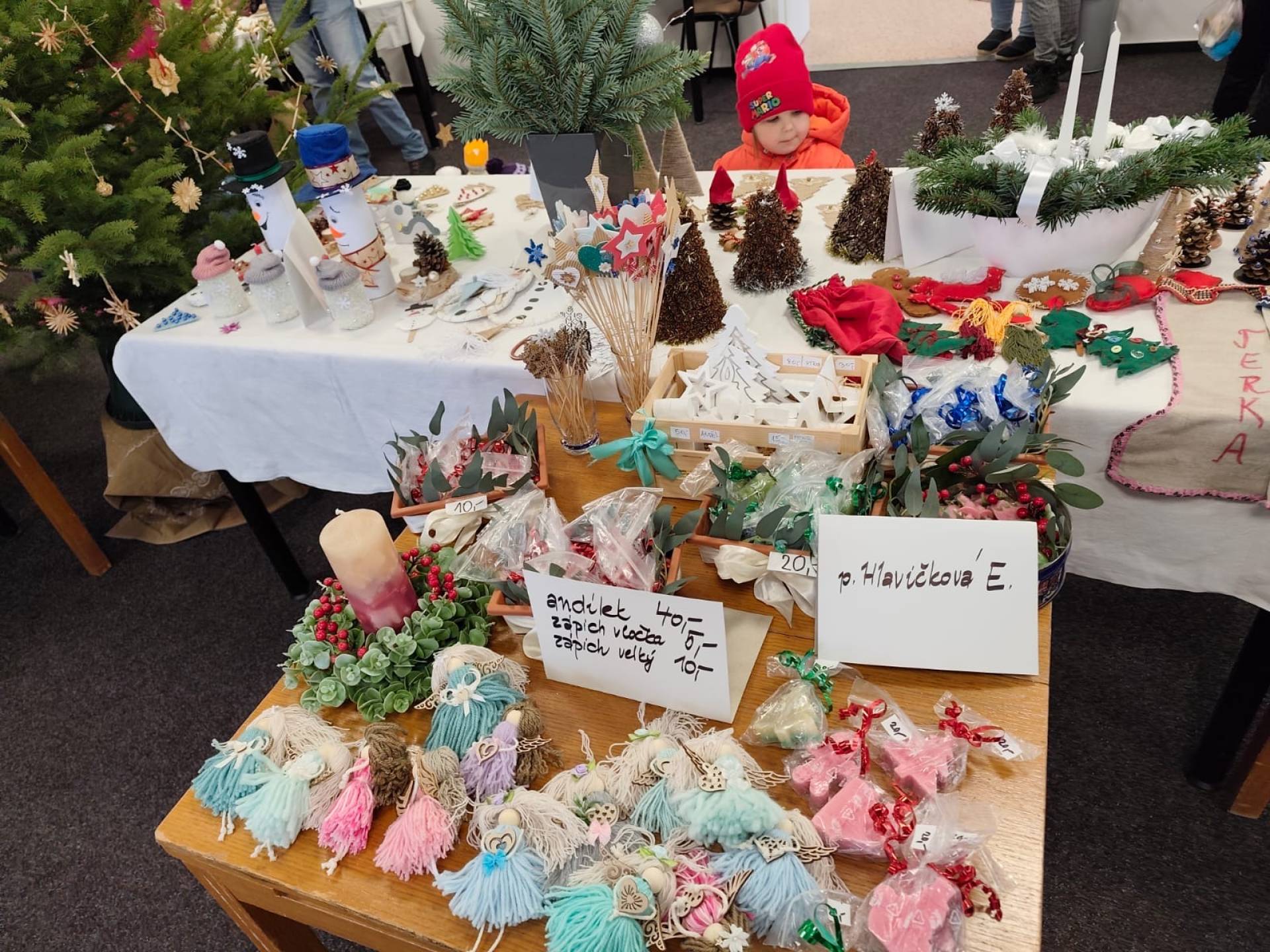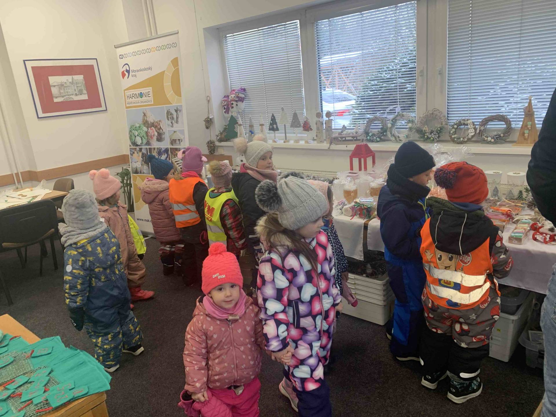 Dne 24.11.2025 jsme vyrazili s dětmi na kouzelnou vánoční výstavku do základní školy. Hned po příchodu nás zaujala široká nabídka krásných rukodělných výrobků a vánočních dekorací, které vytvářely příjemnou sváteční atmosféru. Děti si s nadšením prohlížely všechny vystavené výrobky.
