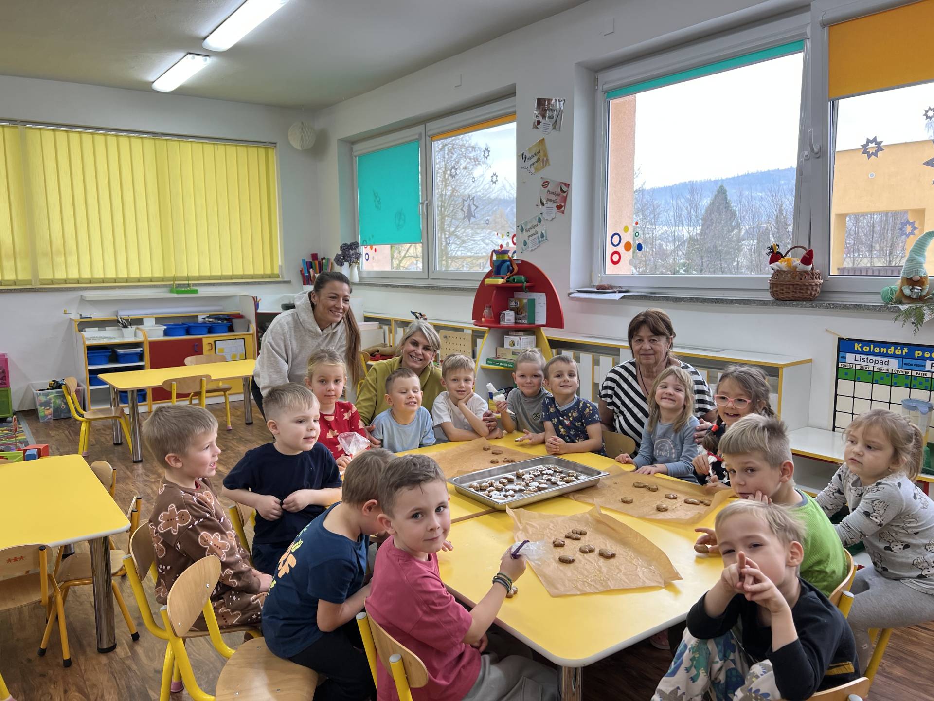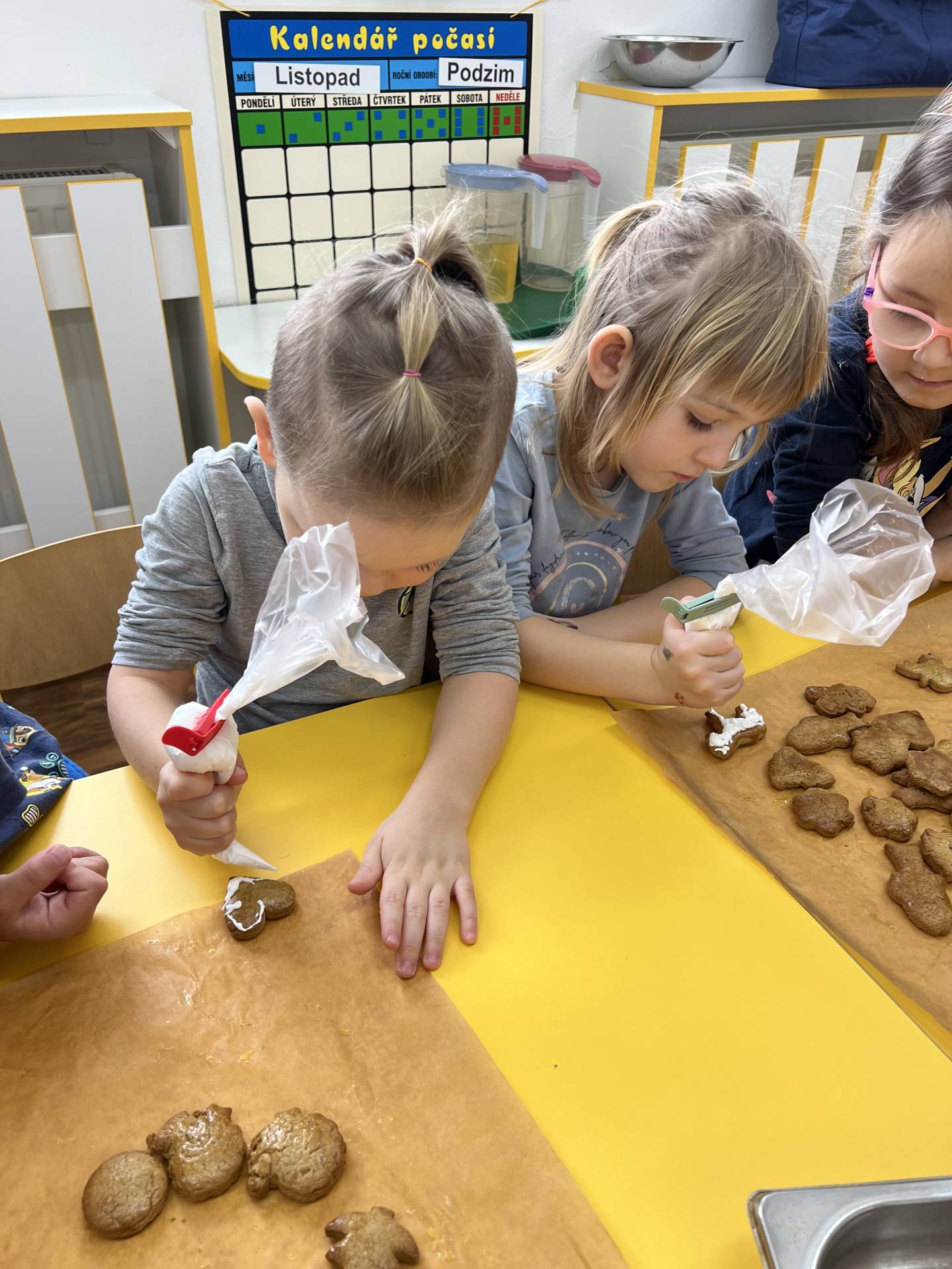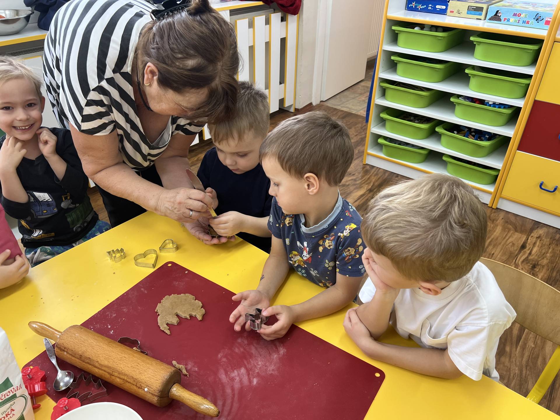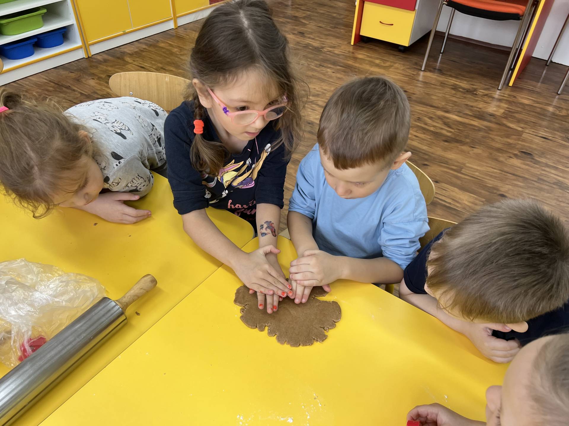 Vše jsme hravě zvládli, vůně perníčků se linula po celé školce a jen co se trochu uleží, tak si na nich pochutnáme.