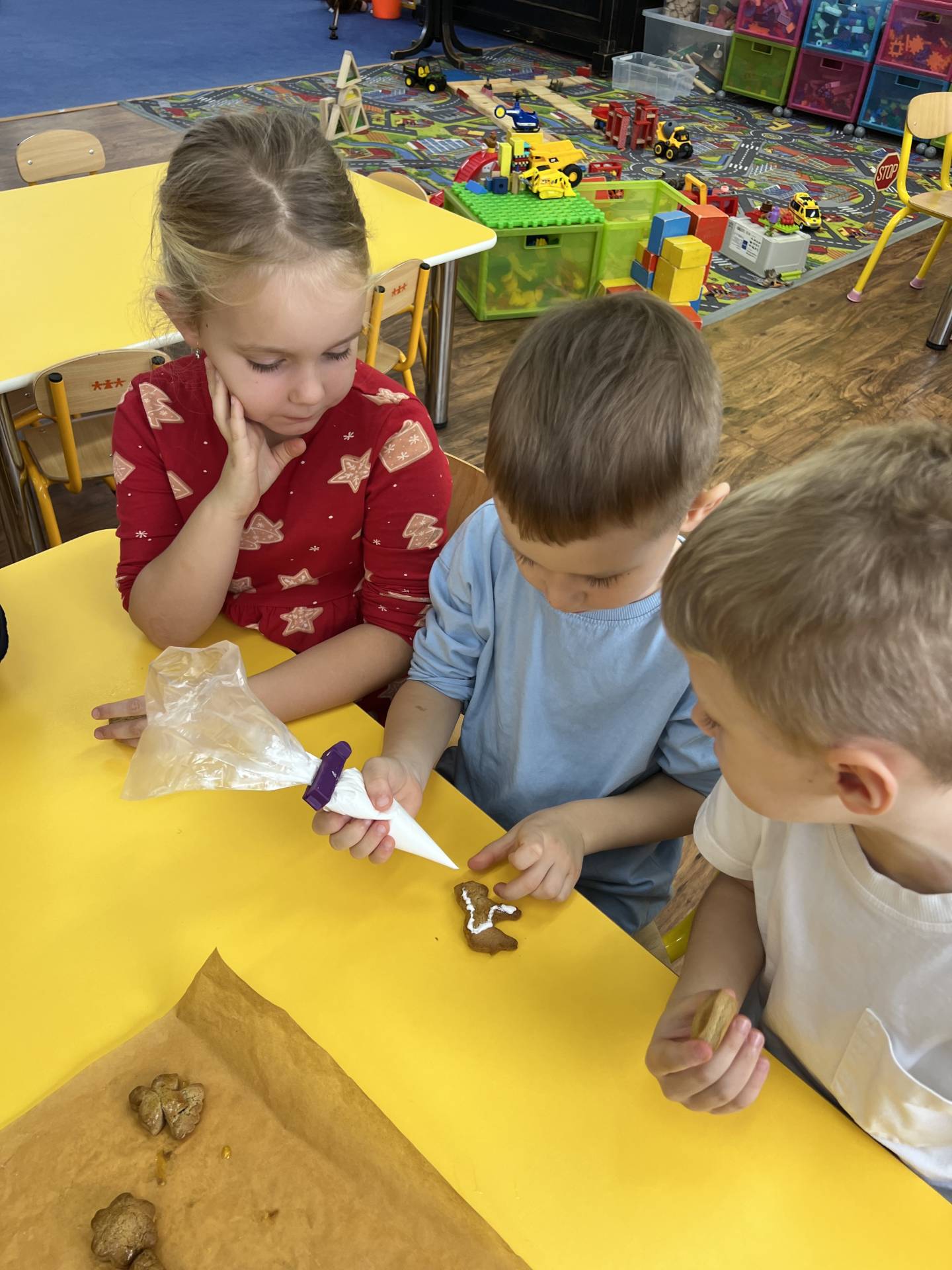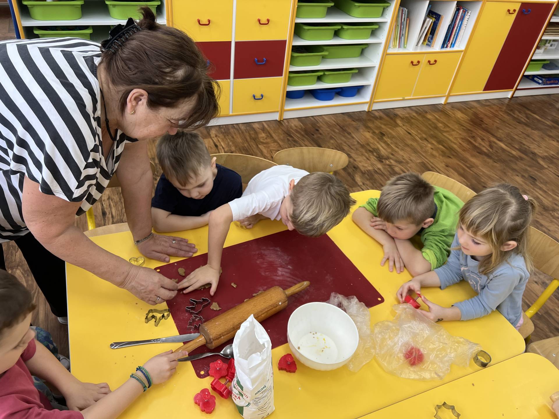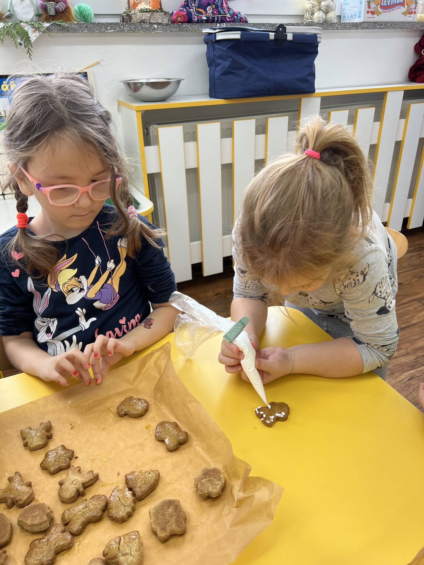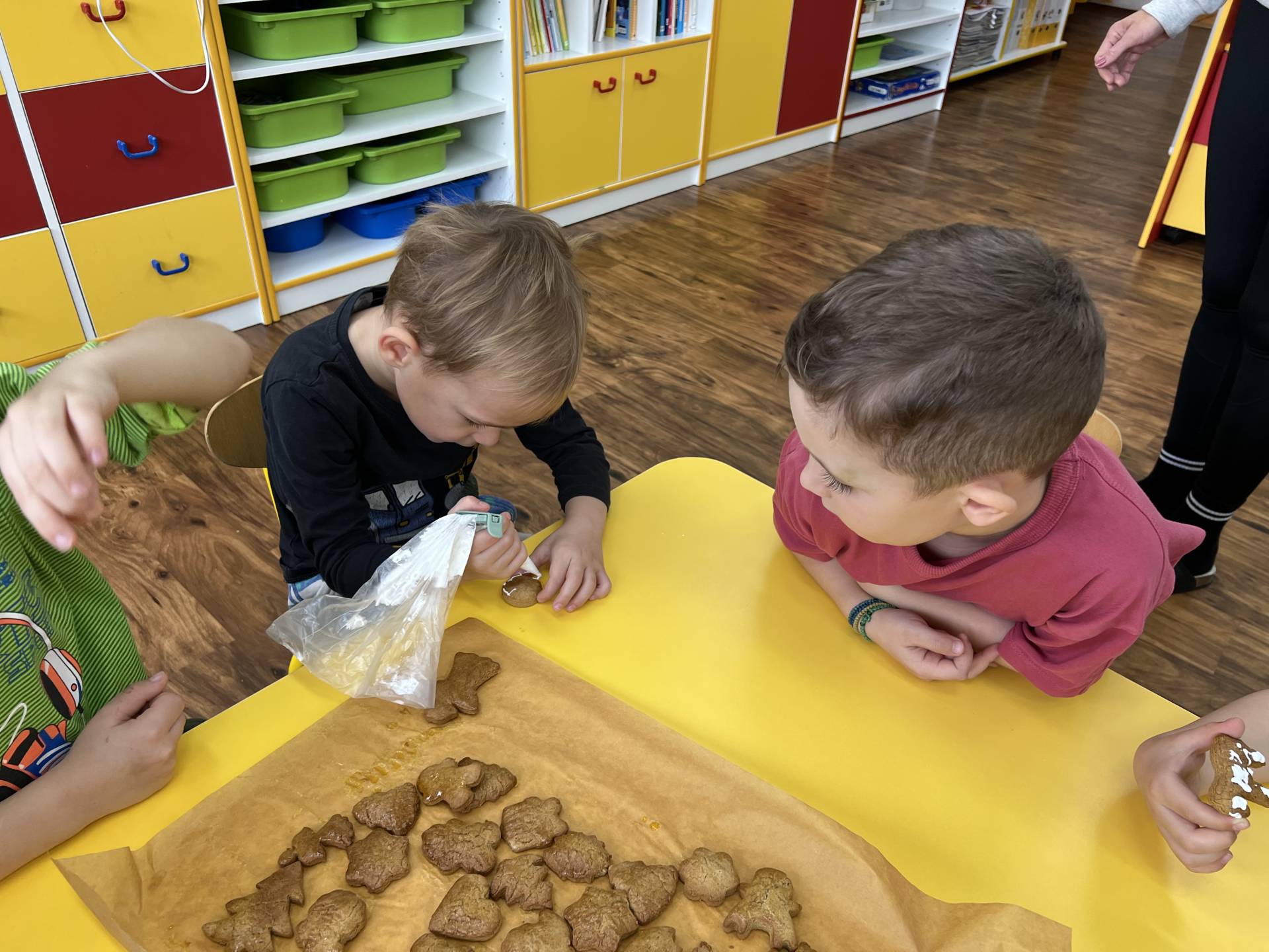 Vše jsme hravě zvládli, vůně perníčků se linula po celé školce a jen co se trochu uleží, tak si na nich pochutnáme.