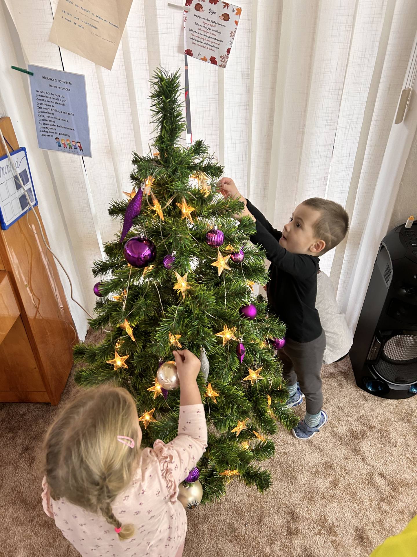 Společně jsme také zdobili vánoční stromeček. Každá ozdoba měla své místo a děti byly pyšné, že se mohly podílet na výzdobě třídy.