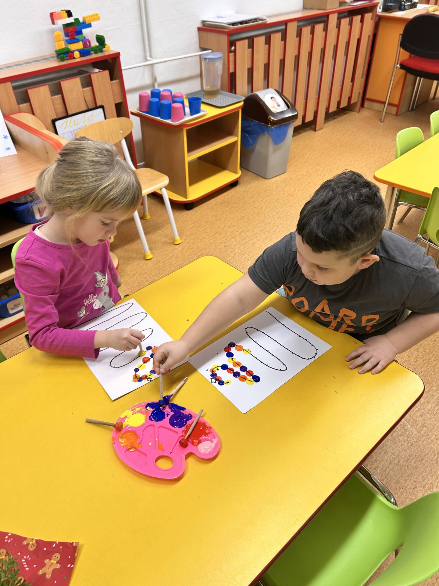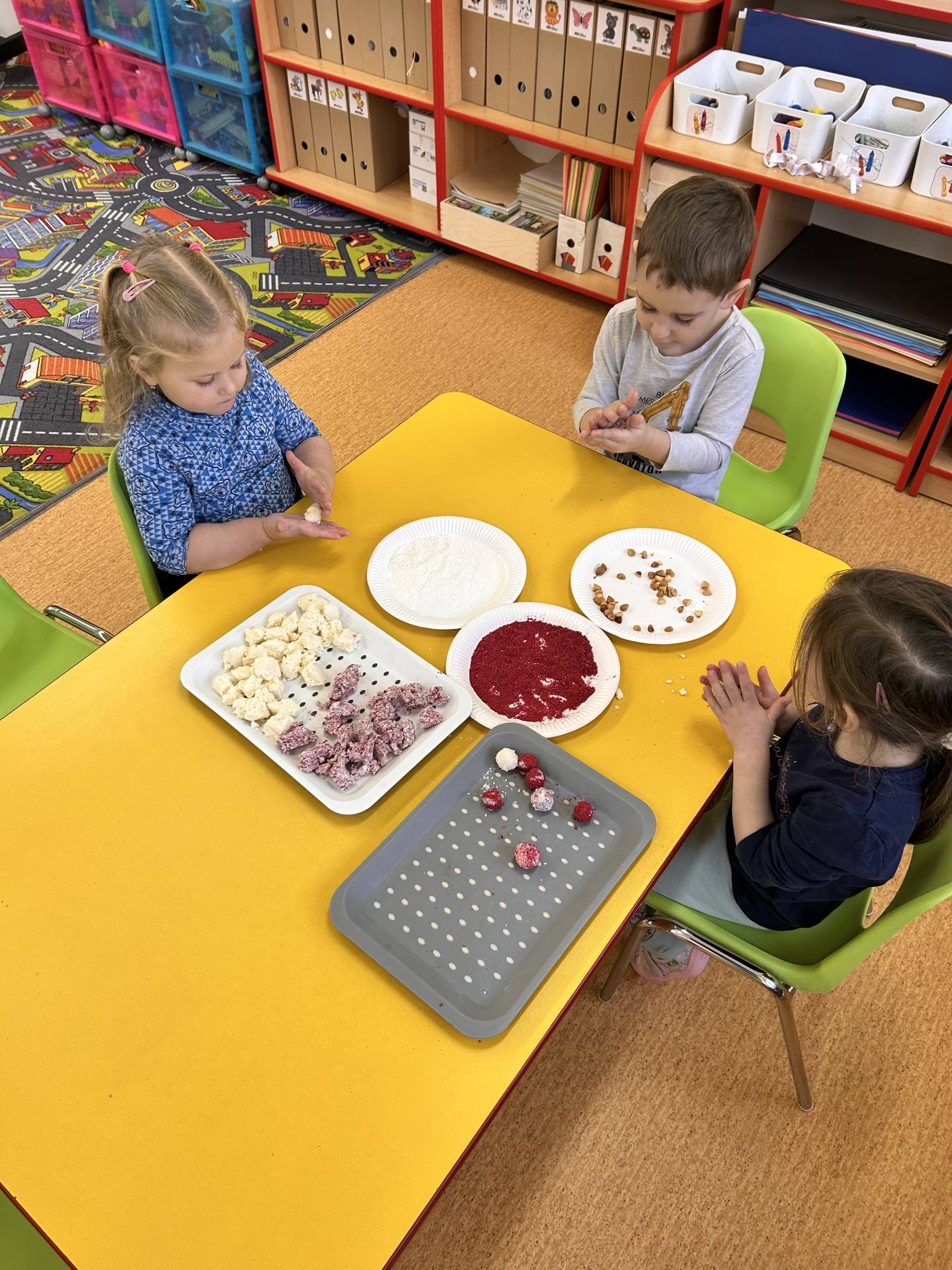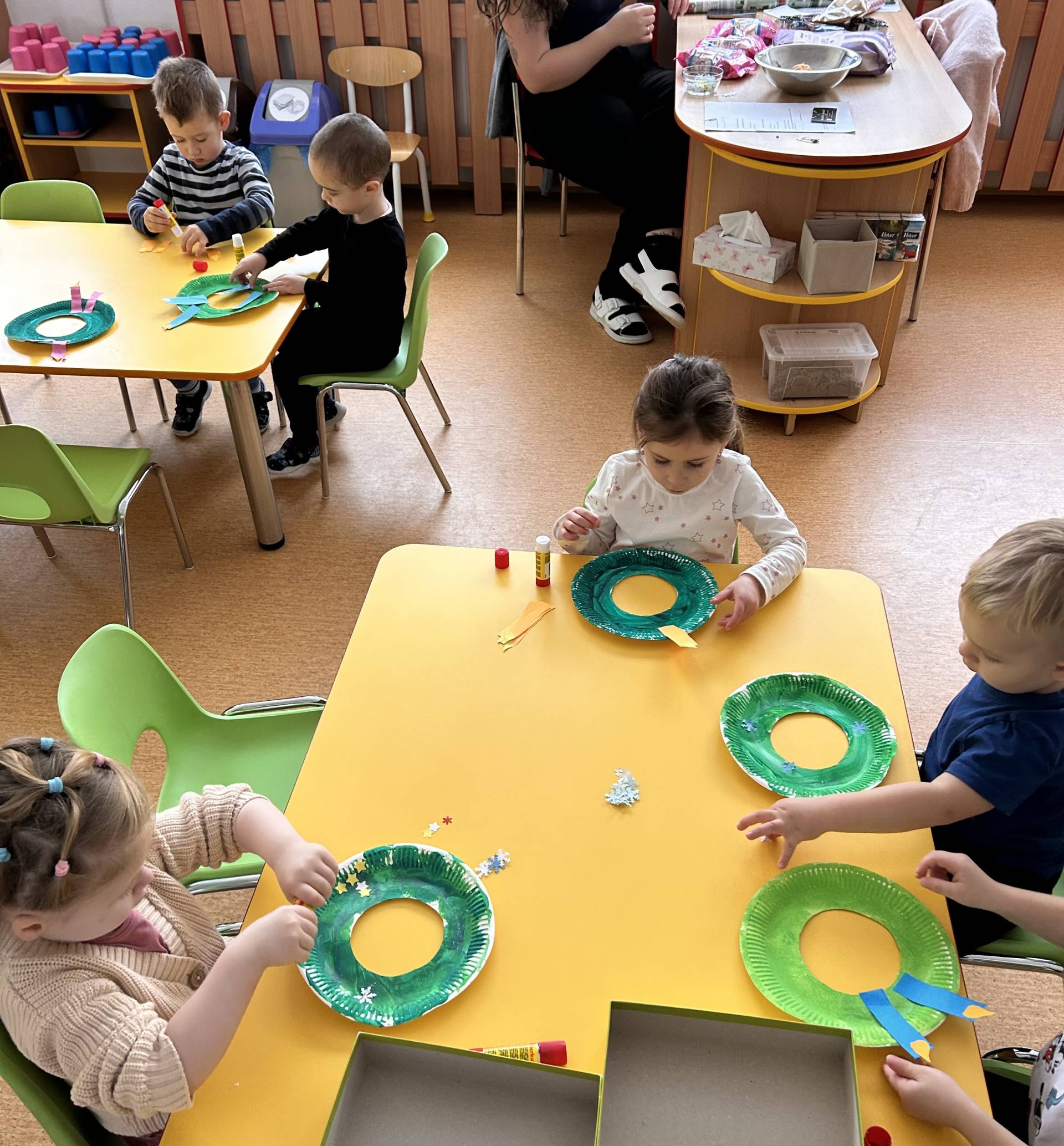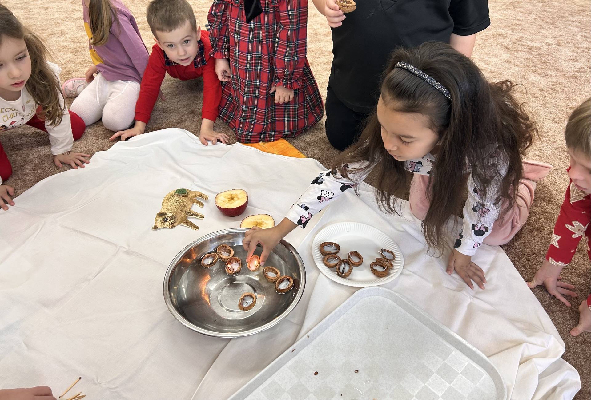 Stihli jsme vánoční besídku, návštěvu zámku a nechybělo ani tvoření. Vyrobili jsme si vánoční svícny, kterými jsme ozdobili stolečky. Velký úspěch mělo také společné vyrábění nepečených cukrovinek – sladkých kuliček, které si děti samy tvarovaly a s nadšením ochutnávaly. Procvičily si jemnou motoriku, trpělivost i spolupráci a zároveň si užily radost z vlastního výtvoru.