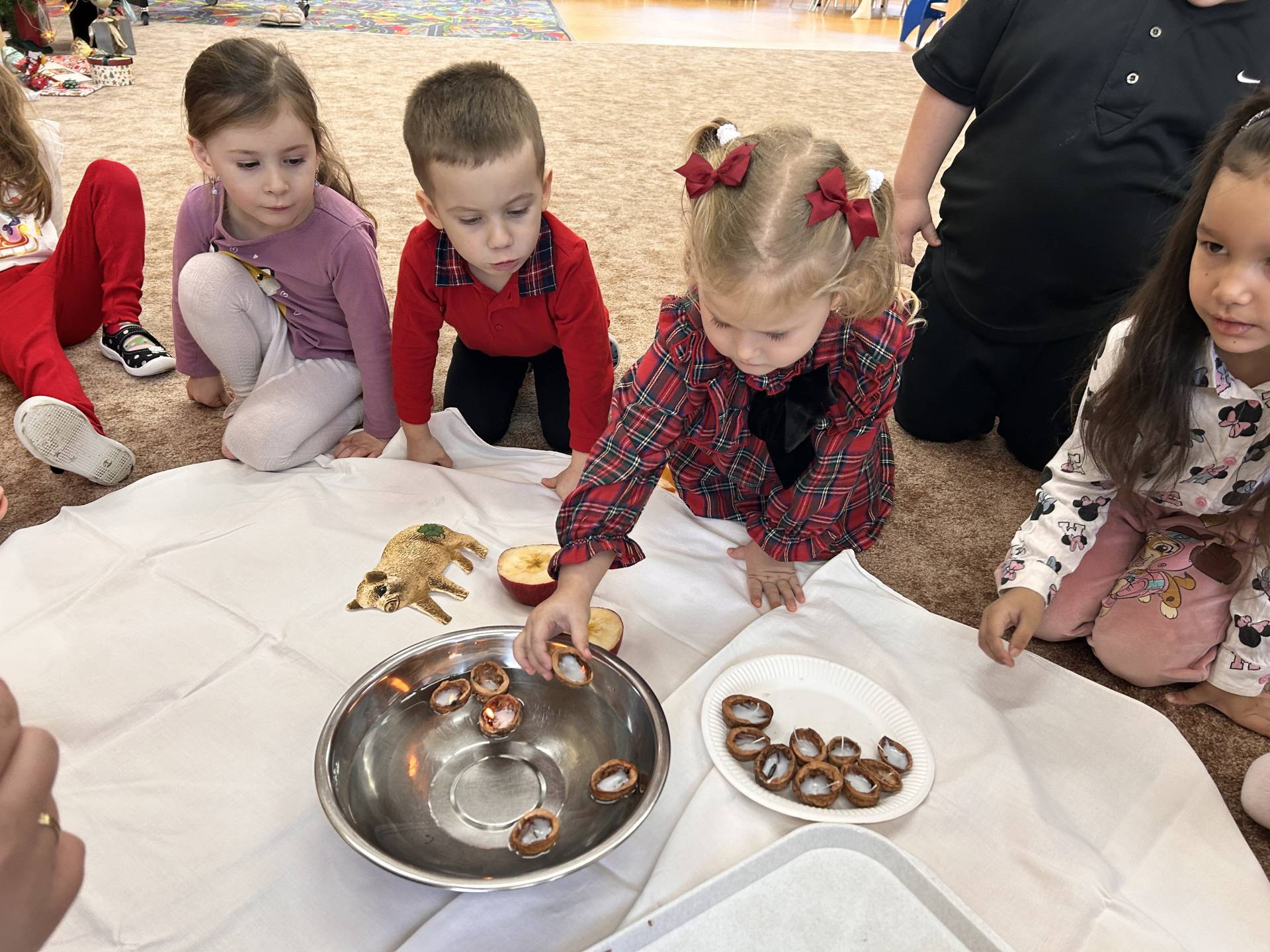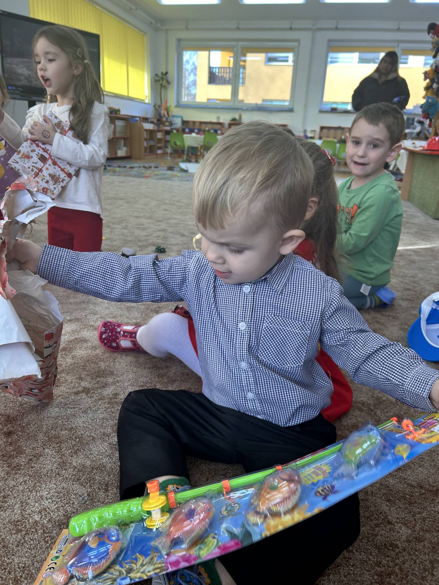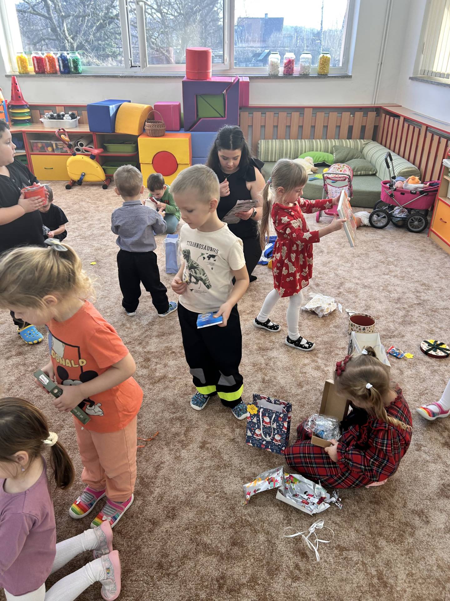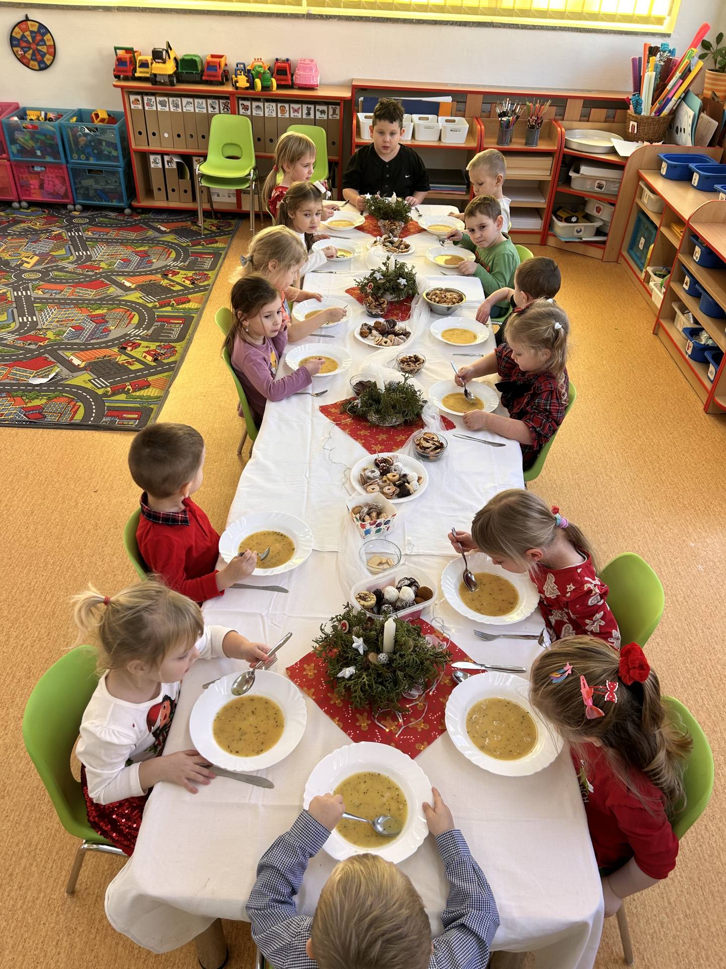 Vyvrcholením celého prosince bylo štědré dopoledne. Do školky přišel “školkový” Ježíšek a přinesl dětem dárečky. Losovali jsme si dáreček od kamaráda, dodržovali vánoční tradice, ochutnávali cukroví, povídali si o Vánocích a užívali si klidnou, slavnostní atmosféru při poslechu koled. Dětská radost, rozzářené oči a upřímné nadšení byly tou nejkrásnější odměnou.