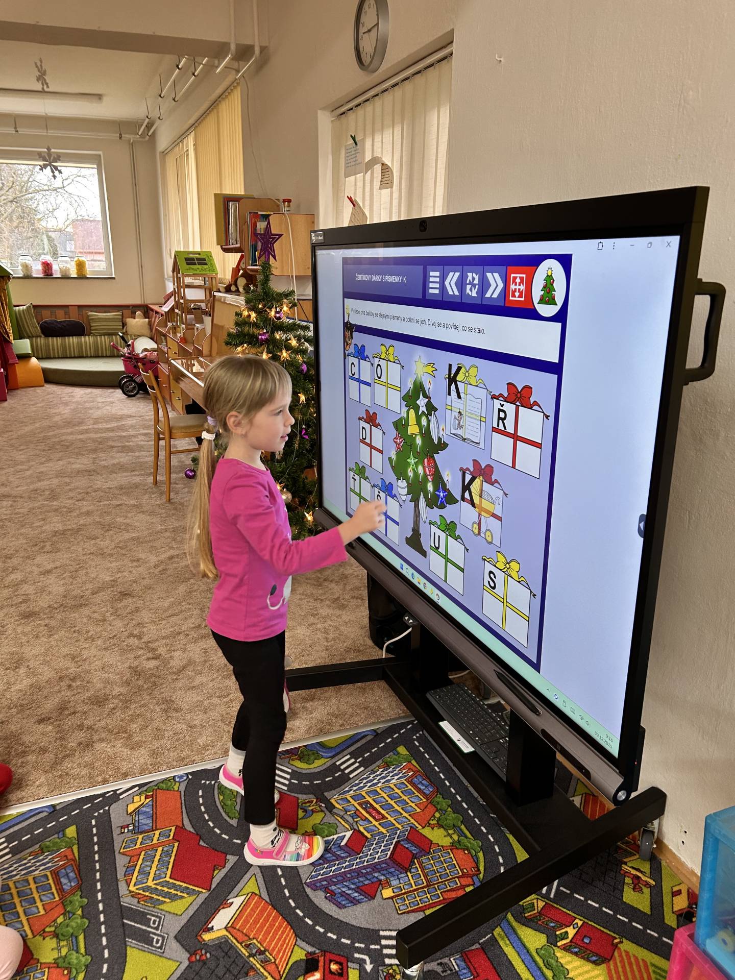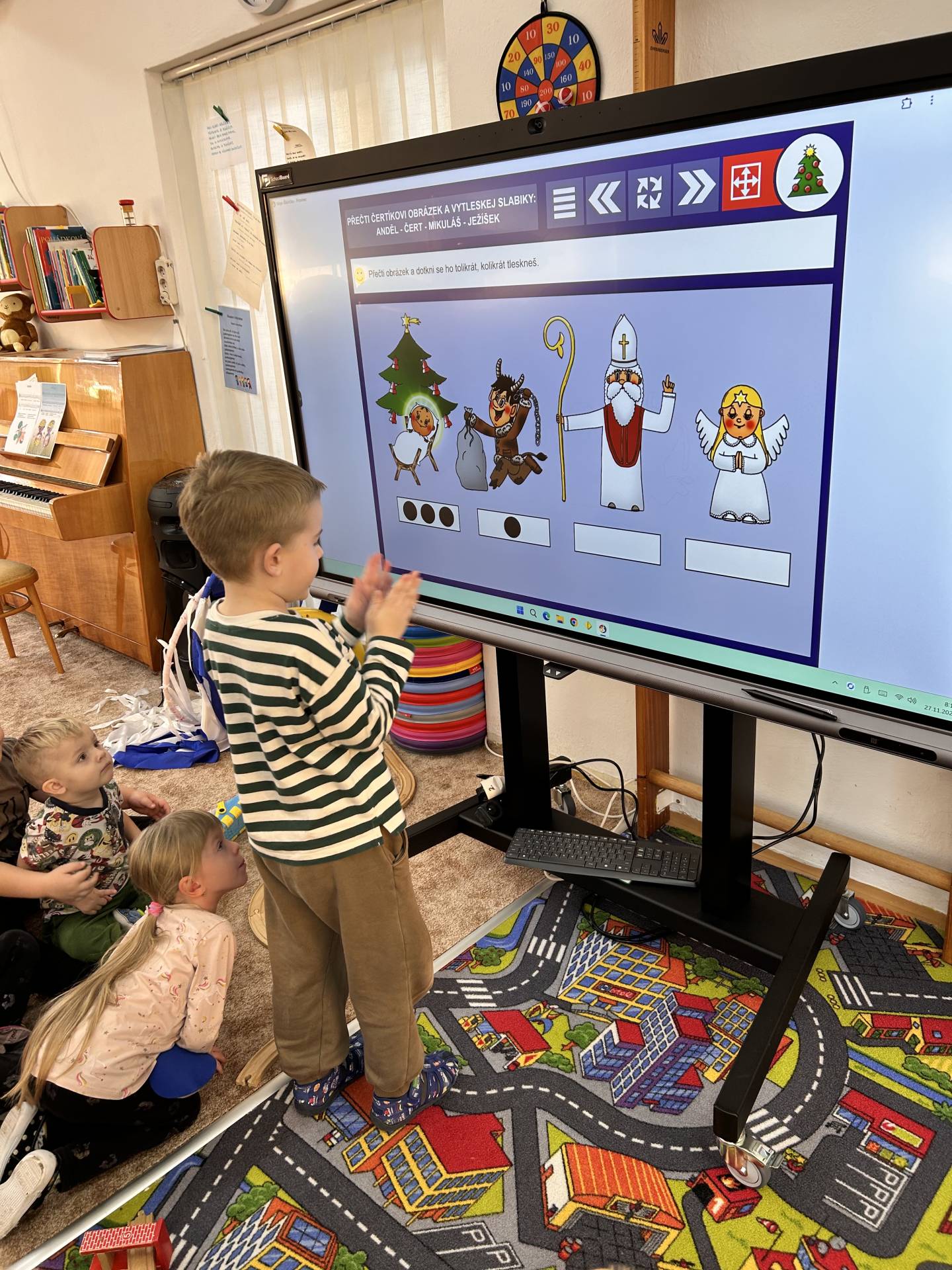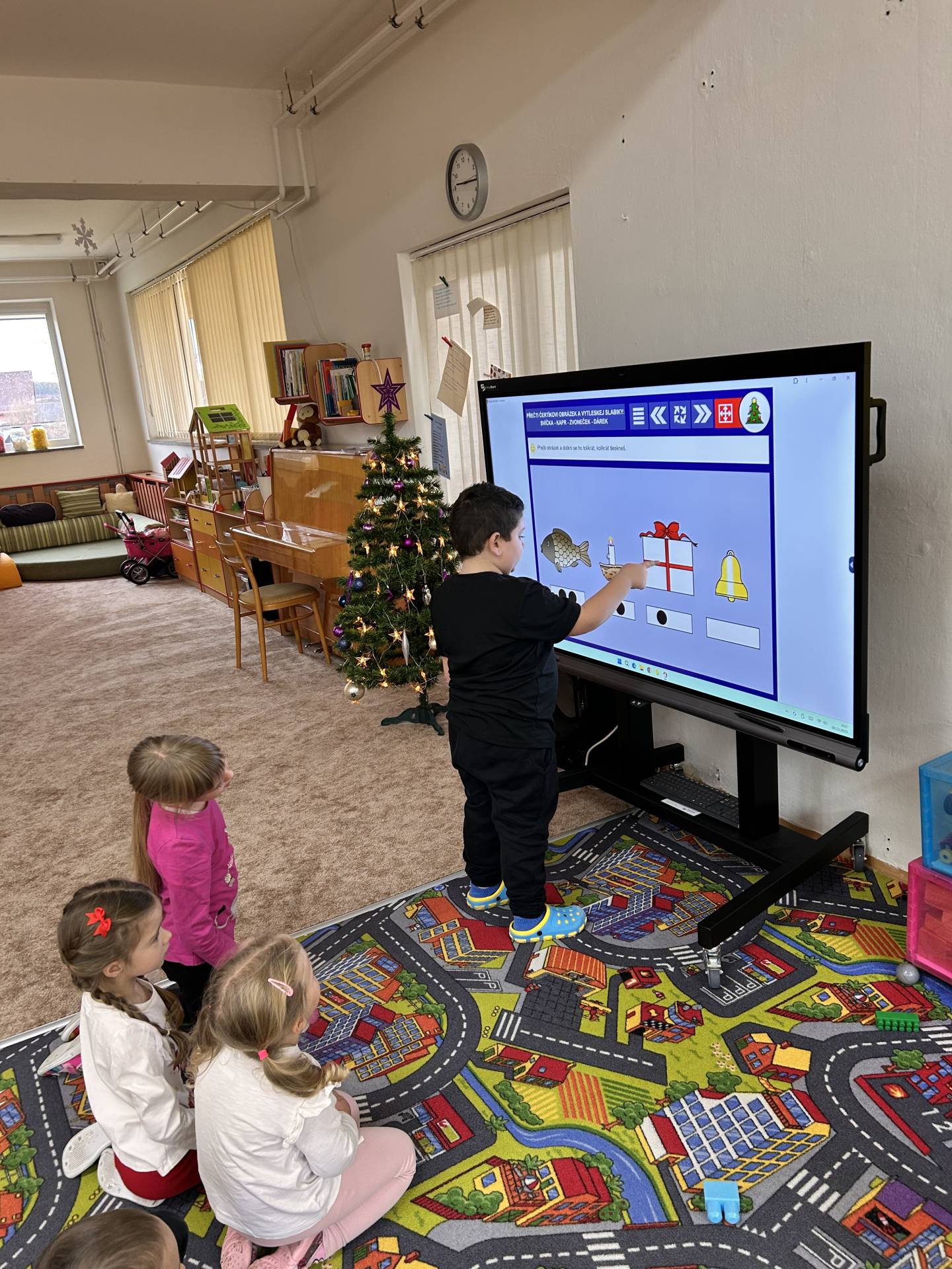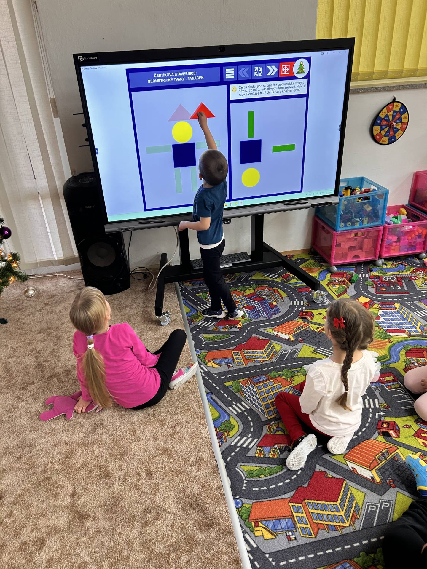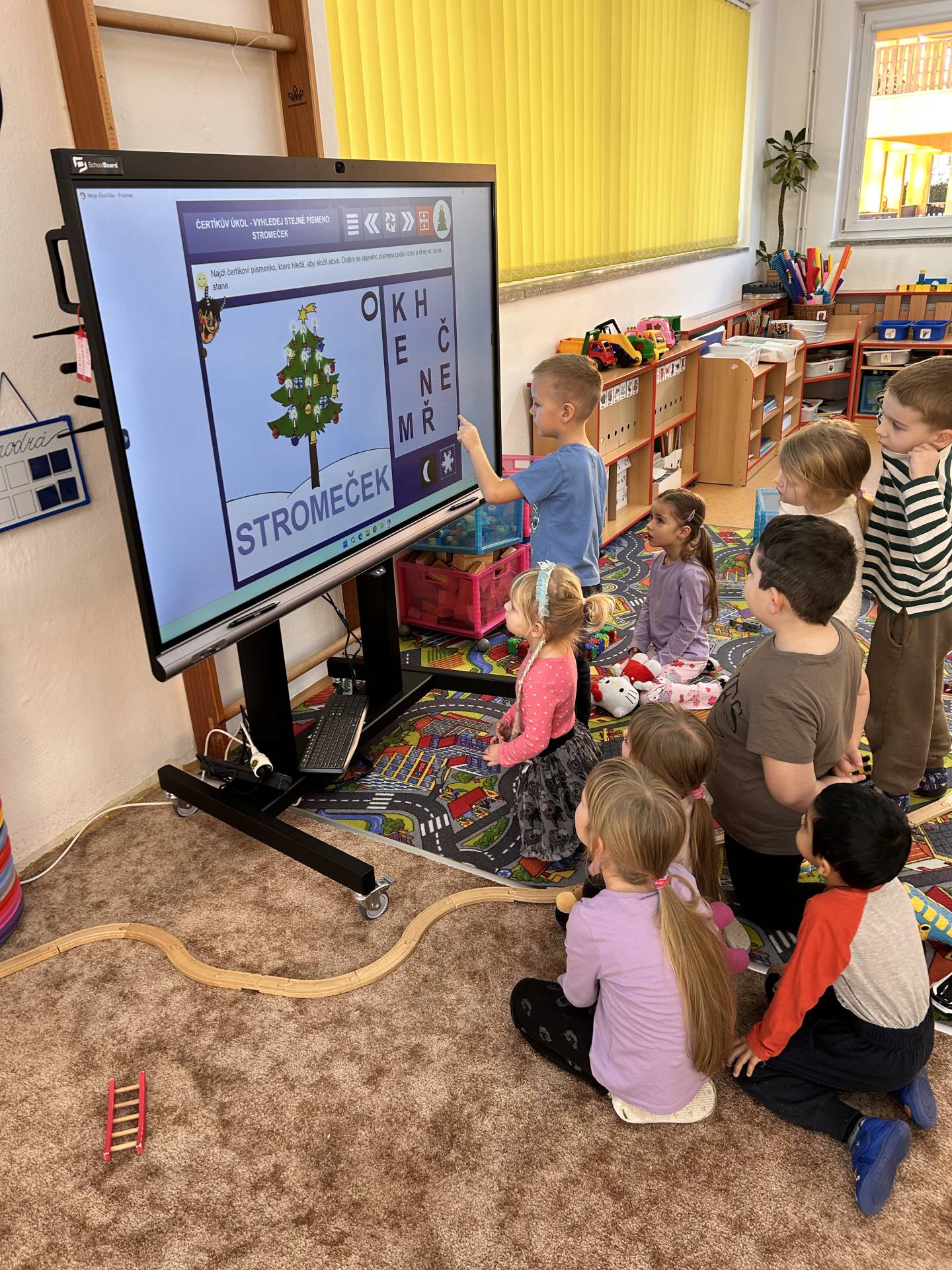Milým překvapením pro nás byl nový multiboard, který děti ihned zaujal a který se stane skvělým pomocníkem při každodenní výuce.