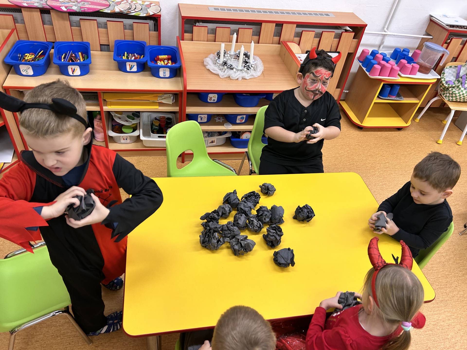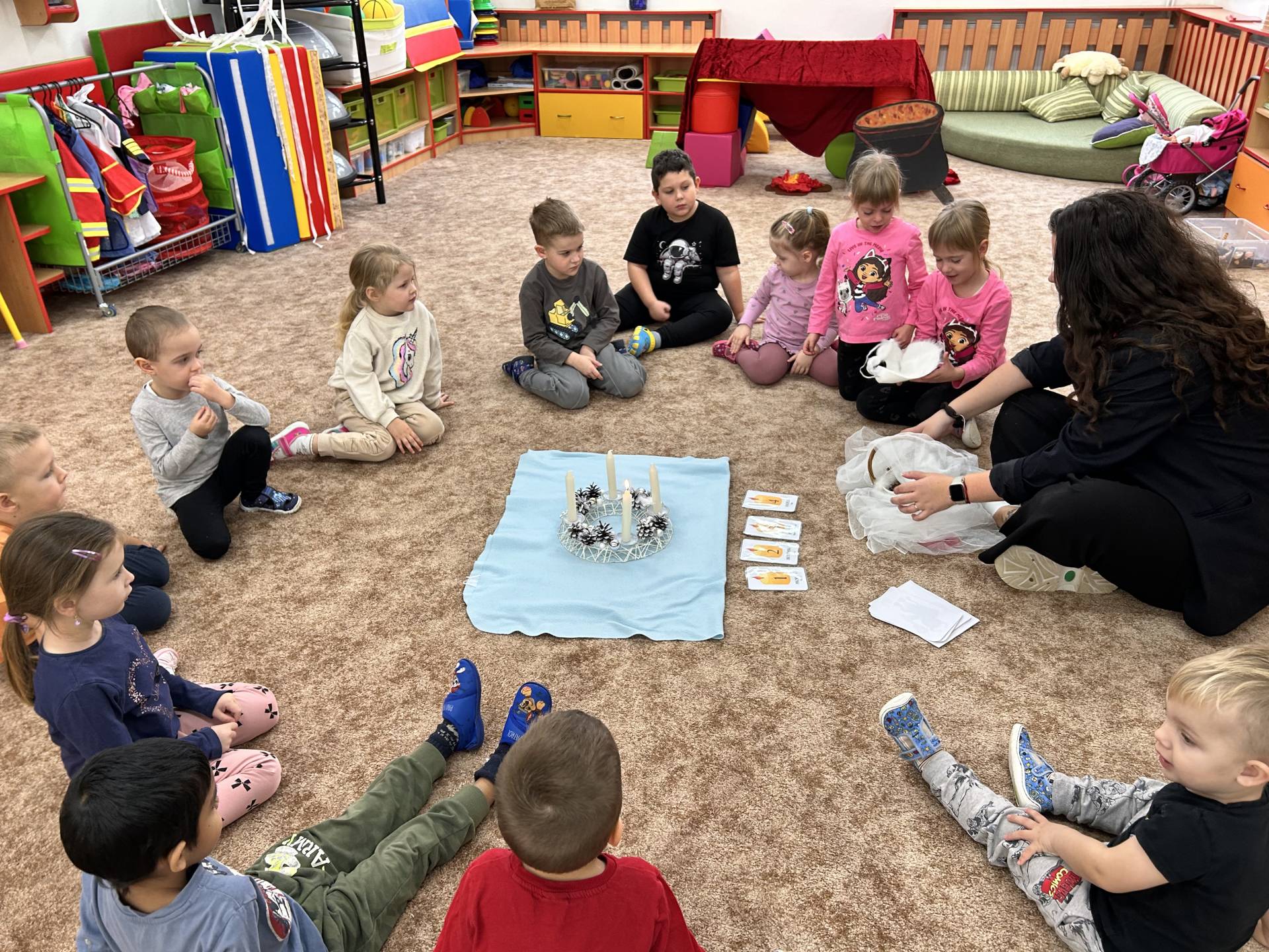 Velkým zážitkem byla také návštěva Mikuláše, čerta a anděla. Děti statečně přednesly básničky, a i když se někteří čerta trochu obávali, nakonec vše dopadlo s úsměvem a radostí.