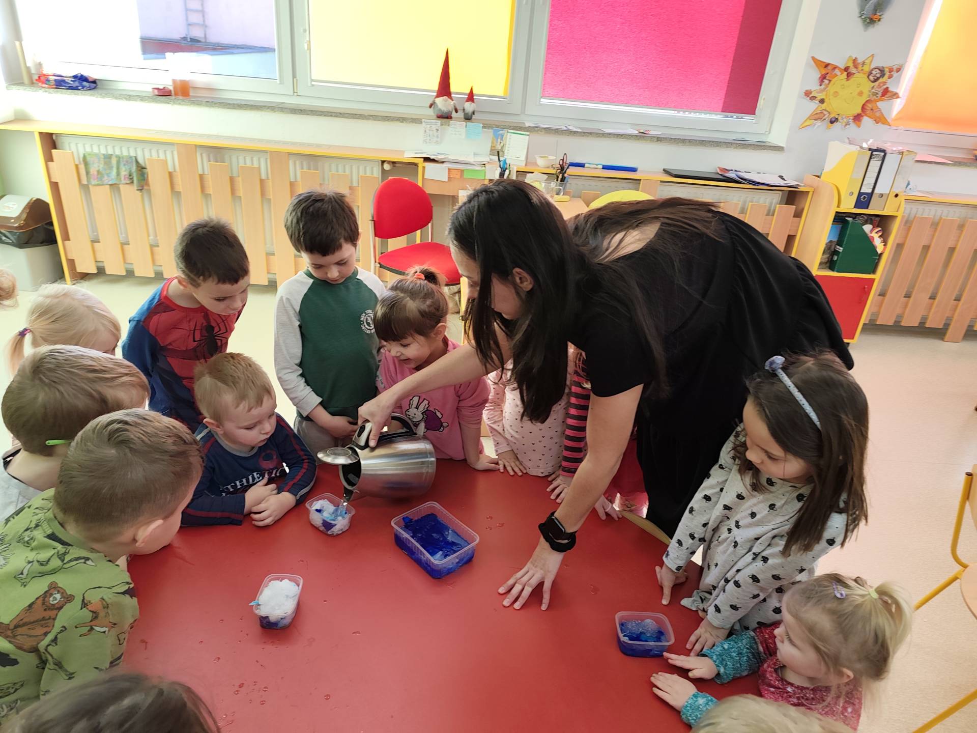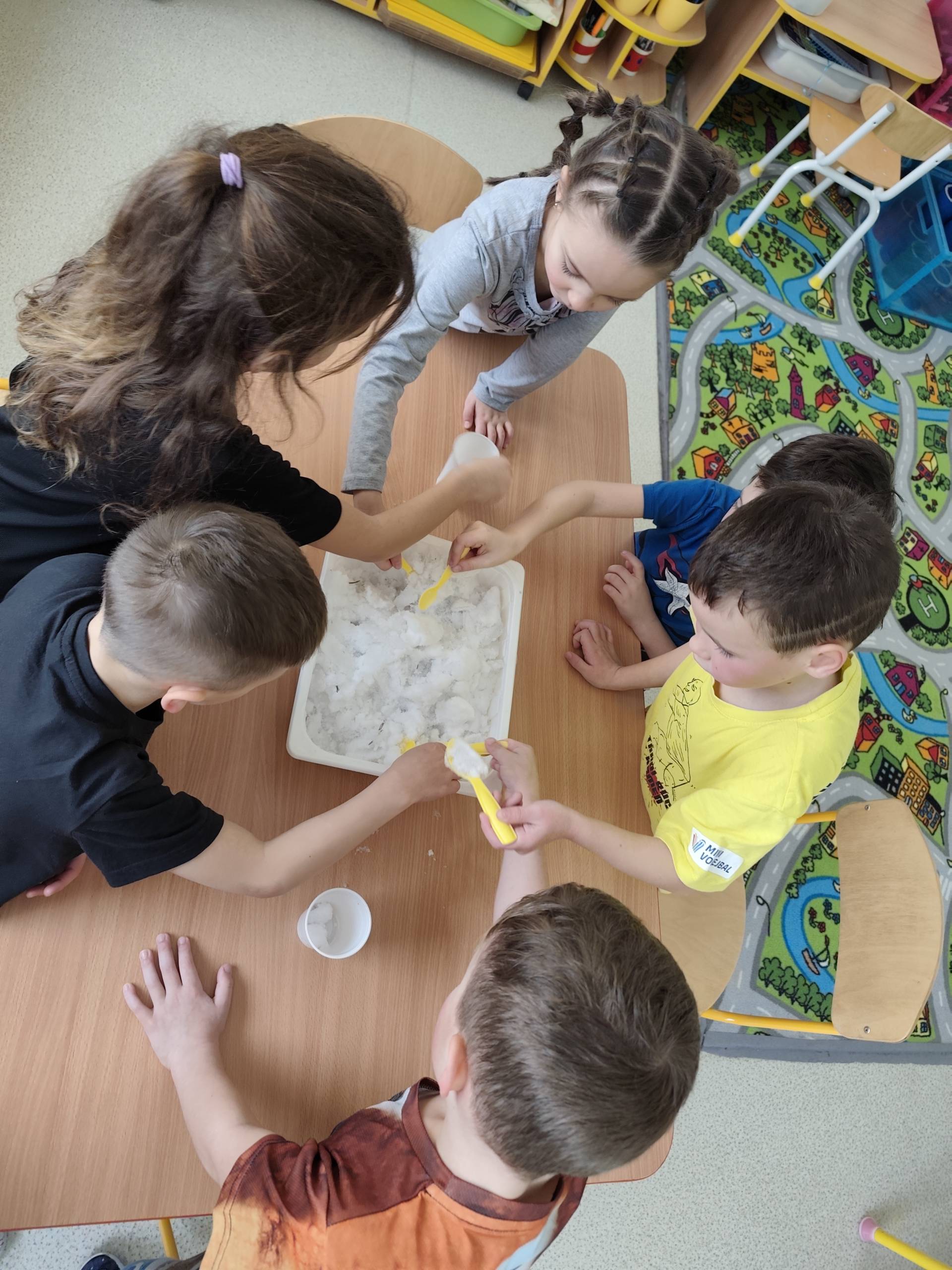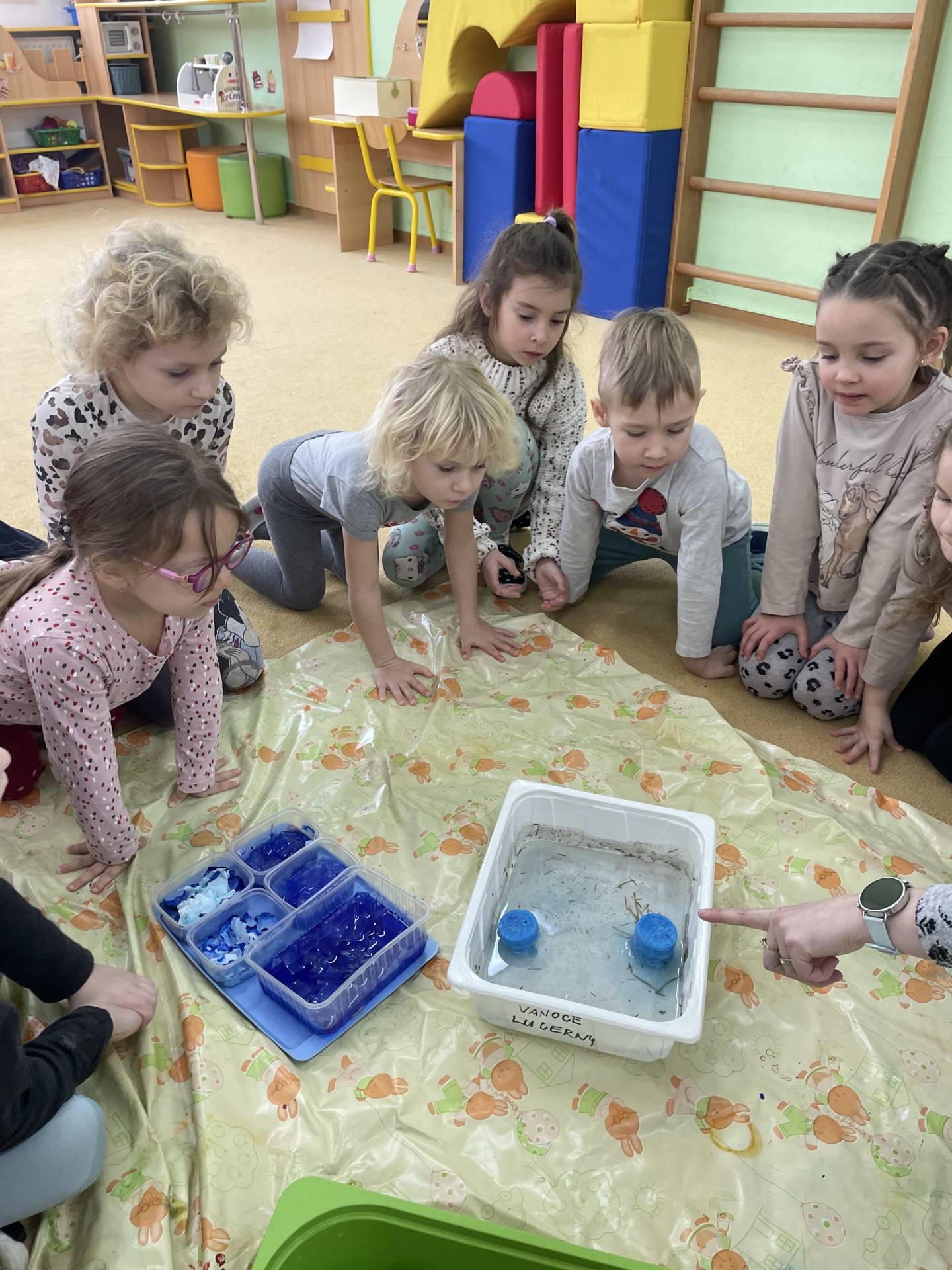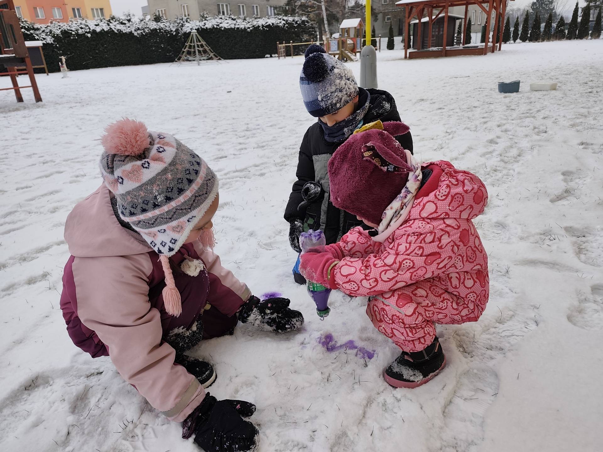 Zima je v plném proudu a tudíž máme dostatek sněhu i ledu na pokusy a experimenty k badatelským činnostem. Veškeré aktivity probíhaly v rámci inovativního vzdělávání, kde děti formou zážitkové pedagogiky zkoumaly transformaci vody.
