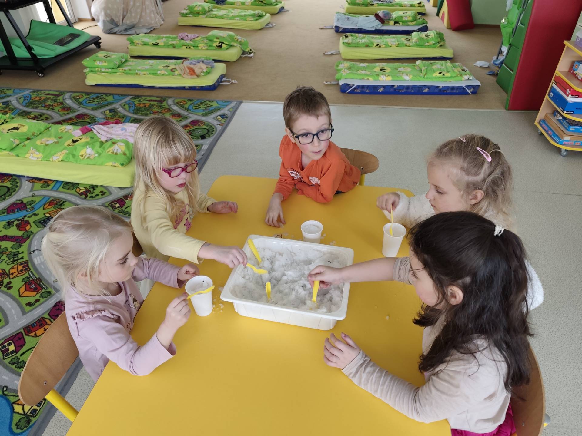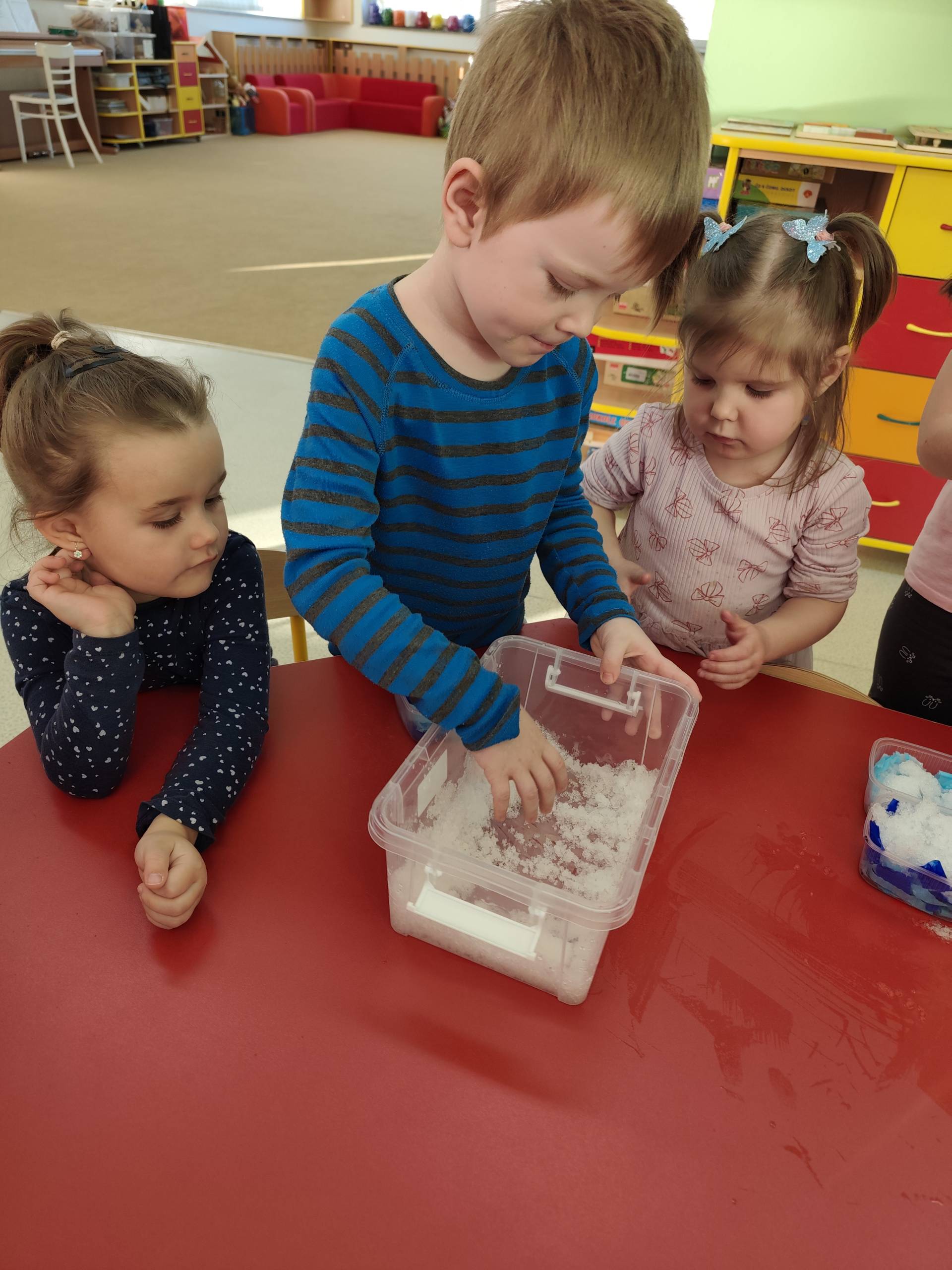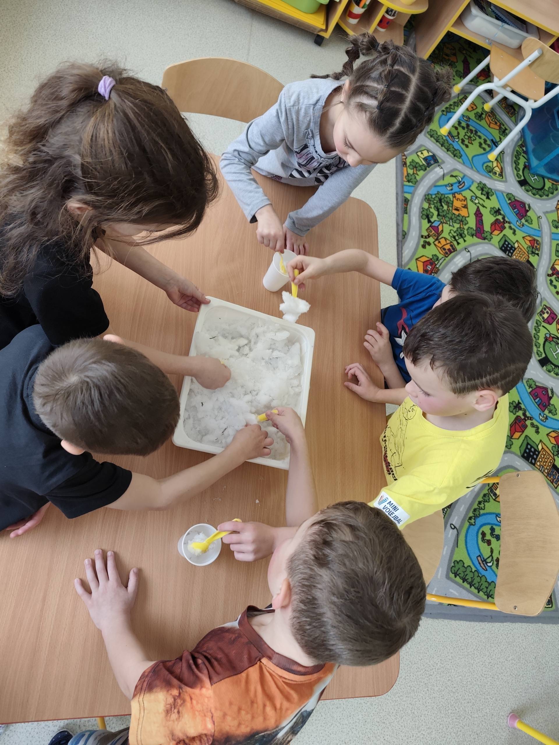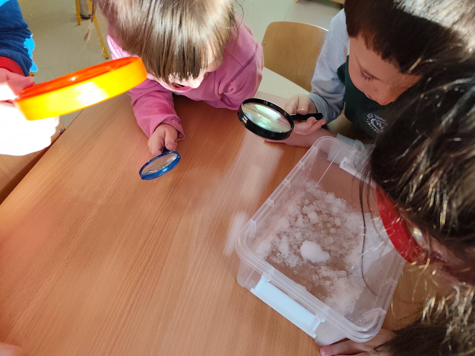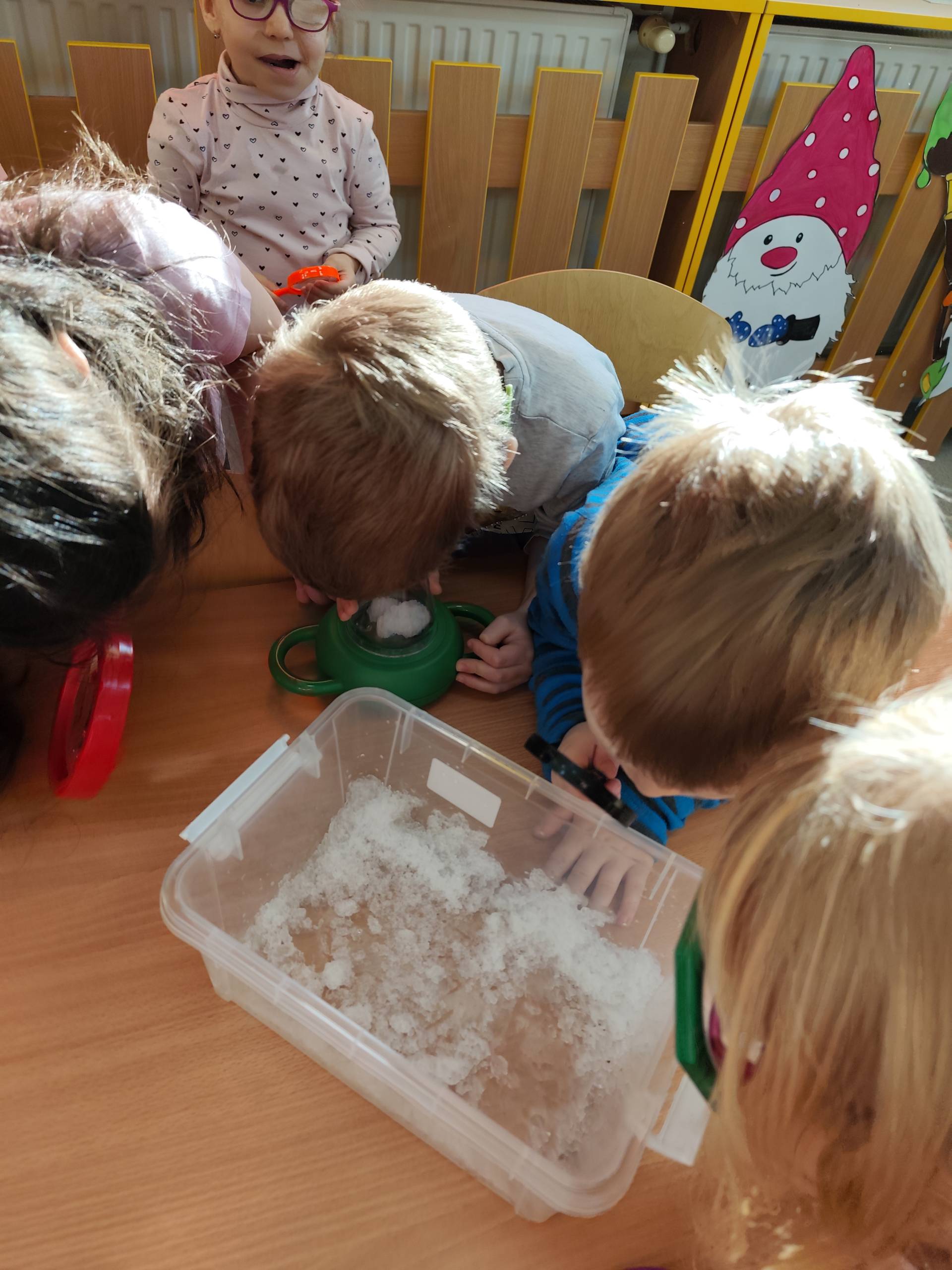 Zima je v plném proudu a tudíž máme dostatek sněhu i ledu na pokusy a experimenty k badatelským činnostem. Veškeré aktivity probíhaly v rámci inovativního vzdělávání, kde děti formou zážitkové pedagogiky zkoumaly transformaci vody.