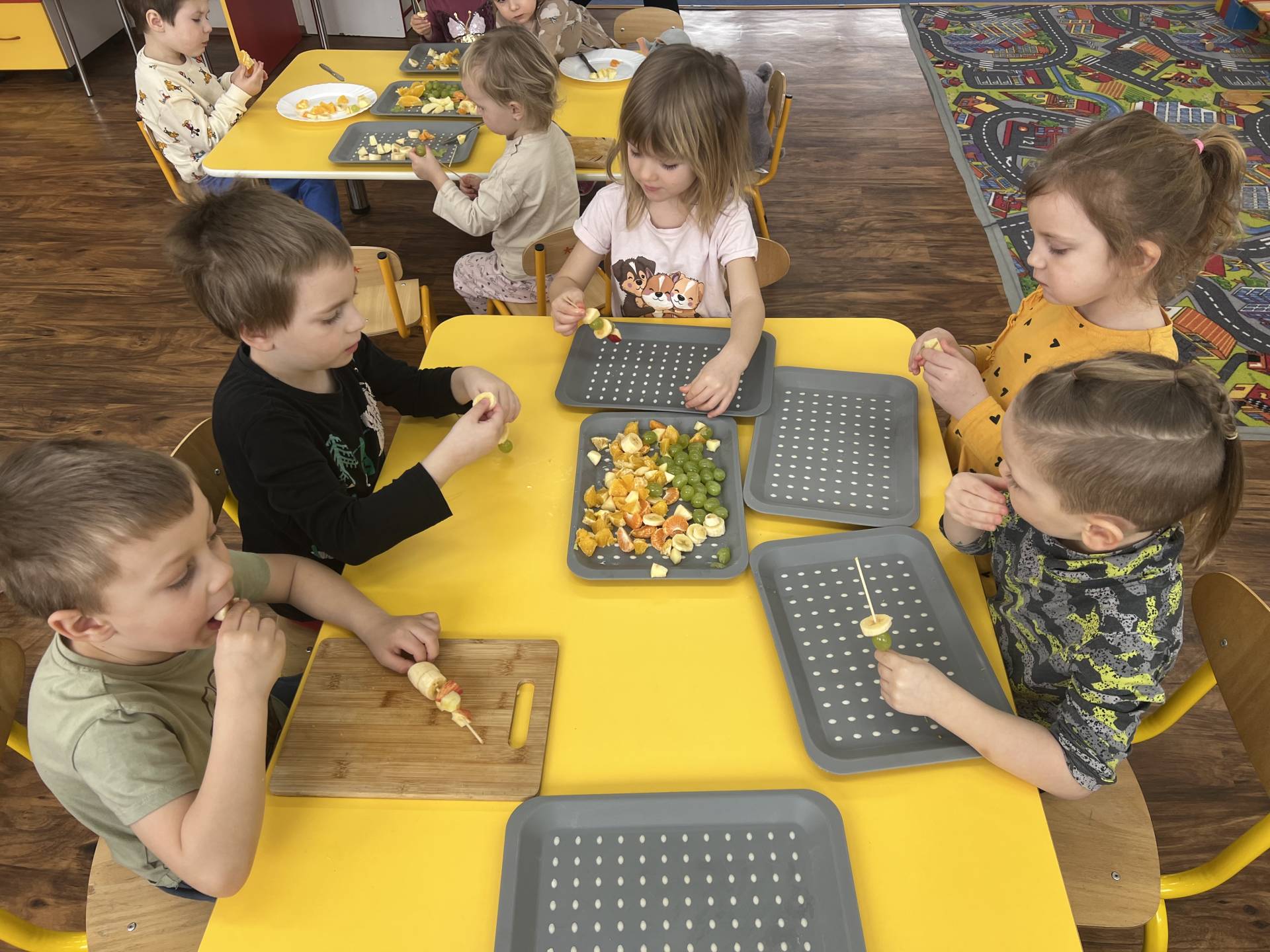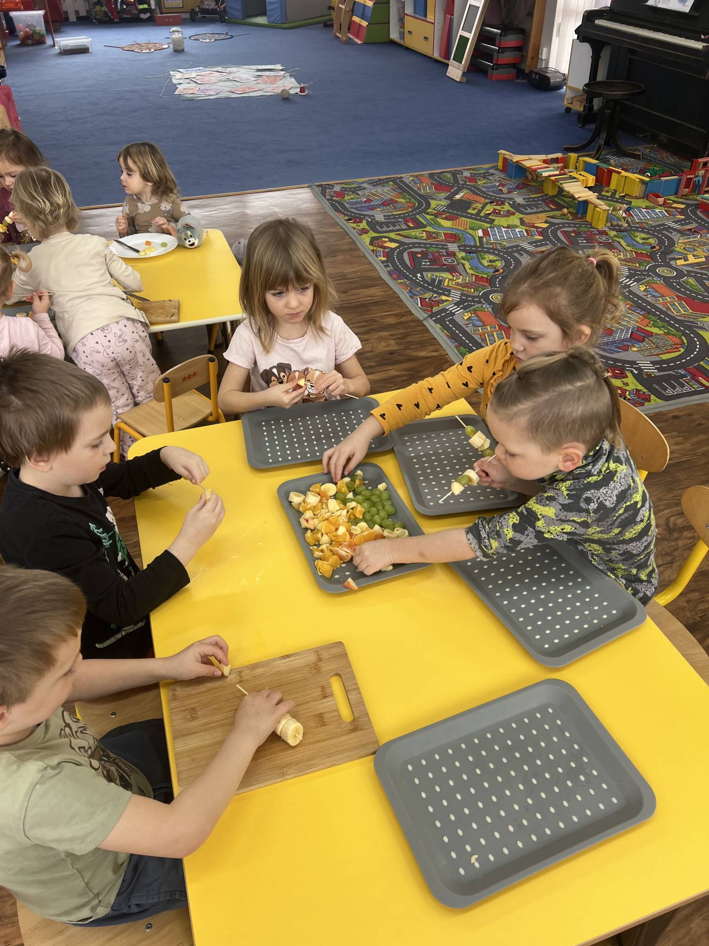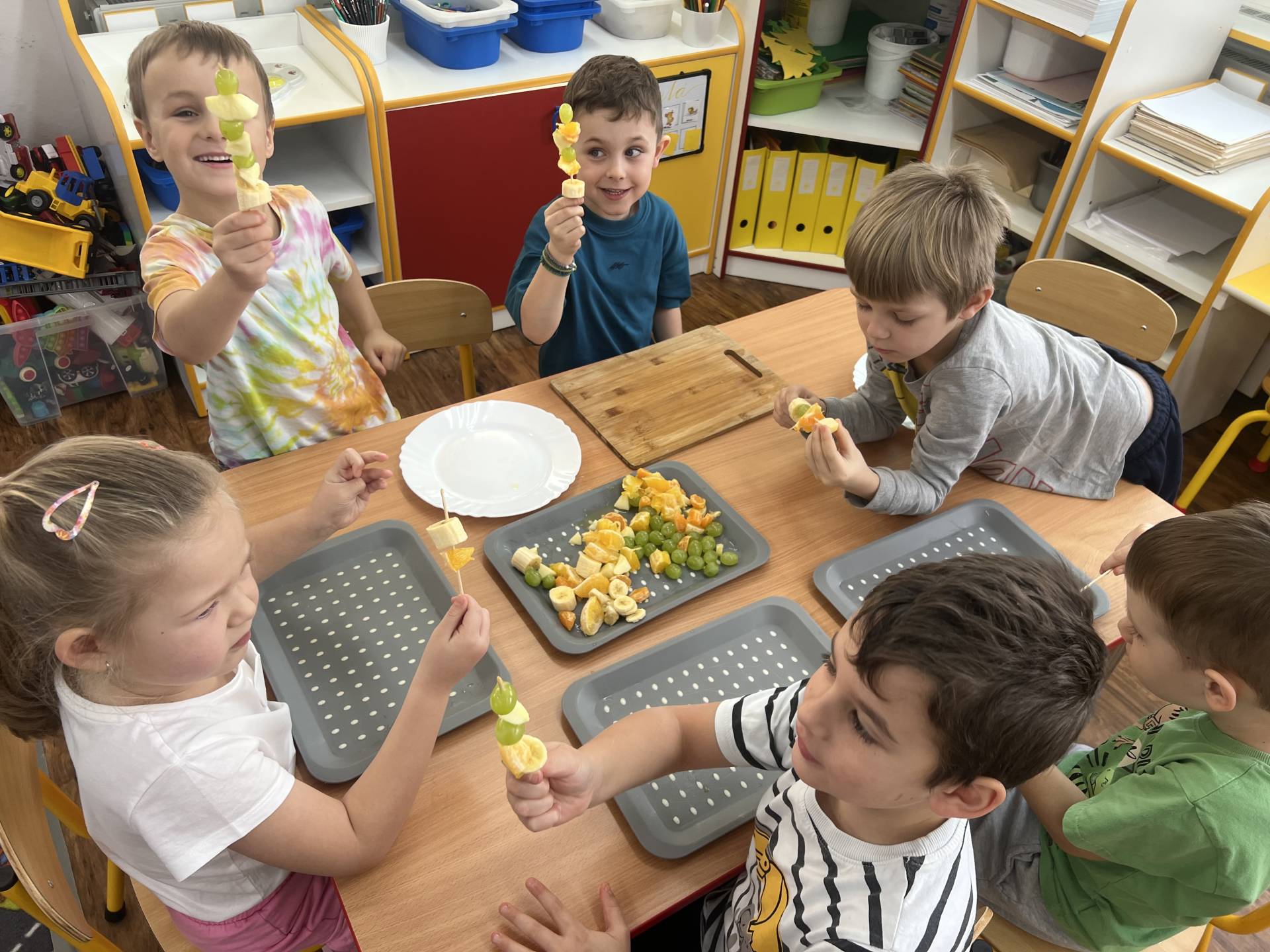 Děti poznávaly lidské tělo a jeho základní funkce i potřeby. Také se učily rozlišovat, co je pro tělo zdravé a co mu naopak škodí. Díky experimentu s "pepřovými bacily" a jarem už vědí, jak se zbavit špíny a bacilů. Velkým zážitkem bylo tvoření ovocných špízů plných vitamínů, nebo výroba bacilů rozfoukáváním tuše.