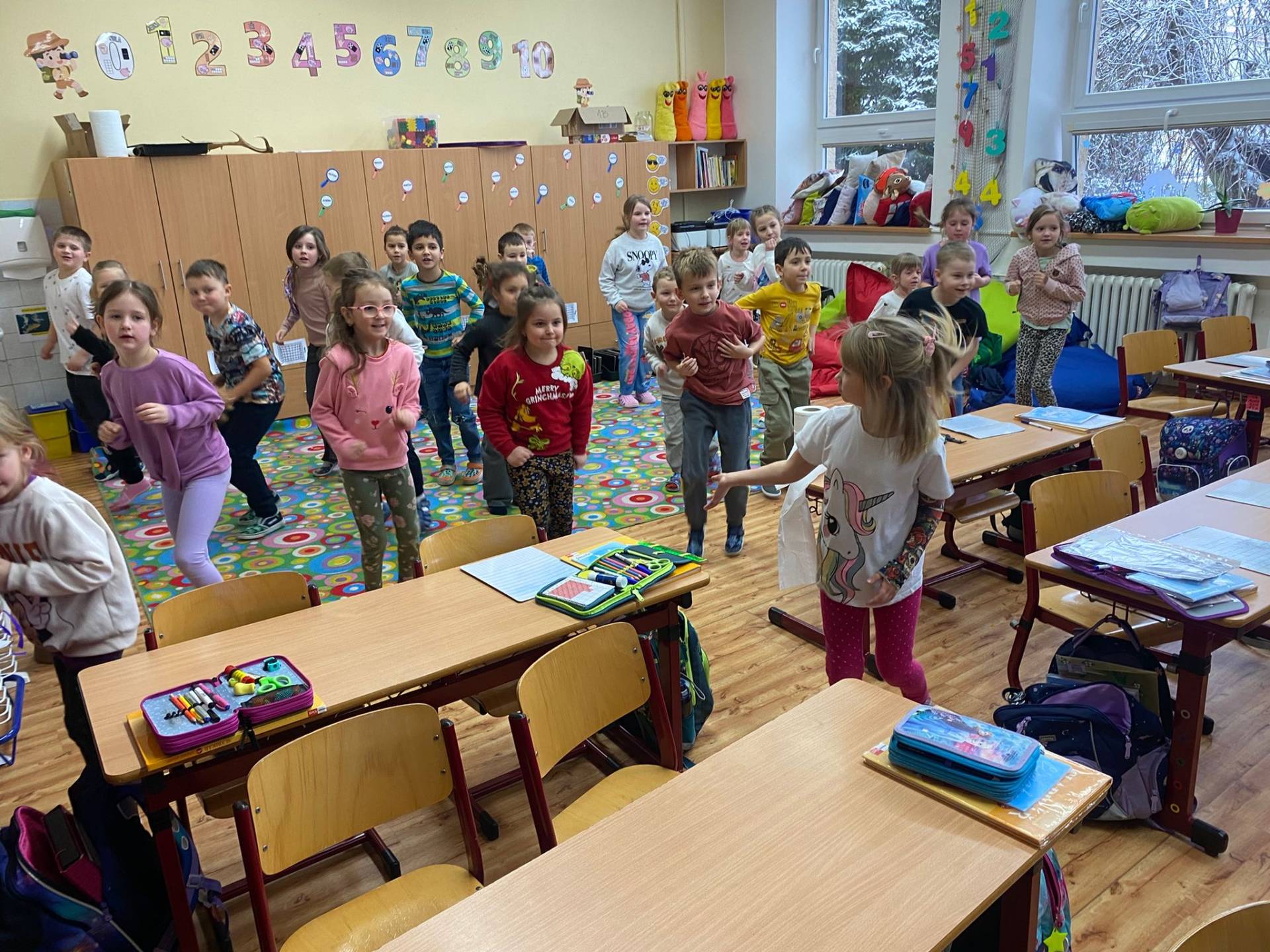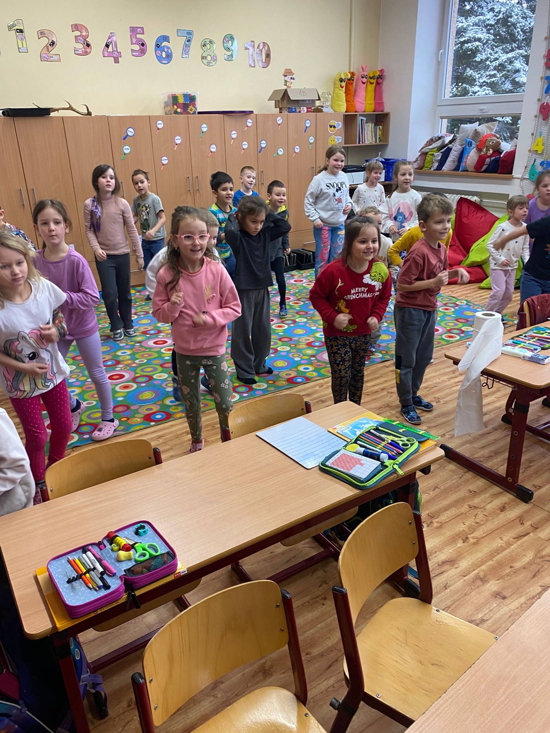 V pondělí 9.února 2026 se nejstarší předškoláčci vydali na návštěvu do prvních tříd naší základní školy. Díky prvňáčkům i p.uč.Regči a Vlaďce už víme, jak to ve škole chodí, co vše se tam dá dělat a hlavně, že se tady dá zažít spousta legrace a zábavy.