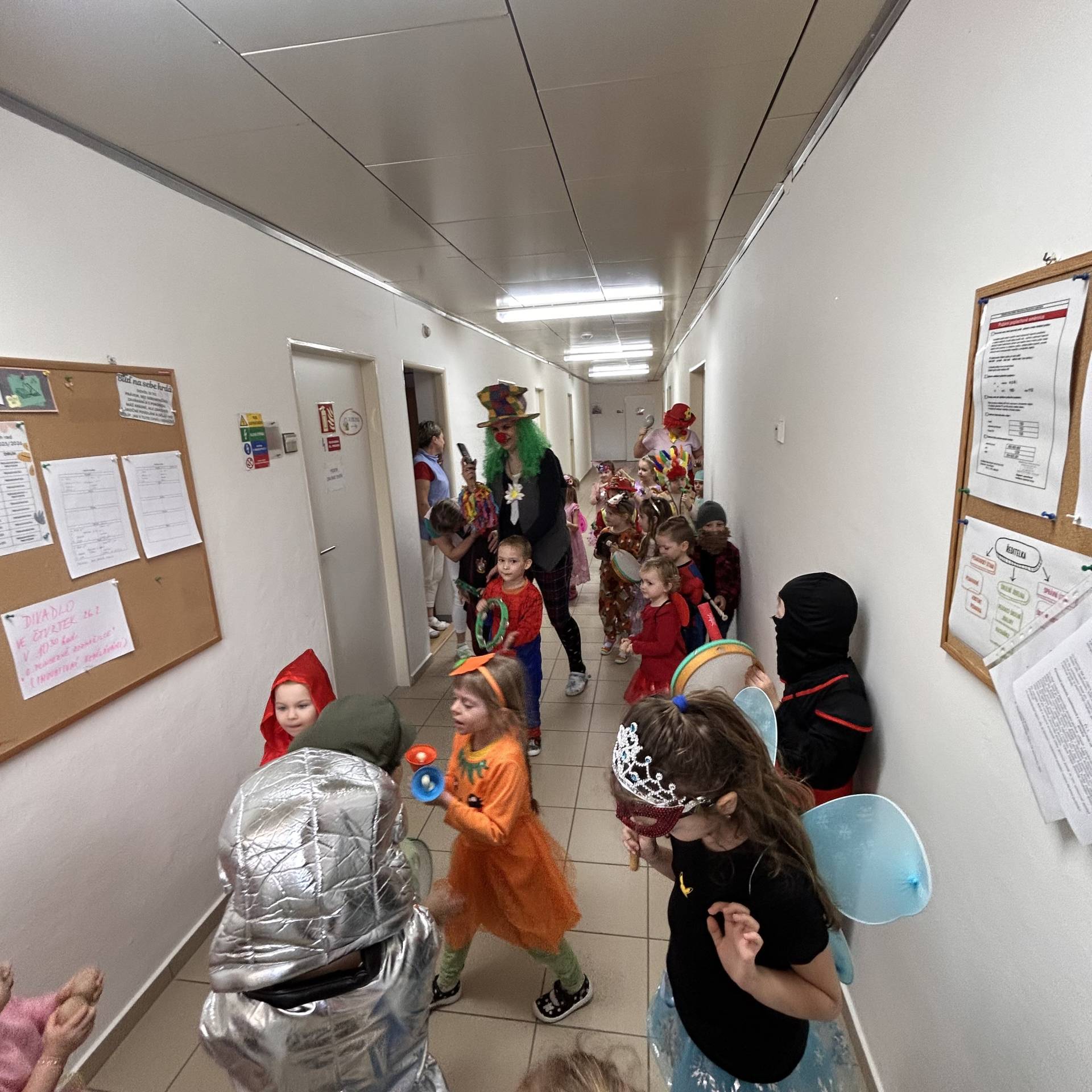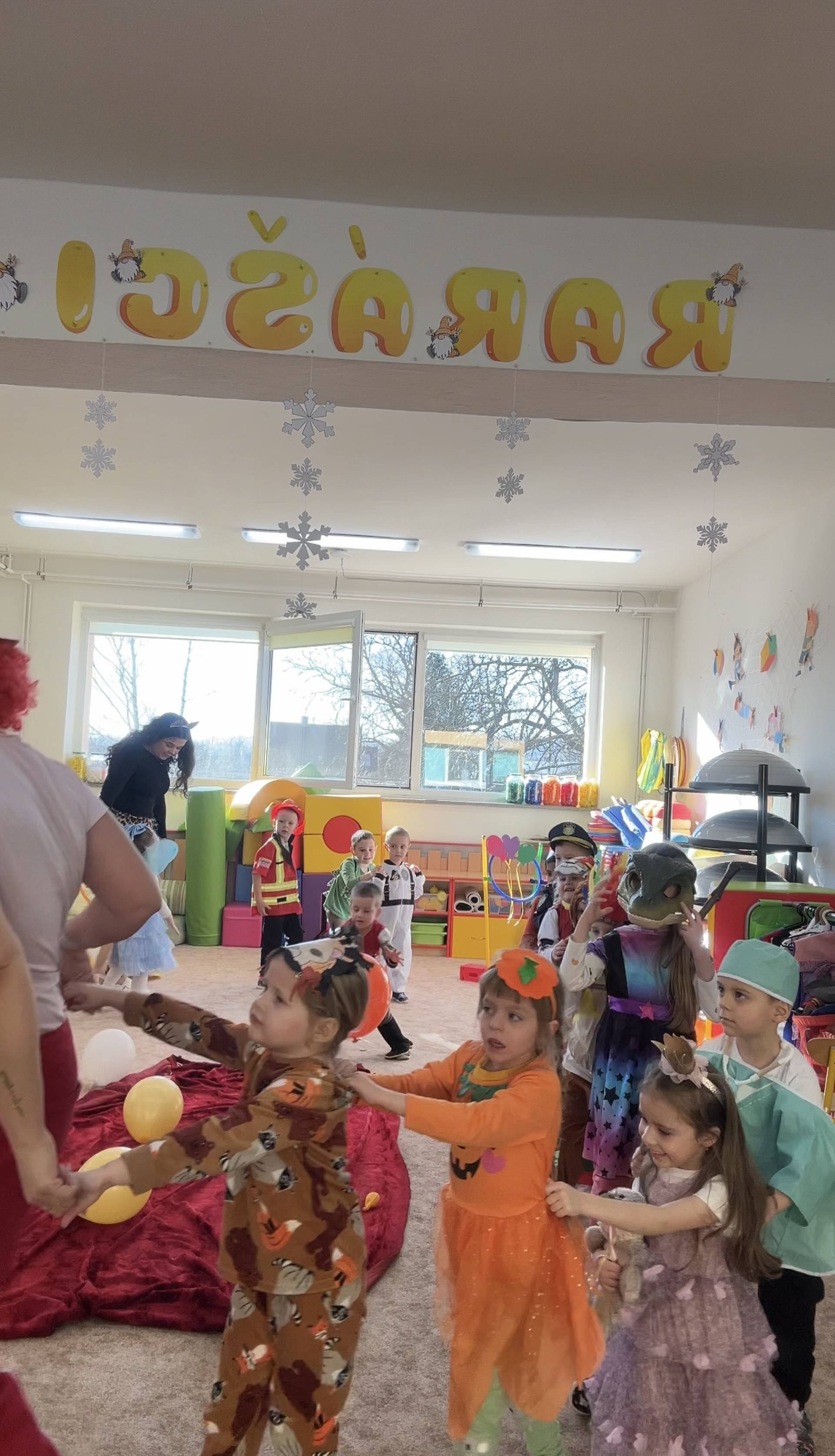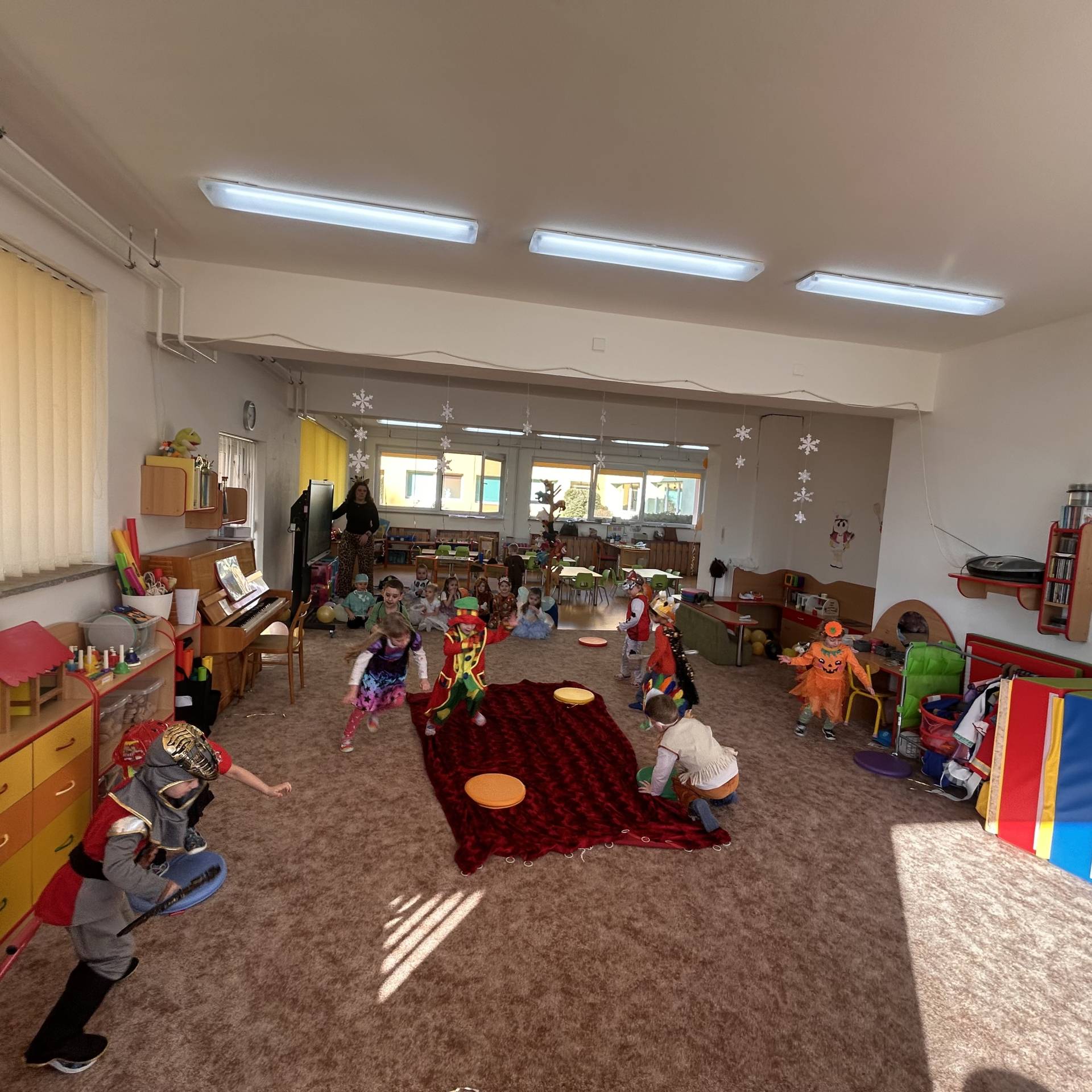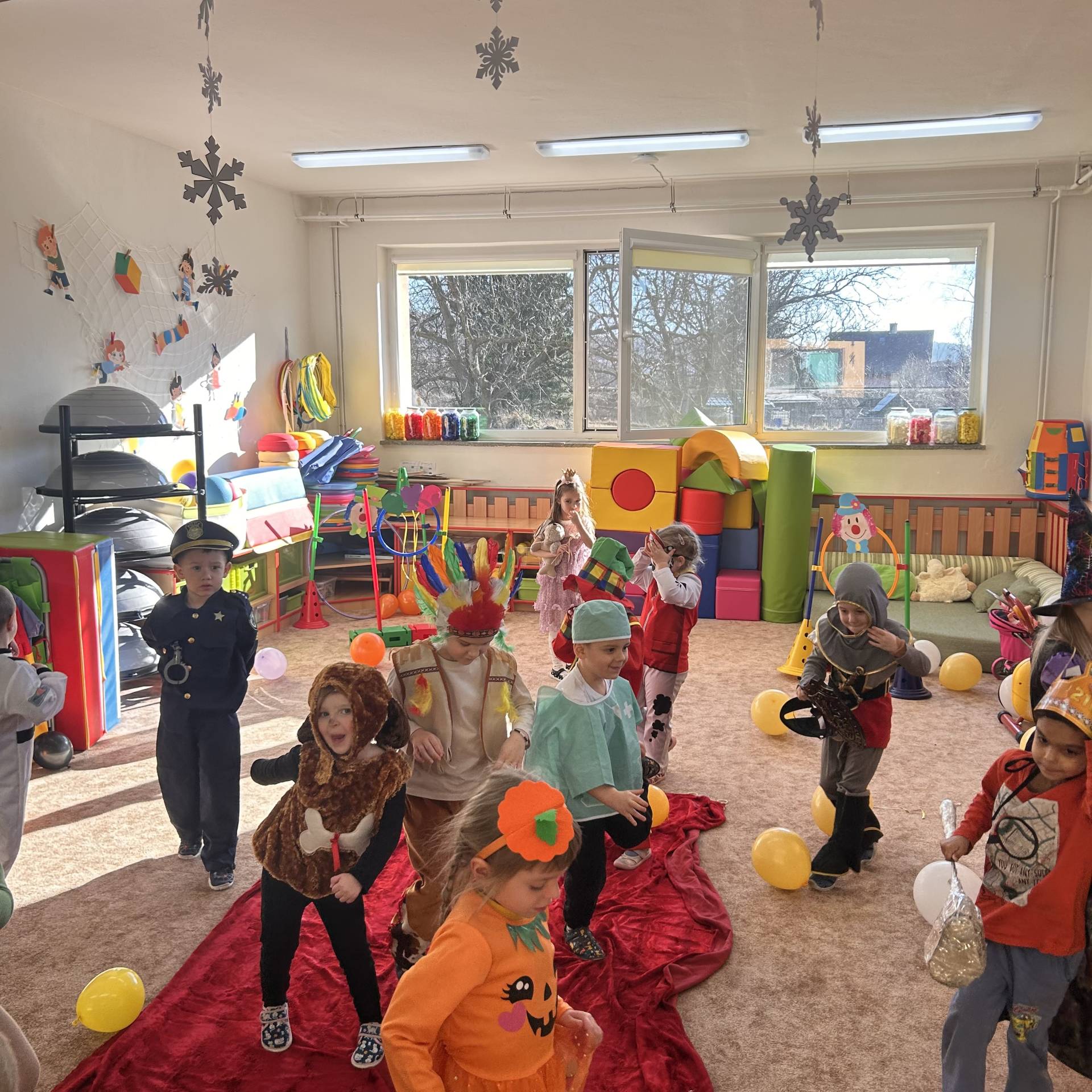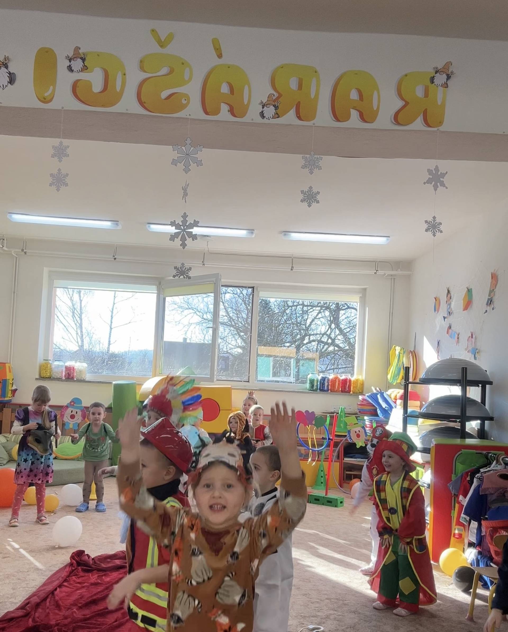 Vyvrcholením byl dnešní třídní karneval. Užili jsme si společné tancování, přehlídku kostýmů i veselé soutěže. Nakonec jsme s velkým nadšením prošli celou školku, hlasitě jsme křičeli, smáli se a za doprovodu různých řehtaček a hudebních nástrojů pořádně rachotili, aby o našem karnevalu věděla celá školka. :)
