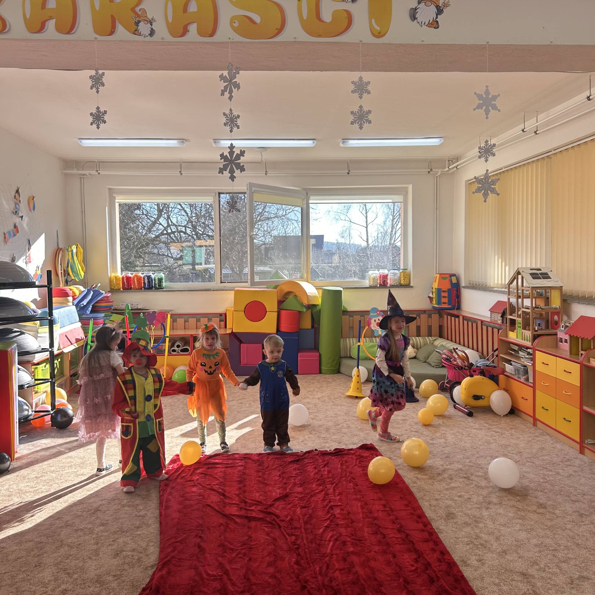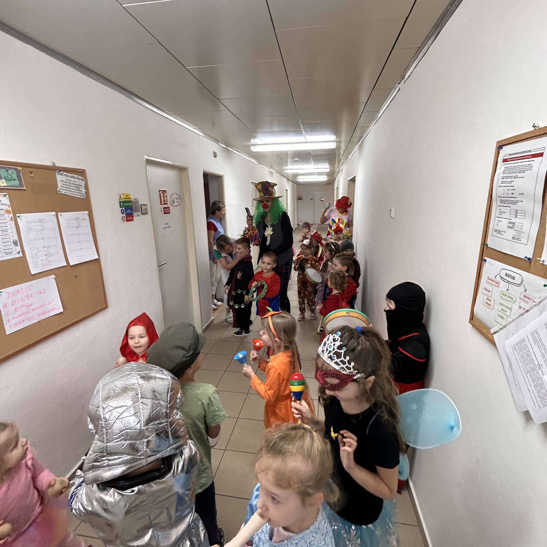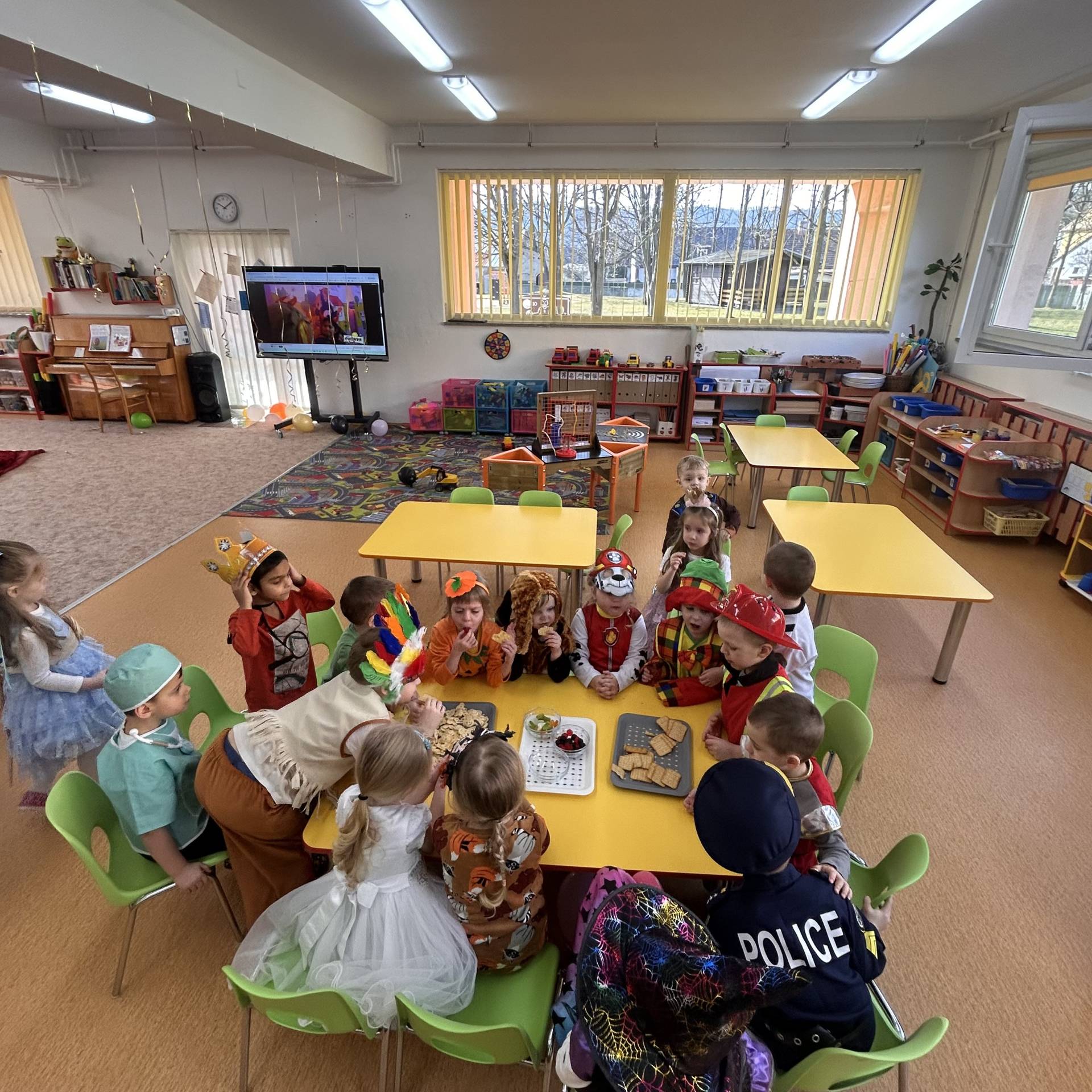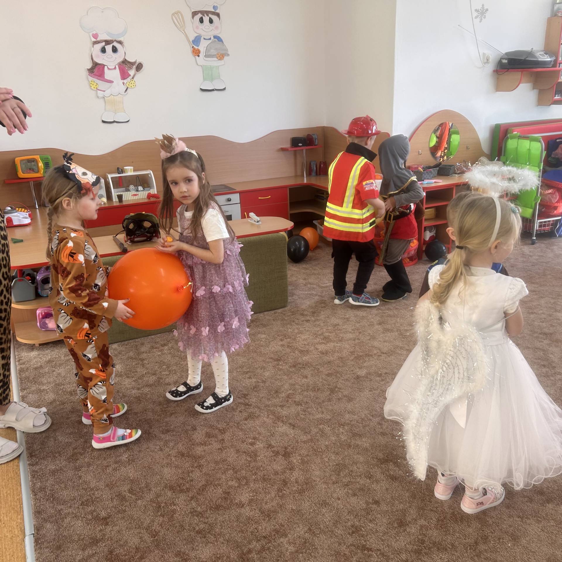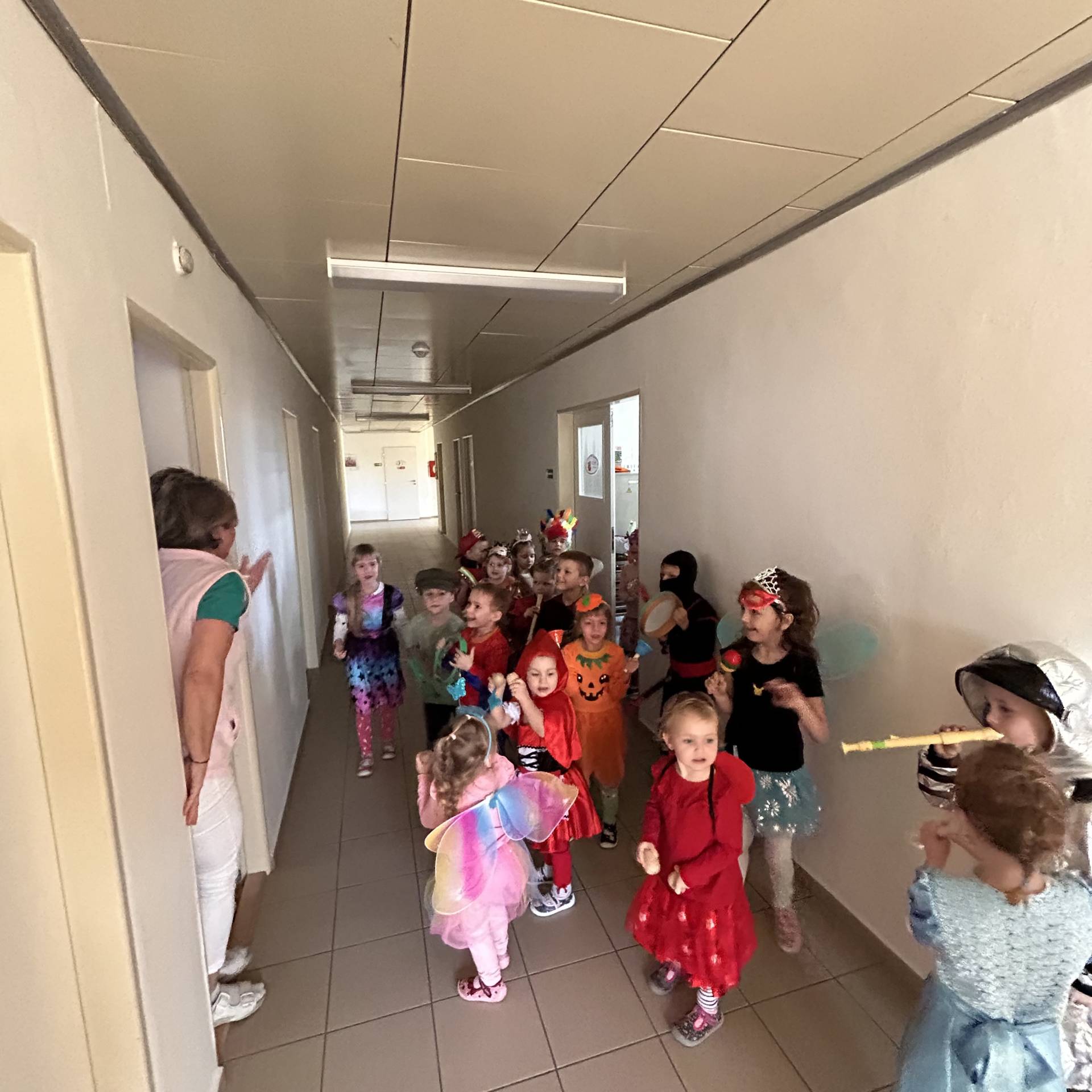 Vyvrcholením byl dnešní třídní karneval. Užili jsme si společné tancování, přehlídku kostýmů i veselé soutěže. Nakonec jsme s velkým nadšením prošli celou školku, hlasitě jsme křičeli, smáli se a za doprovodu různých řehtaček a hudebních nástrojů pořádně rachotili, aby o našem karnevalu věděla celá školka. :)