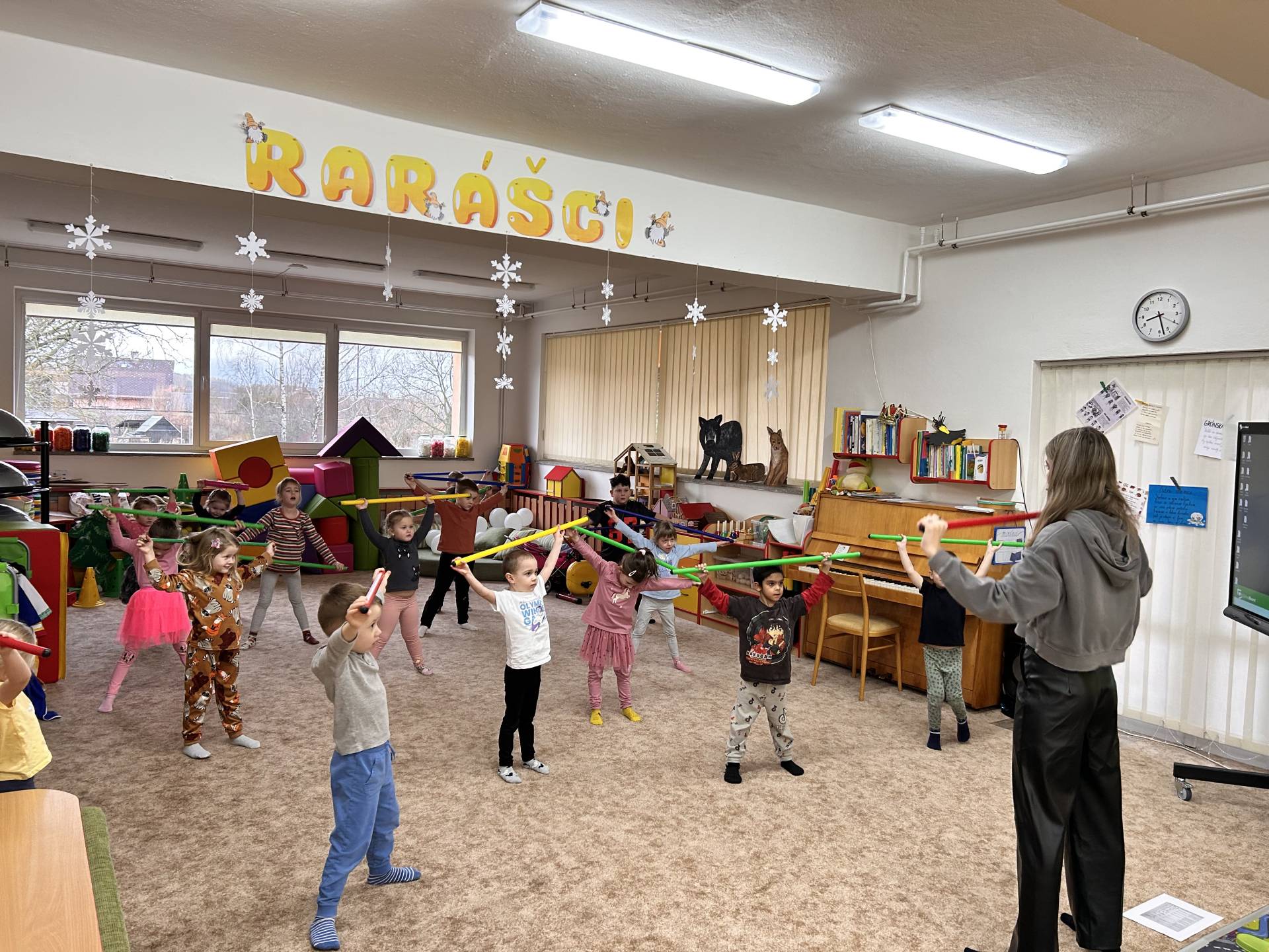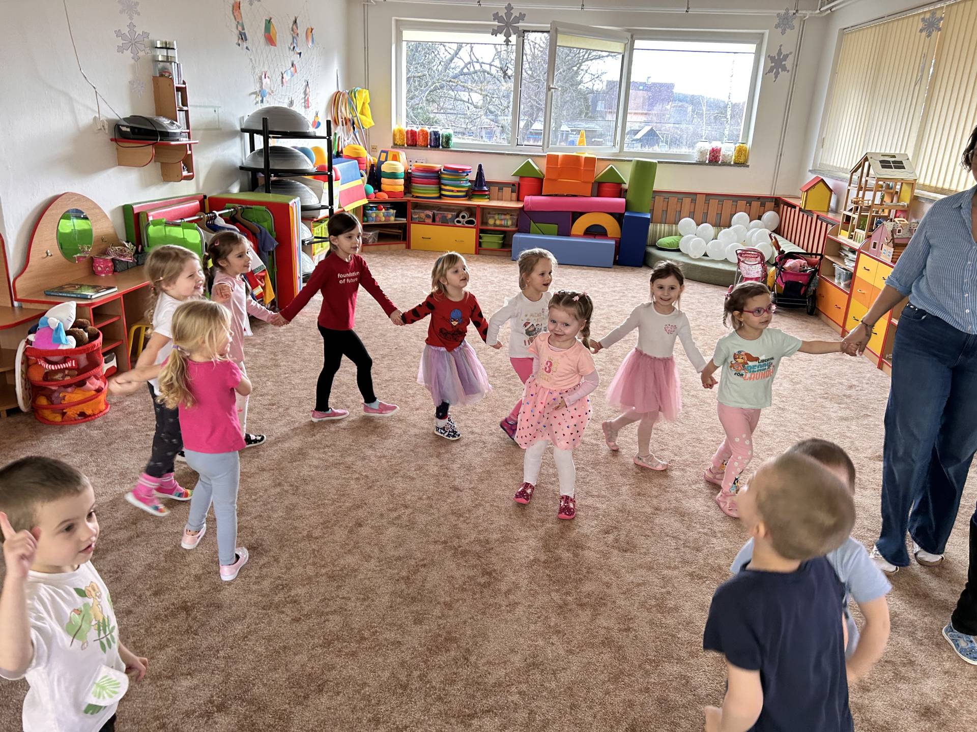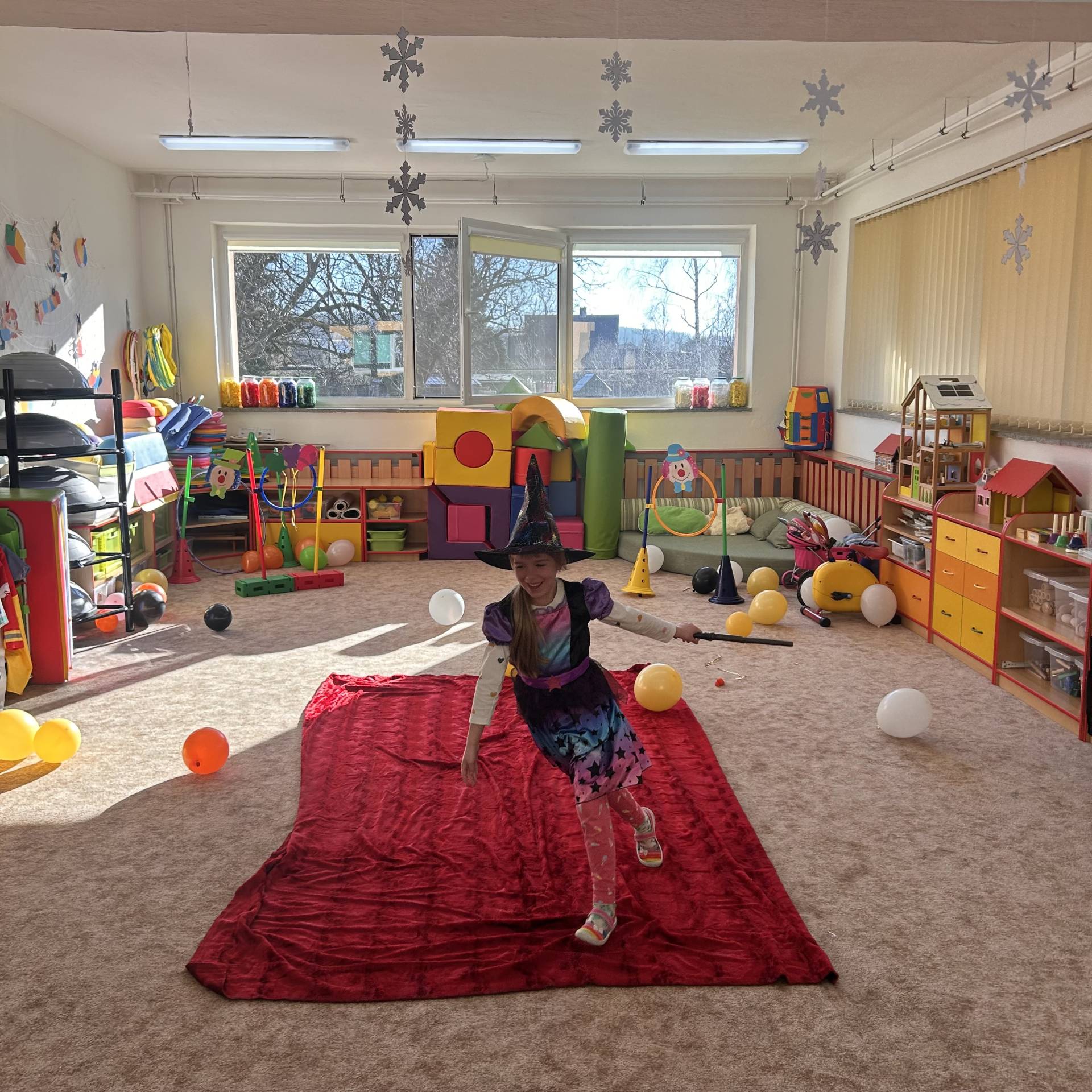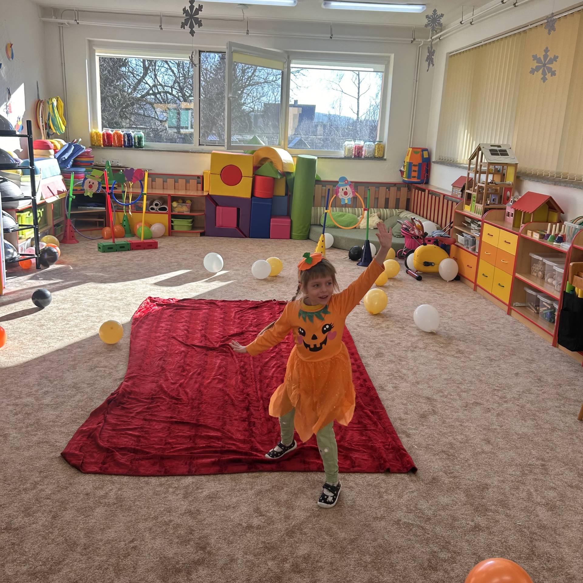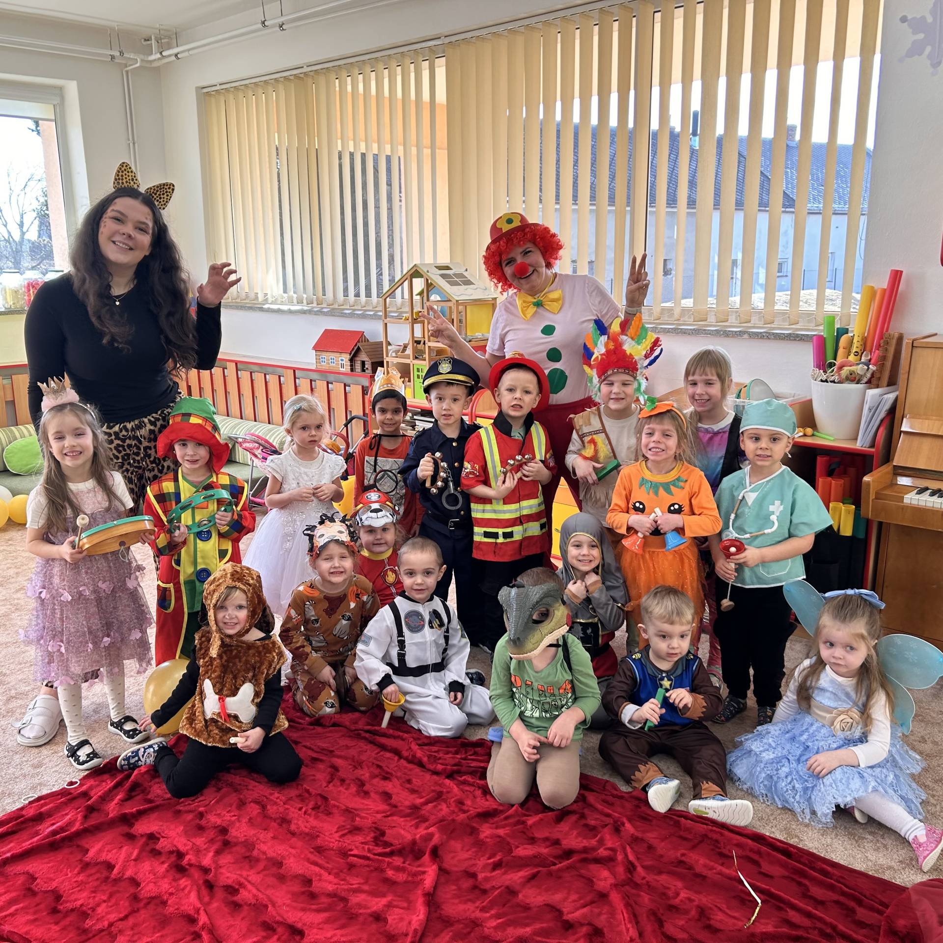 Vyvrcholením byl dnešní třídní karneval. Užili jsme si společné tancování, přehlídku kostýmů i veselé soutěže. Nakonec jsme s velkým nadšením prošli celou školku, hlasitě jsme křičeli, smáli se a za doprovodu různých řehtaček a hudebních nástrojů pořádně rachotili, aby o našem karnevalu věděla celá školka. :)