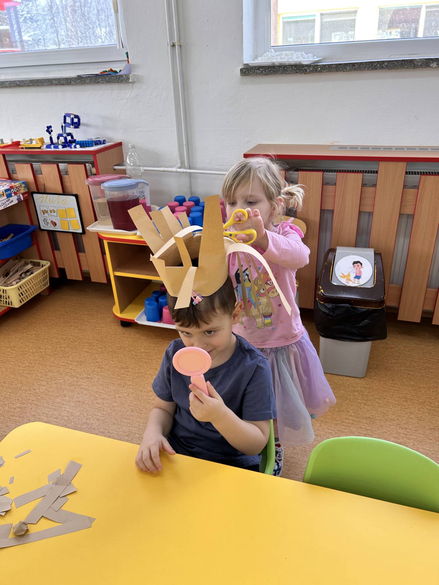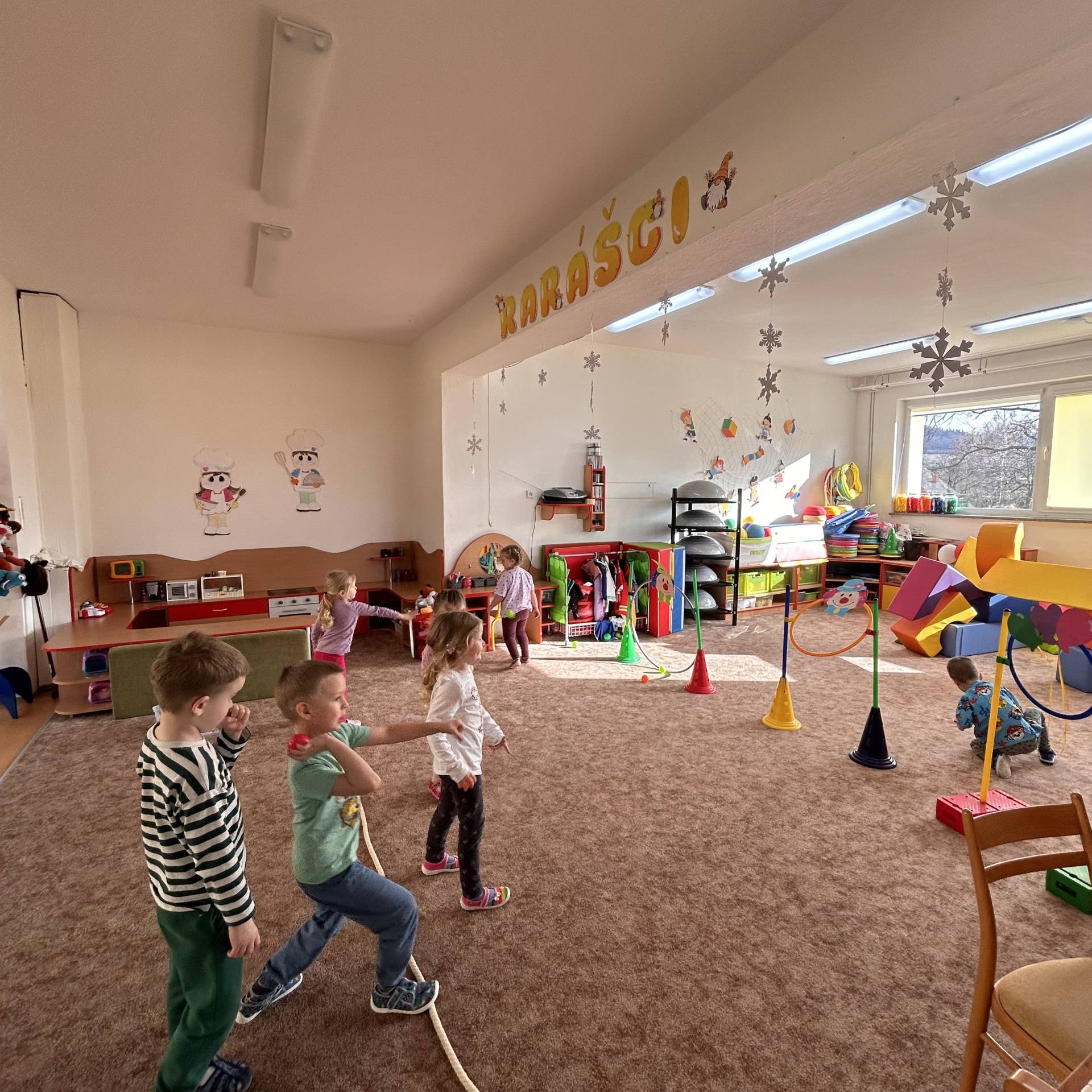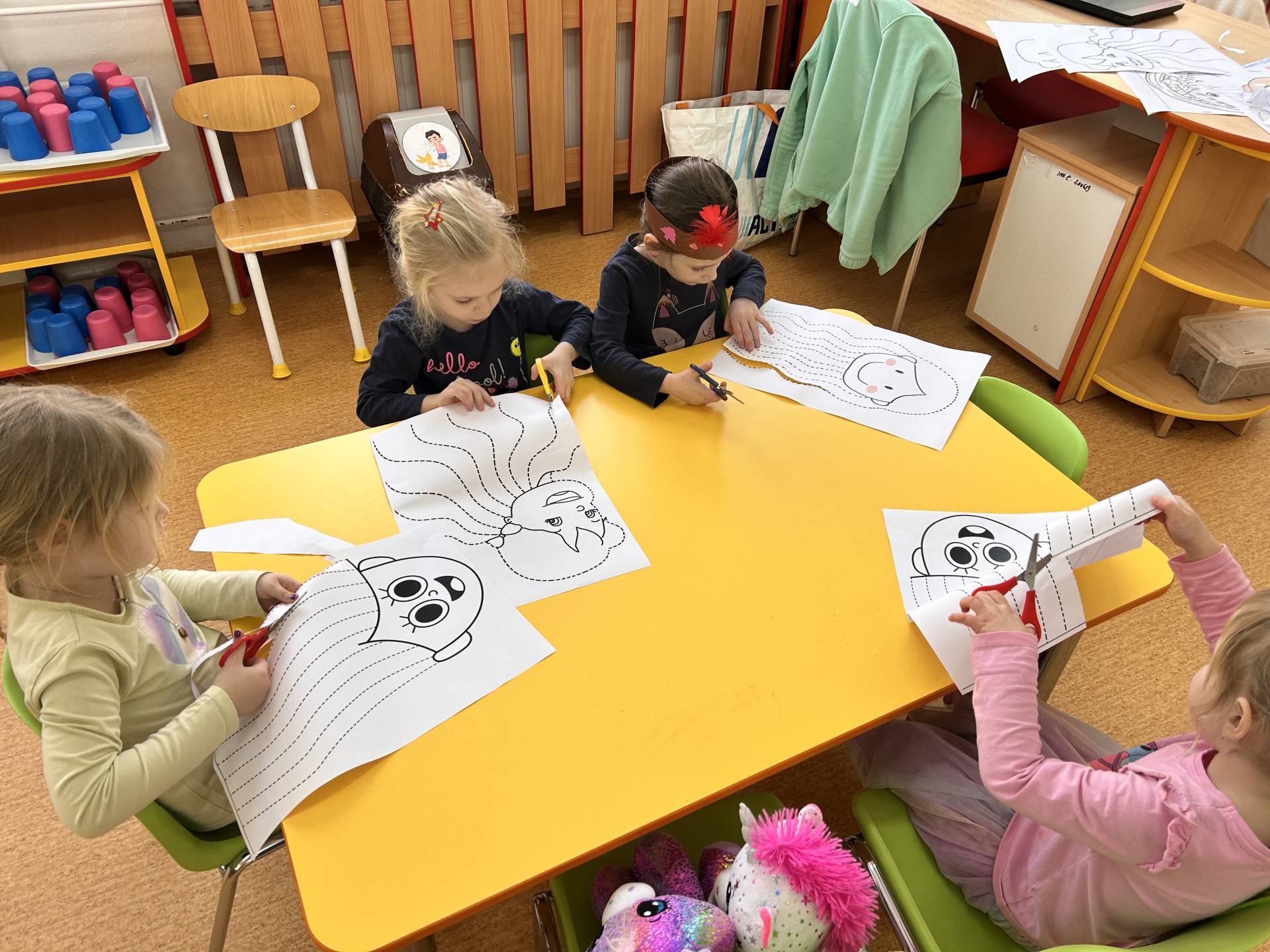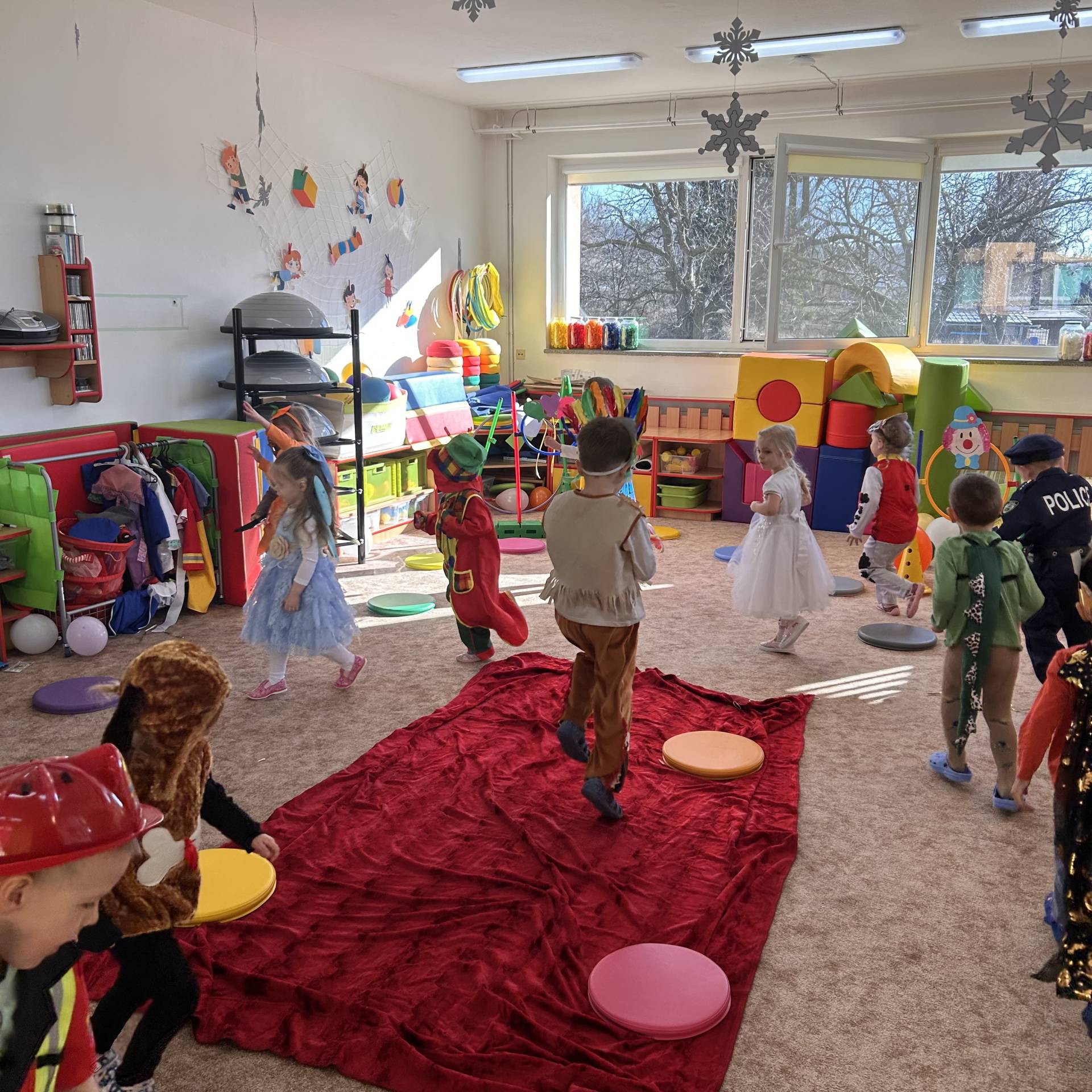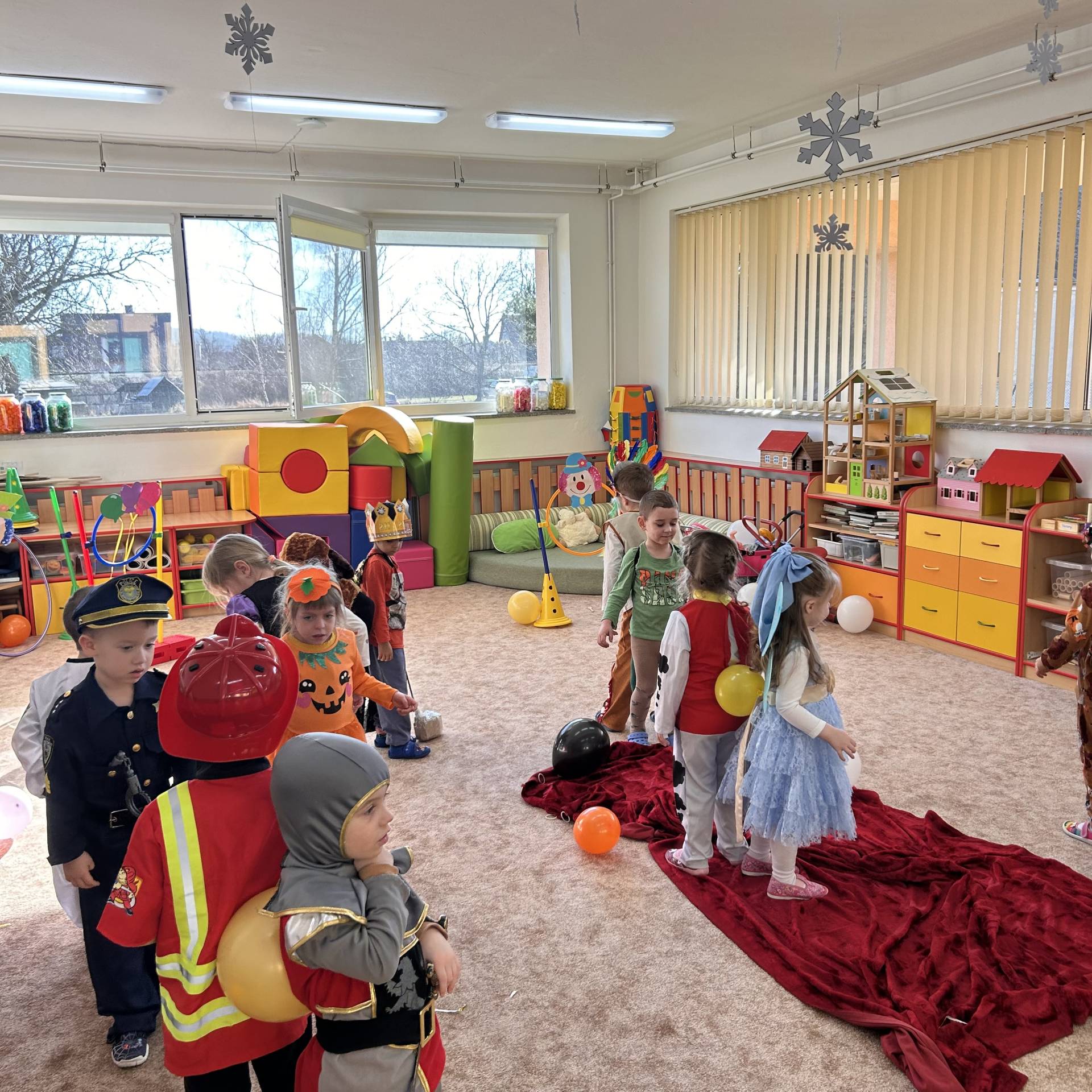 Únor byl v naší třídě plný masek, barev a radosti. Povídali jsme si o masopustu a karnevalových tradicích, vyráběli jsme si masky a hráli si na různá povolání. Děti si vyzkoušely, jaké to je být například hasičem, lékařkou, kadeřnicí nebo policistou.
