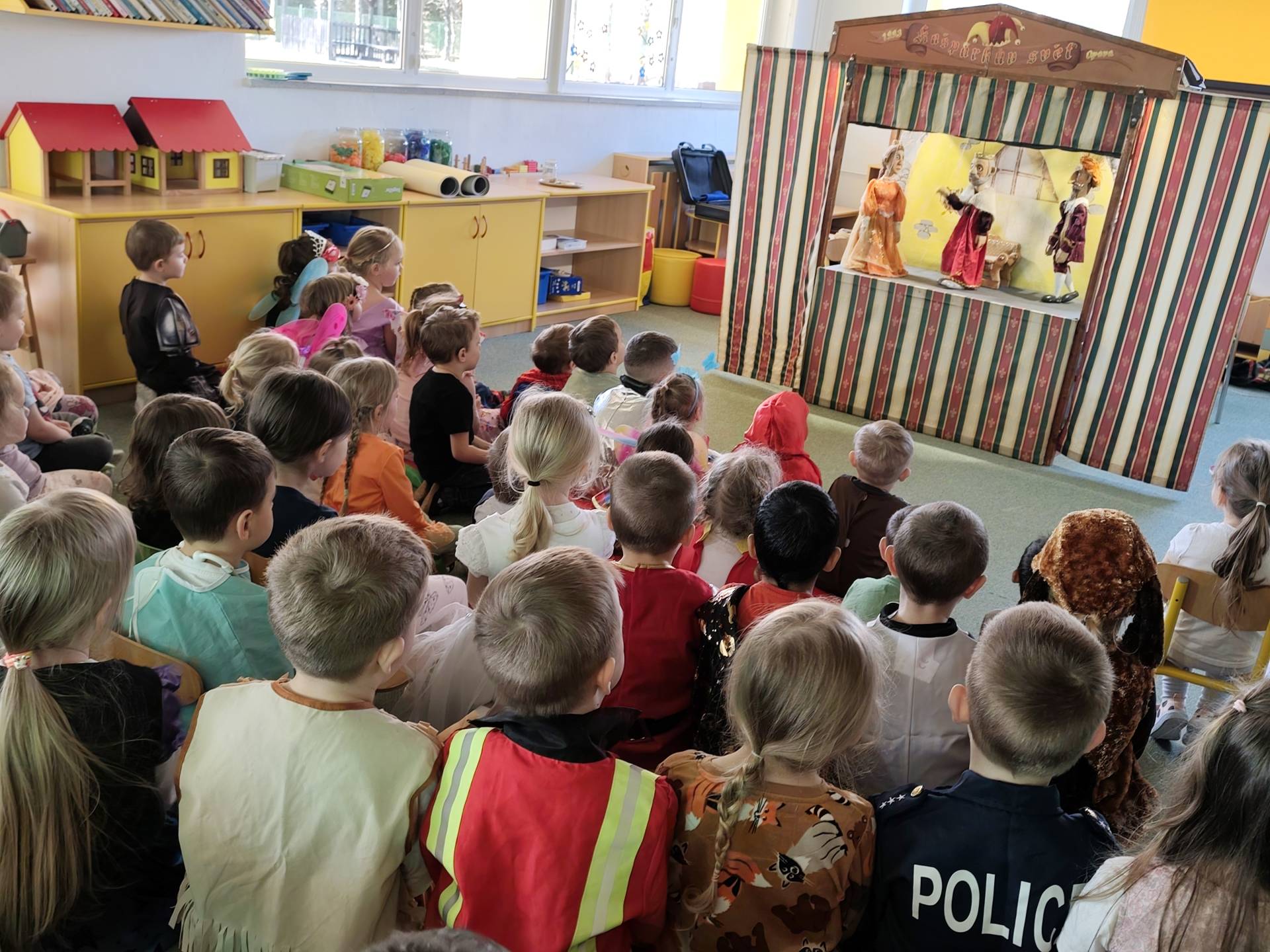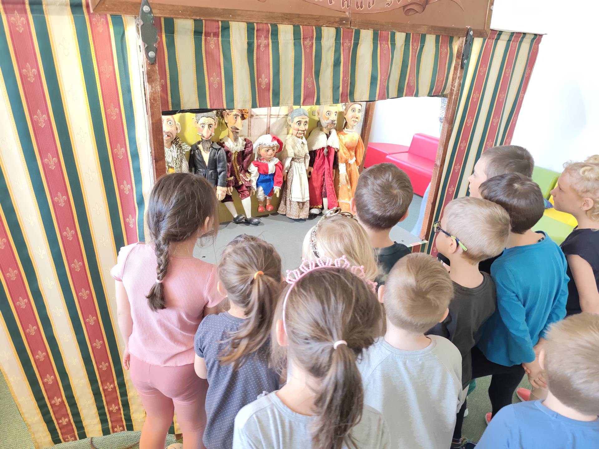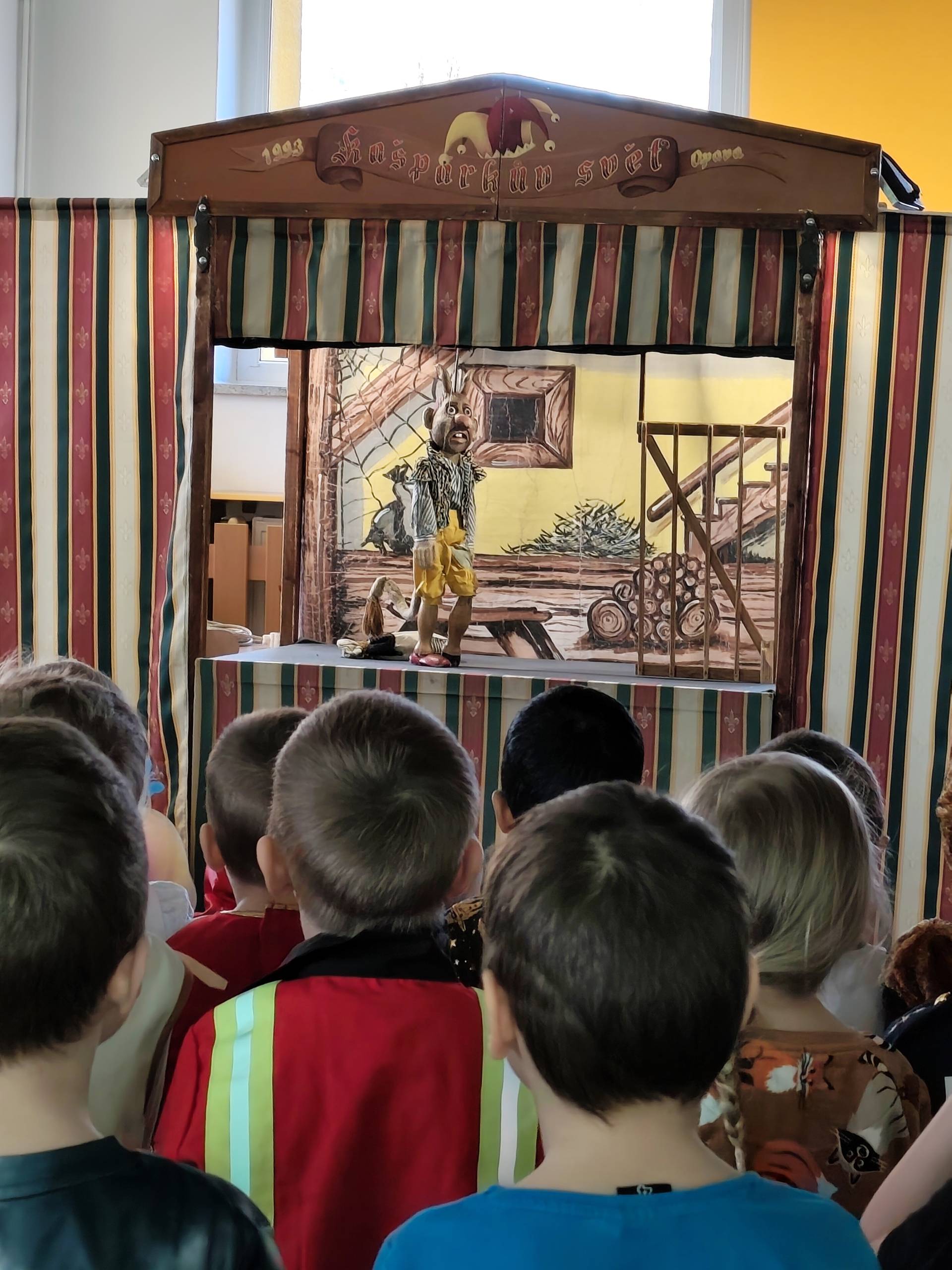 Dnes děti shlédly pohádku "O princezně Rozmařilce". Loutky, které vystupovaly si mohly děti prohlédnout a moc se jim líbily. Příběh byl plný zpěvu, smíchu a v neposlední řadě ponaučení.