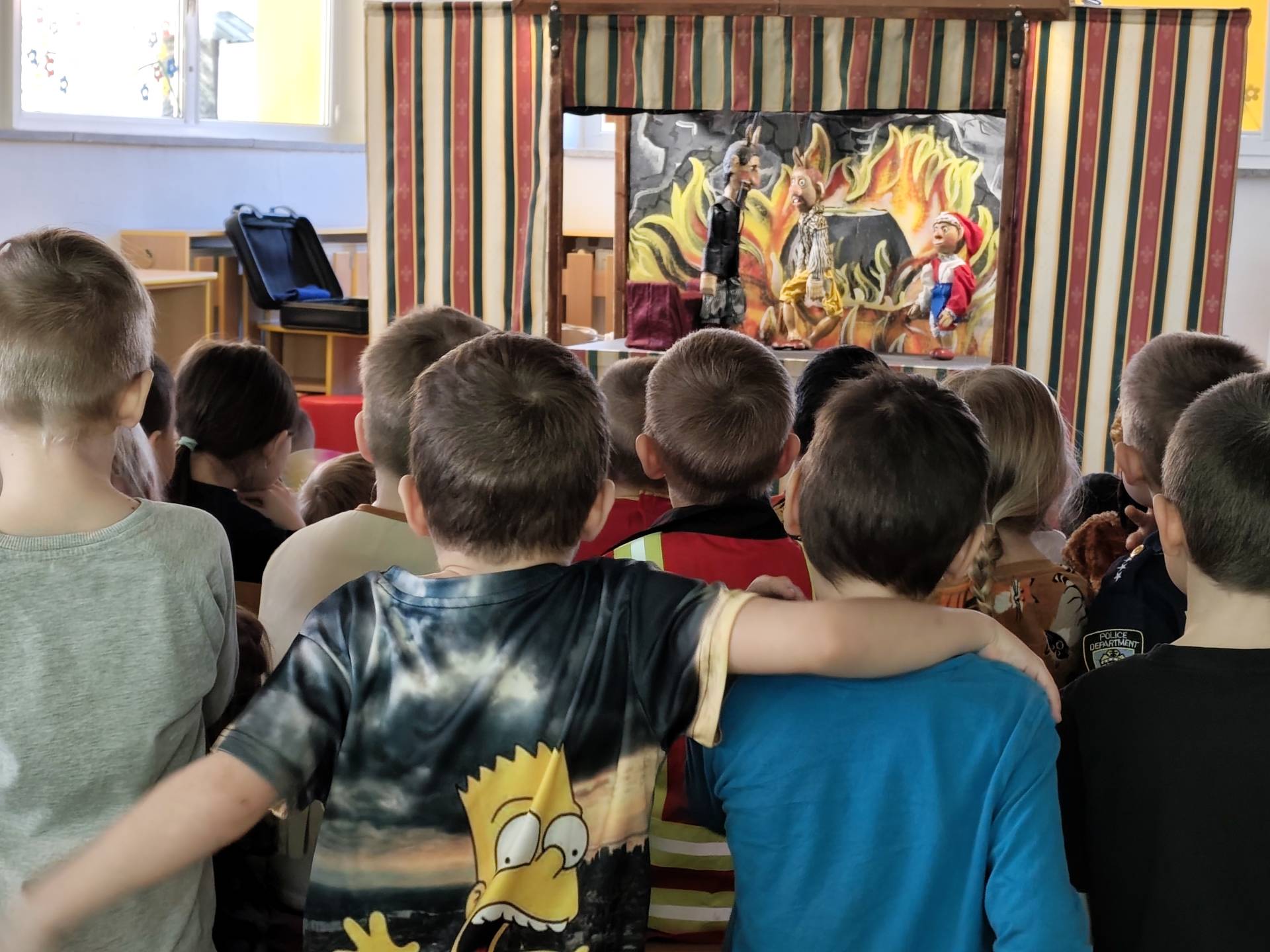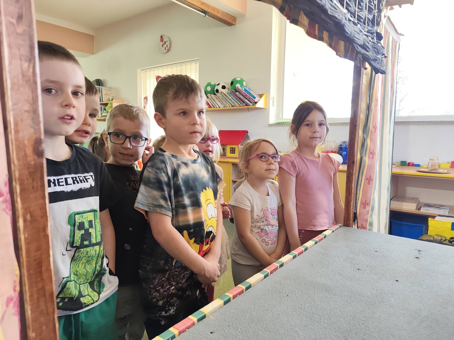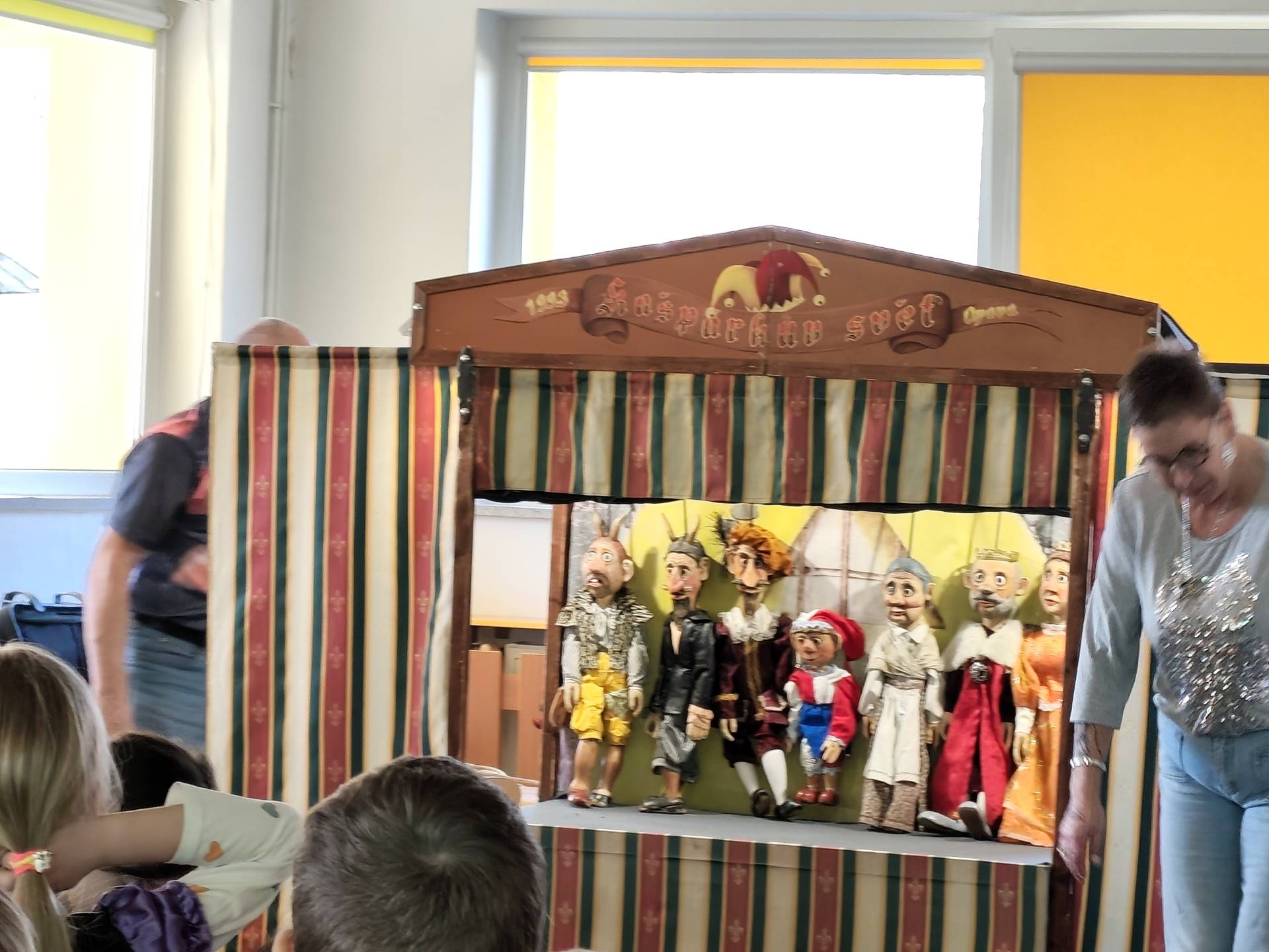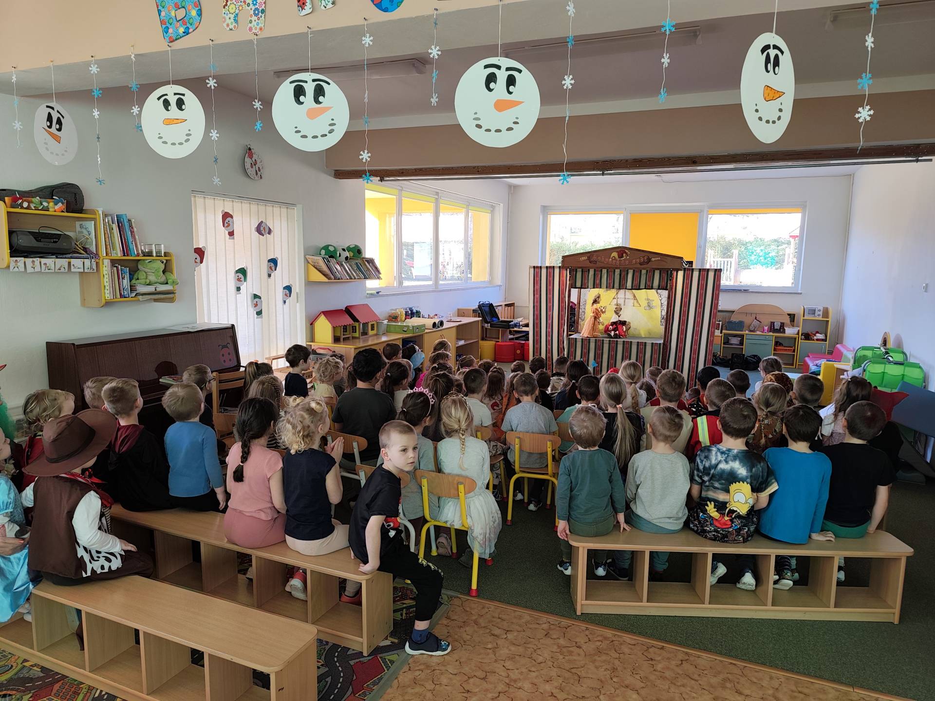 Dnes děti shlédly pohádku "O princezně Rozmařilce". Loutky, které vystupovaly si mohly děti prohlédnout a moc se jim líbily. Příběh byl plný zpěvu, smíchu a v neposlední řadě ponaučení.
