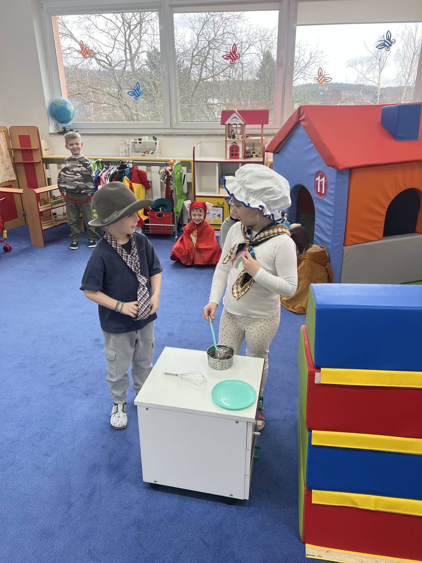 Během měsíce února jsme si s dětmi přiblížili tradici Masopustu a to, co s ním souvisí. Stihli jsme se třeba seznámit s některými druhy řemesel i povolání a proměnit se v „malé kominíčky ", nebo si zahrát na malé pekaře a upéct „masopustní muffiny". A co teprve pohádkové putování s Koblížkem, to jsme si společně užili spoustu legrace a zábavy.