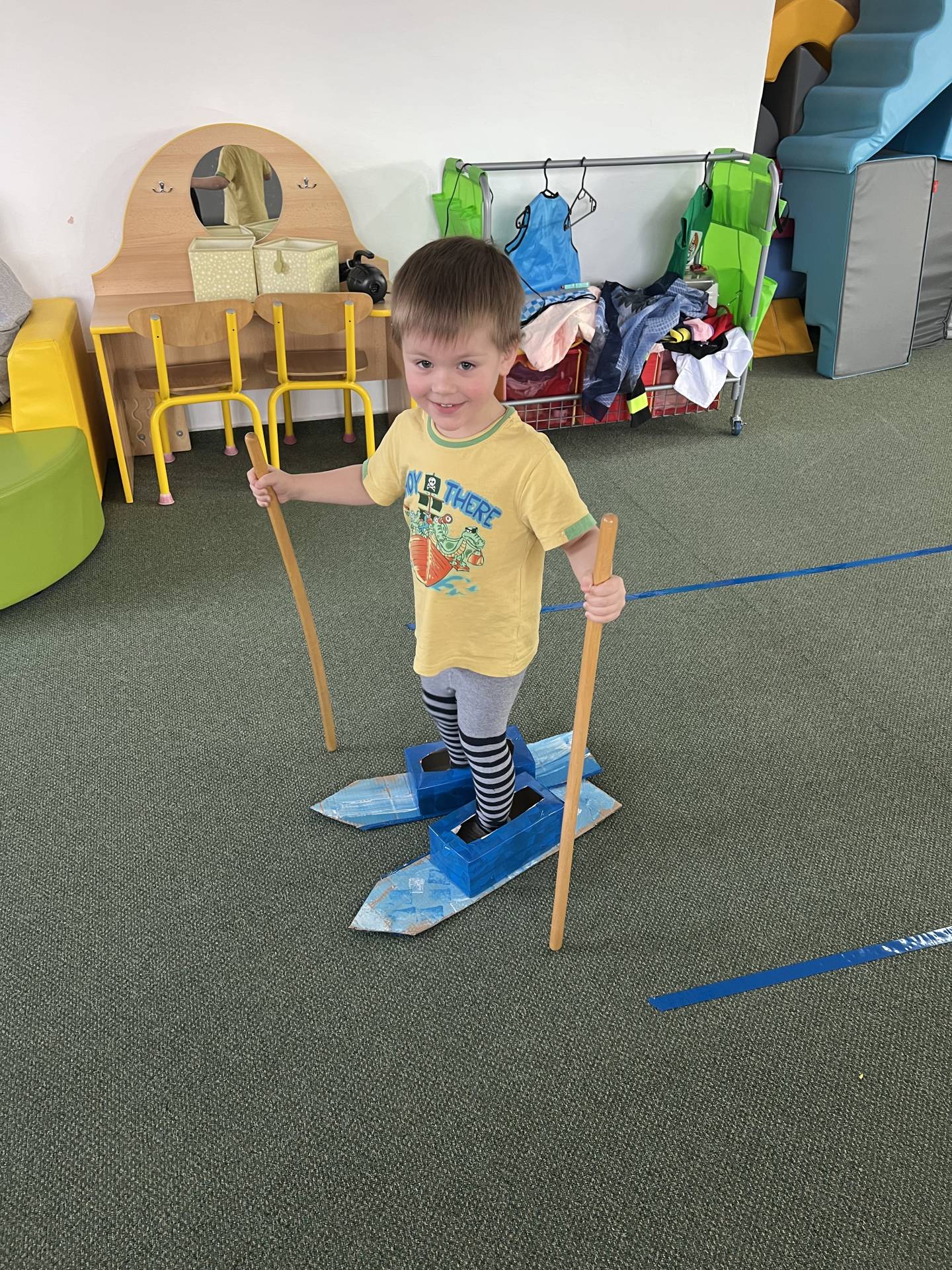 Nezapomněli jsme ani na řemesla a povolání, kdy si děti samy zvolily téma - Fotbalista. Děti si oblékly fotbalové dresy a vyzkoušely si roli fotbalistů. Trénovaly přihrávky, střelbu na branku i týmového ducha. Radost z pohybu byla vidět na každém kroku.
