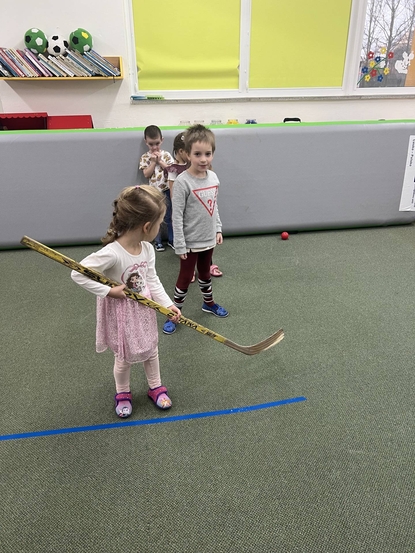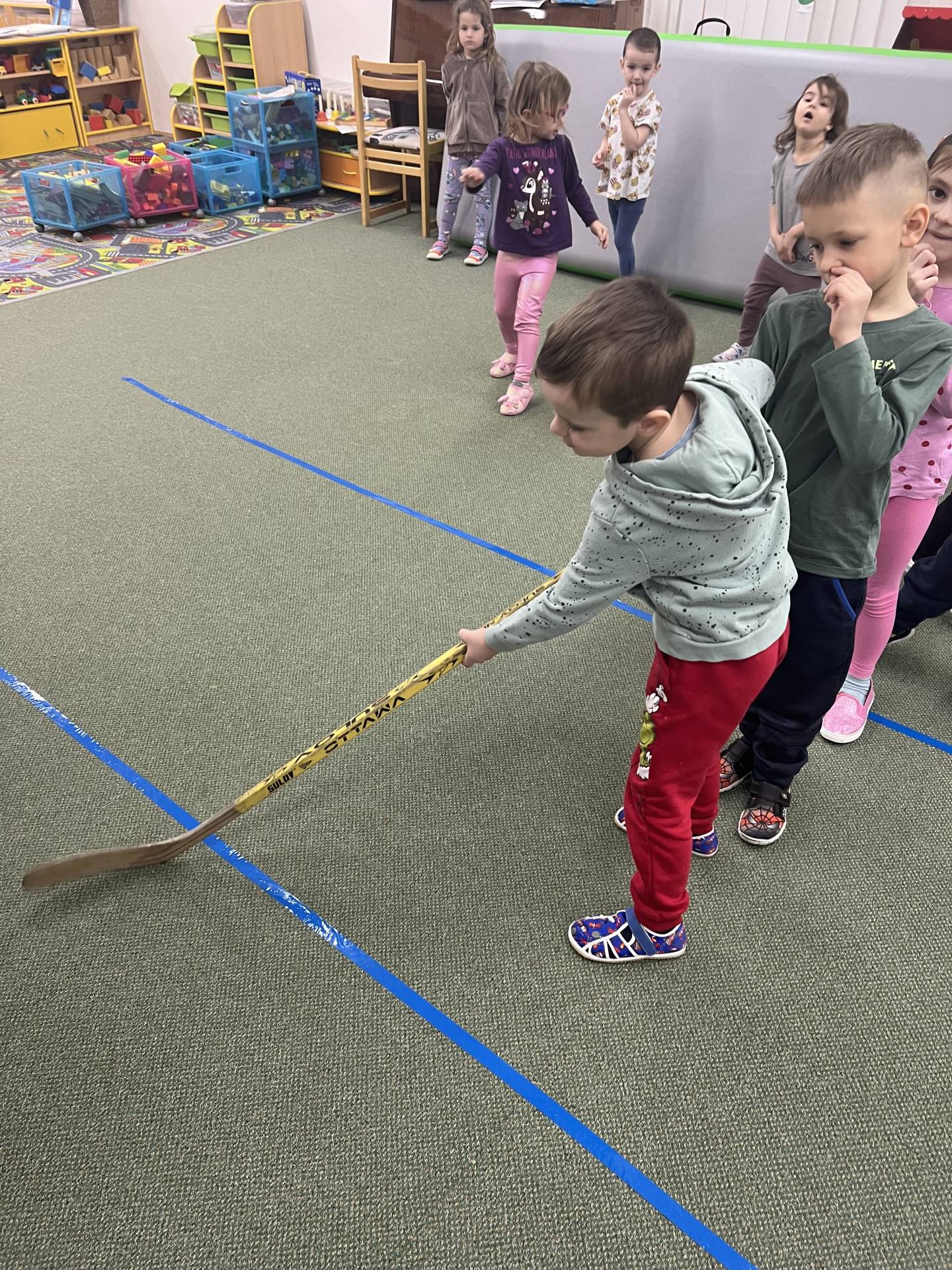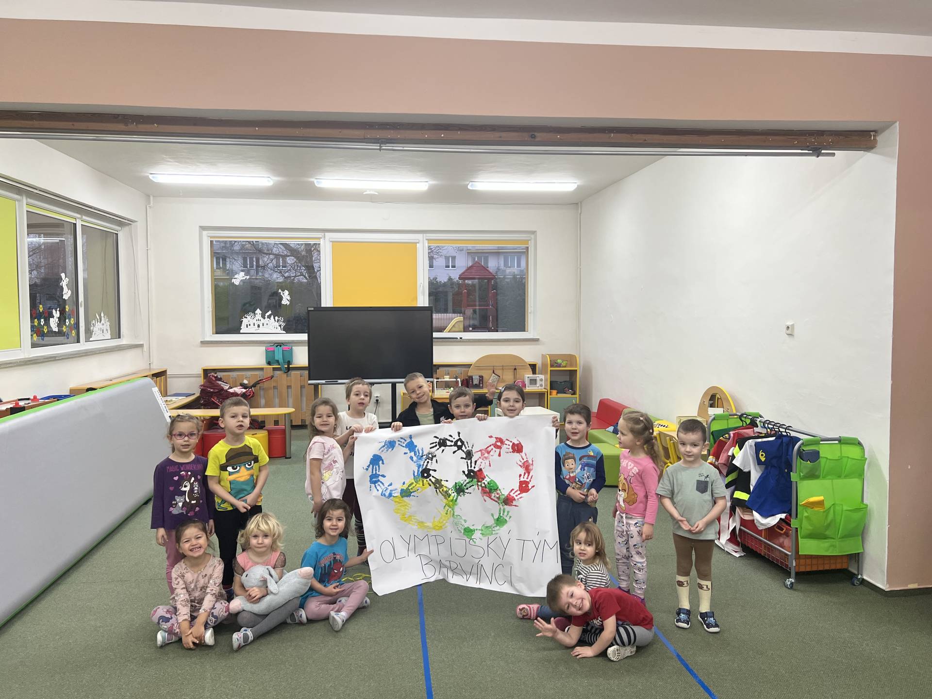Velkým tématem byla také zimní olympiáda. Děti se dozvěděly, jaké sporty patří mezi zimní disciplíny, a samy si některé z nich vyzkoušely alespoň formou pohybových her. Největší nadšení však přinesl hokej – děti si mohly zahrát s opravdovou hokejkou, vyzkoušely si střelbu na branku i týmovou spolupráci. Sportovní dopoledne bylo plné radosti, fandění a pohybu.
