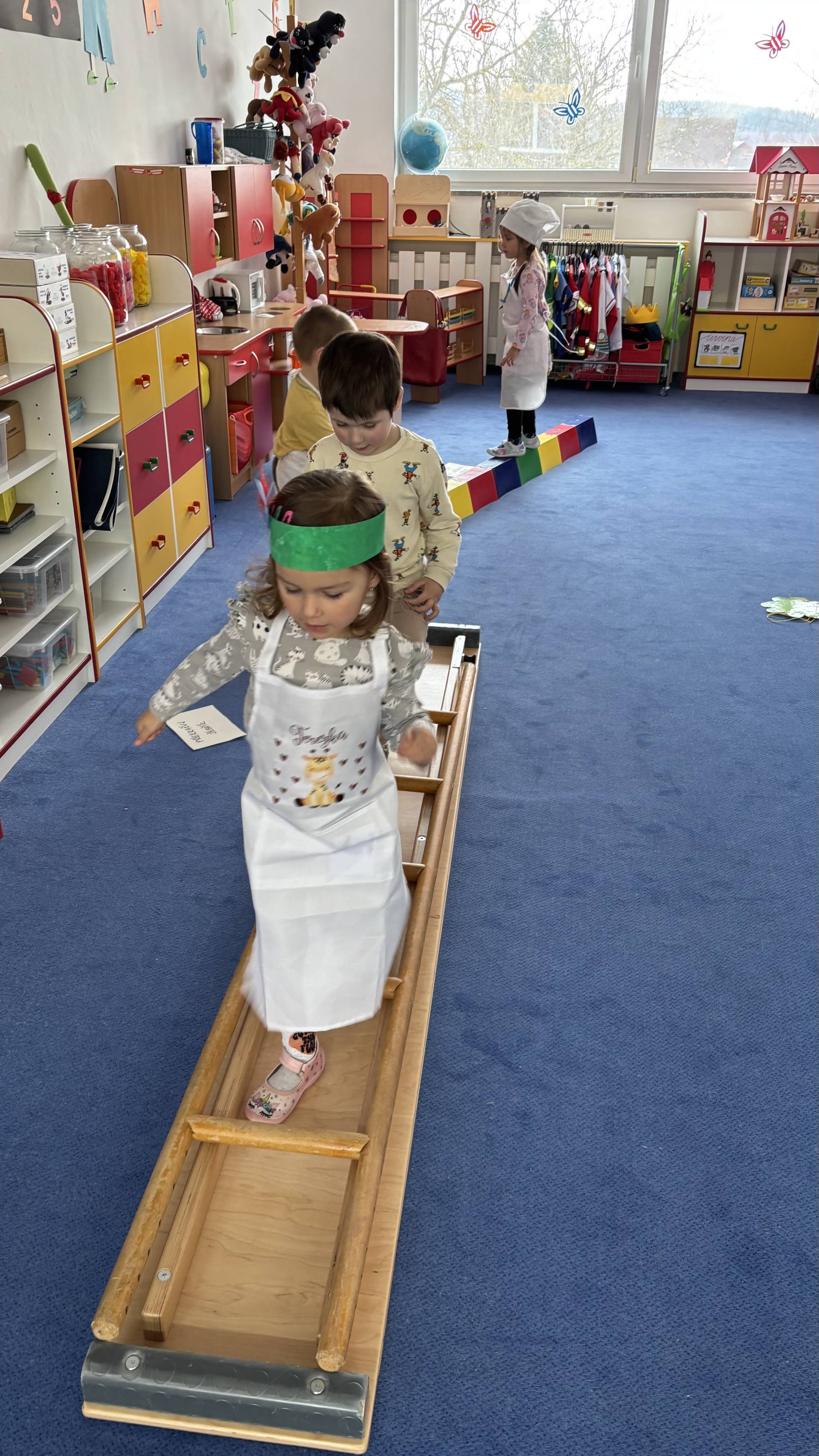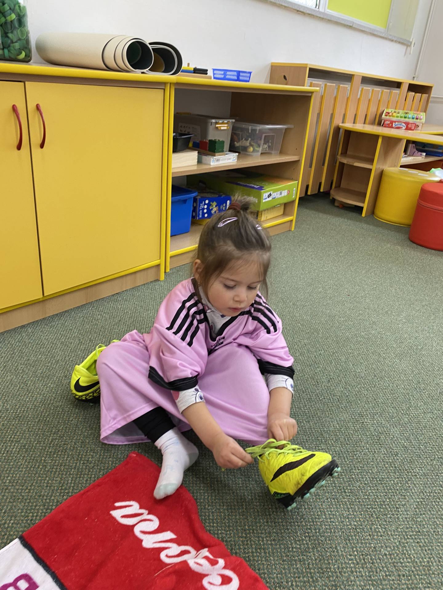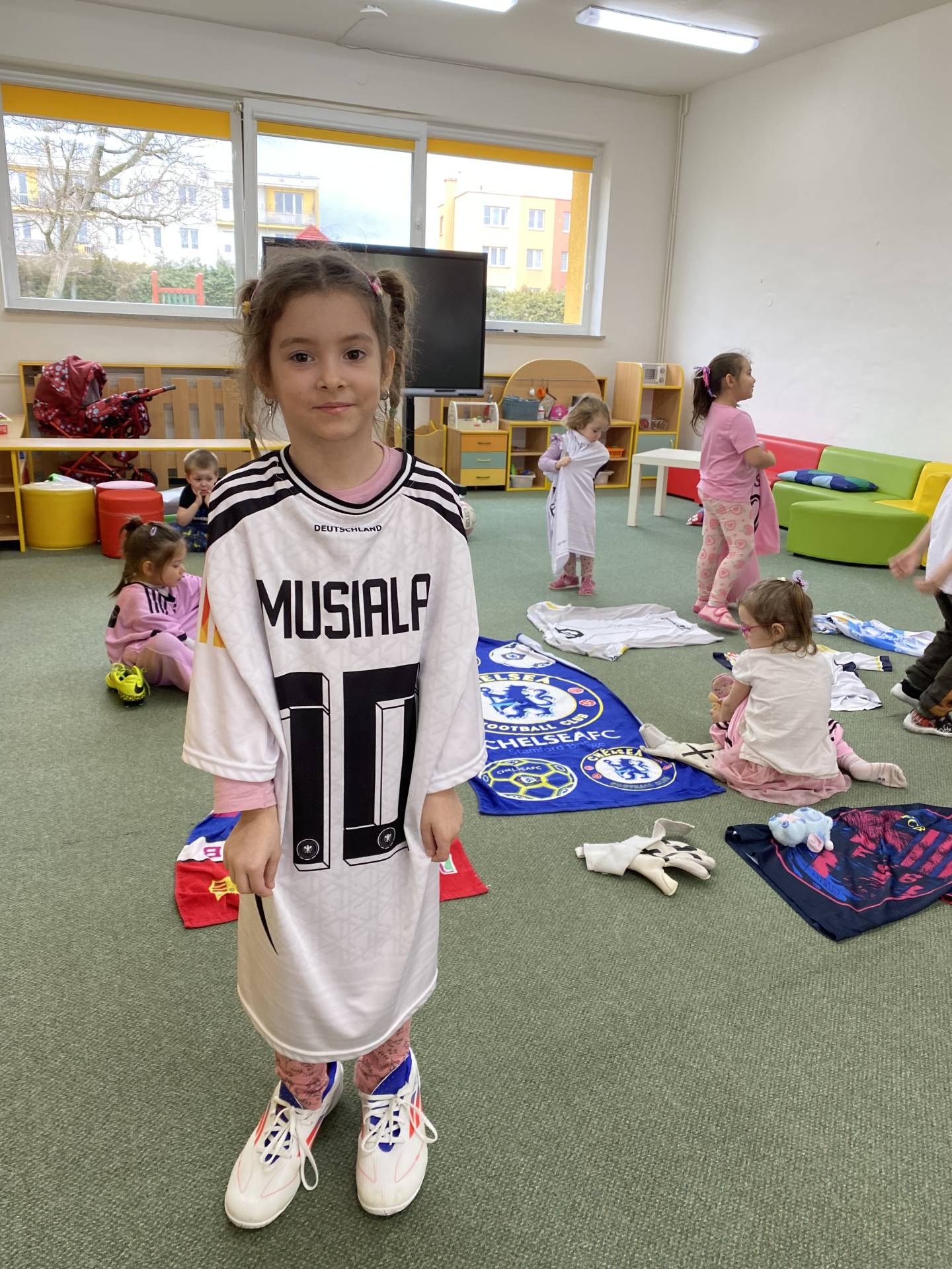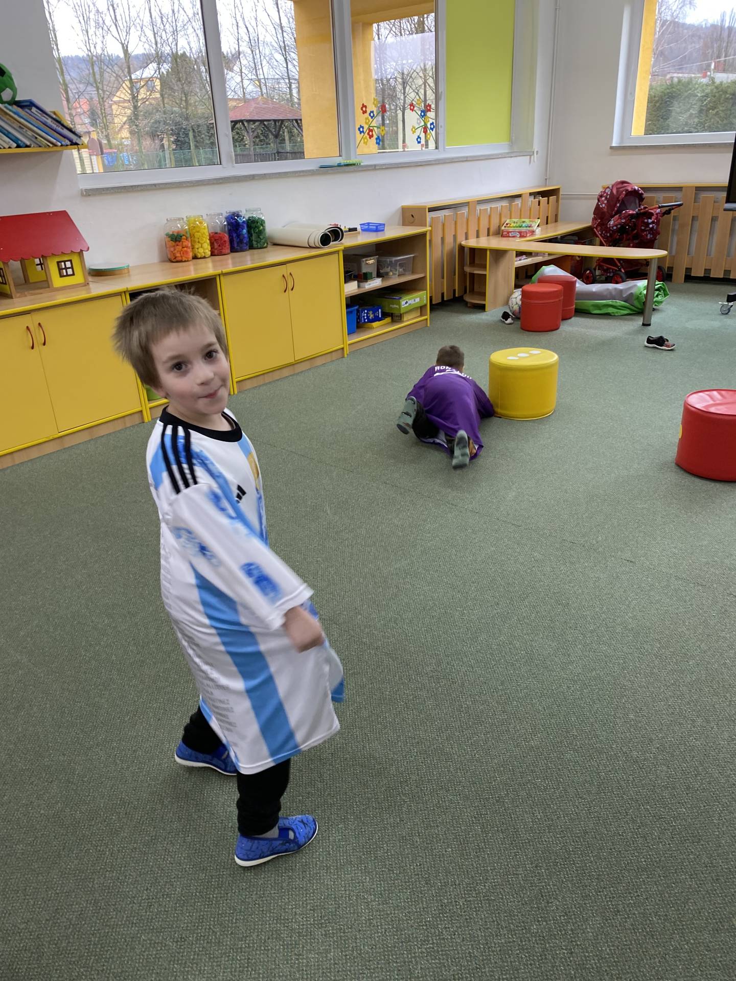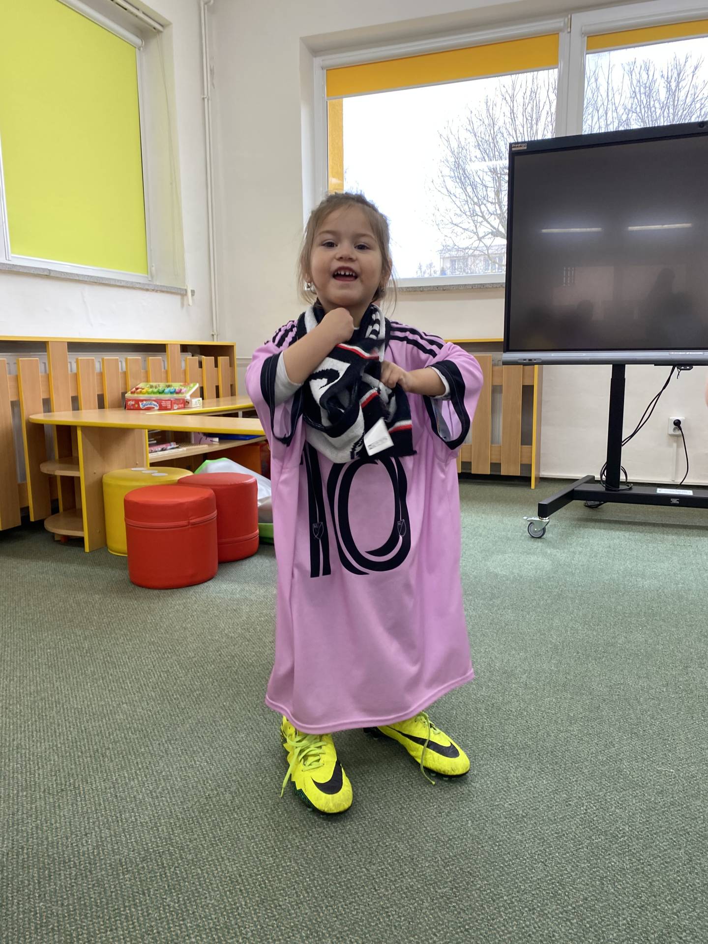 Nezapomněli jsme ani na řemesla a povolání, kdy si děti samy zvolily téma - Fotbalista. Děti si oblékly fotbalové dresy a vyzkoušely si roli fotbalistů. Trénovaly přihrávky, střelbu na branku i týmového ducha. Radost z pohybu byla vidět na každém kroku.