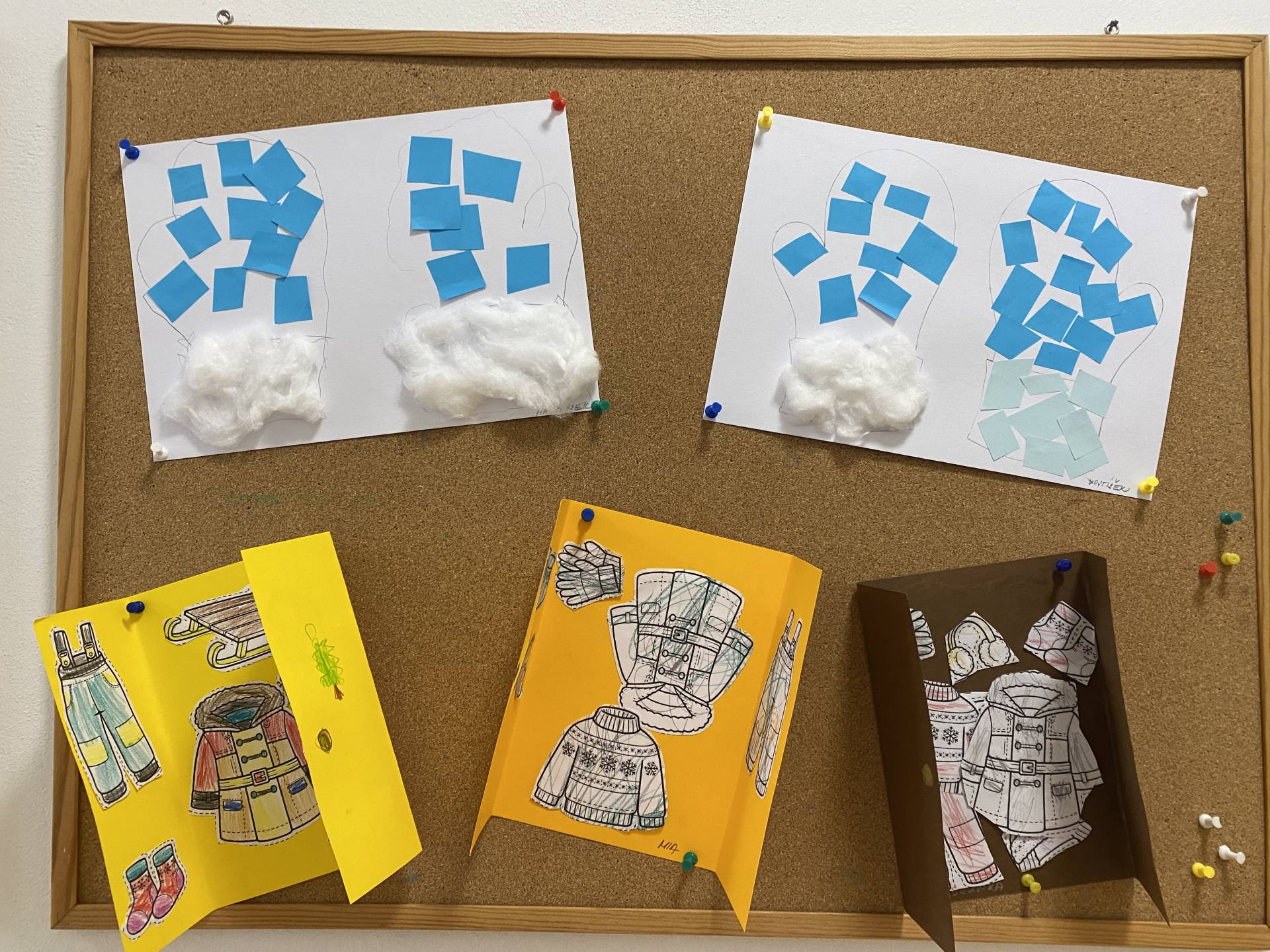 Povídali jsme si o zimním období a o tom, jaké oblečení je v zimě důležité. Děti poznávaly jednotlivé části zimního oblečení, některé si také vyrobily různými výtvarnými technikami. Povídali jame si o tom, proč je důležité v mrazivém počasí nosit čepici, rukavice nebo šálu, a trénovaly správné oblékání. Nechyběly ani tematické hry, písničky a básničky se zimní tematikou.
