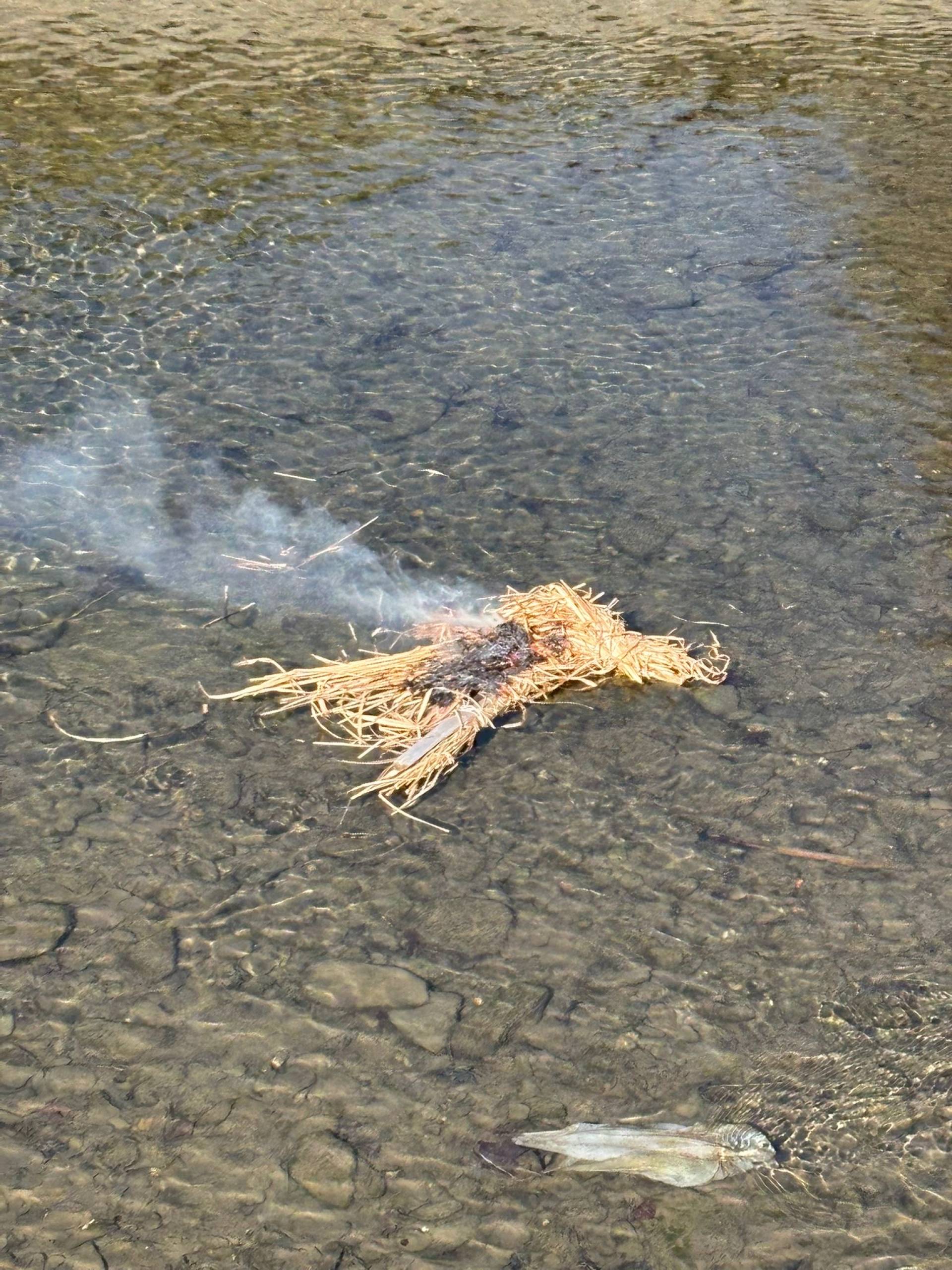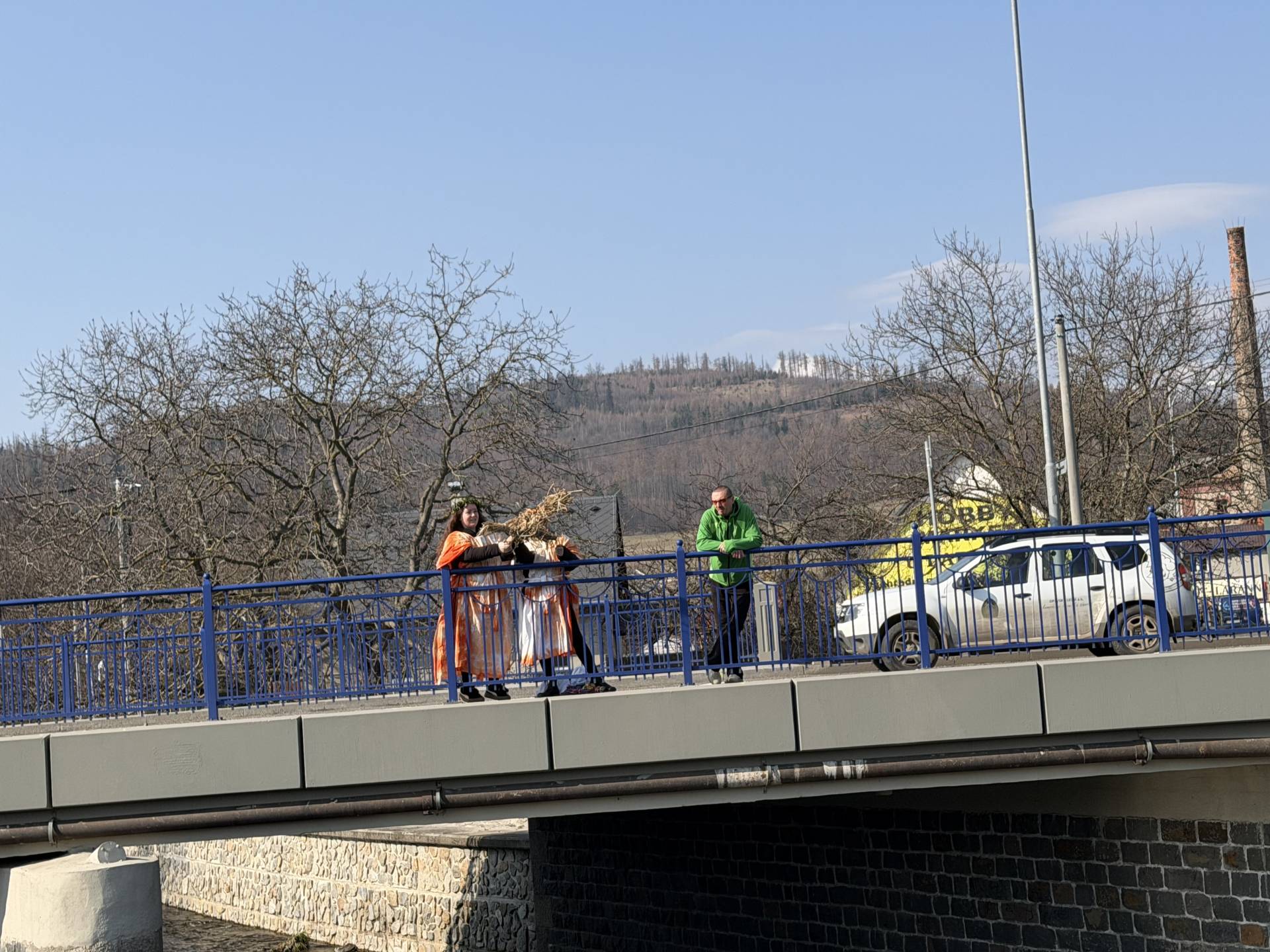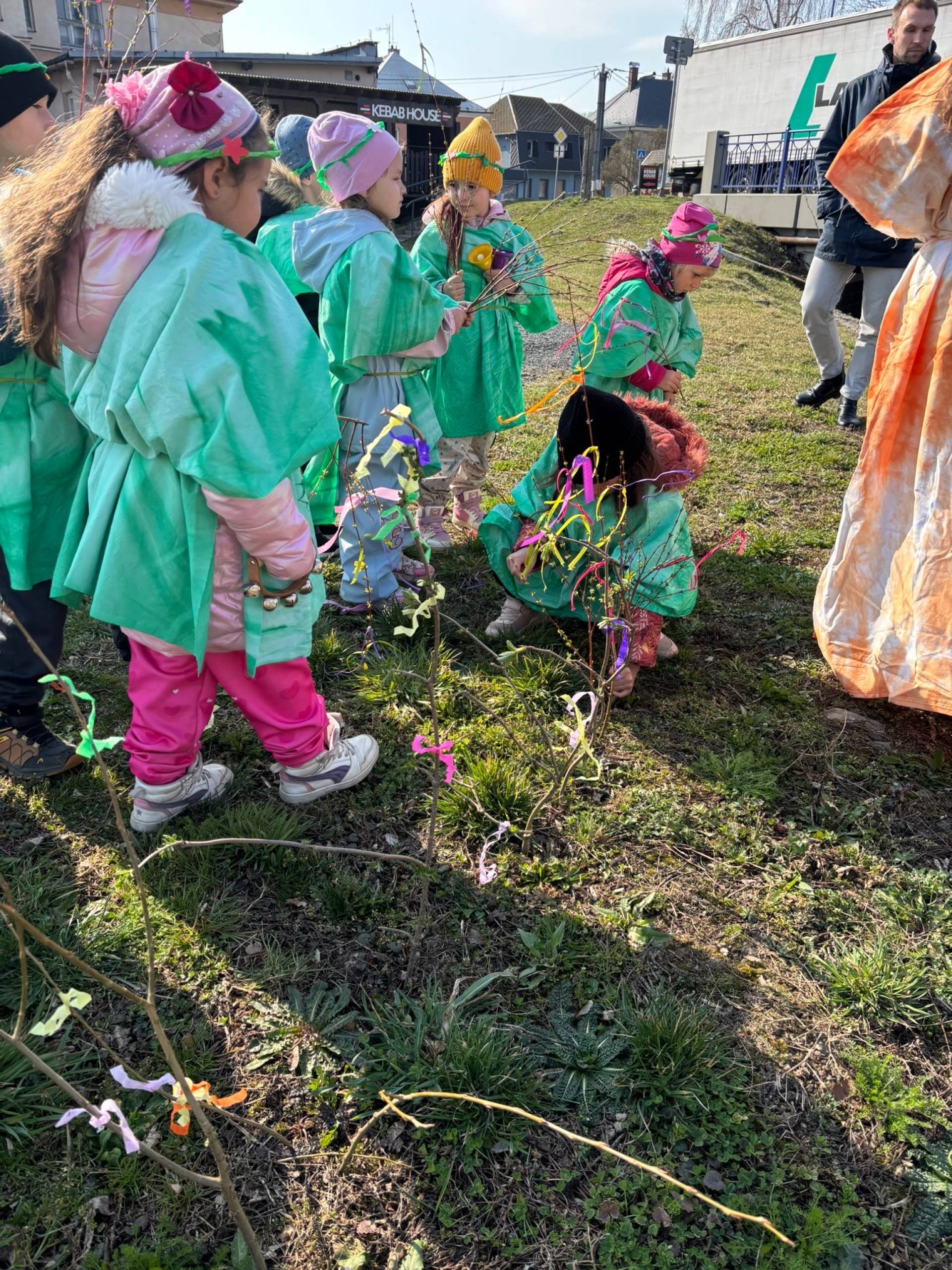 Po společném zpívání jsme se přesunuli k řece, kde vyvrcholila celá tradice. Moranu jsme symbolicky zapálili a poté ji vhodili do vody, čímž jsme se rozloučili se zimou. Následně děti vytvořily „zlatou bránu“, kterou jsme společně prošli jako symbolem příchodu jara a nového začátku.