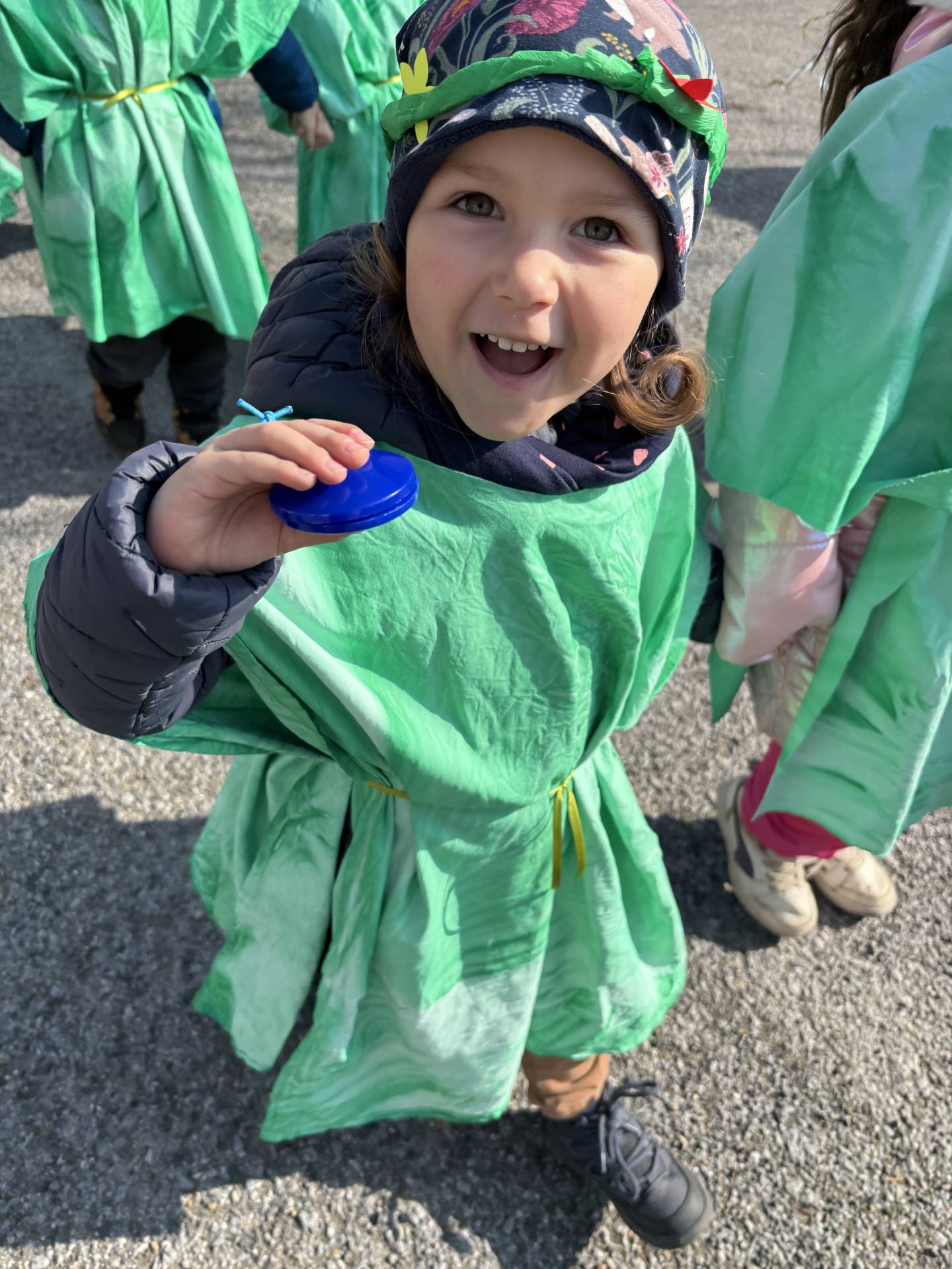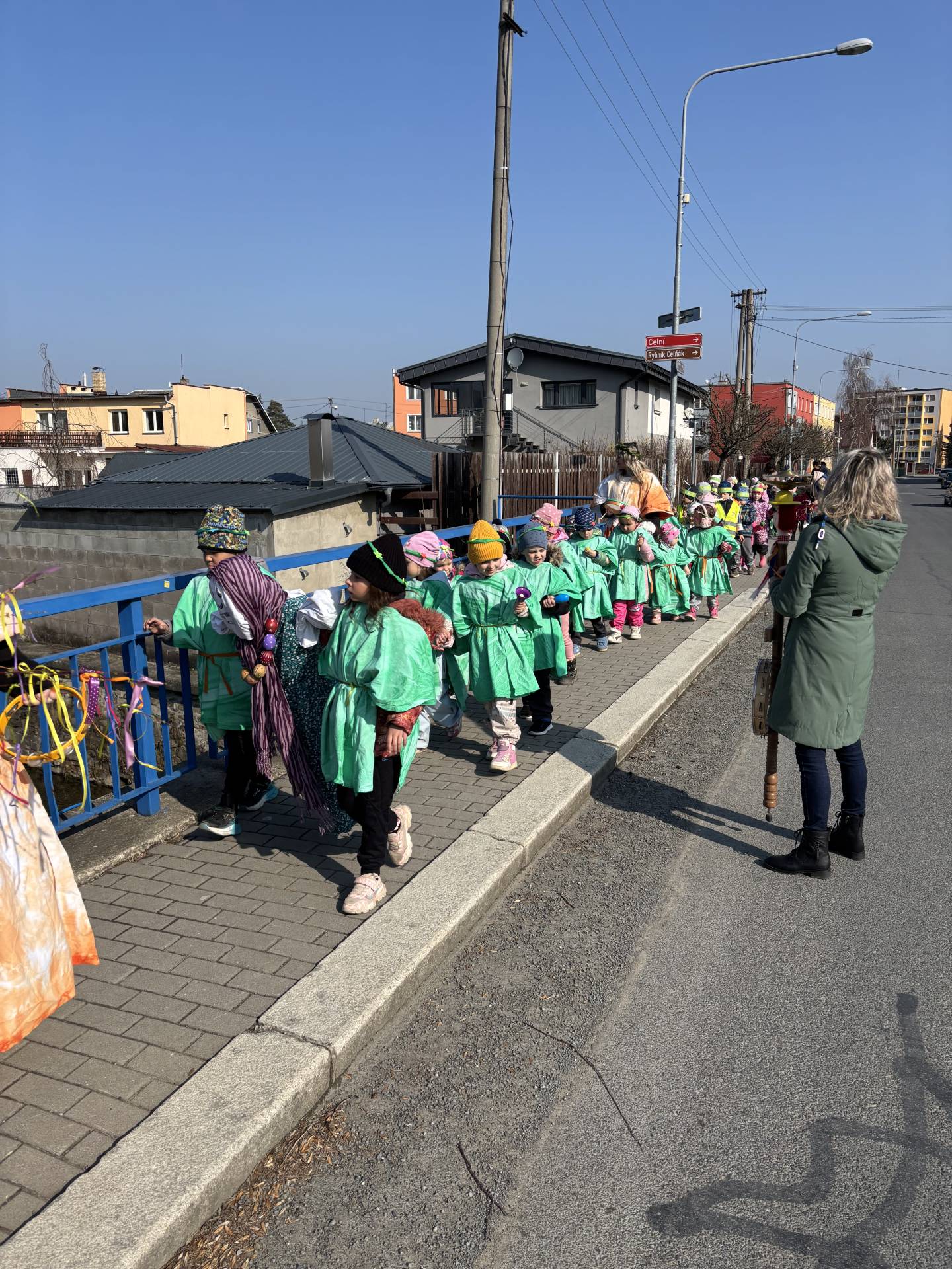 Hned dopoledne jsme se vydali na slavnostní průvod. Děti kráčely s nadšením, zpívaly jarní písně a nesly Moranu, kterou jsme si společně připravili. Atmosféra byla radostná a plná očekávání – bylo znát, že děti vnímají význam tohoto okamžiku nejen jako tradici, ale i jako společný zážitek.