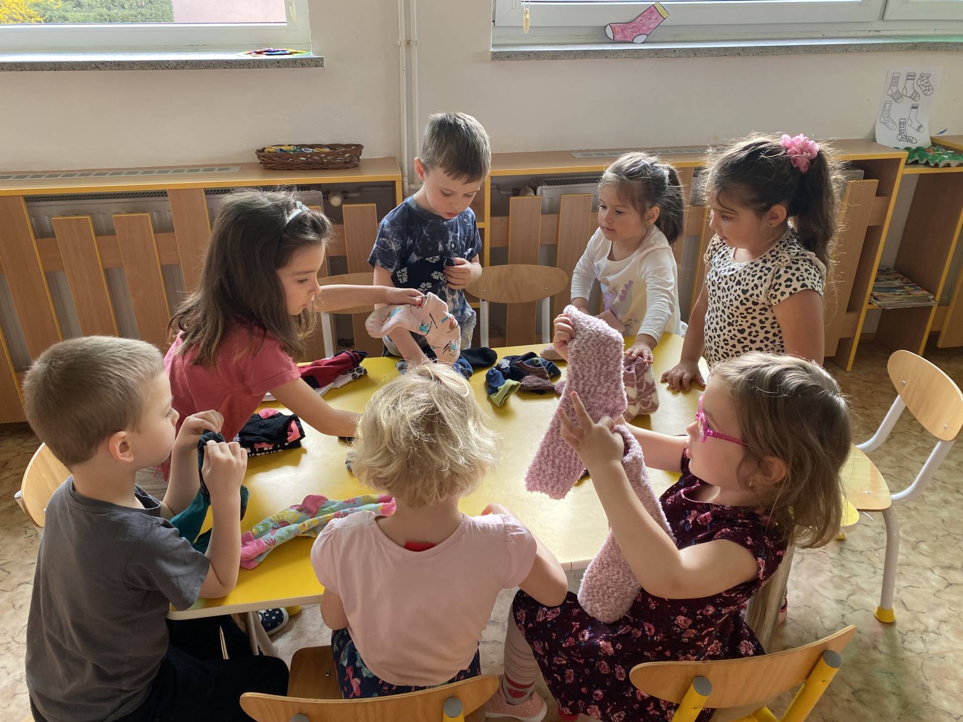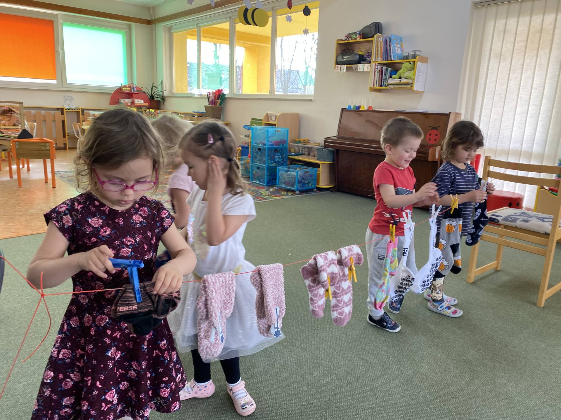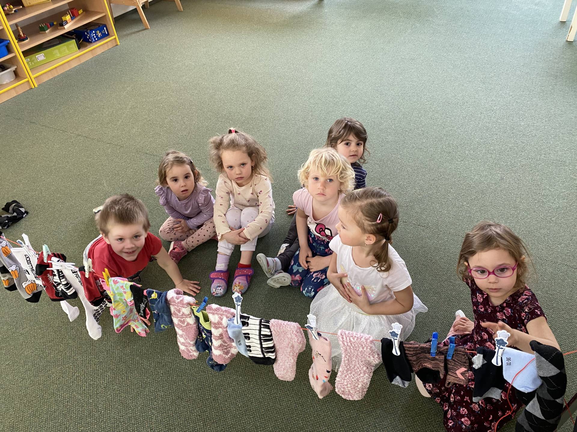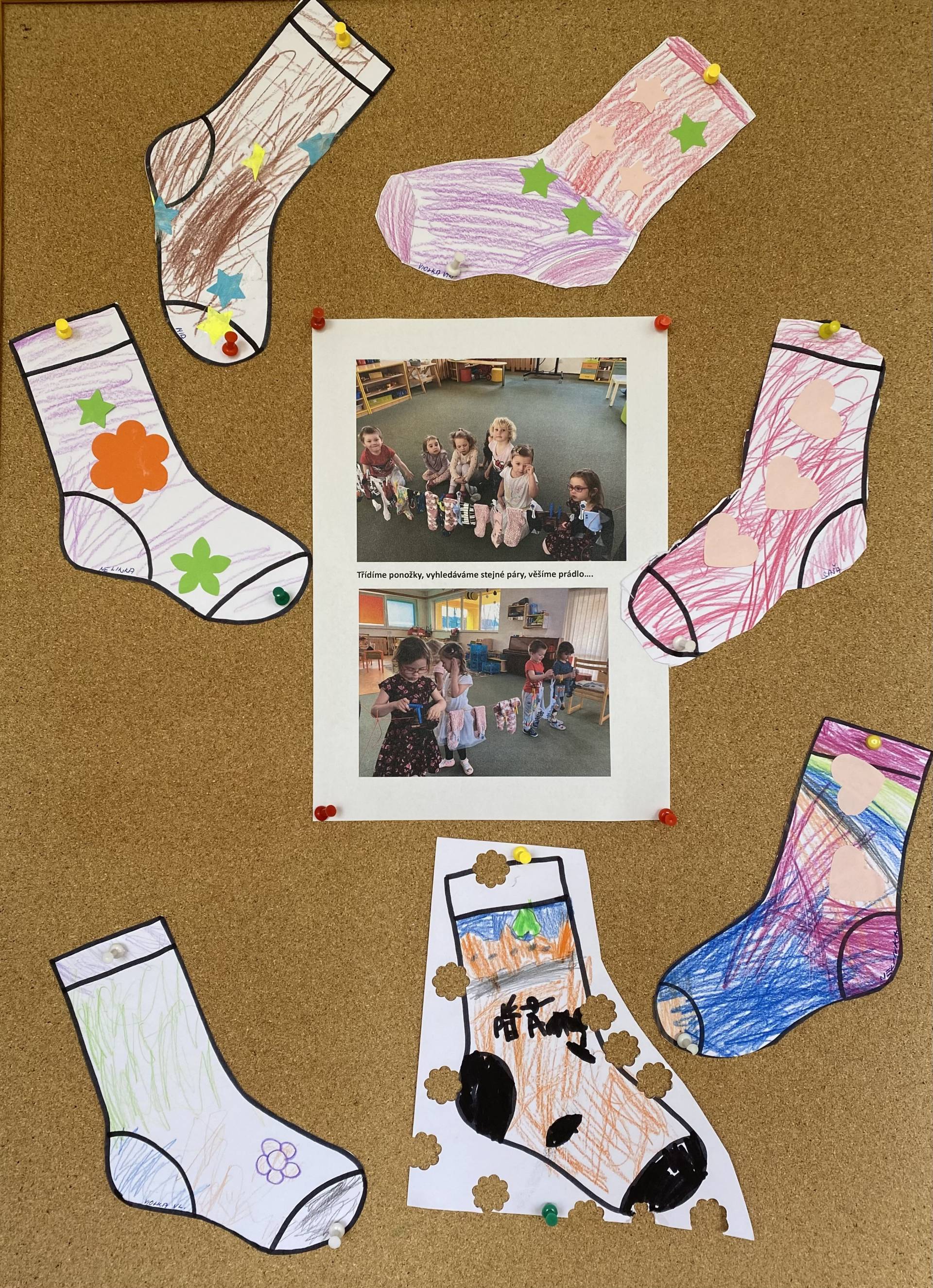 Během dne děti třídily ponožky podle barev a velikostí, věšely je na šňůru a vyrobily si také vlastní papírové ponožky, které si s radostí ozdobily podle své fantazie. Nechyběly ani tematické hry zaměřené na rozvoj emocí, empatie a sociálních dovedností.