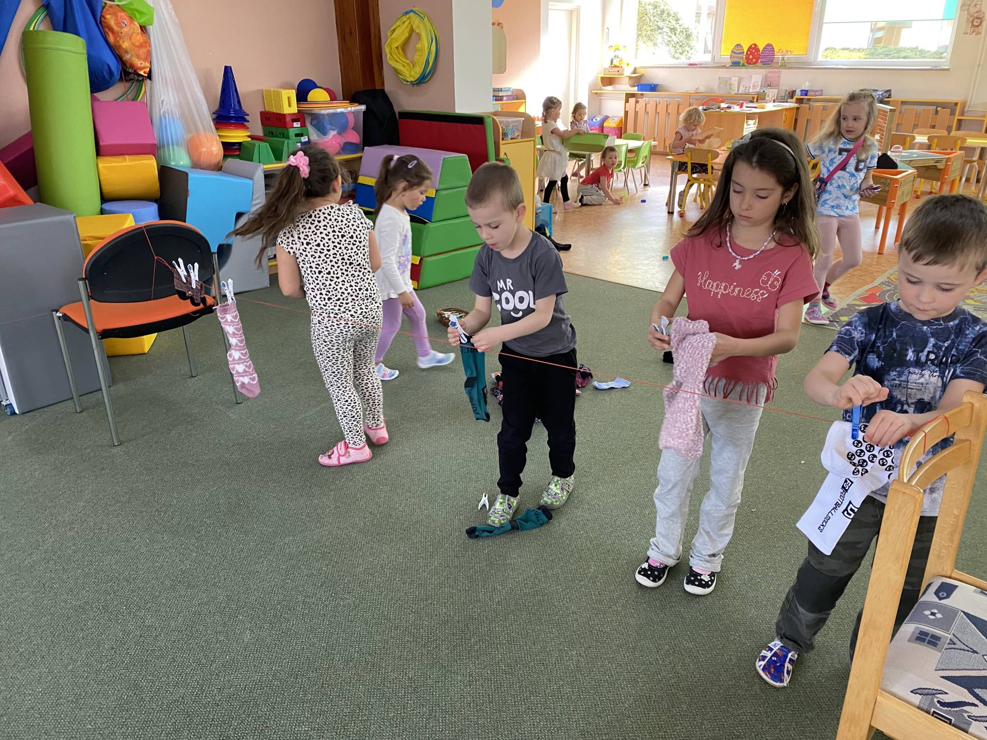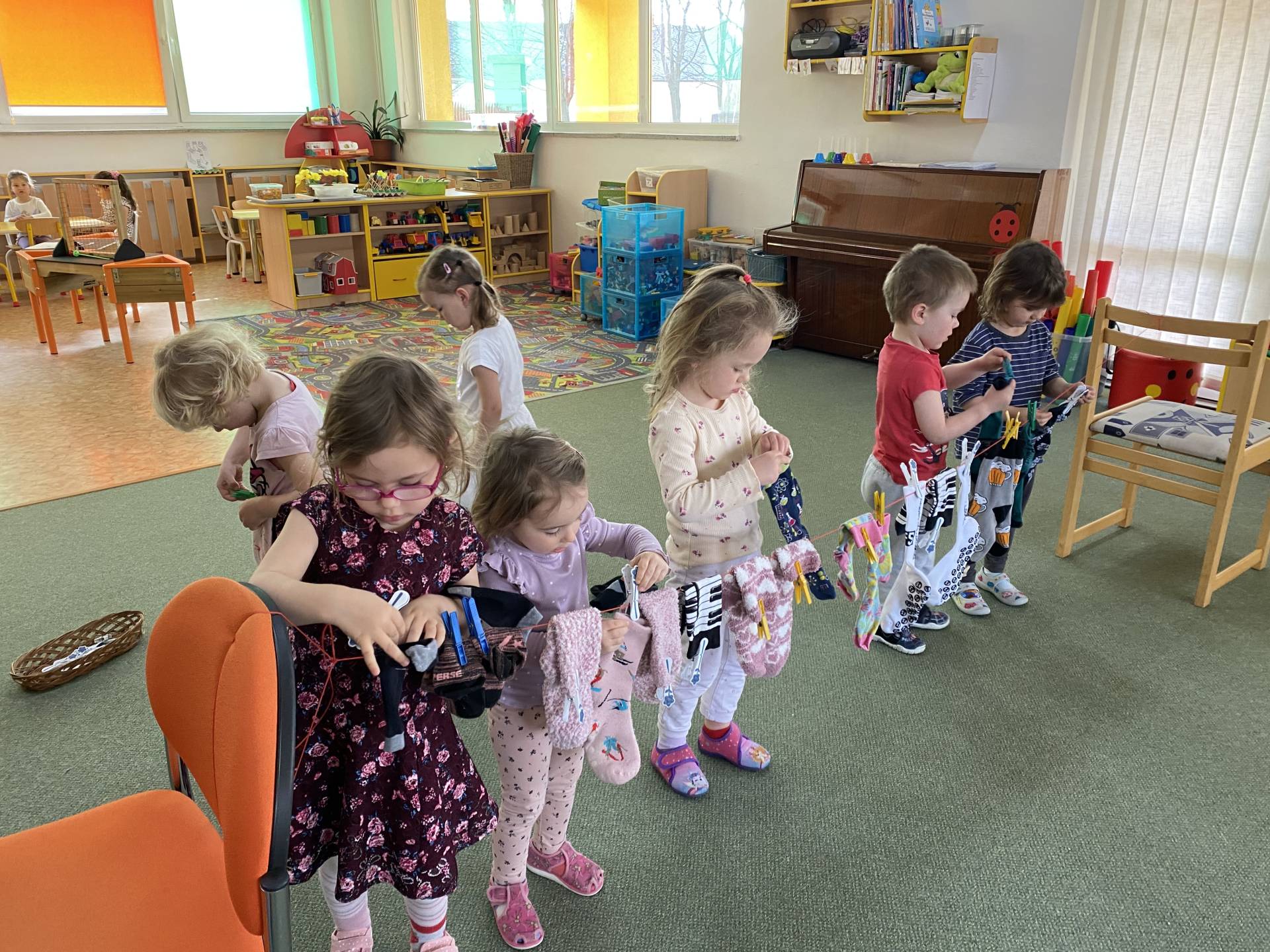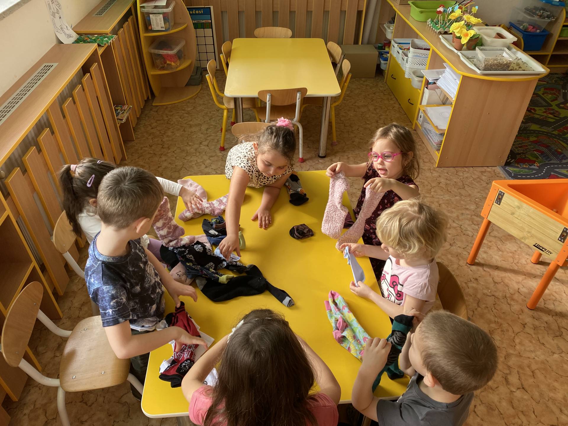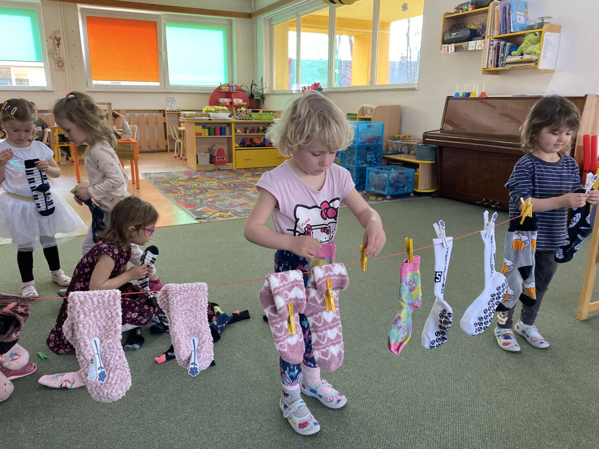 Během dne děti třídily ponožky podle barev a velikostí, věšely je na šňůru a vyrobily si také vlastní papírové ponožky, které si s radostí ozdobily podle své fantazie. Nechyběly ani tematické hry zaměřené na rozvoj emocí, empatie a sociálních dovedností.